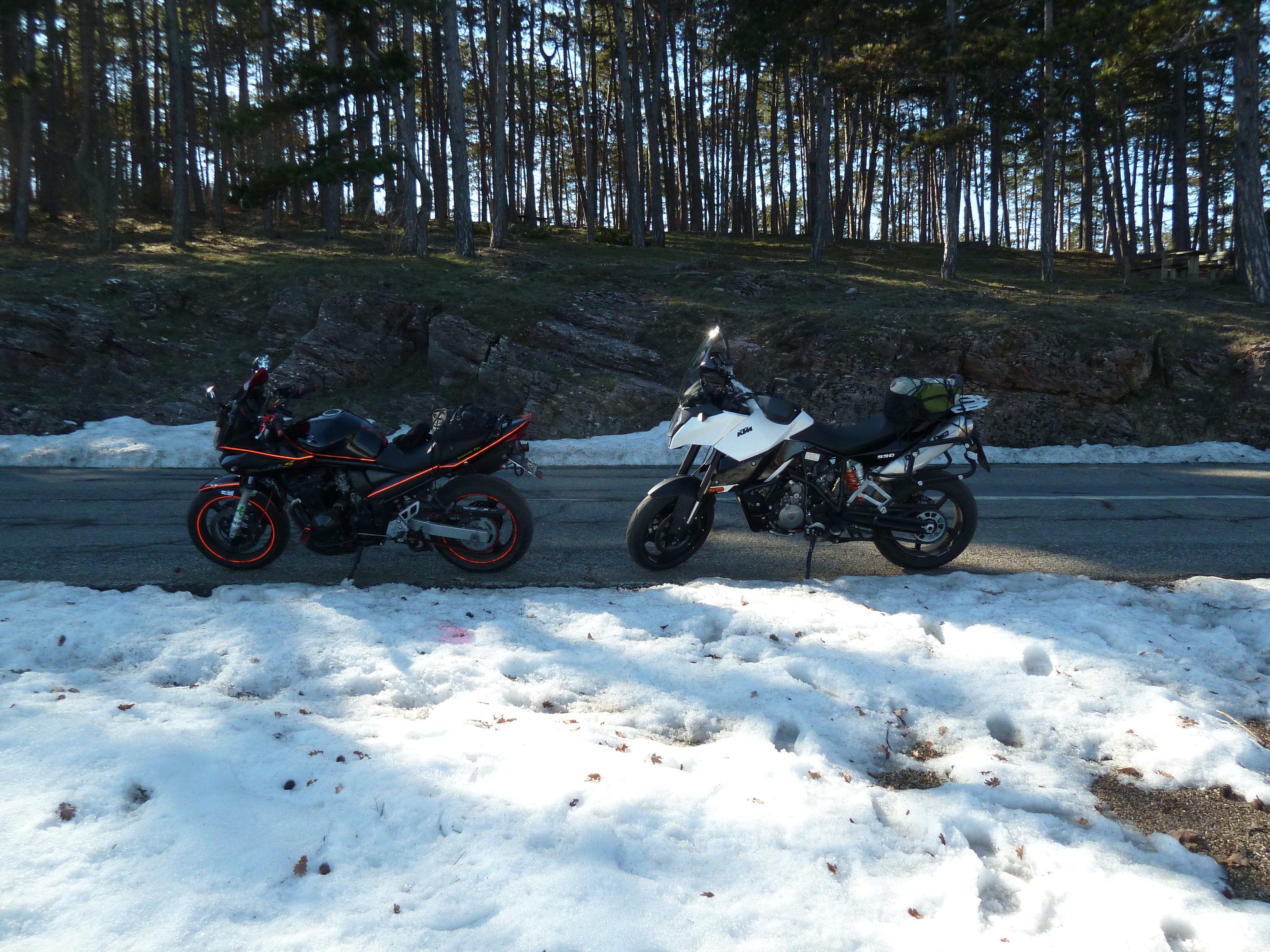 Proprio come l’anno scorso più o meno di questi tempi ai primi scampoli di sole e nonostante l’aria fresca con Alberto si decide di andare a cercarlo, ben coperti ovviamente. E l’occasione è ghiotta soprattutto per lui che minaccia che tanto va pure da solo. La sua nuova KTM va finalmente provata su strade extraurbane e soprattutto note.