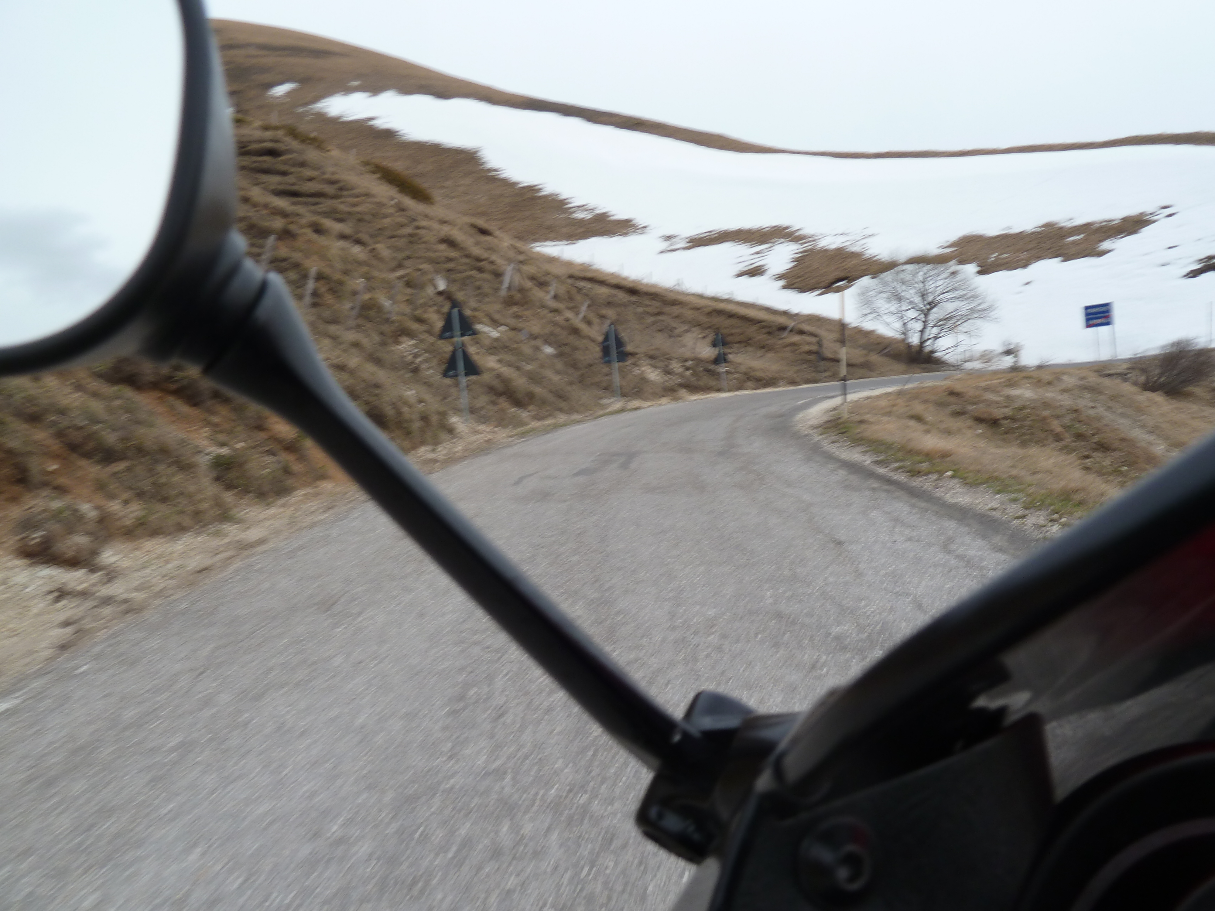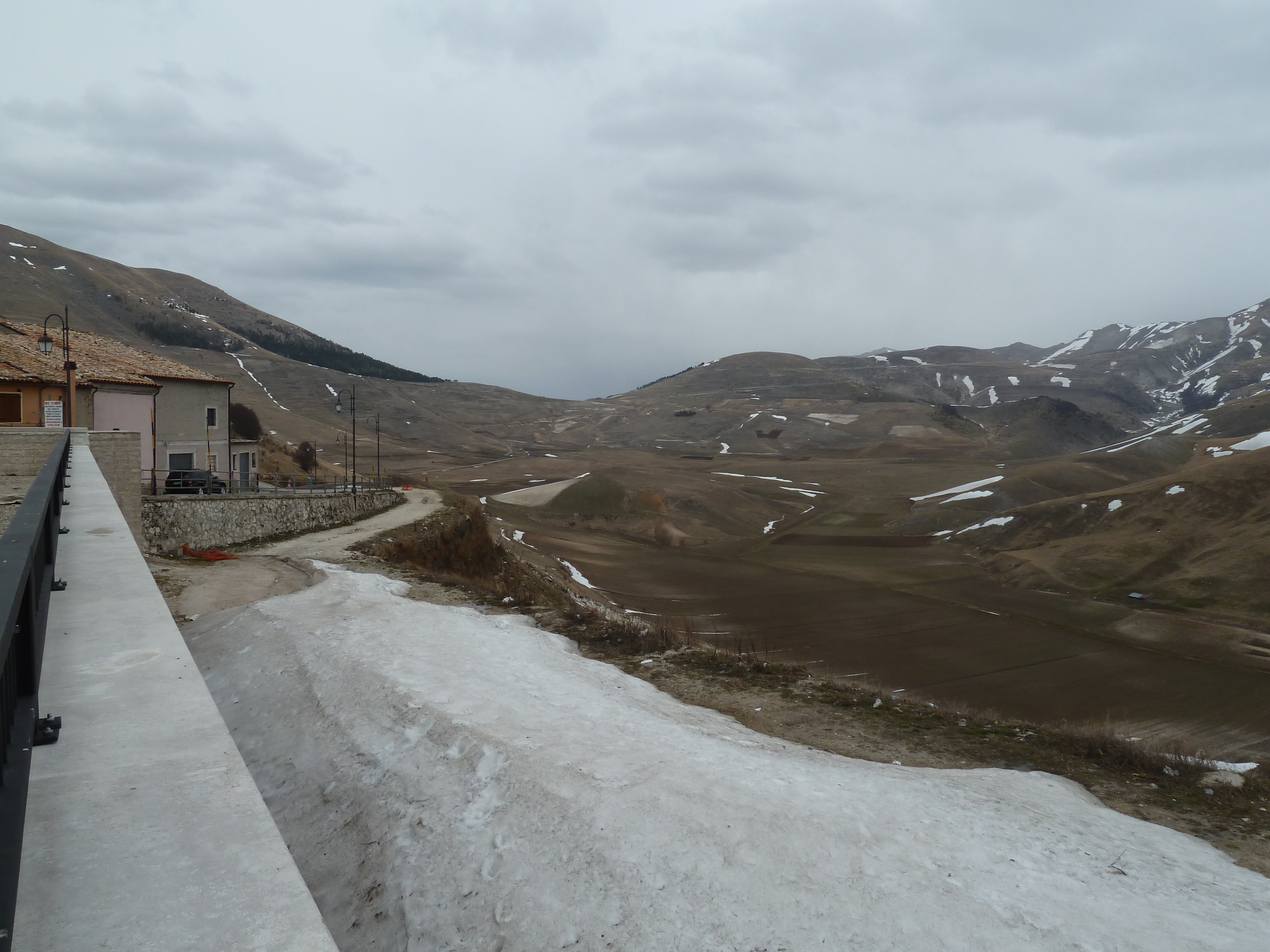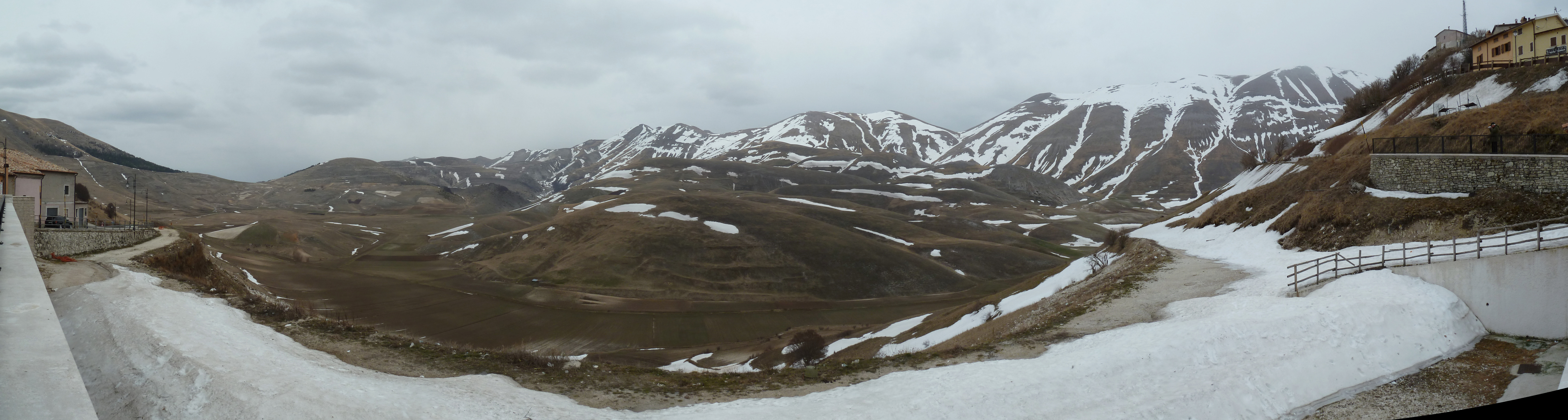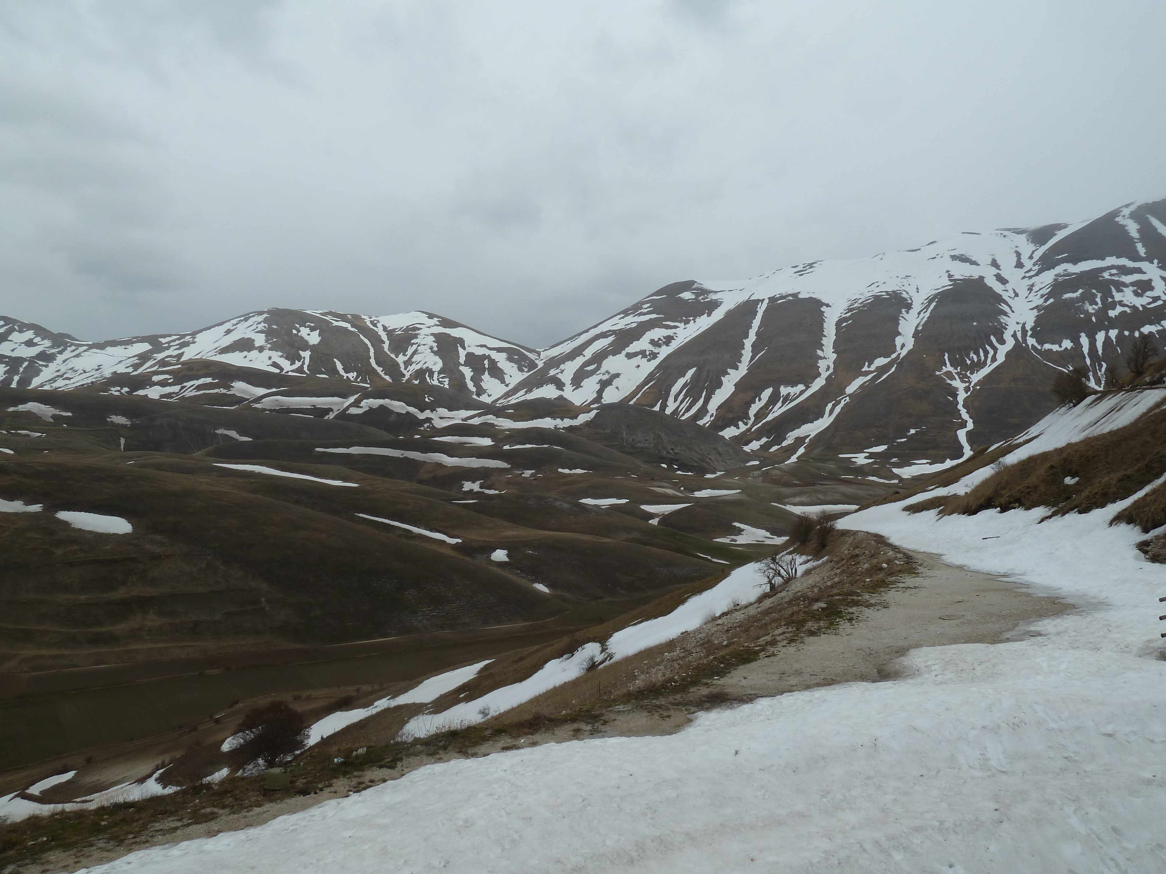Da Visso puntiamo dritti verso Castelluccio di Norcia. Preferisco arrivare da nord in questo splendido posto e la vista degli altopiani prima e dopo il paesello tra i più alti dell’appennino (credo che Rocca di Cambio, AQ, lo superi di poco seguito per pochi metri da Capracotta, IS, in Molise). Il Monte Vettore, terza cima dell’Appennino, svetta ancora abbastanza innevato.