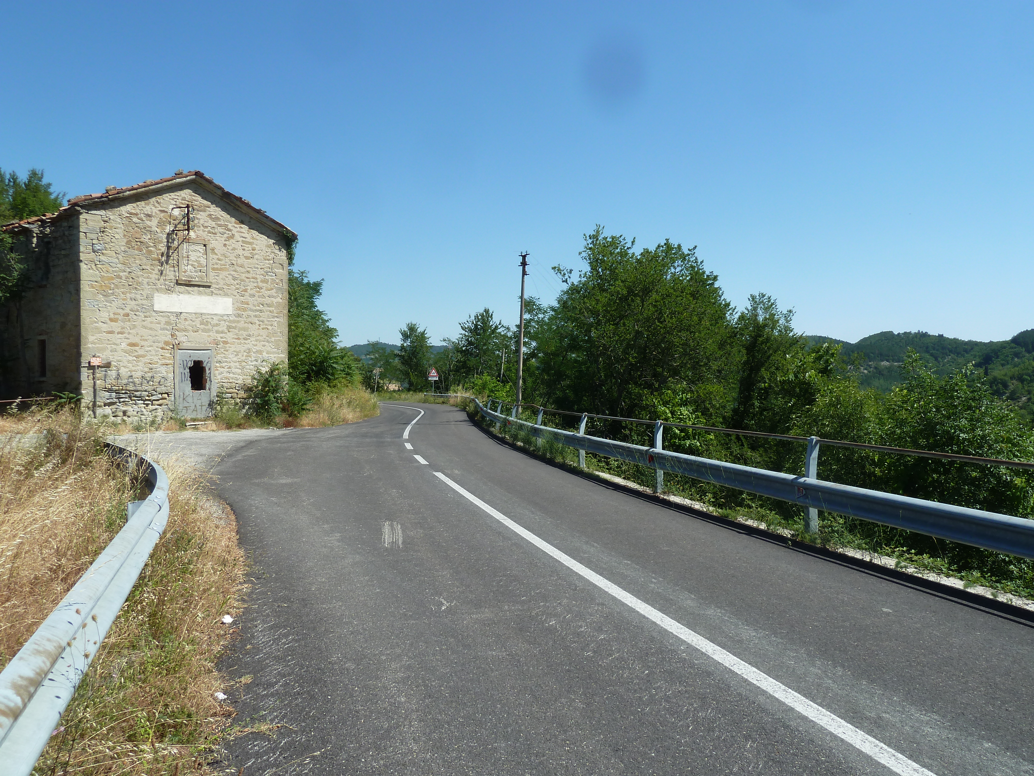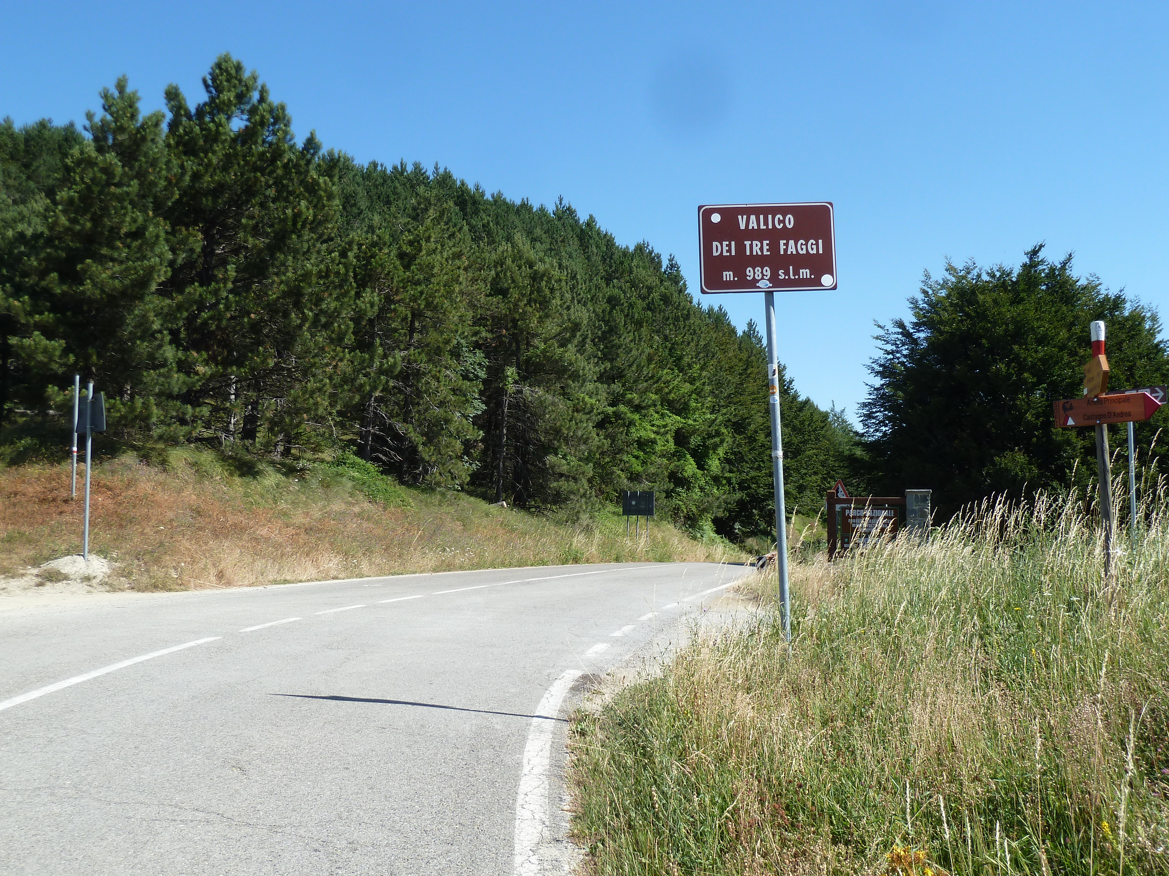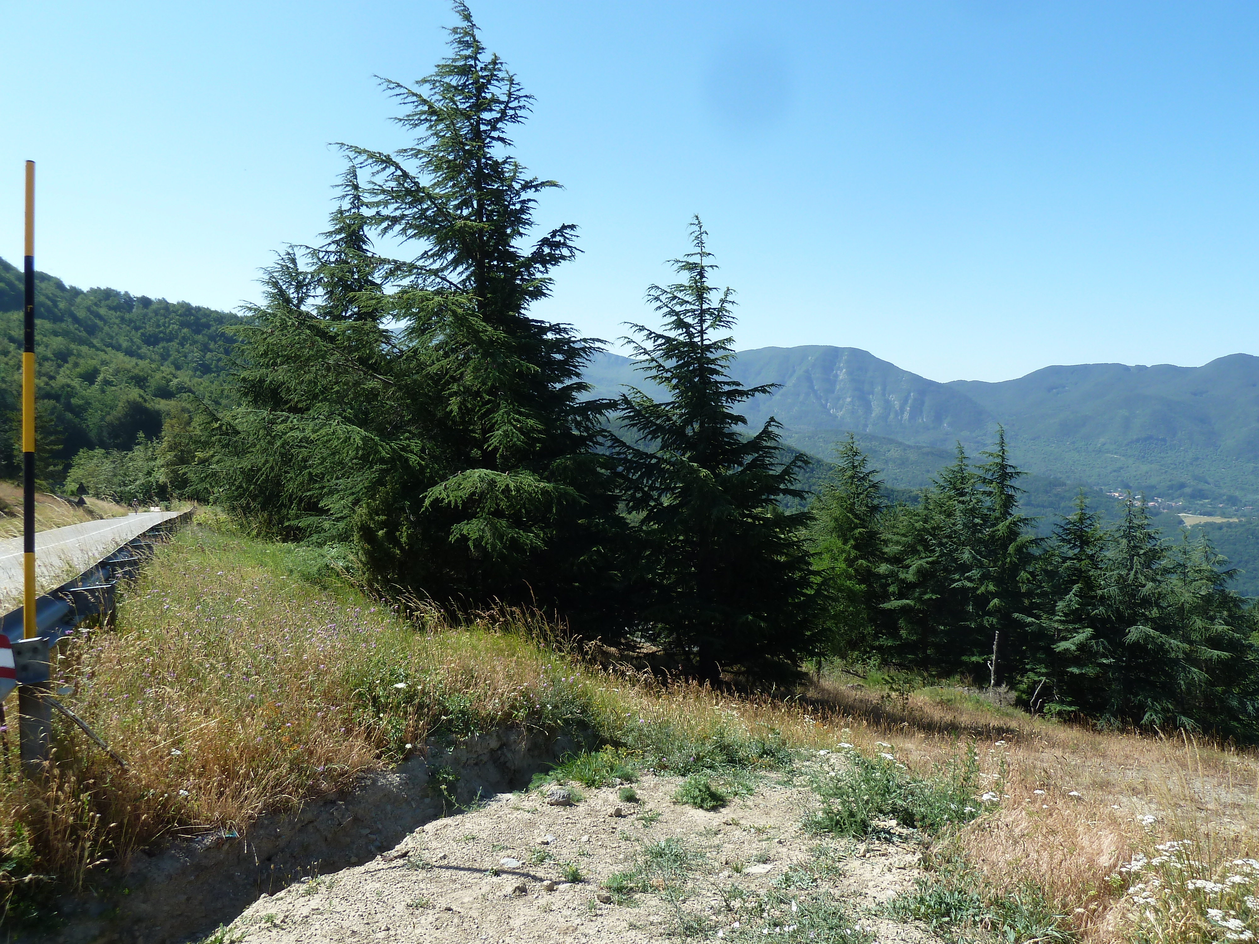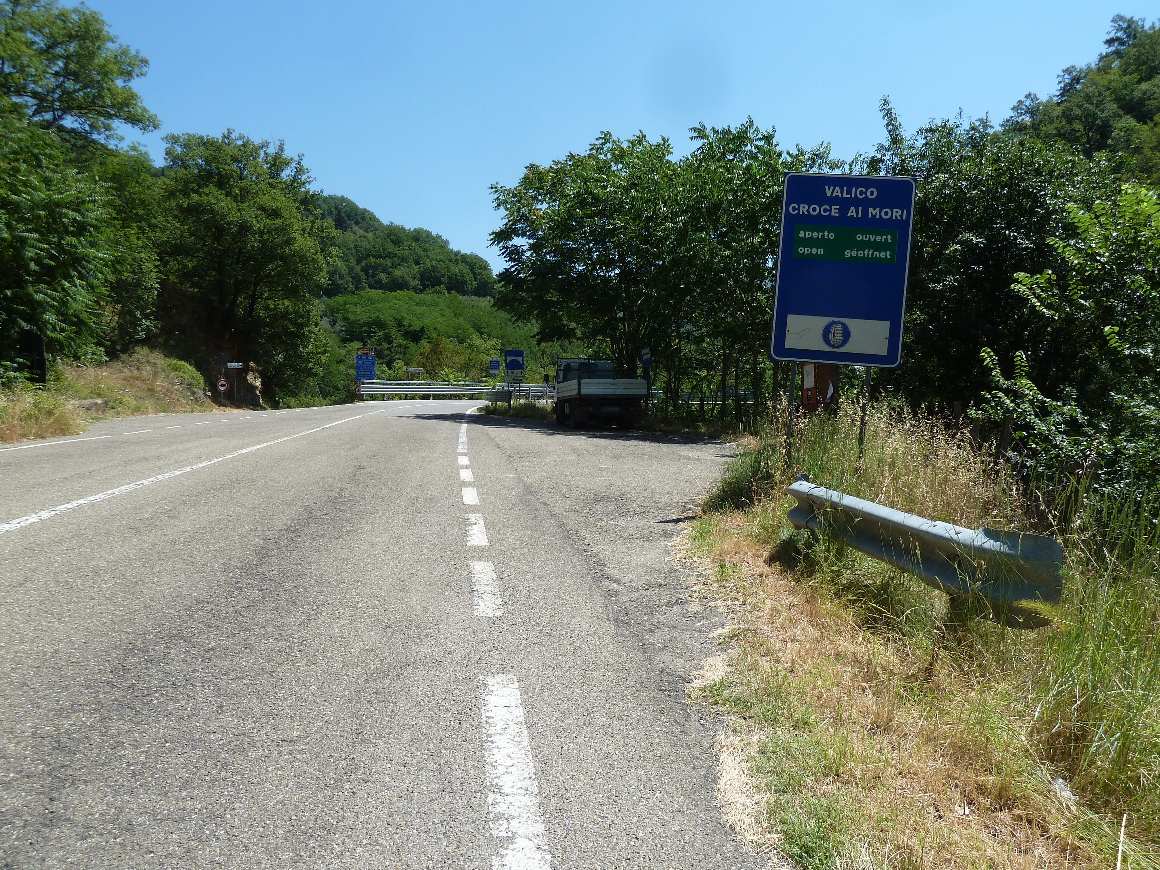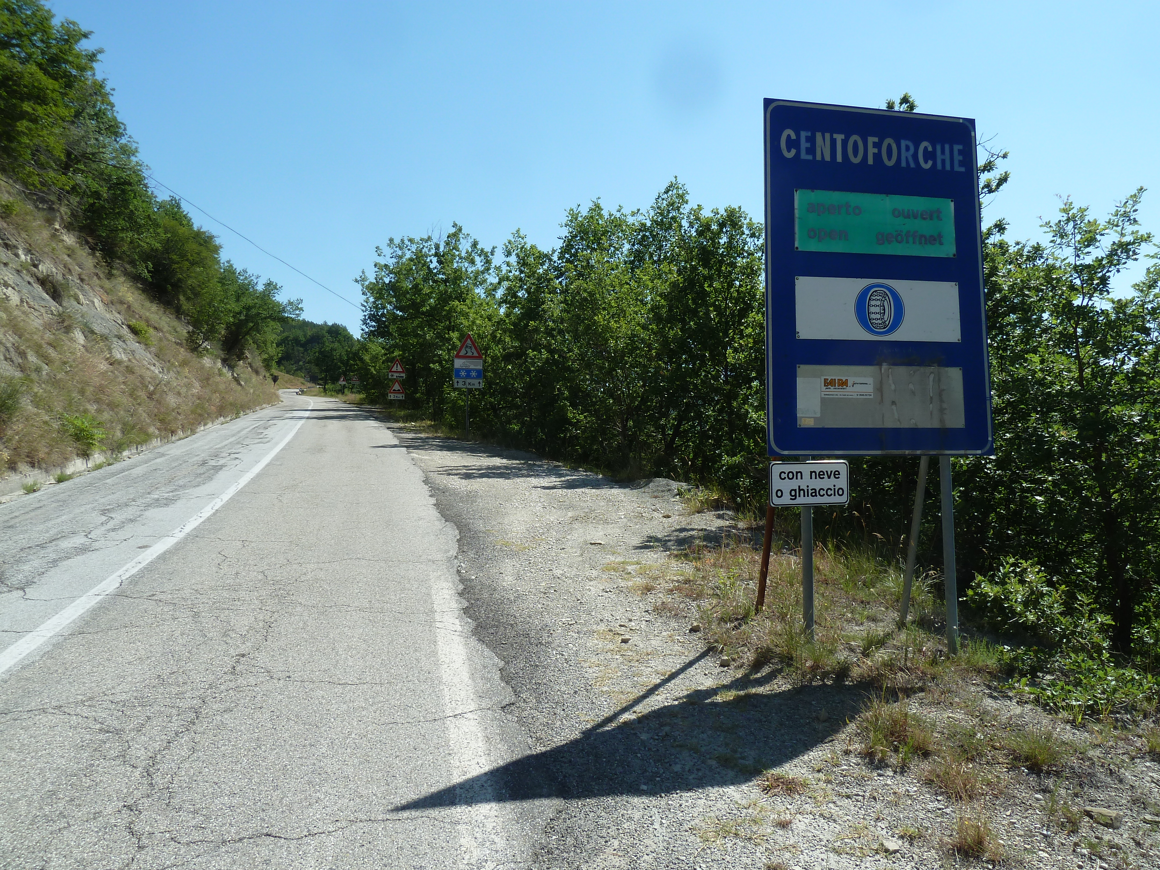 Ci ritempriamo nel fresco di Passolanciano e poi via. La discesa verso Lettomanoppello si apre in una stretta valle molto bella sulla SP 65 ancora segnata sul fianco sinistro dai segni di un incendio di diversi anni fa e con all’orizzonte nella foschia della calura pomeridiana il Gran Sasso ed il Corno Grande. Una tirata verso la valle del Pescara da Scafa a Popoli sulla SS 5 Tiburtina e da lì sempre sulla SS 5 il tratto bellissimo ed ottimamente conosciuto (quest’anno l’avrò fatto 4 o 5 volte!) che da Raiano risale le gole di San Venanzio ed attraverso il valico di Forca Caruso riporta a Collarmele.