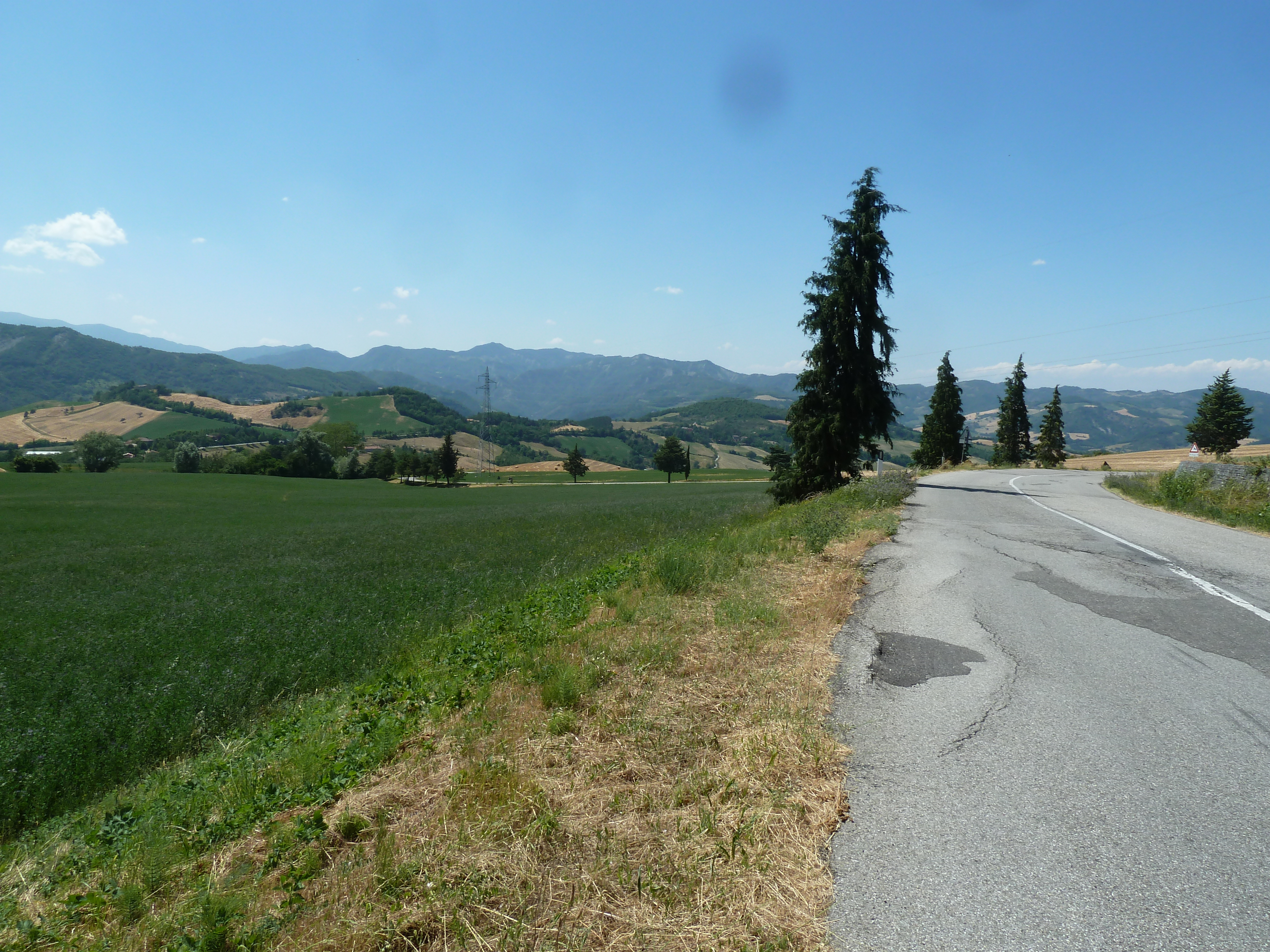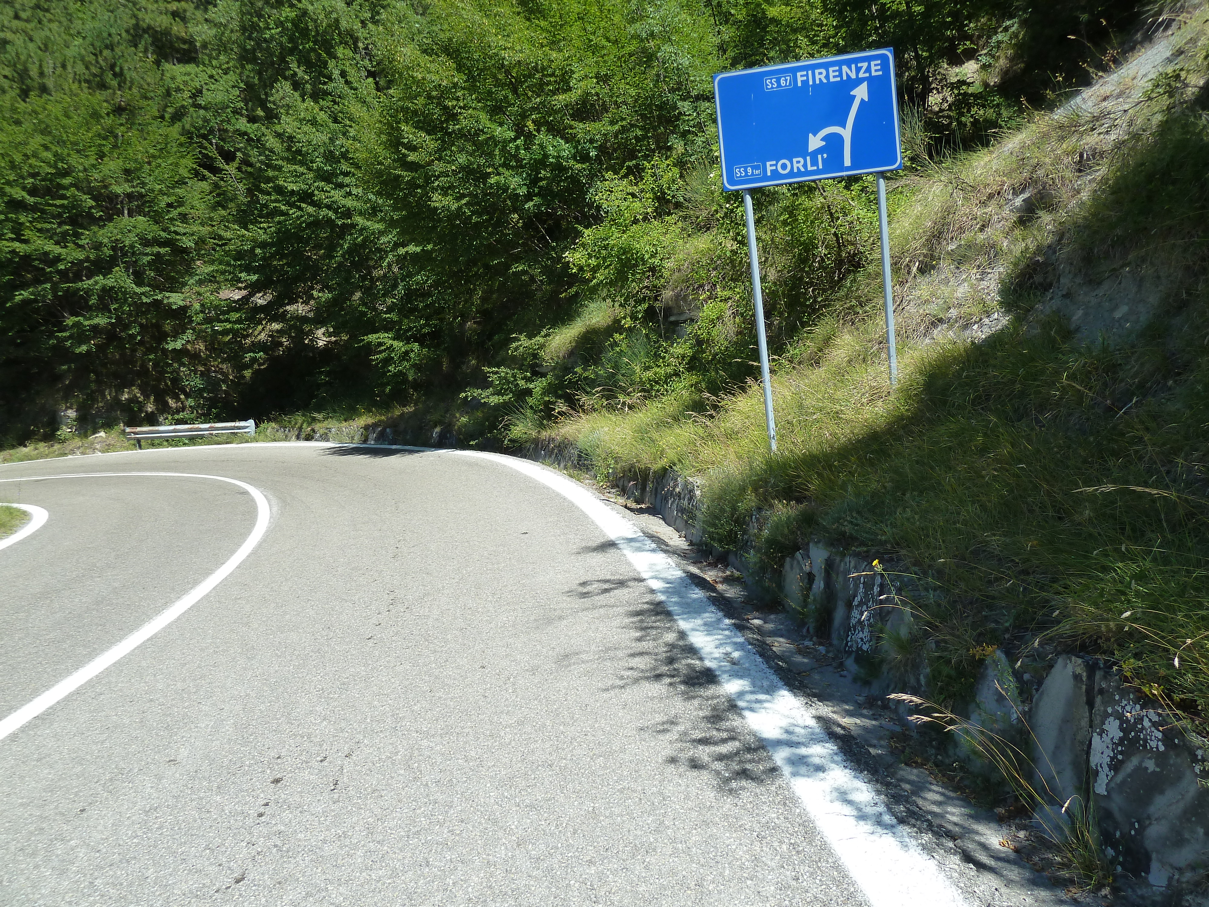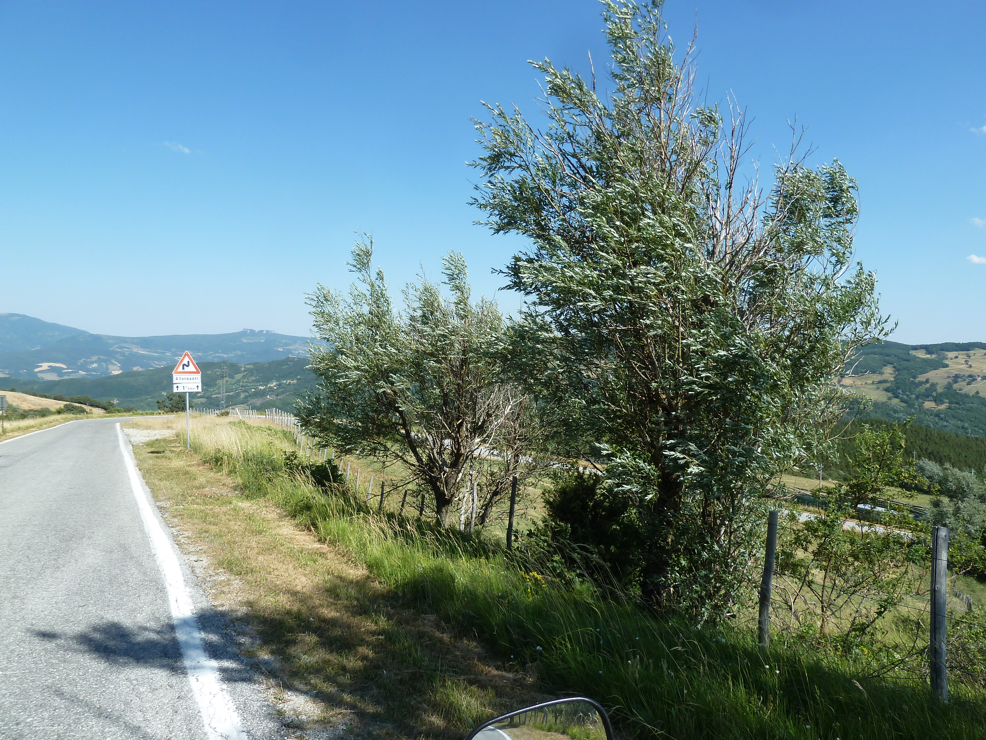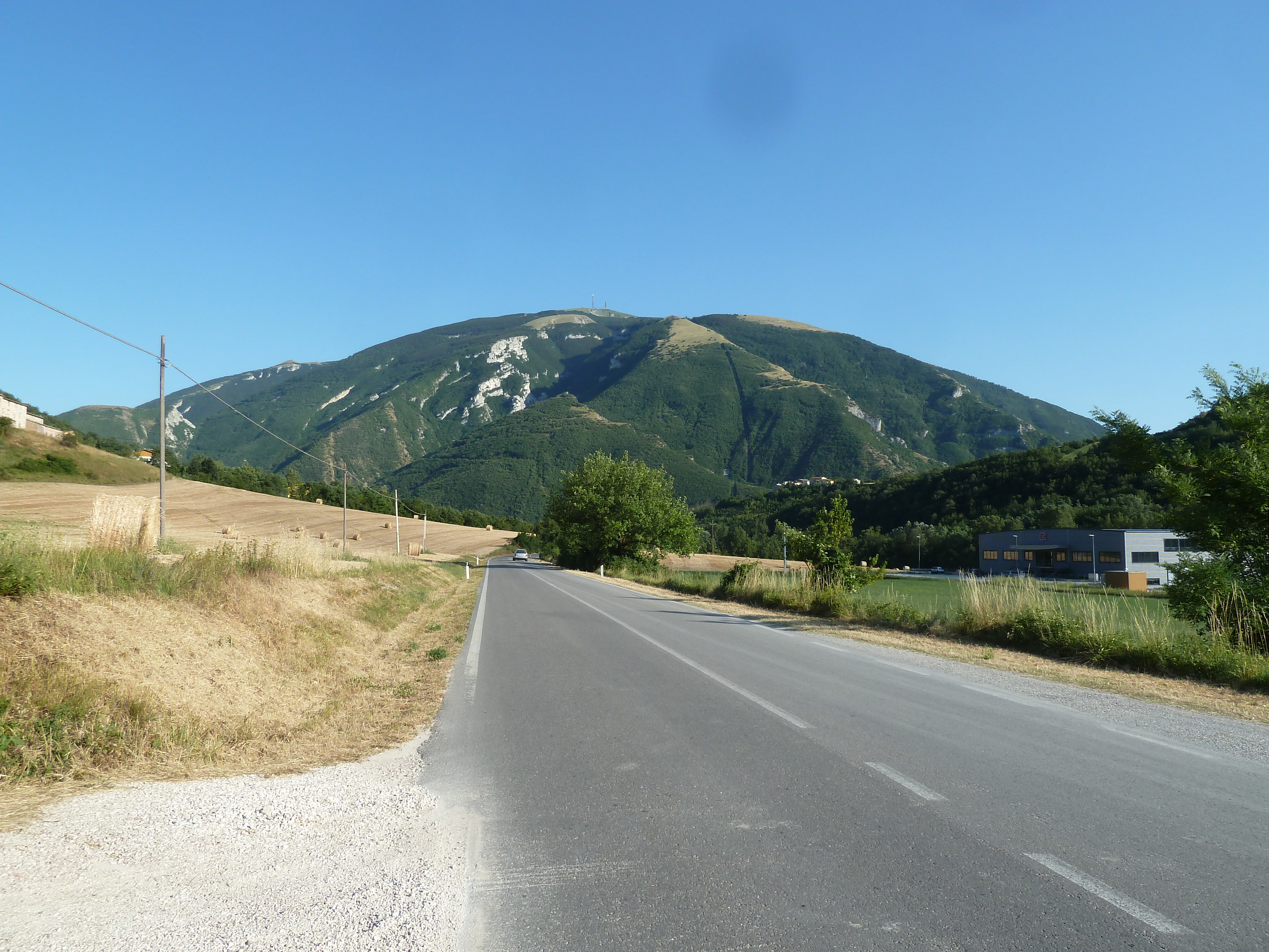 Ci ritempriamo nel fresco di Passolanciano e poi via. La discesa verso Lettomanoppello si apre in una stretta valle molto bella sulla SP 65 ancora segnata sul fianco sinistro dai segni di un incendio di diversi anni fa e con all’orizzonte nella foschia della calura pomeridiana il Gran Sasso ed il Corno Grande. Una tirata verso la valle del Pescara da Scafa a Popoli sulla SS 5 Tiburtina e da lì sempre sulla SS 5 il tratto bellissimo ed ottimamente conosciuto (quest’anno l’avrò fatto 4 o 5 volte!) che da Raiano risale le gole di San Venanzio ed attraverso il valico di Forca Caruso riporta a Collarmele.