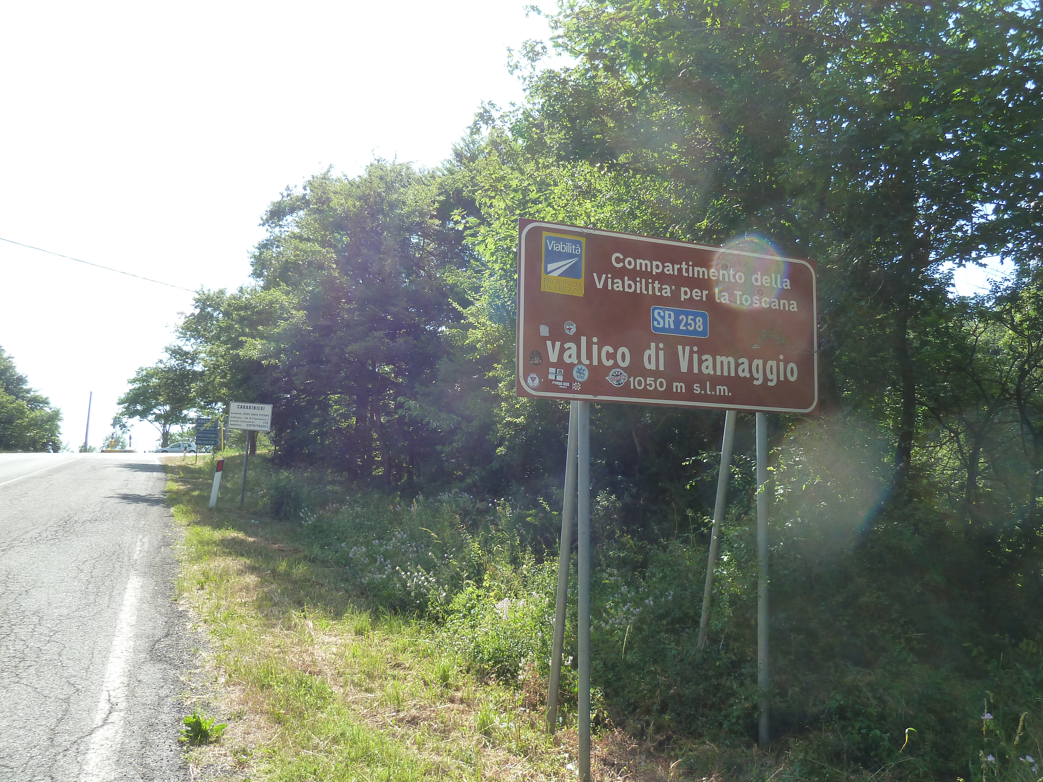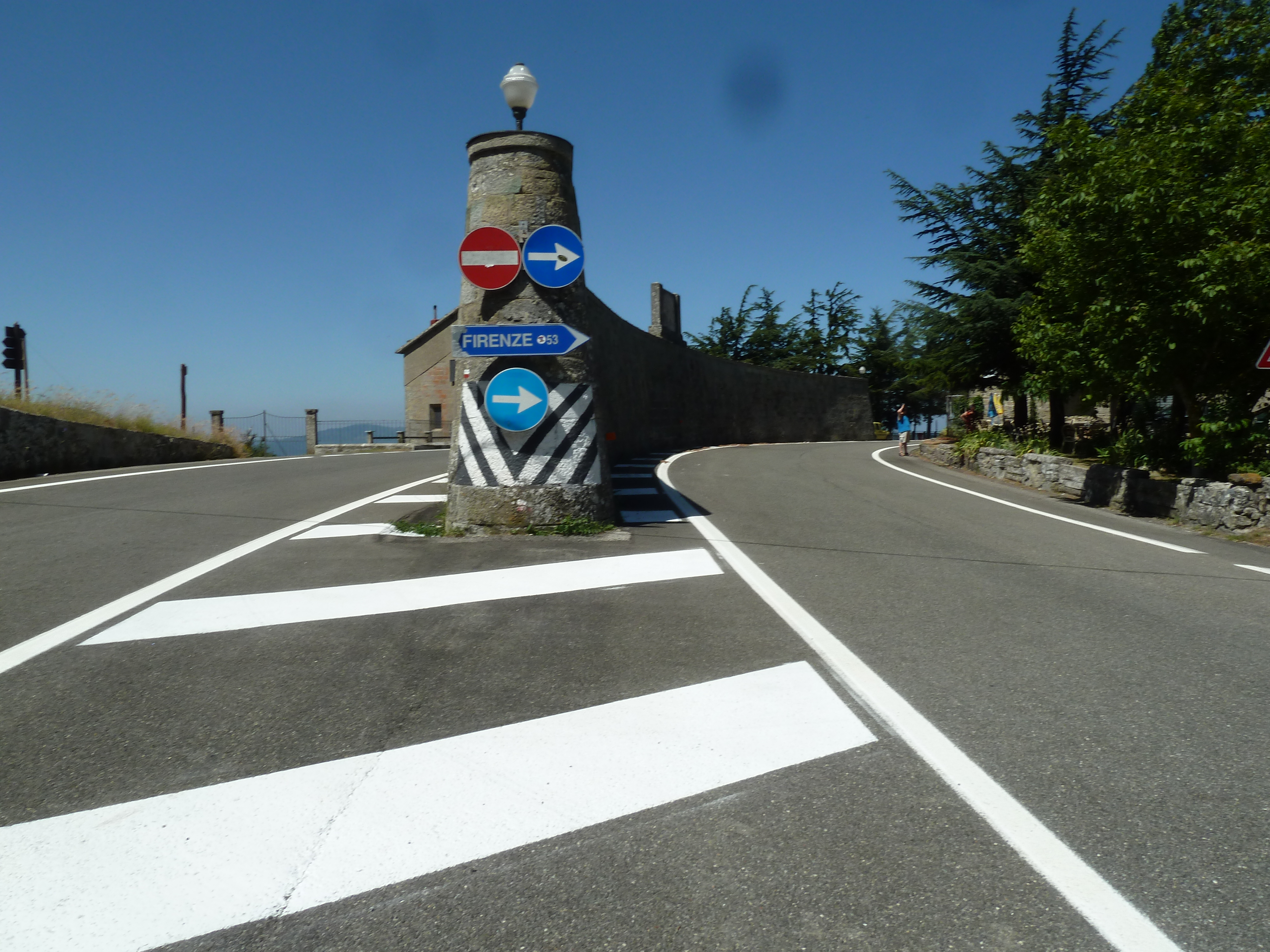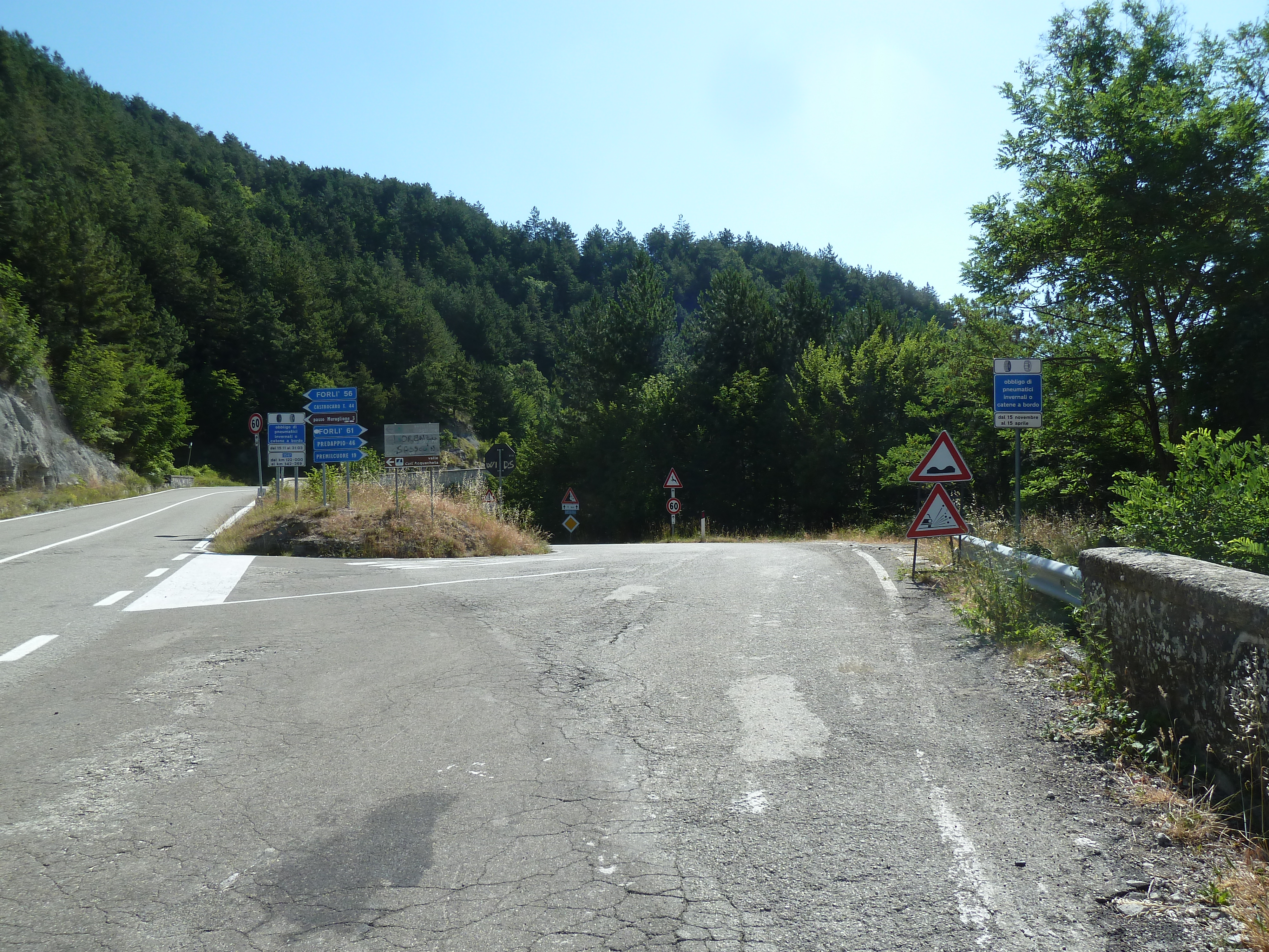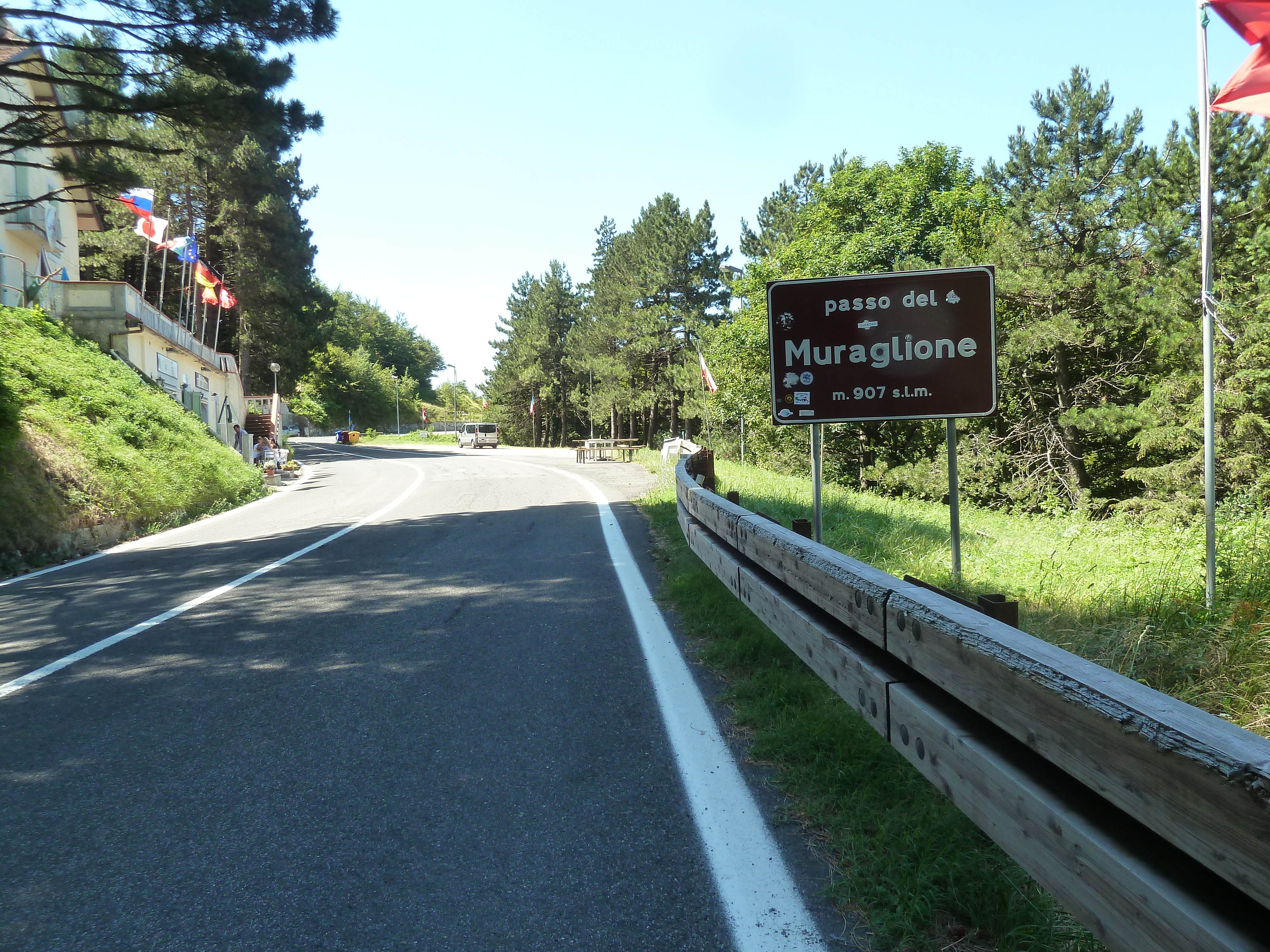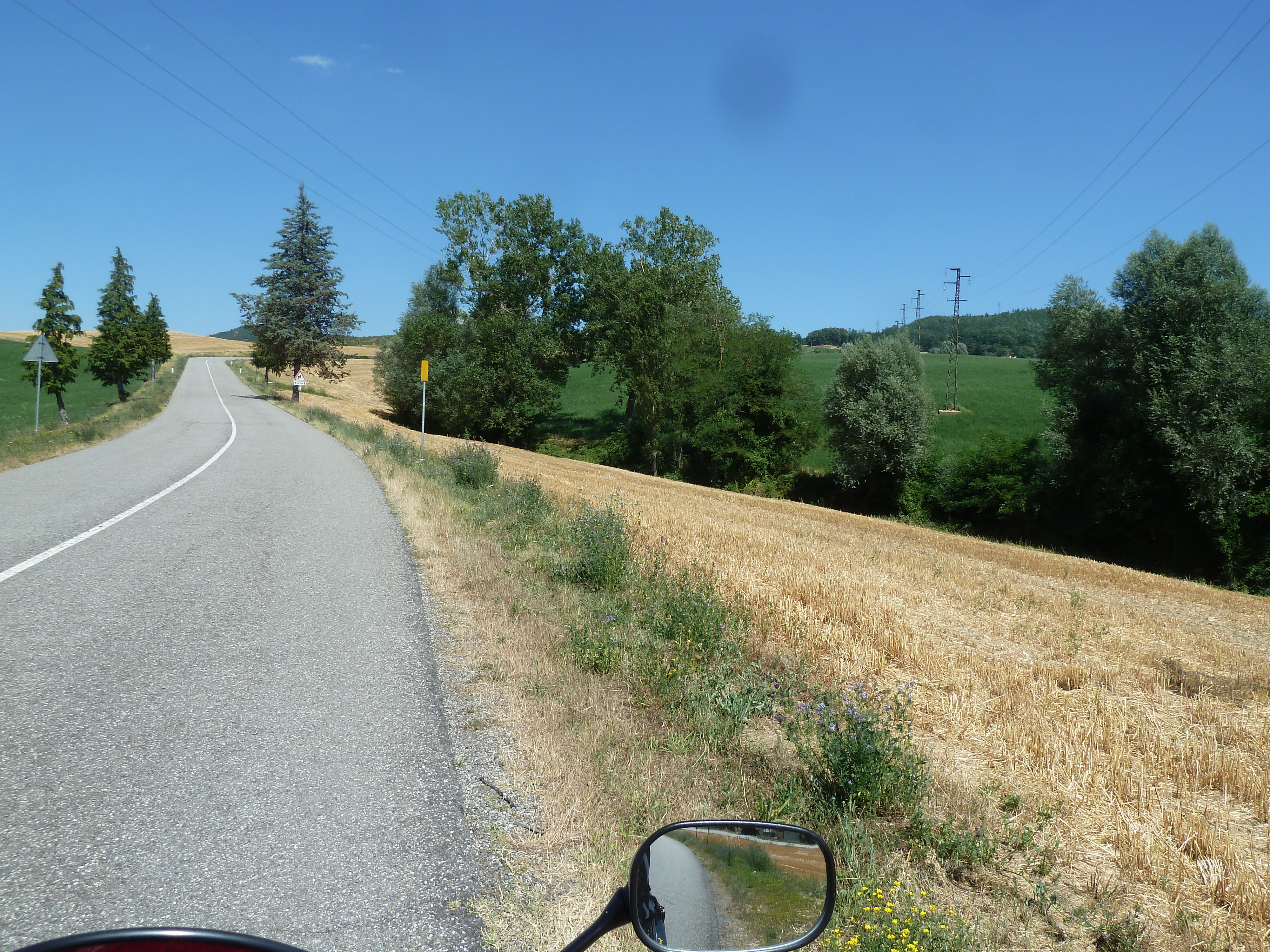 Ci ritempriamo nel fresco di Passolanciano e poi via. La discesa verso Lettomanoppello si apre in una stretta valle molto bella sulla SP 65 ancora segnata sul fianco sinistro dai segni di un incendio di diversi anni fa e con all’orizzonte nella foschia della calura pomeridiana il Gran Sasso ed il Corno Grande. Una tirata verso la valle del Pescara da Scafa a Popoli sulla SS 5 Tiburtina e da lì sempre sulla SS 5 il tratto bellissimo ed ottimamente conosciuto (quest’anno l’avrò fatto 4 o 5 volte!) che da Raiano risale le gole di San Venanzio ed attraverso il valico di Forca Caruso riporta a Collarmele.