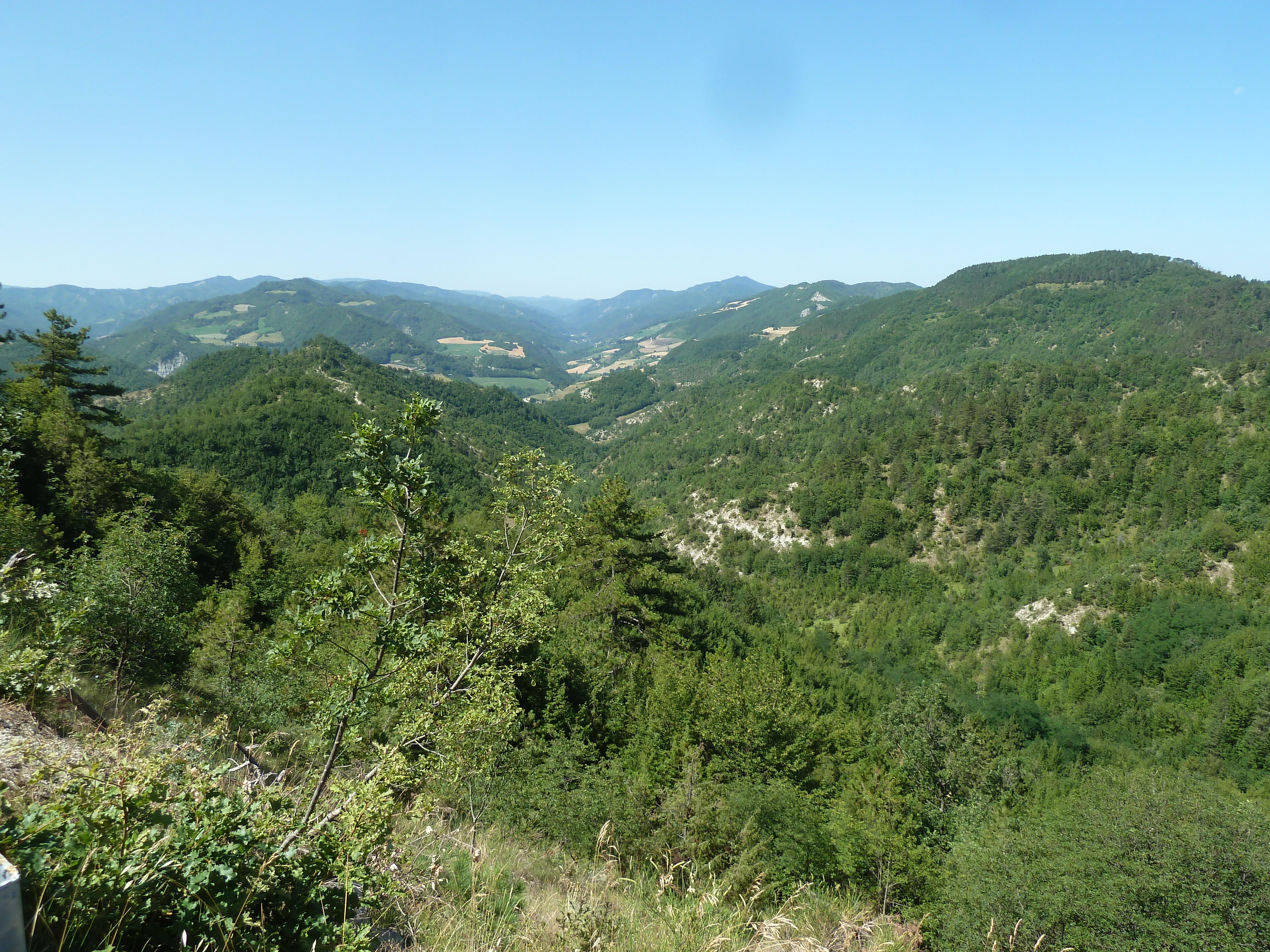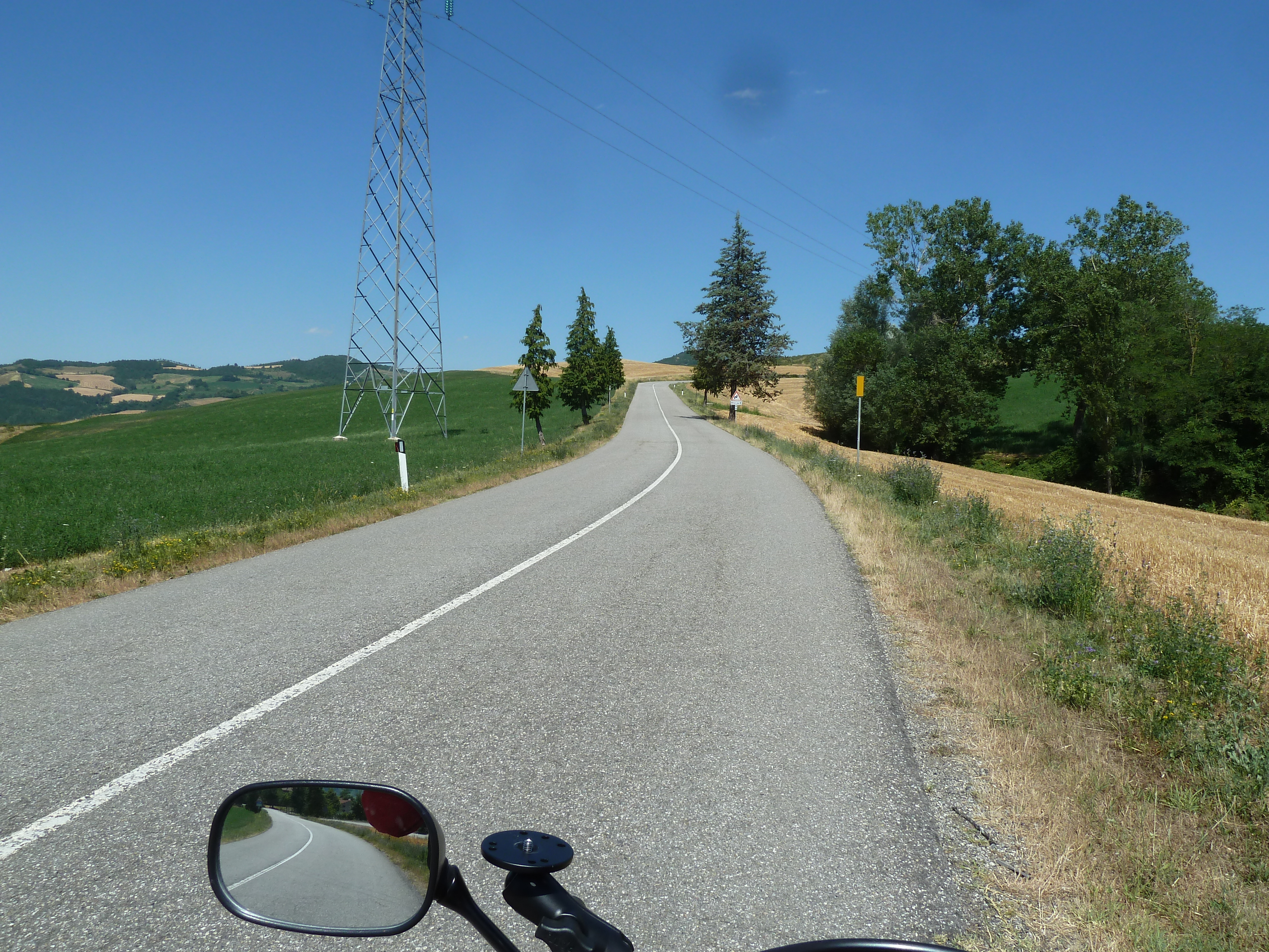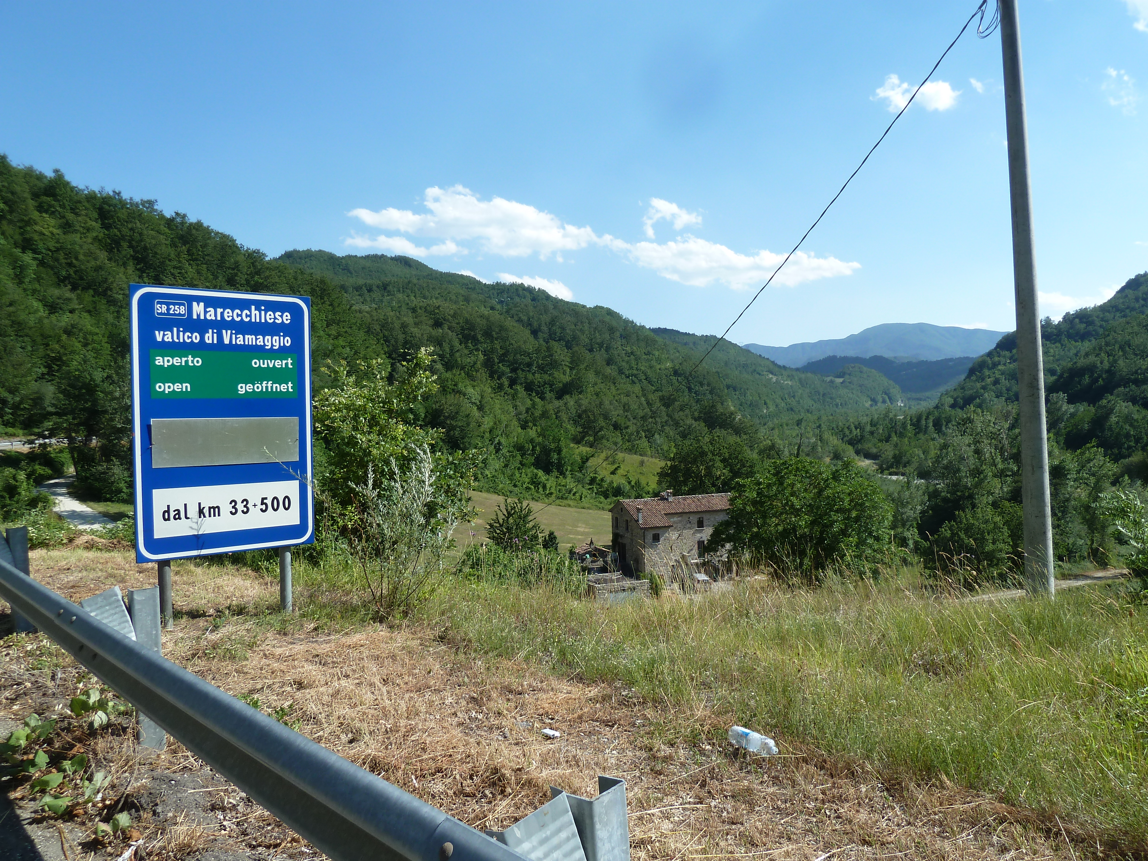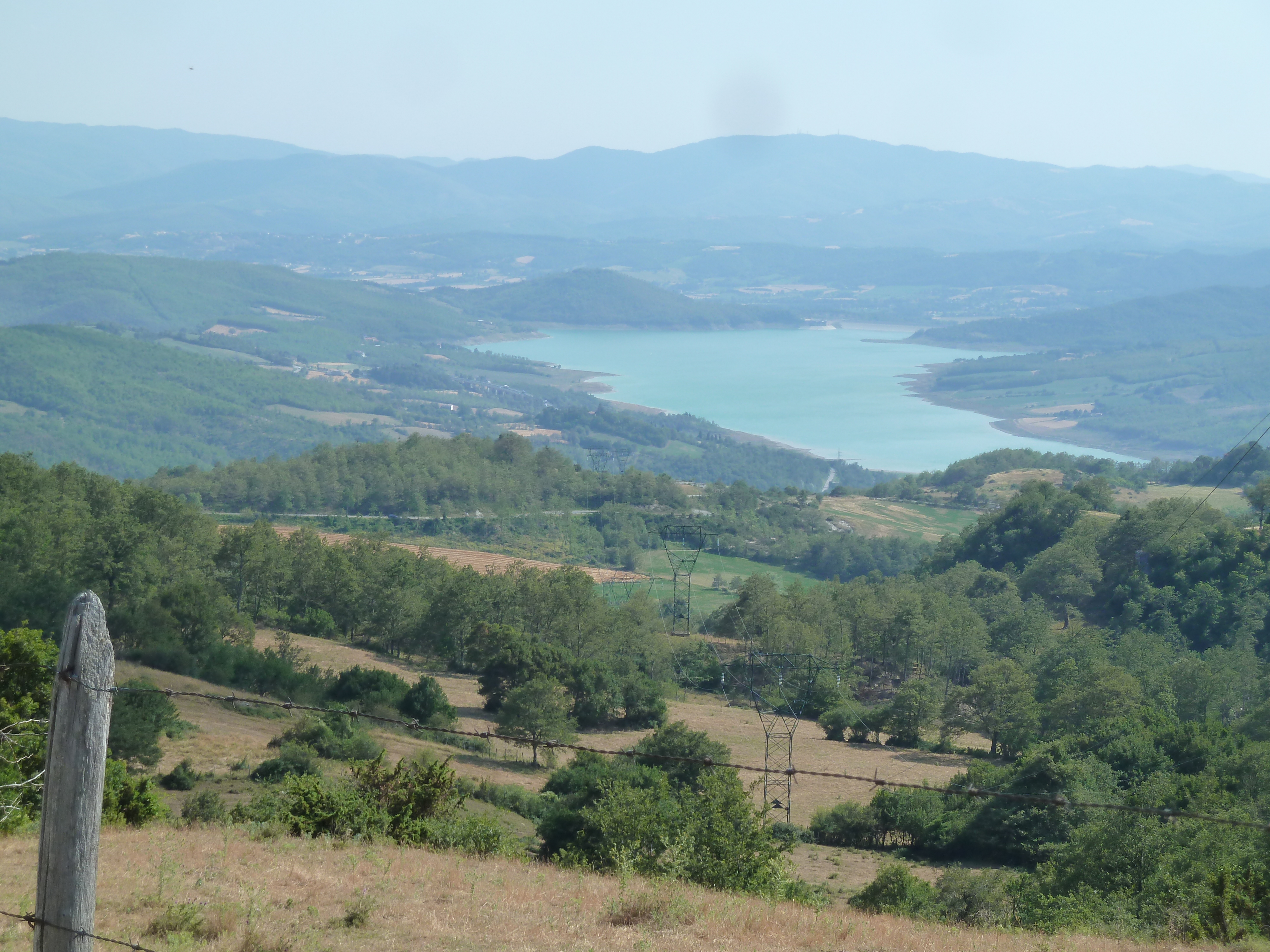 Ci ritempriamo nel fresco di Passolanciano e poi via. La discesa verso Lettomanoppello si apre in una stretta valle molto bella sulla SP 65 ancora segnata sul fianco sinistro dai segni di un incendio di diversi anni fa e con all’orizzonte nella foschia della calura pomeridiana il Gran Sasso ed il Corno Grande. Una tirata verso la valle del Pescara da Scafa a Popoli sulla SS 5 Tiburtina e da lì sempre sulla SS 5 il tratto bellissimo ed ottimamente conosciuto (quest’anno l’avrò fatto 4 o 5 volte!) che da Raiano risale le gole di San Venanzio ed attraverso il valico di Forca Caruso riporta a Collarmele.