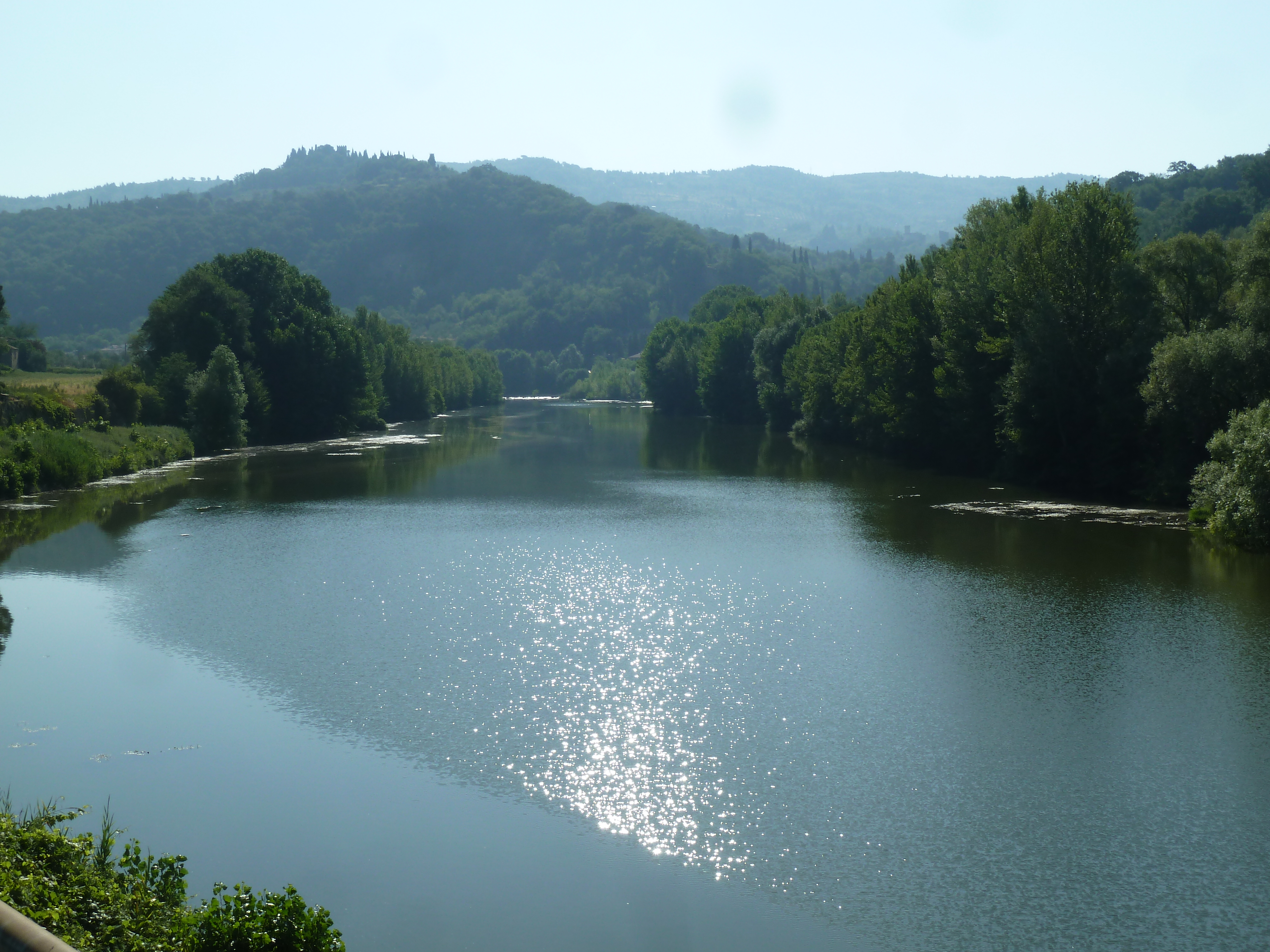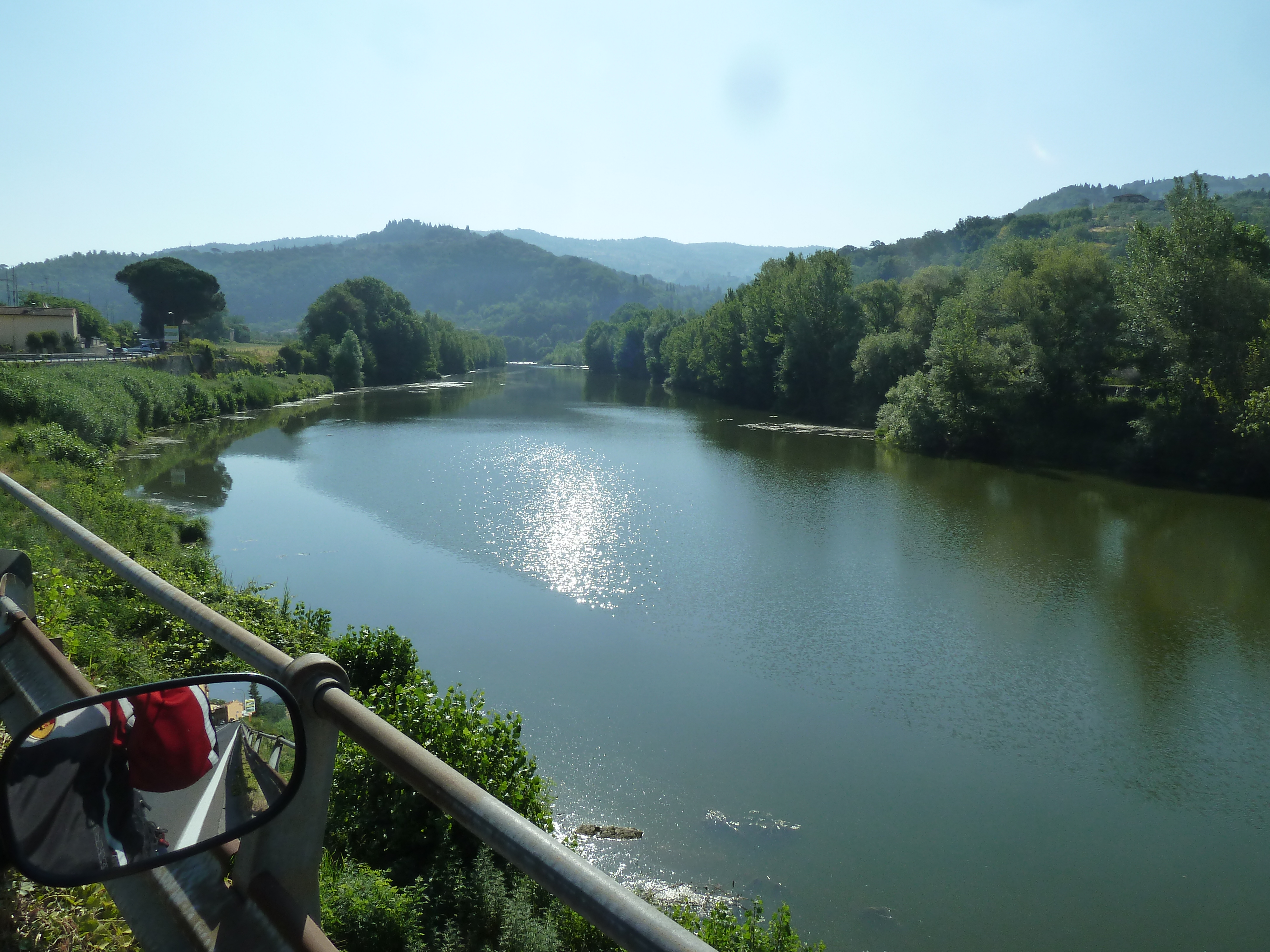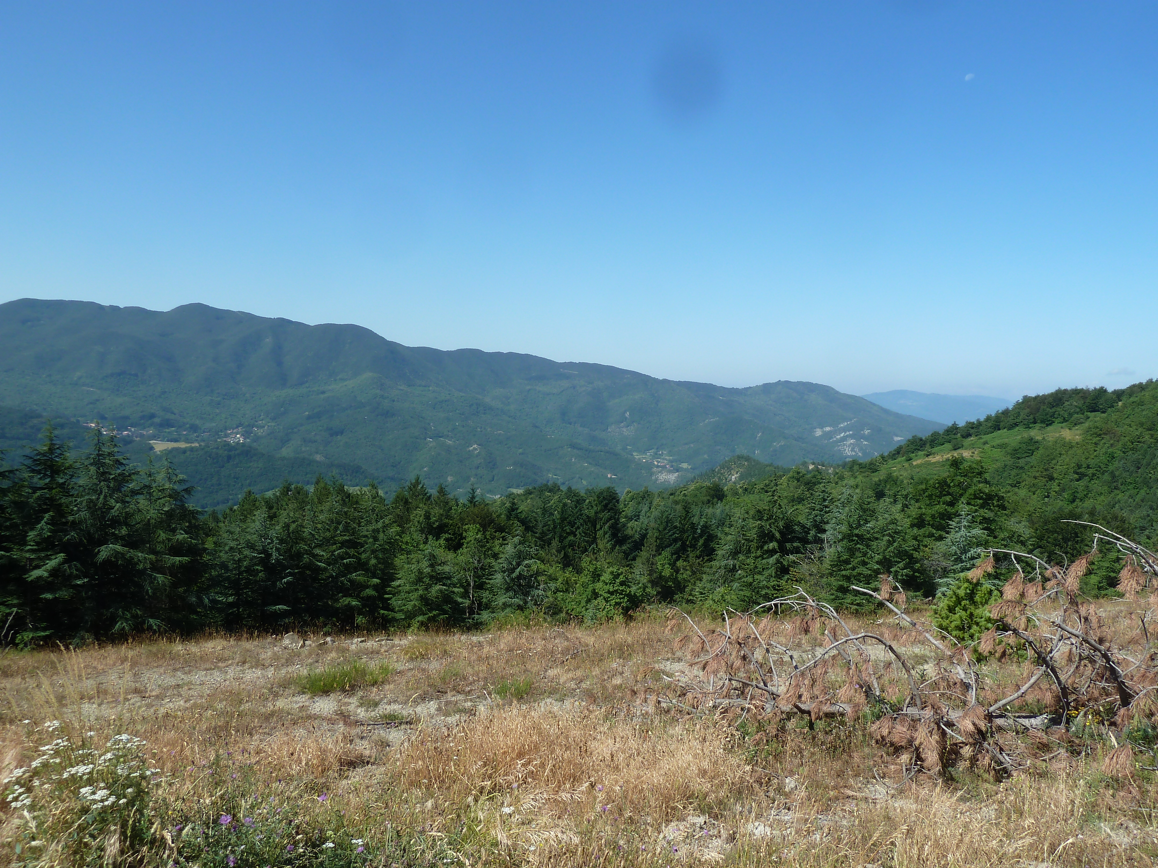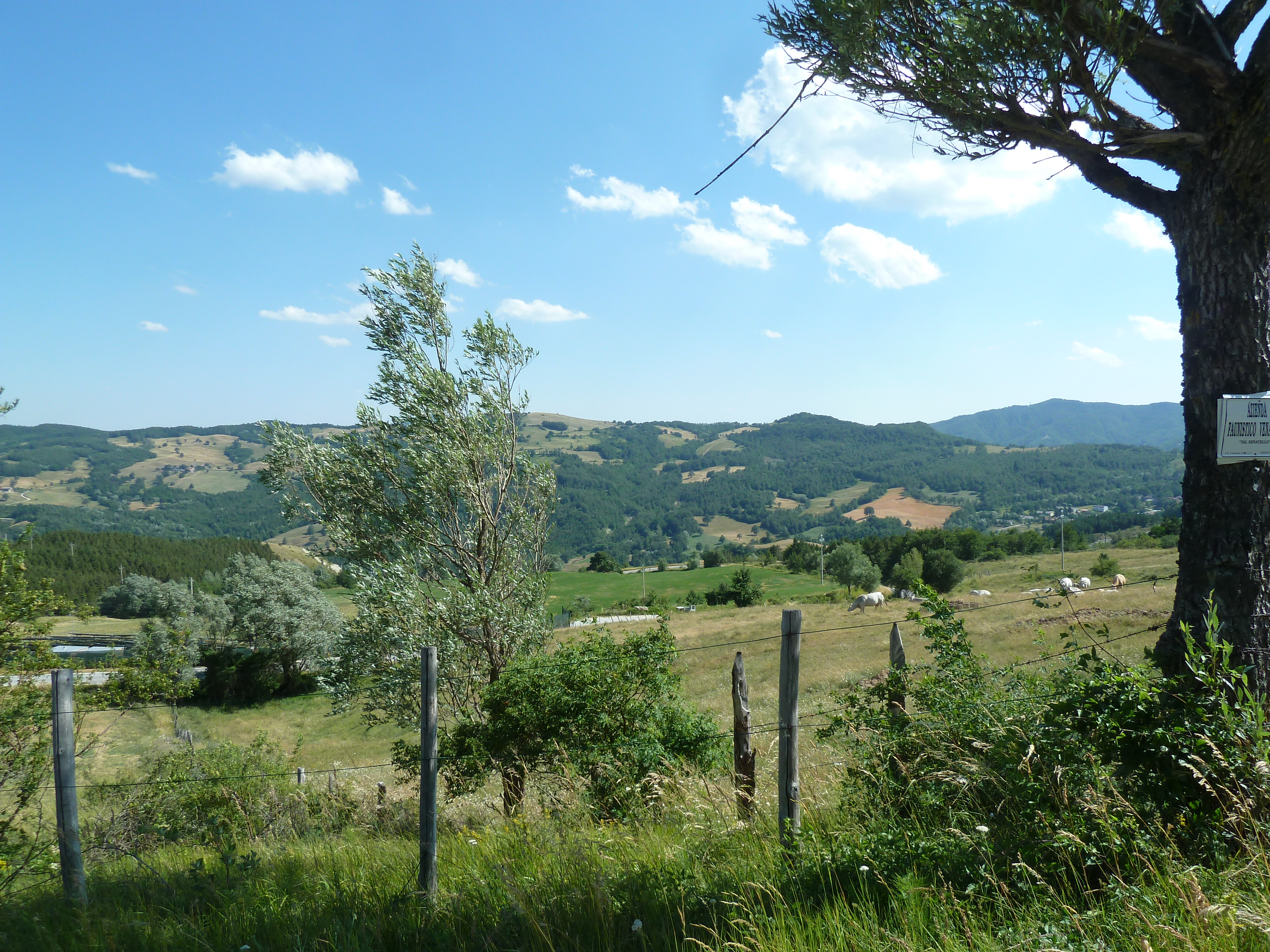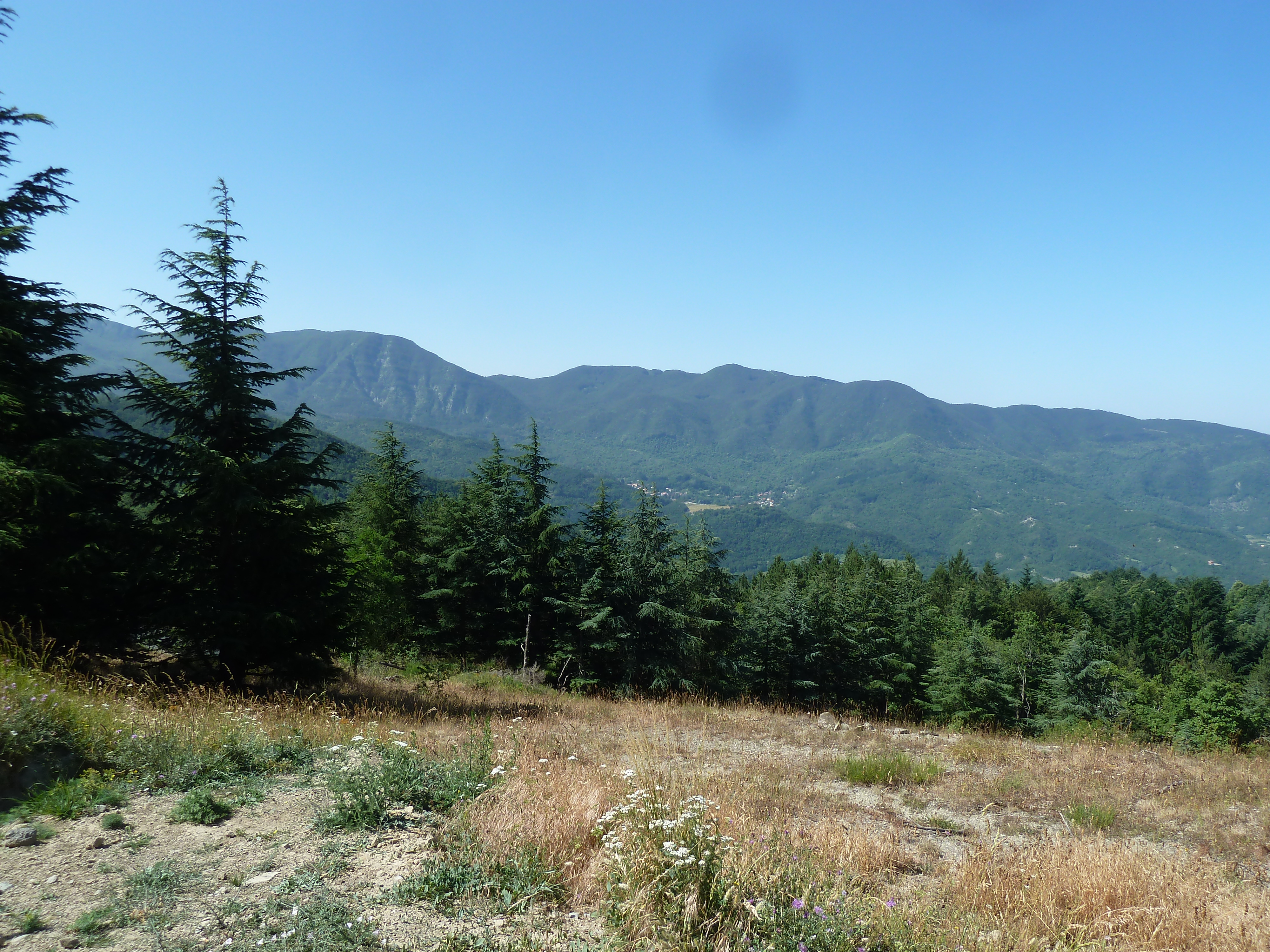 Ci ritempriamo nel fresco di Passolanciano e poi via. La discesa verso Lettomanoppello si apre in una stretta valle molto bella sulla SP 65 ancora segnata sul fianco sinistro dai segni di un incendio di diversi anni fa e con all’orizzonte nella foschia della calura pomeridiana il Gran Sasso ed il Corno Grande. Una tirata verso la valle del Pescara da Scafa a Popoli sulla SS 5 Tiburtina e da lì sempre sulla SS 5 il tratto bellissimo ed ottimamente conosciuto (quest’anno l’avrò fatto 4 o 5 volte!) che da Raiano risale le gole di San Venanzio ed attraverso il valico di Forca Caruso riporta a Collarmele.