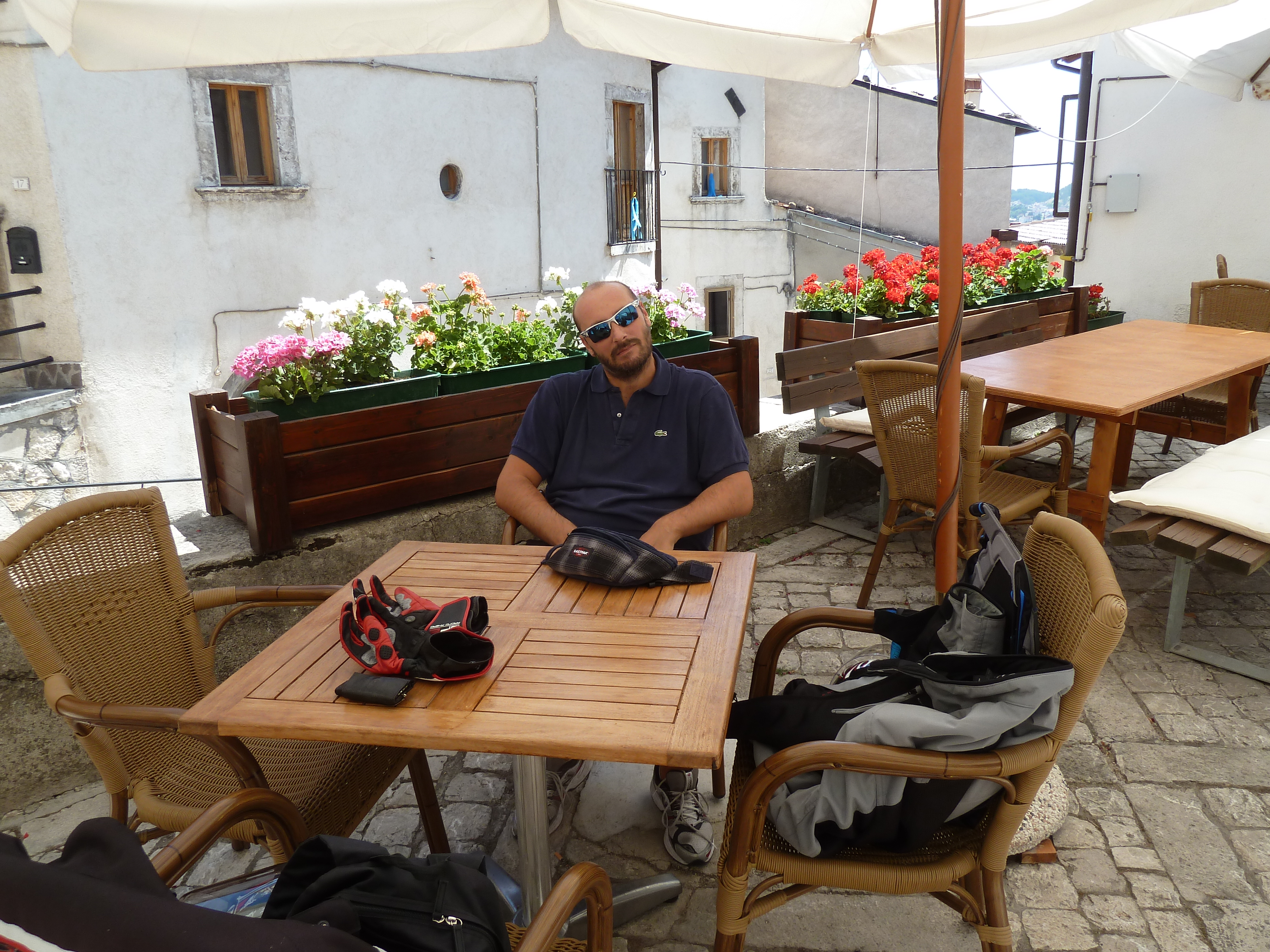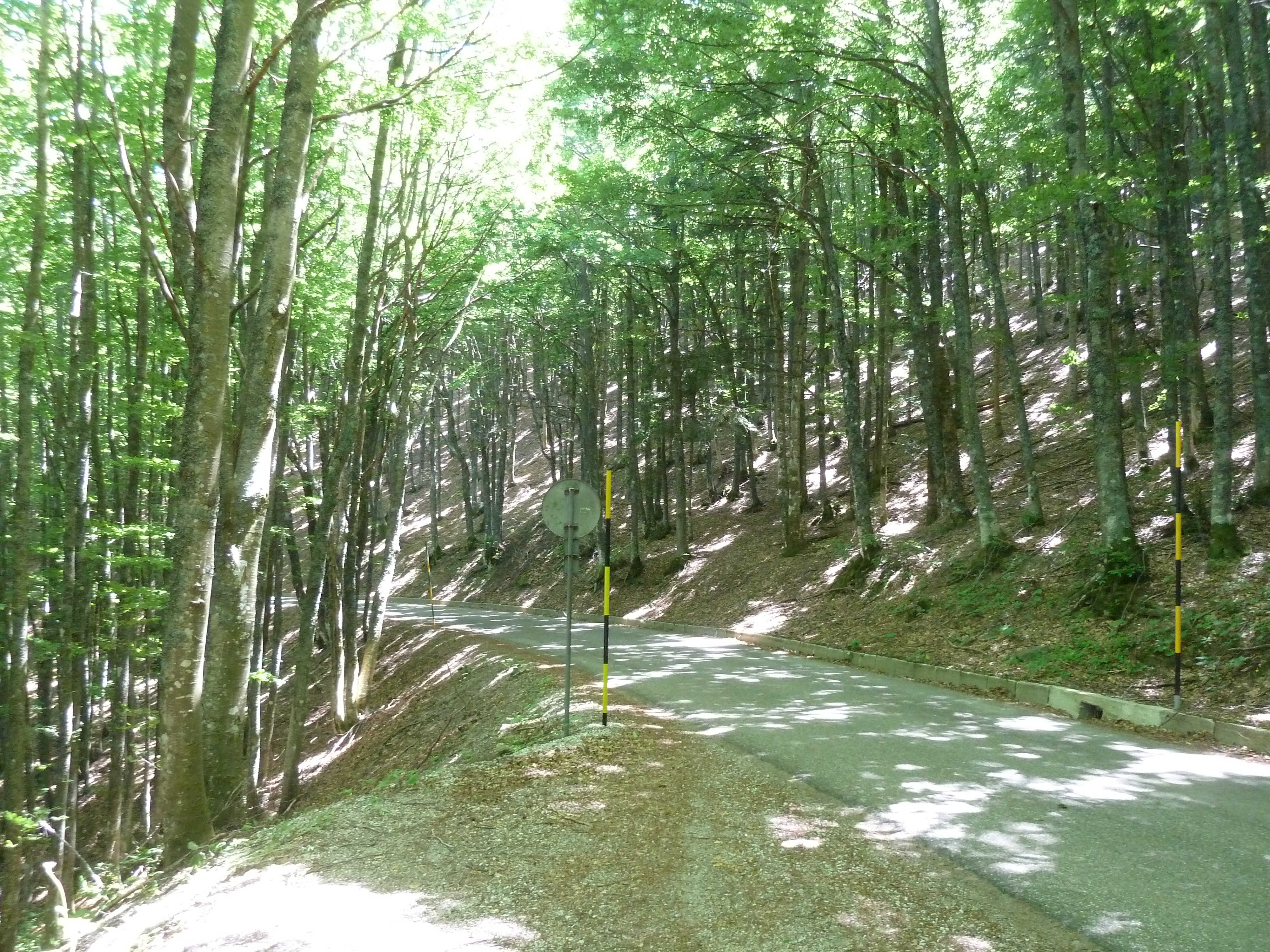 Un caffè ed una bibita ristoratrice soprattutto dopo aver attraversato Isernia sotto il sole si parte verso nord, verso la Maiella…o quasi. Come predetto la SS 17 ci porta velocemente ed in maniera divertente verso la Val di Sangro che percorriamo fino ad Ateleta (ad est del fiume quanto basta per stare in provincia de l’Aquila) perché ho voluto rifare al contrario una strada fatta non molto tempo fa dopo aver seguito incuriosito un gruppo di motociclisti di Chieti. Divertente salita nel bosco che sbuca ad est di Roccaraso.
