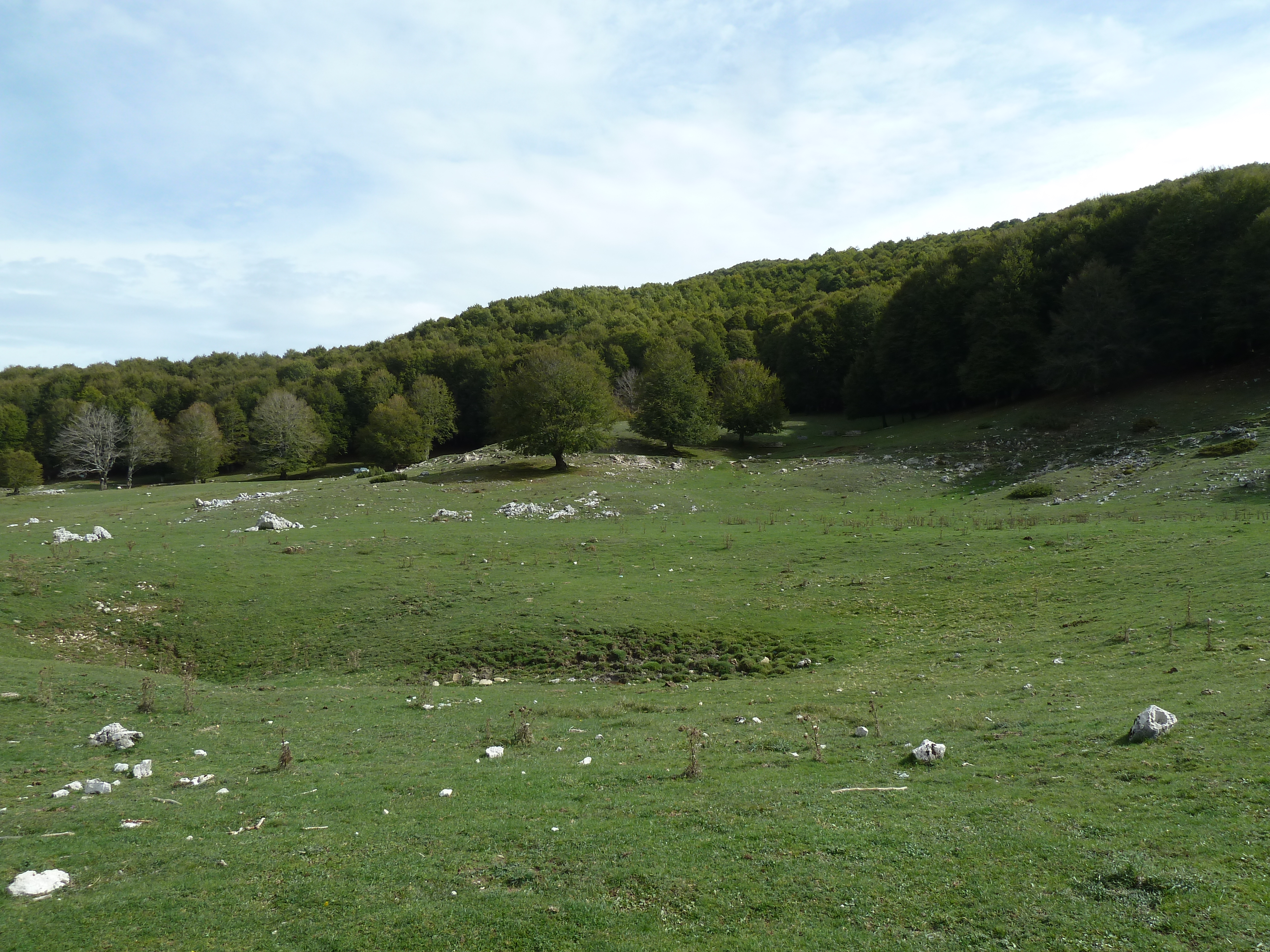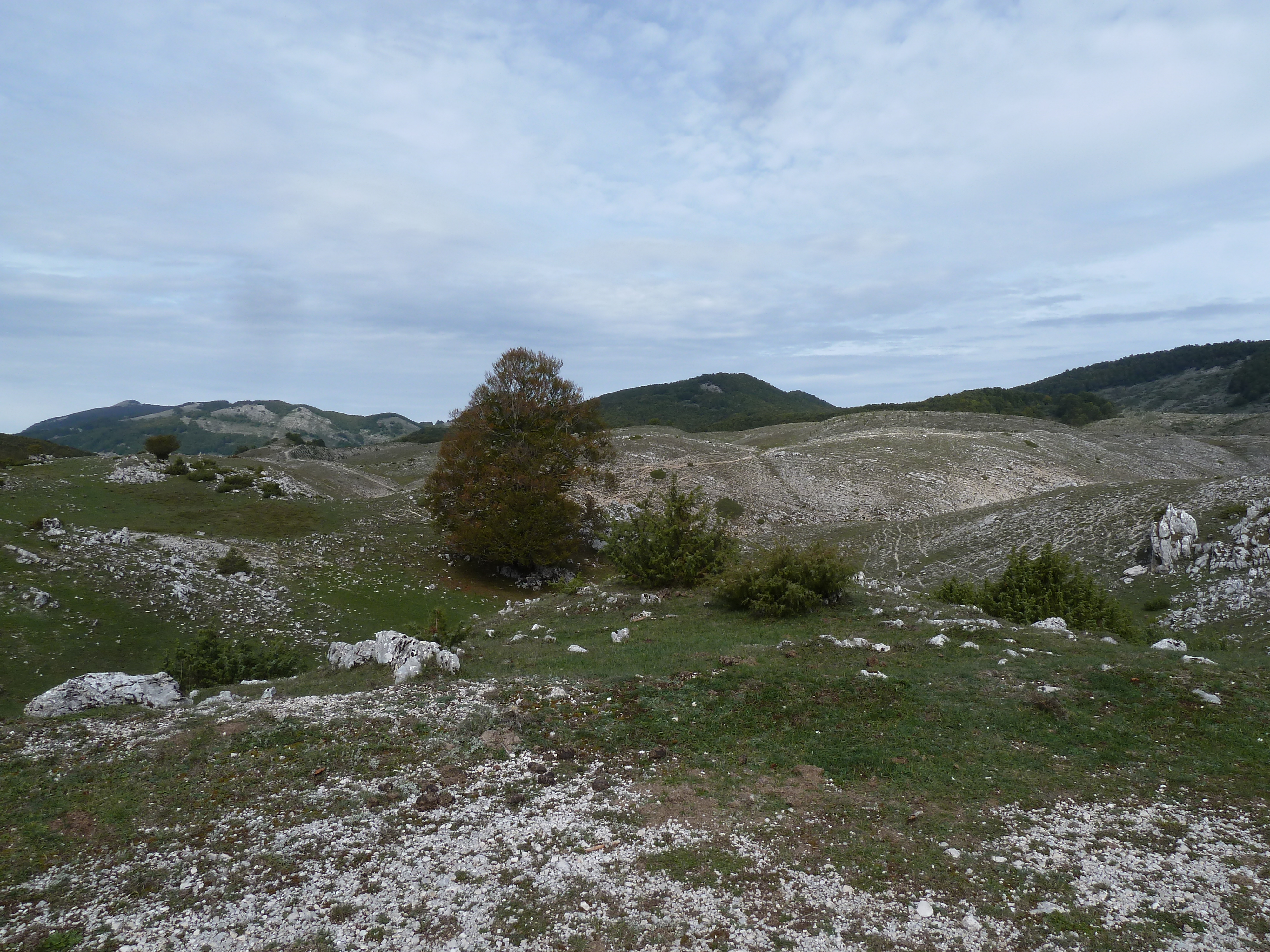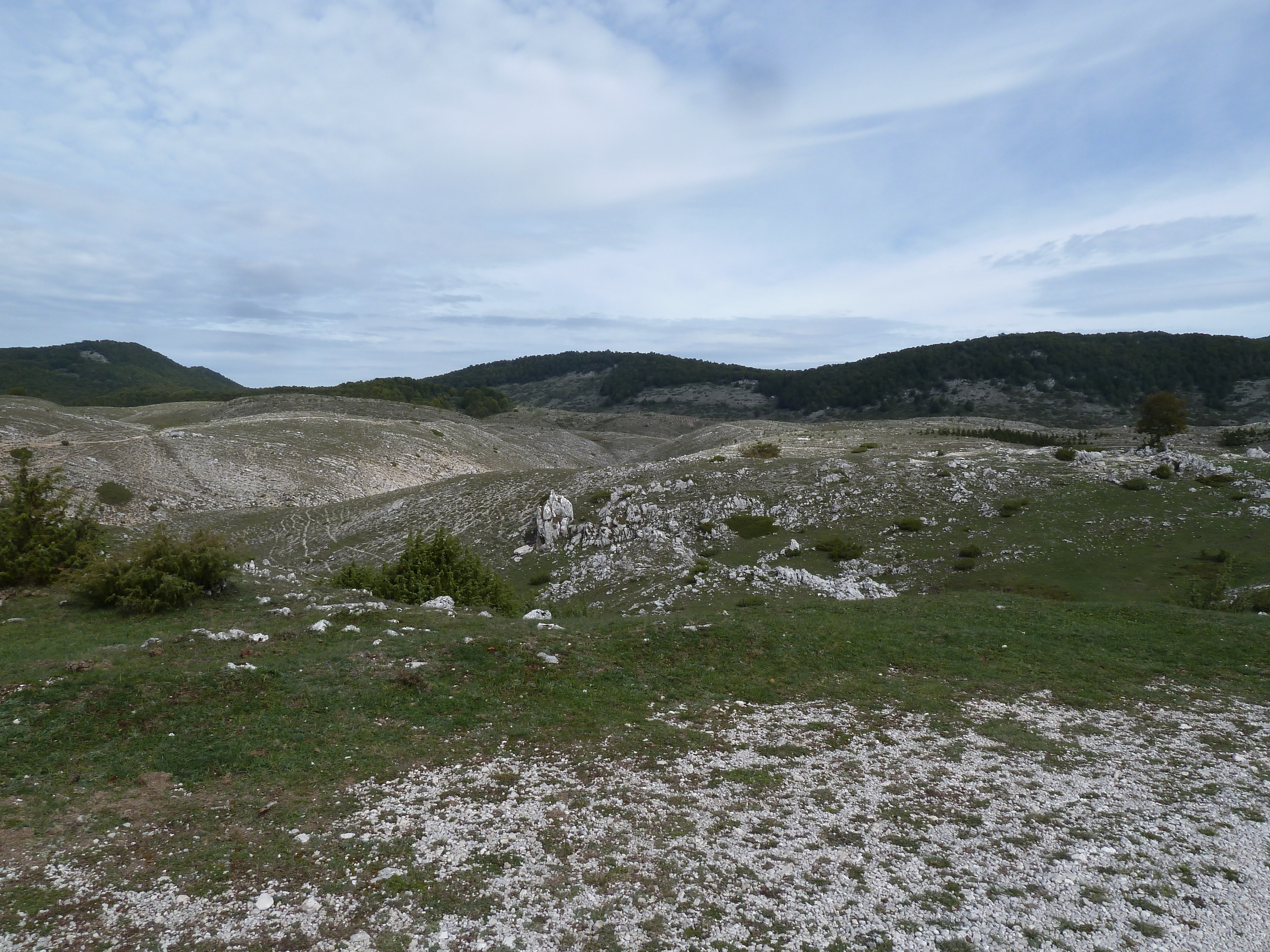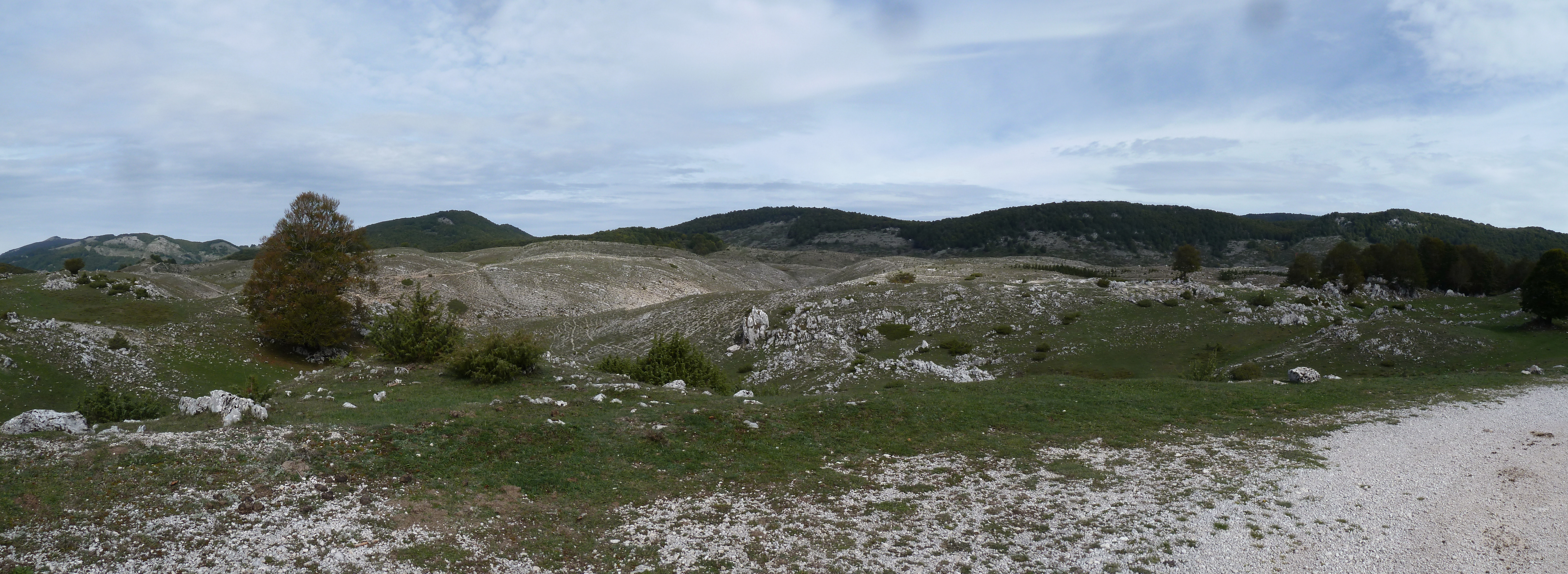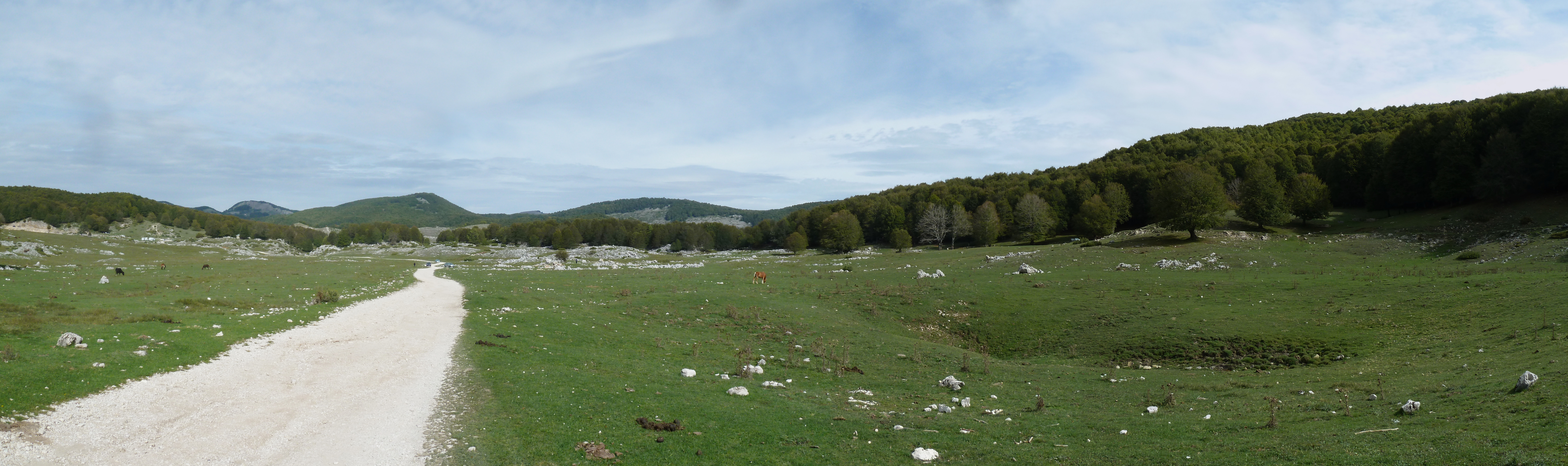 Il tratto iniziale della strada passa in quota ed offre scorci molto belli verso i Simbruini e dopo aver superato un santuario (oggi c’era una ressa di persone e macchine che inizialmente c’ha fatto temere che la strada fosse chiusa!) inizia la strada bianca. Classico paesaggio appenninico d’altopiano molto bello ed il gusto di percorrere la strada bianca a tratti parecchio dissestata è comunque sempre interessante a provarsi!