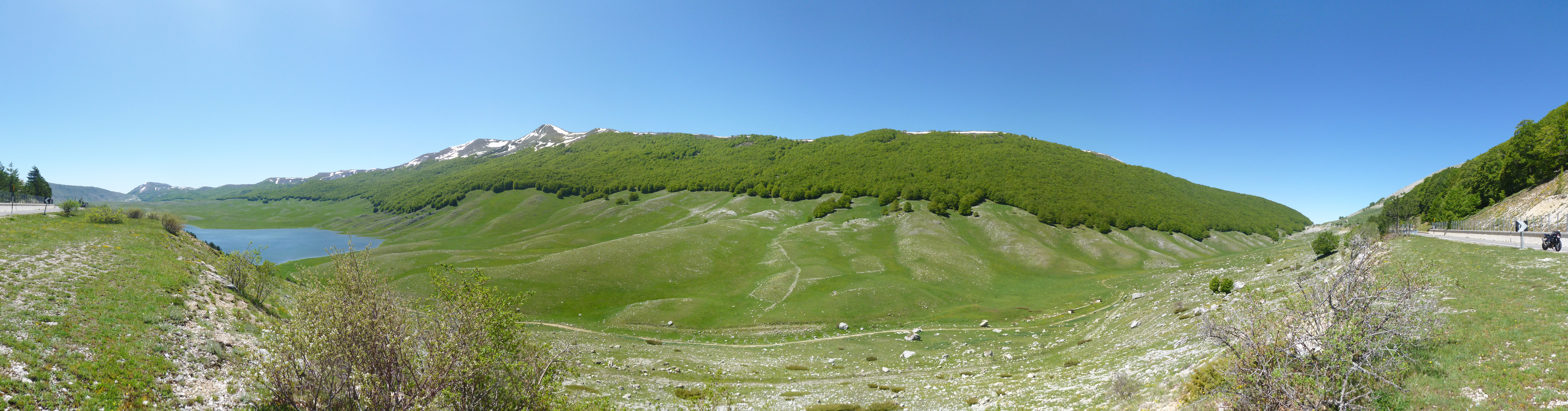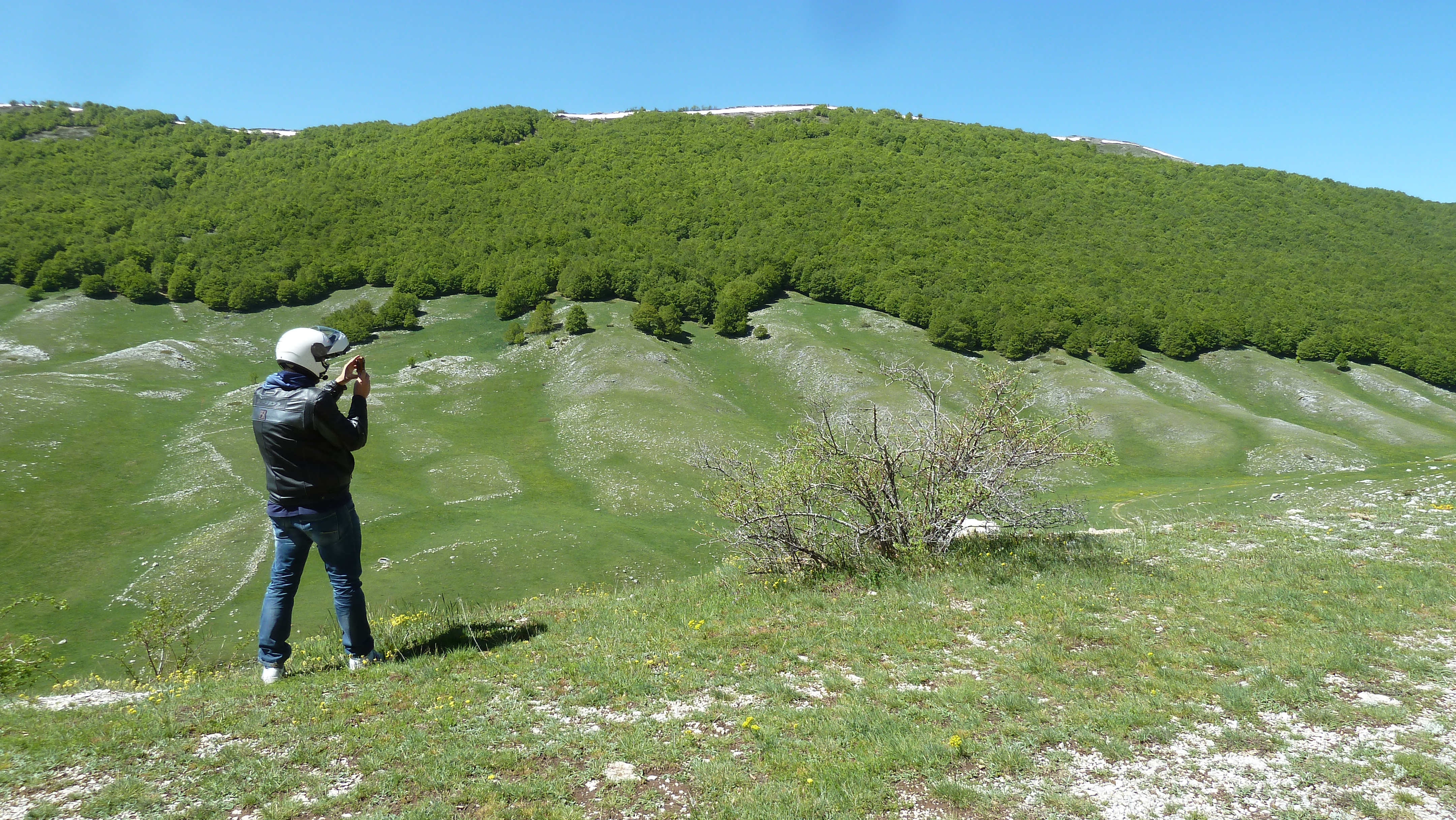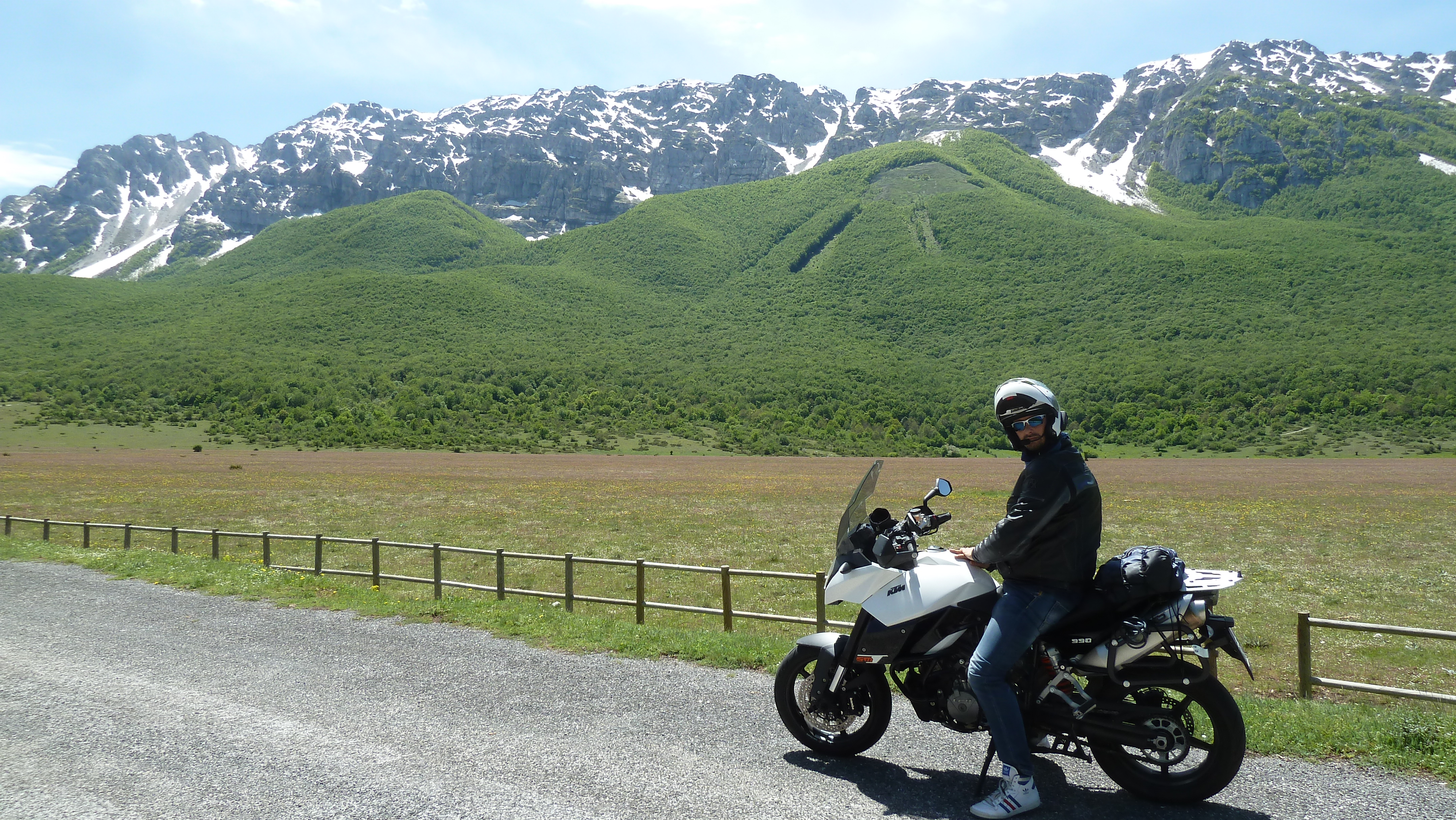Ma la fortuna più grande la gran bella giornata, l’ottima compagnia di sempre e le strade abruzzesi sempre belle da percorrere in moto e con i soliti scorci di paesaggi appaganti. Oggi poi il verde fresco dei prati e dei boschi di primavera rendeva tutto più vivido.