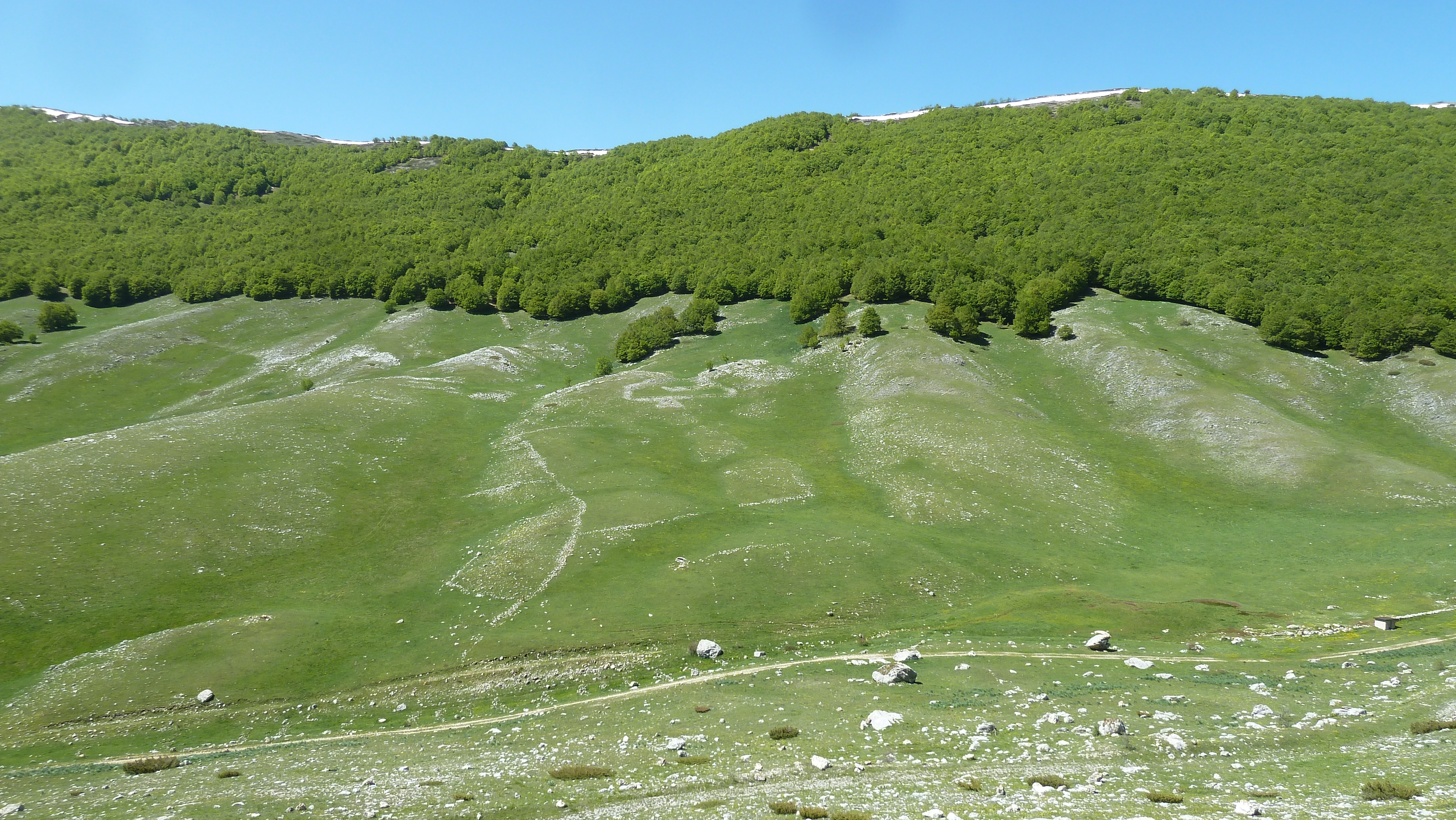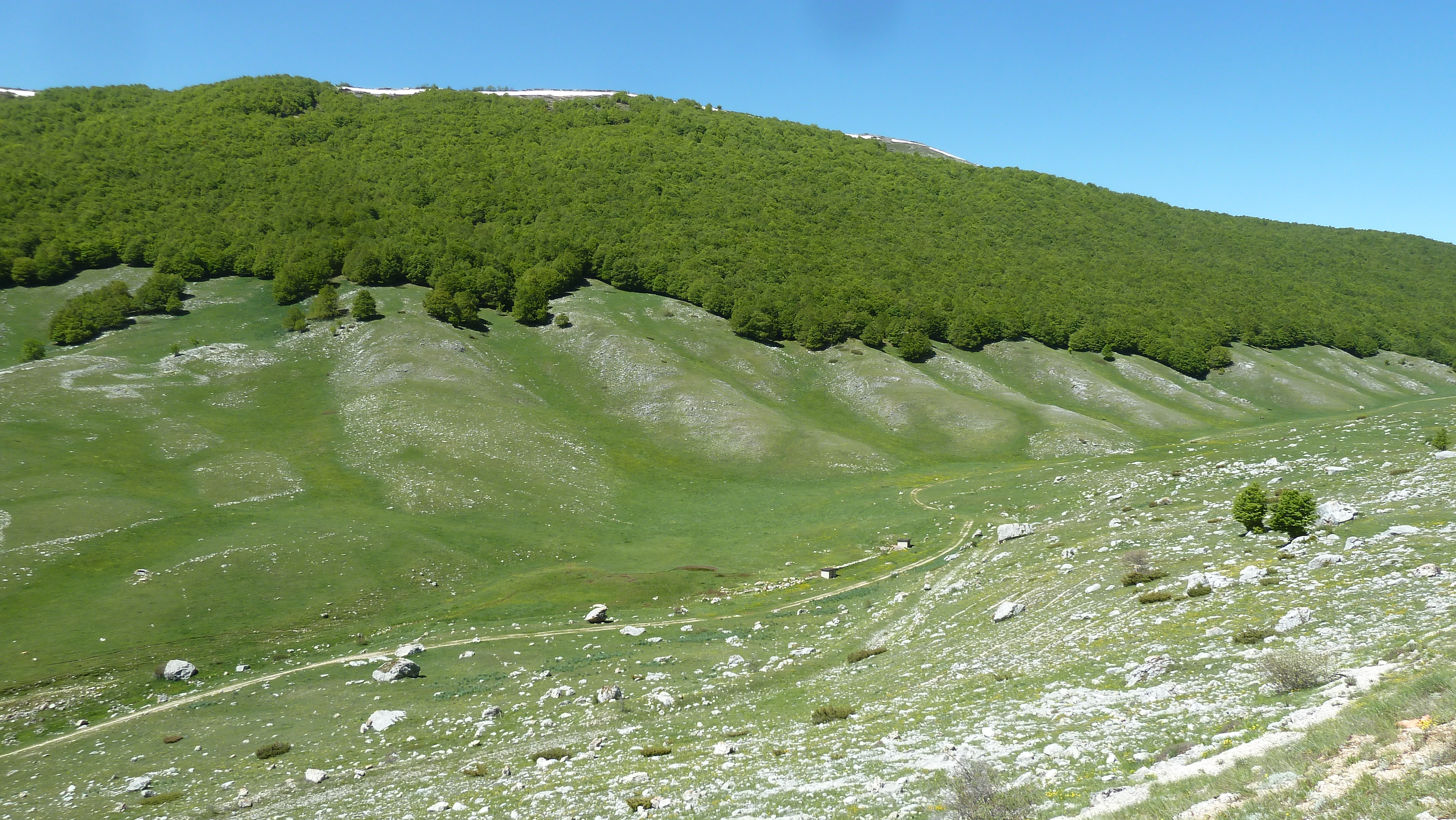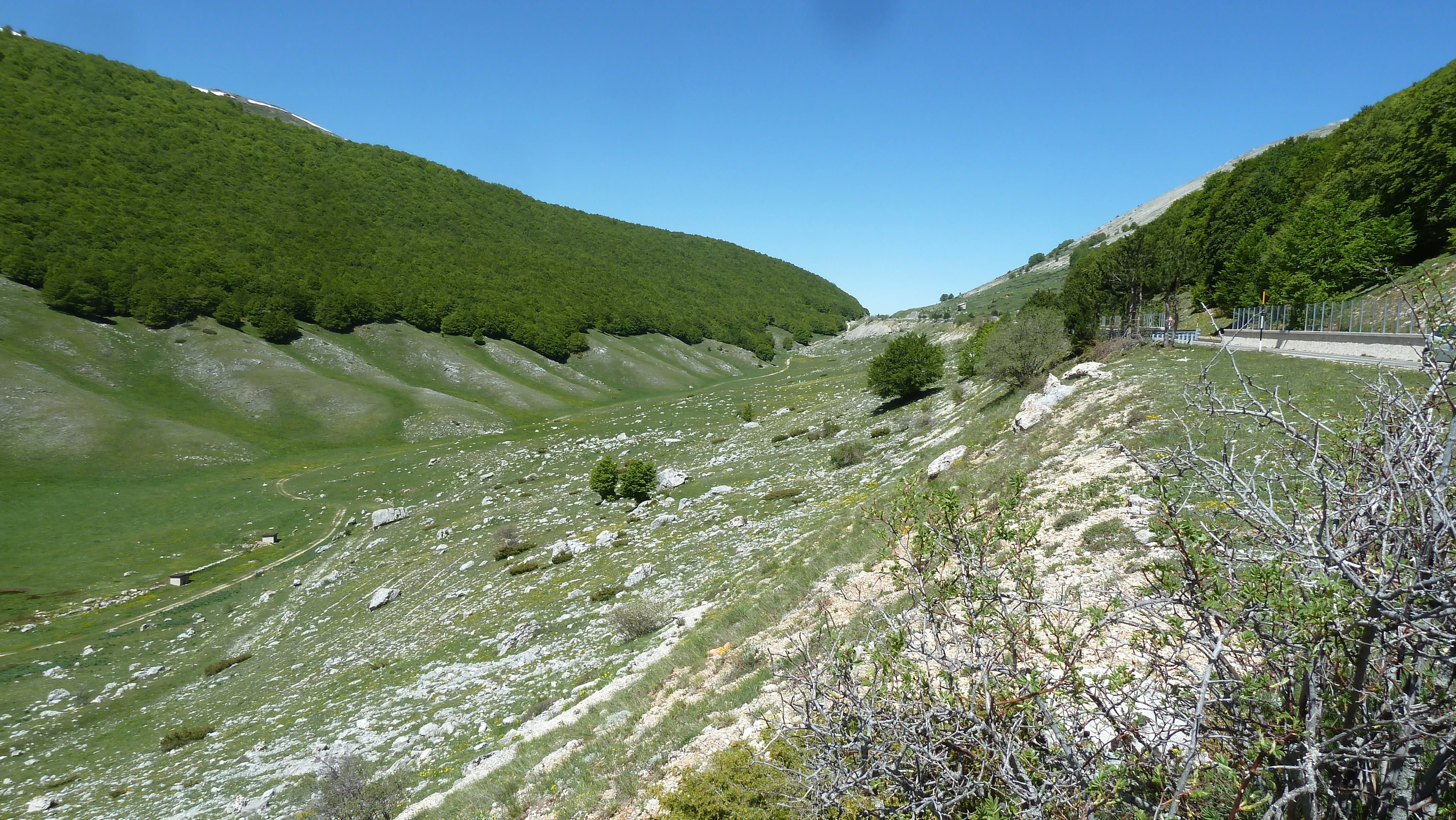Ma la fortuna più grande la gran bella giornata, l’ottima compagnia di sempre e le strade abruzzesi sempre belle da percorrere in moto e con i soliti scorci di paesaggi appaganti. Oggi poi il verde fresco dei prati e dei boschi di primavera rendeva tutto più vivido.