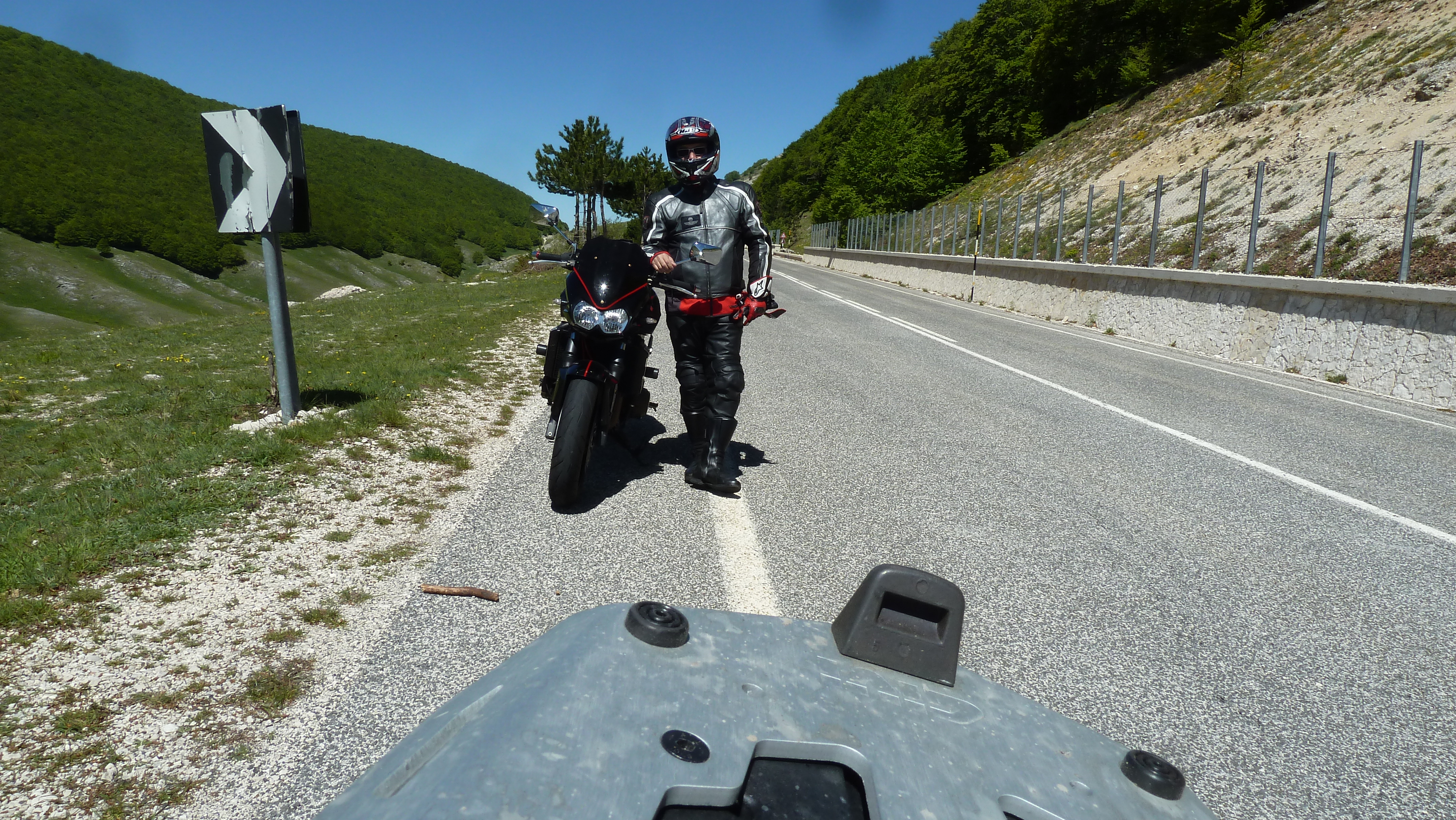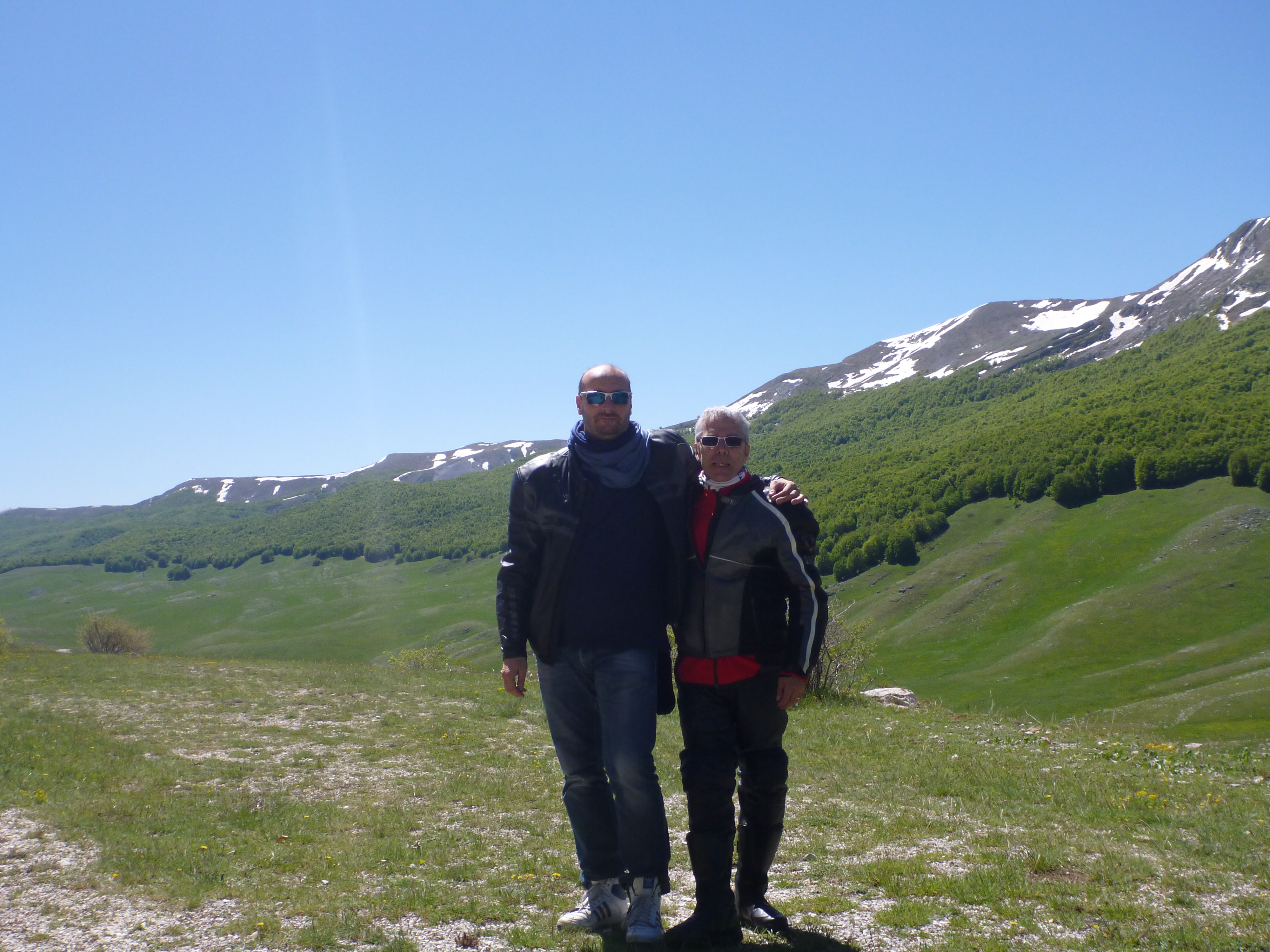 Il primo dopo aver scattato qualche he fotografia dalle tra Rocca di Cambio e Rocca di Mezzo Alberto dimentica la macchinetta fotografica poggiata sul portapacchi della sua moto, riparte, percorre qualche km, accosta di colpo ricordandosene e l’oggetto era ancora lì: fortunatamente non era caduto!