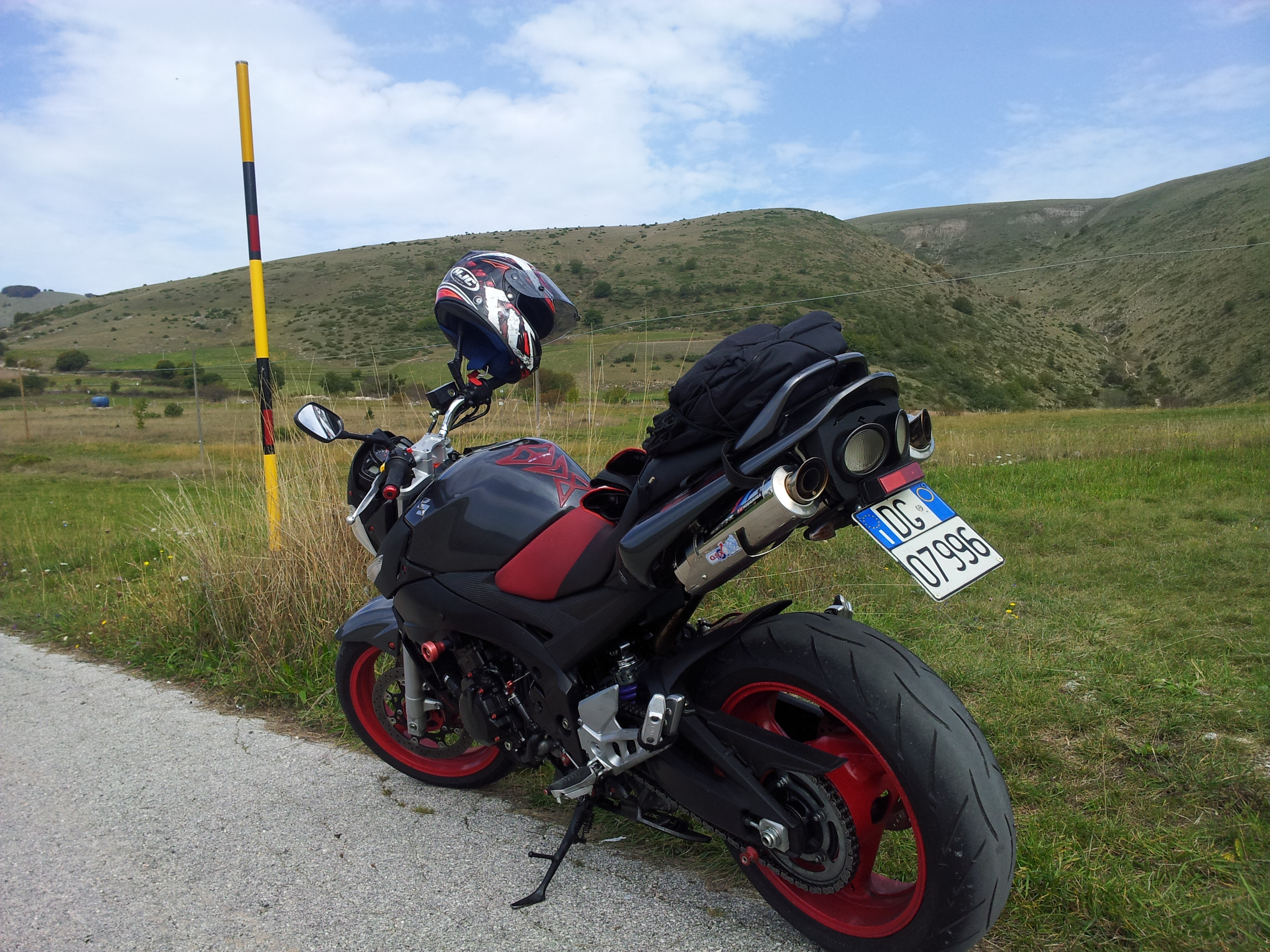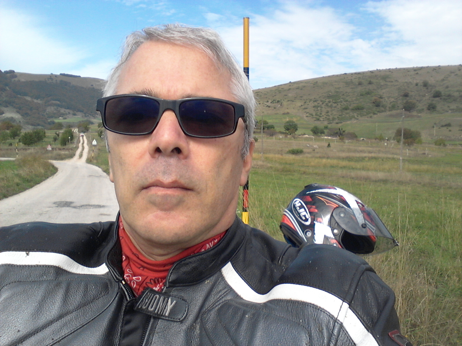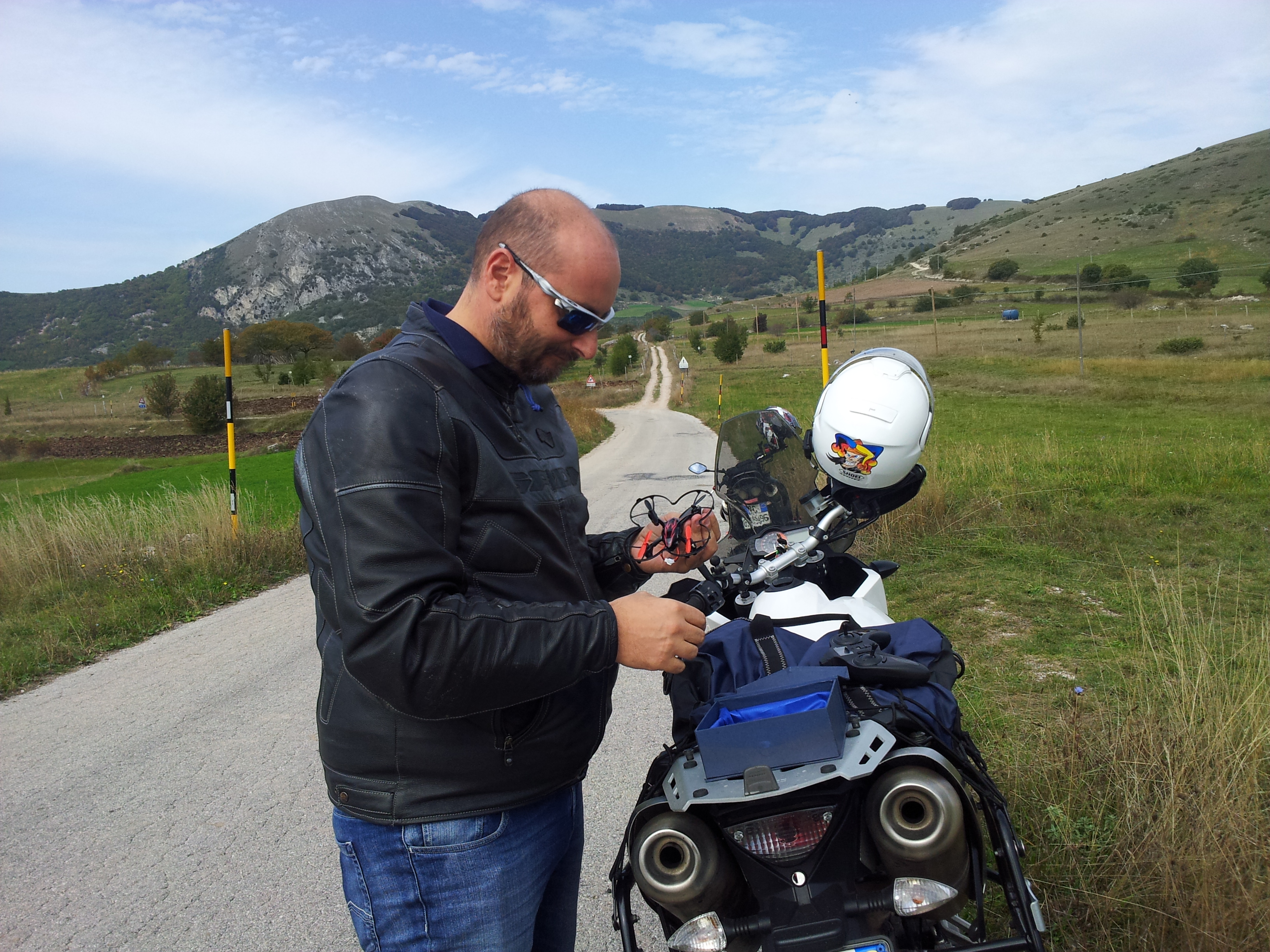 Al bivio di Leonessa si punta a Nord lungo la bella strada di fondovalle del fiume Corno che a tratti si infila in strette gole fino a Cascia e poi su ancora a Norcia. Al bivio con la SS 209 della Valnerina avremmo dovuto prendere a sinistra per un paio di km e da Cerreto di Spoleto fare la cosiddetta “Sellanese” fino alla SS 77 Foligno-Colfiorito ma…sarà per la prossima volta! L’errore di andare comunque verso Visso ci ha consentito di scoprire una strada piuttosto improbabile e scassatella, per un paio di km bianca, che ci ha portato su un altopiano molto bello tra la Valnerina ed il paese di Colfiorito e che, inoltre, ci ha fornito una spazio erboso adatto a provare il mini drone che Alberto aveva portato! In attesa del video delle riprese c’è questo. Della serie io ed Alberto un po’ di fuori strada ce lo facciamo sempre!