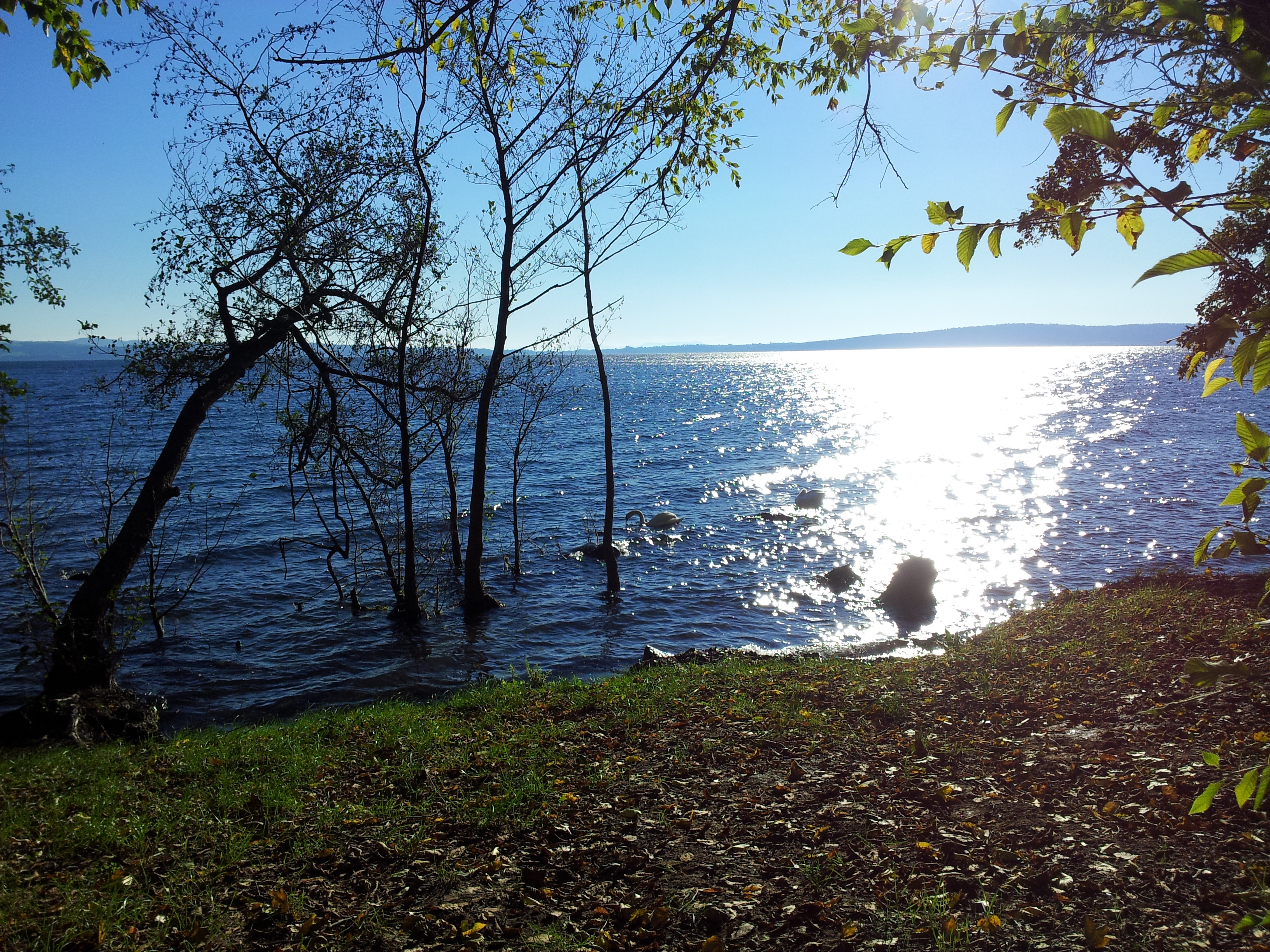Via ancora lungo la SS 77 fino al bivio che sale rapidamente fino a Camerino (due vigilesse con aria annoiata e paletta in mano con l’aria di volerci fermare…non l’hanno fatto!) ed ancora a nord fino al bivio della famosa “septempedana” che da Pioraco e Fiuminata ci porta fino Nocera Umbra e ancora giù, senza fermarsi se non per dare una rapida occhiata alla carta stradale, Foligno, Bevagna, Montefalco, Bastardo, Todi e, dopo tantissimo tempo, la mitica strada che costeggia il lago di Corbara! Una vera palestra per motociclisti! Larga, ottimamente asfaltata, curve veloci ad ampio raggio intervallate da altre più corte e divertenti. E tra l’altro offre scorci molto belli su questo tratto della valle de Tevere che qui devia decisamente verso sud ovest lasciando l’Umbria per percorrere l’ultimo tratto tutto nel Lazio.