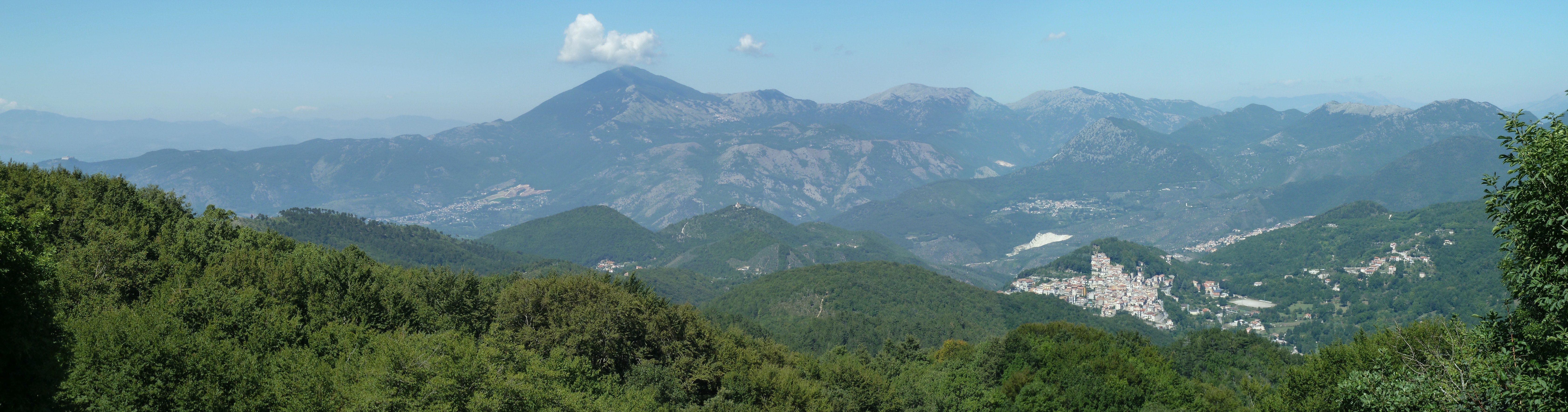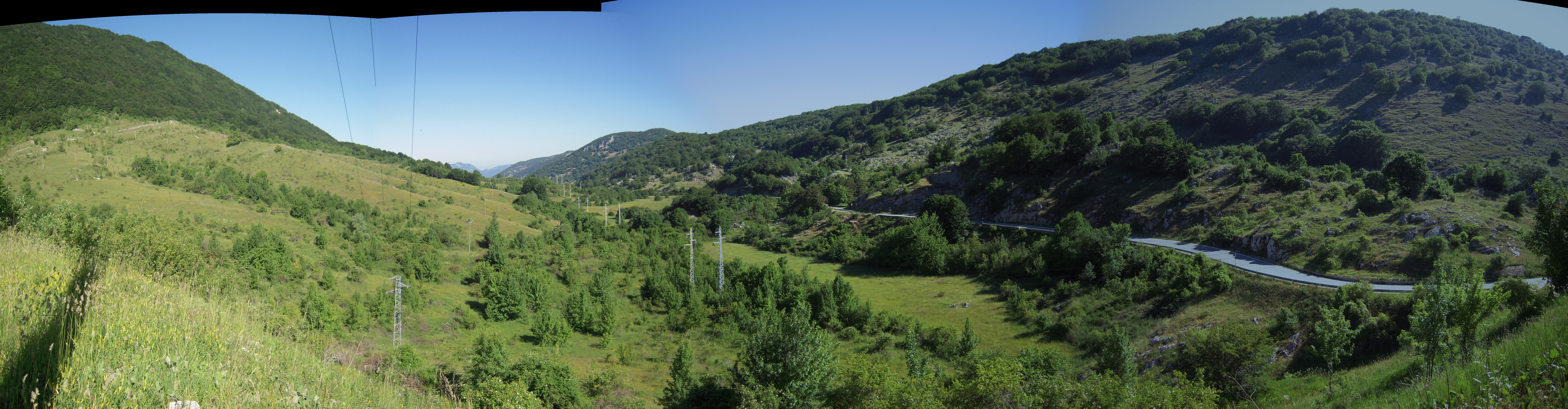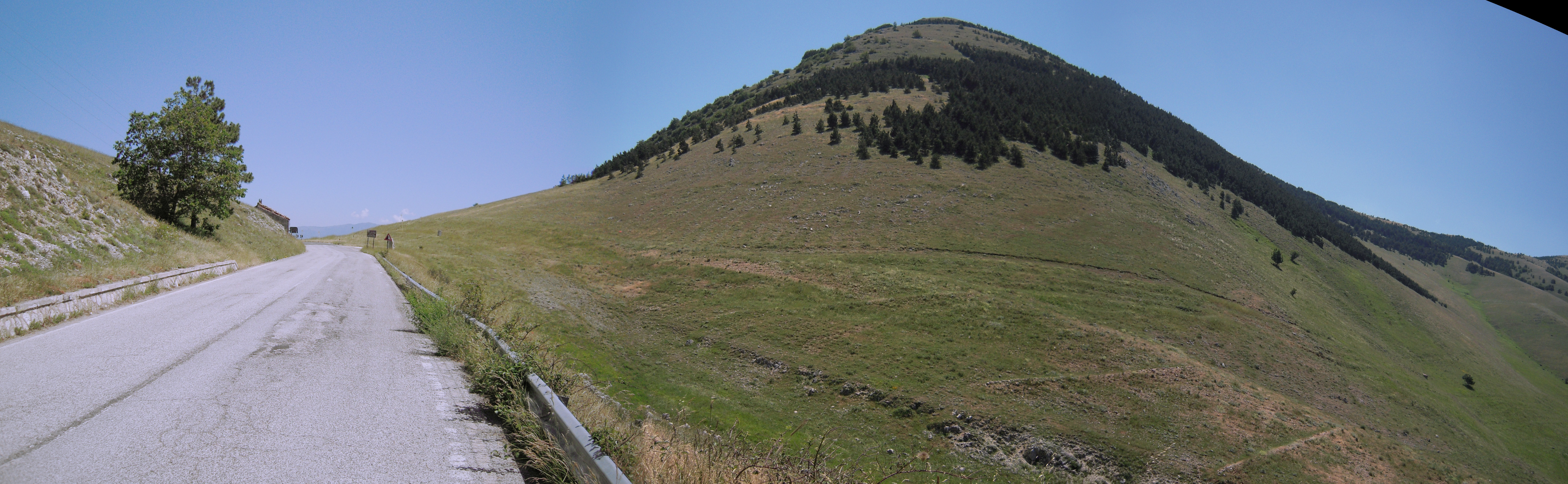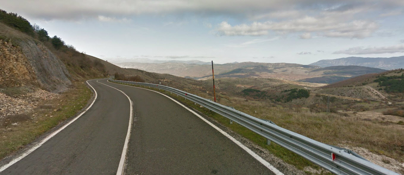 Altro obiettivo Viticuso ed il Valico di Cervaro. E qui inizia la comica. Non so per quale motivo avevo in testa Filignano, paesino dal quale ero passato in altri giri dalle parti delle Mainarde Molisane. Dopo aver consultato le mappe almeno due volte appare ovvio che il bivio per Viticuso è poco prima di Venafro. Fermo Alberto perché ha passato due strade che indicavano…Filignano! E lui ovviamente ribatte che stiamo cercando la strada per Viticuso! Fermi ad un incrocio riguardiamo la mappa, chiedo ad un locale che mi indica al volo la strada: la chiesa, la “s”, c’è tutto, il bivio…per Filignano! Alberto, ironico: “Ma gli hai chiesto per Viticuso?”. No, ovviamente, gli avevo chiesto indicazioni per…Filignano! Alberto prende decisamente l’iniziativa e finalmente, ultimo consulto alle mappe, imbocchiamo la strada giusta. Dopo pochi km scopriremo perché non era indicata la via per Viticuso da lì! Perché la strada si trasforma in una sorta di viottolo largo un paio di metri e sommariamente asfaltato…ma come ho detto proprio in quel frangente: “a noi ci fermano solo le bucature!”…Ne è valsa la pena perché il paesaggio è molto bello con la vista che a tratti si apre verso nord ed il Monte Morrone. La cosa interessante? Finché corre in provincia di Isernia è discretamente asfaltata ma appena passa in quella di Frosinone si stringe e diventa praticamente bianca!