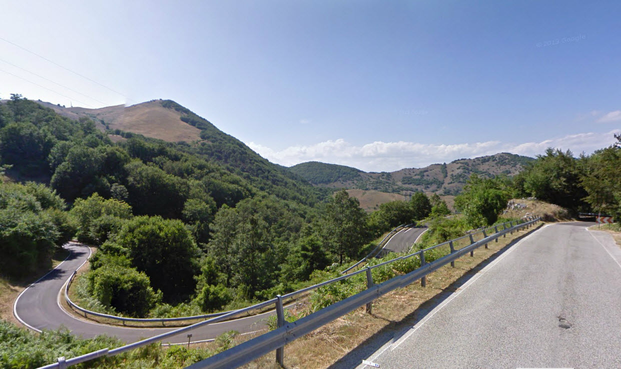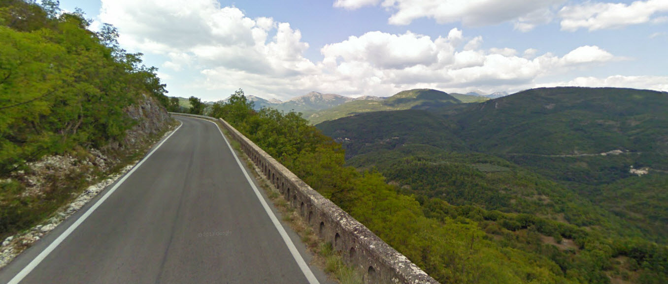 Fa freddino sulla Maiella, a tratti freddo, complici anche i nuvoloni grigi e la strada che percorre tratti ombrosi in un bellissimo bosco di faggi. Raggiunta rapidamente Castel di Sangro attraverso la piana delle Cinque Miglia (quella dei –8 e noi in moto!) il nostro obiettivo era scendere ad Isernia attraverso la divertentissima vecchia SS 17 dal Valico di Rionero Sannitico prima e del Macerone dopo. Macché! Una frana, che risale ad oltre un anno fa, blocca il passaggio e ci costringe, ancora una volta, a tornare indietro verso la SS 158 e Venafro. Volendo dirigermi verso il valico di Cervaro tagliando dai paesi interni dell’alta valle del Volturno mi perdo dalle parti di Rocchetta al Volturno…alta! Dove la strada termina del tutto con tanto di cartello. Abbandoniamo il tentativo e scendiamo verso Venafro.