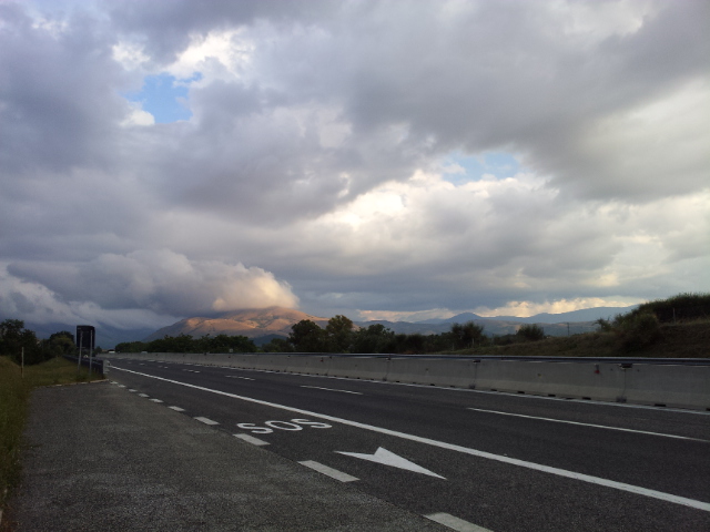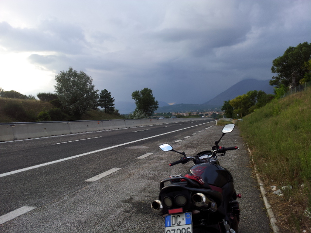 A Pescina autostrada fino a Roma dove, alla fine, la pioggia è riuscita ad inumidirmi un po’ un paio di volte con degli acquazzoni intensi tra Collarmele e Magliano de’ Marsi.