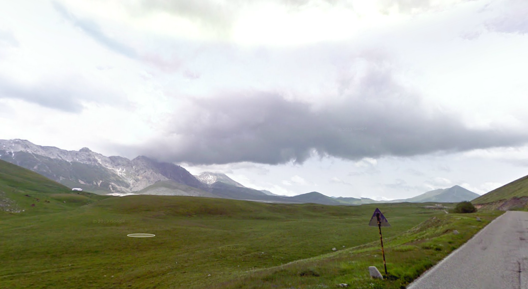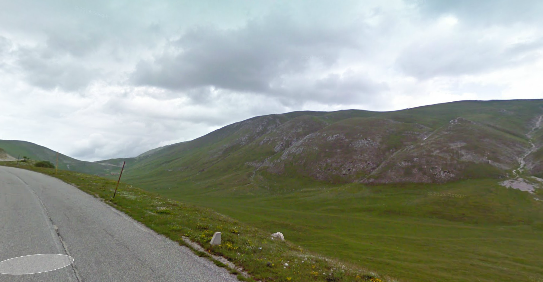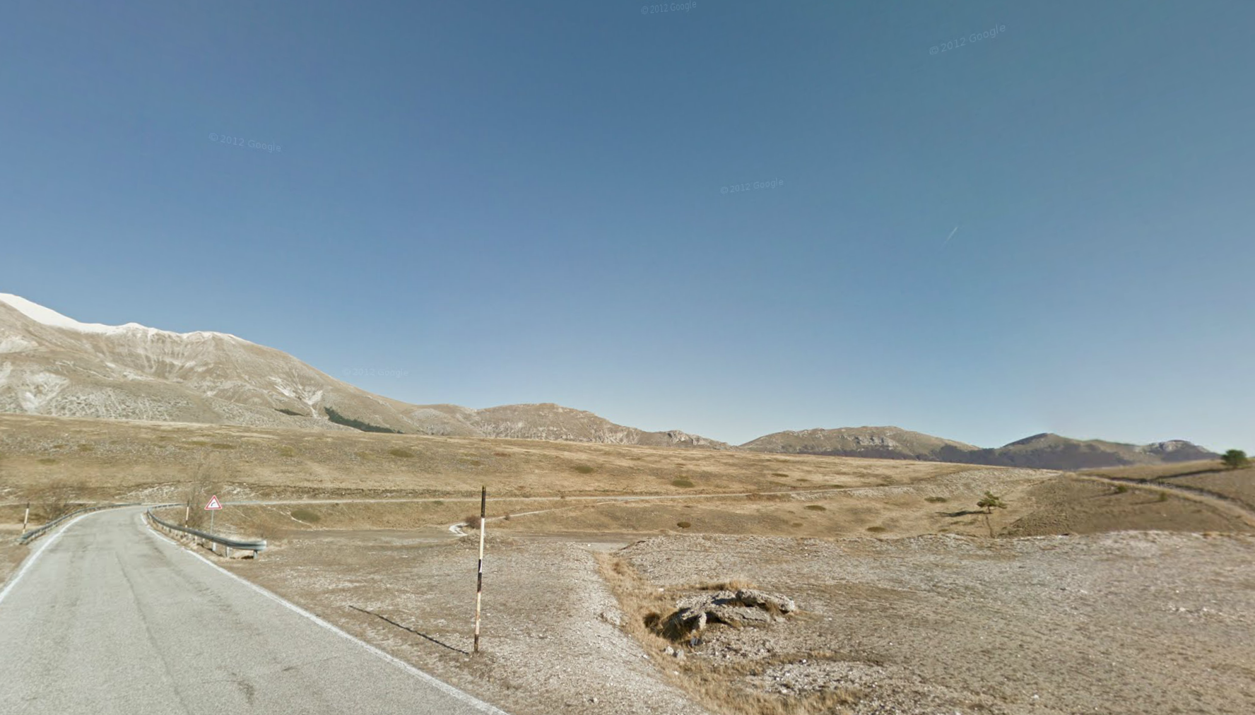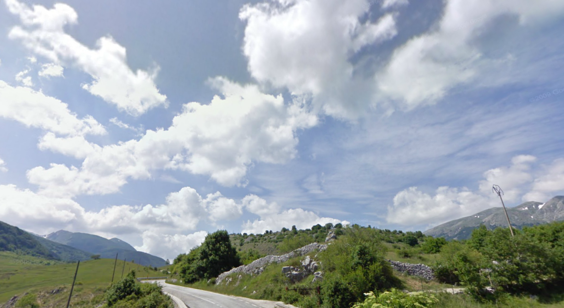 Oggi è sereno e dal solito “balcone” possiamo ammirare un bel panorama sulla Valle del Fucino, gli altopiani de “Le Rocche”, il Velino ed il Sirente. Nuvoloni ci nascondono il Corno Grande che da qui si vede sempre perfettamente. Questa discesa è da percorrere godendo del panorama visto che comunque la strada è dissestata ed a tratti cosparsa di massi caduti.