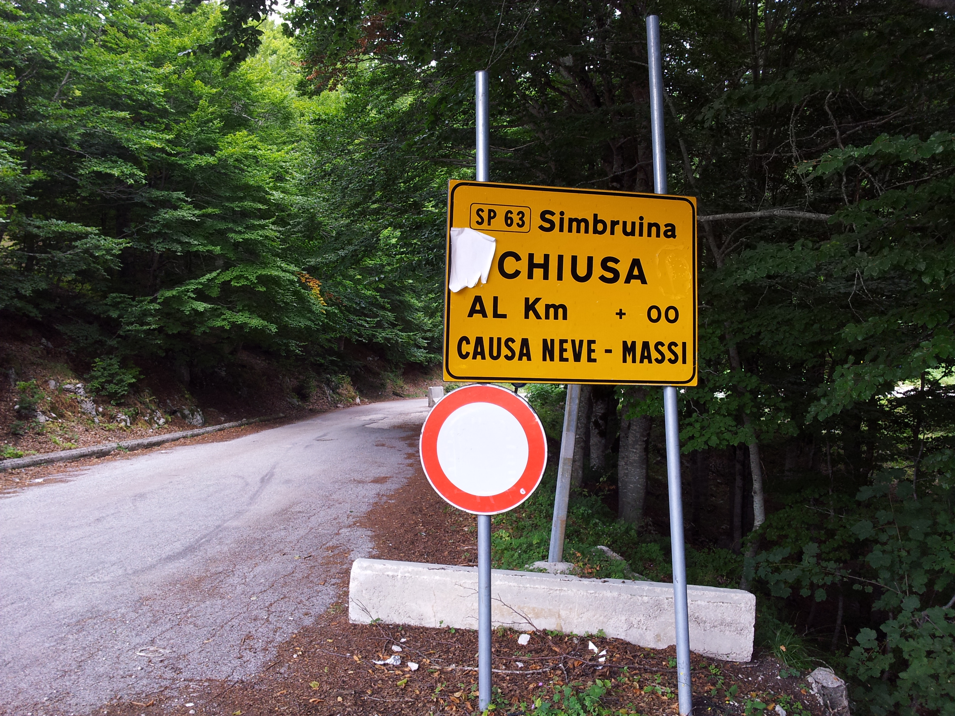 Appuntamento al casello di Anagni-Fiuggi alle 10 con un po’ di ritardo (che a me pesa sempre un po’ di più perché arrivo in anticipo ogni volta!) la mattinata inizia molto pigramente tanto che tra una cosa e l’altra a mezzogiorno passato siamo ancora poco dopo Campo Staffi. Sosta prima di affrontare la discesa per Capistrello: come al solito un cartello avvisa che la strada è chiusa ma in realtà si passa benissimo. In totale assenza di manutenzione da anni questa bella strada panoramica è abbandonata ormai a se stessa pur essendo una delle poche che permettono di passare in Val Roveto e da lì al Fucino evitando il lungo giro da Sora.