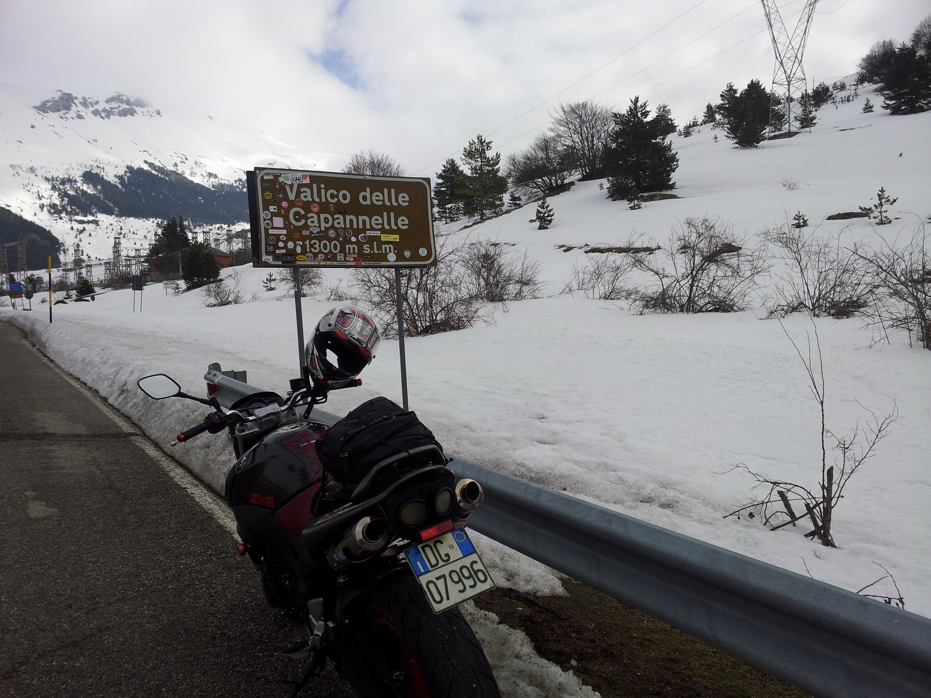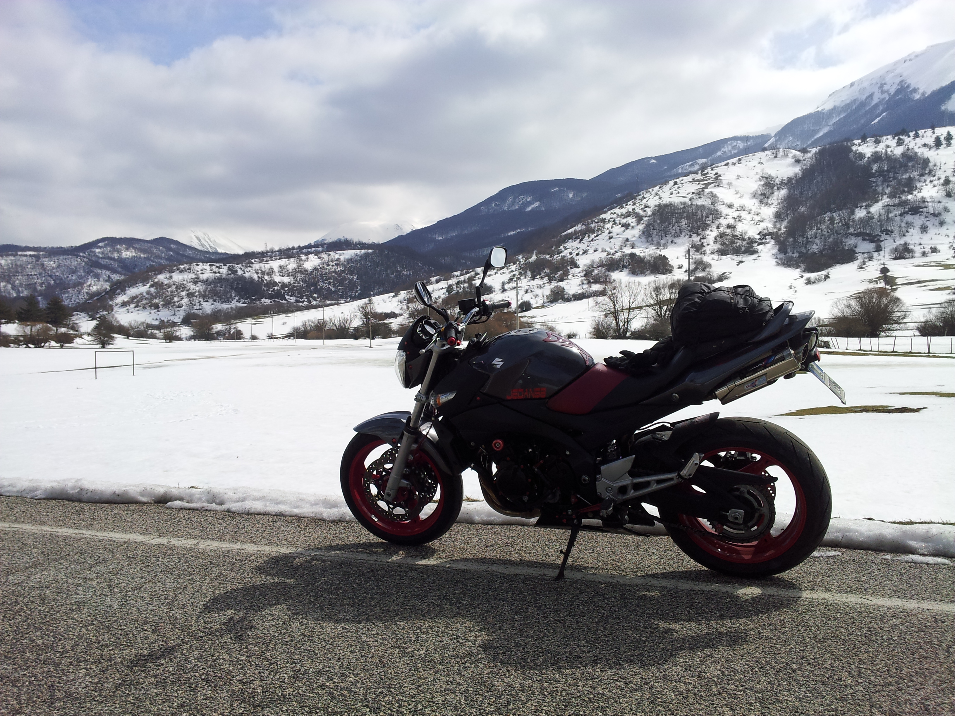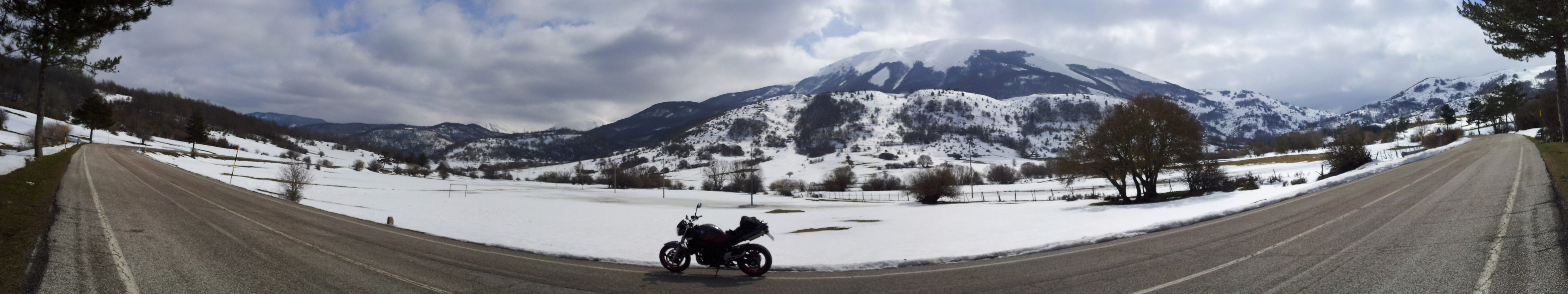 La salita fino al valico delle Capannelle che tante volte mi ha regalato belle emozioni oggi è prudente. Strada umidiccia, sale e pietrisco per terra, oltre che parecchia neve ai lati, suggeriscono di godersela e prendersela comoda. A parte qualche tratto sarà così per tutto il tragitto fino a Teramo.