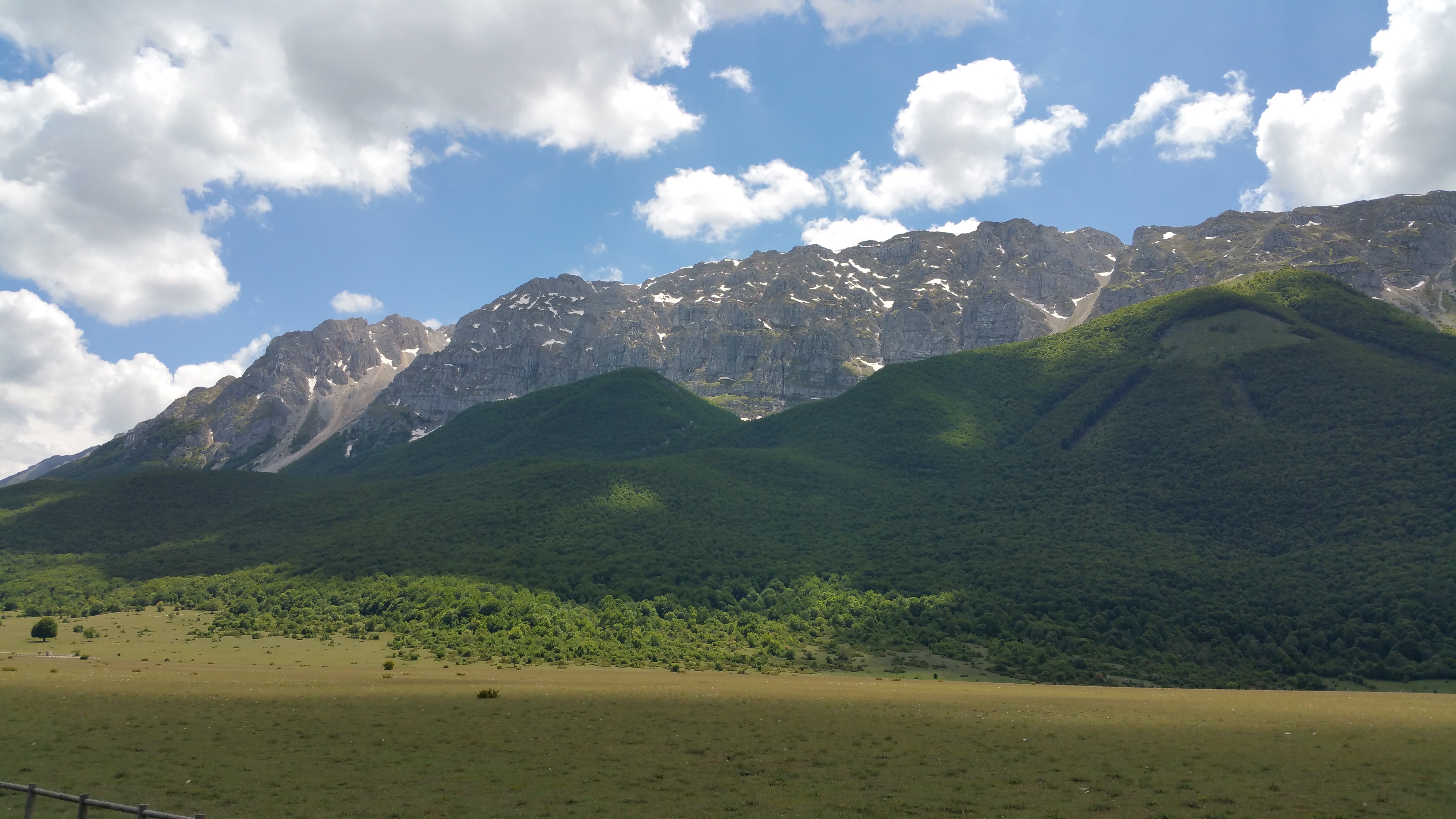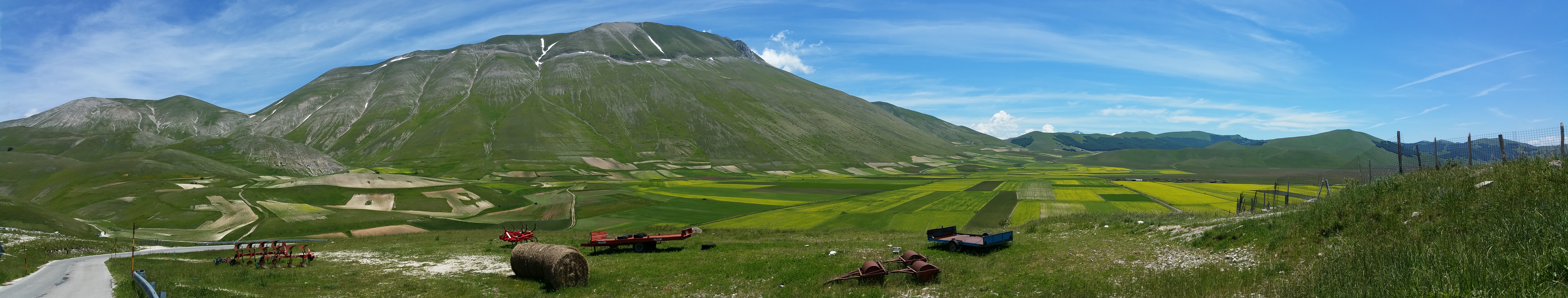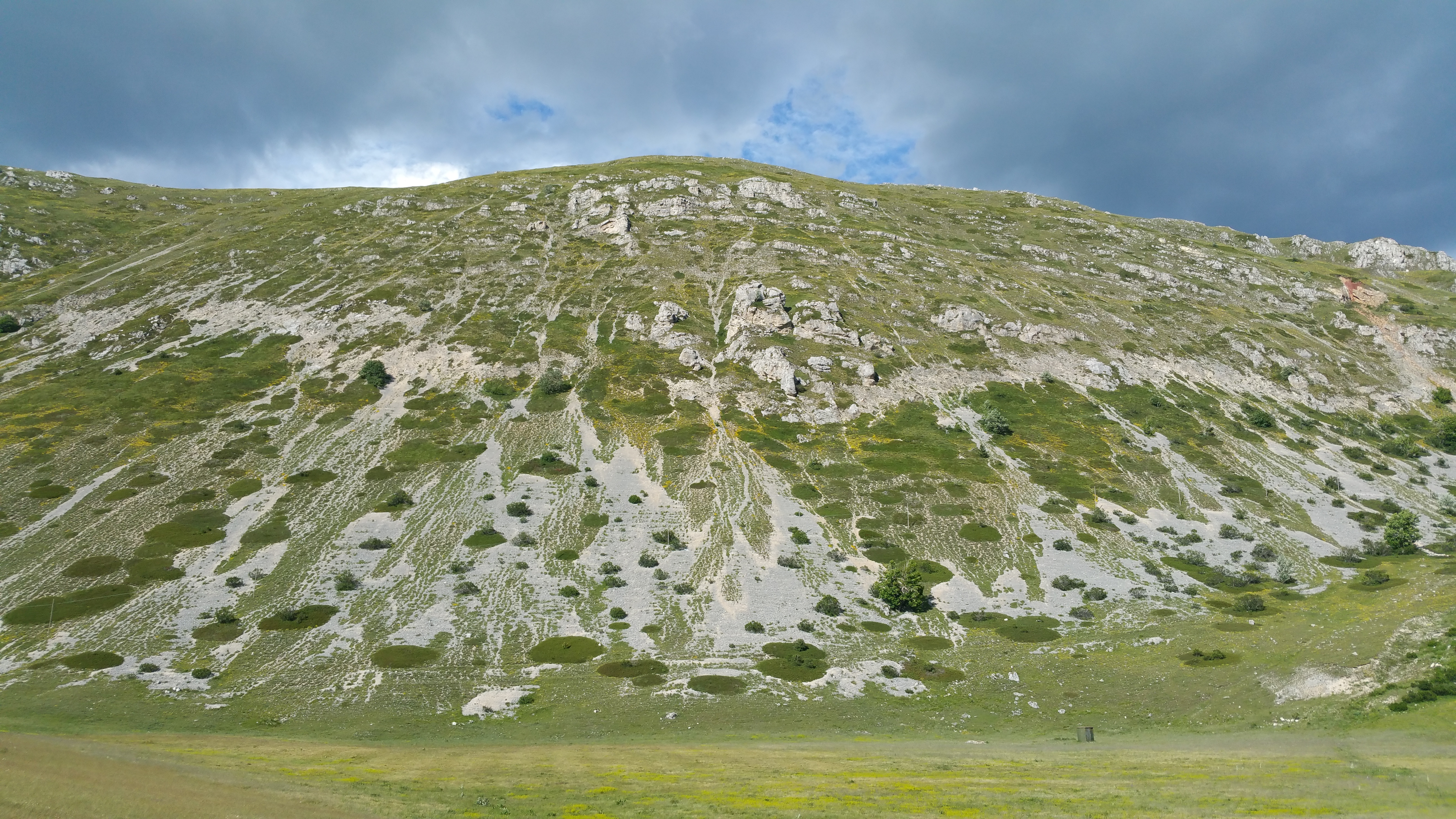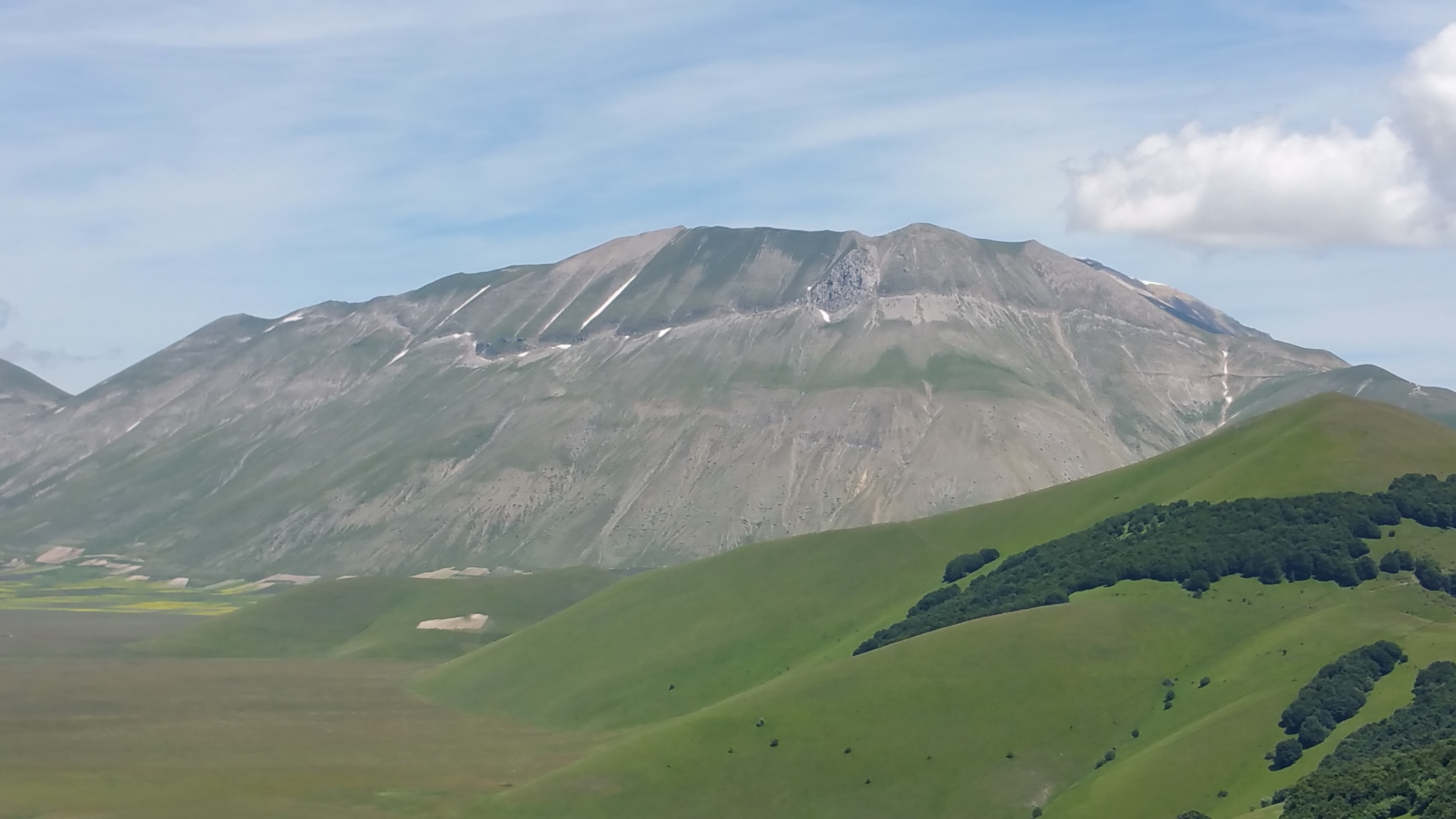 Da Leonessa ancora a nord, l’obiettivo è raggiungere la piana di Castelluccio di Norcia che in questo periodo dovrebbe esprimere il massimo dei colori con la fioritura delle lenticchie! Il paesaggio ovunque è verdissimo in questo inizio estate tutto sommato ancora piuttosto umido. Non ricordavo così lunga la salita, bellissima con l’ampia piana di Norcia sotto di noi e le cime del gruppo del Terminillo verso sud.