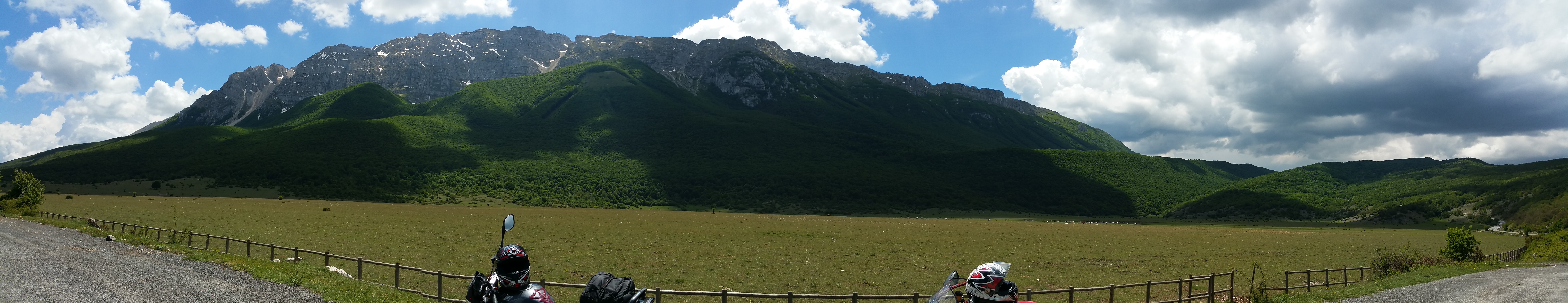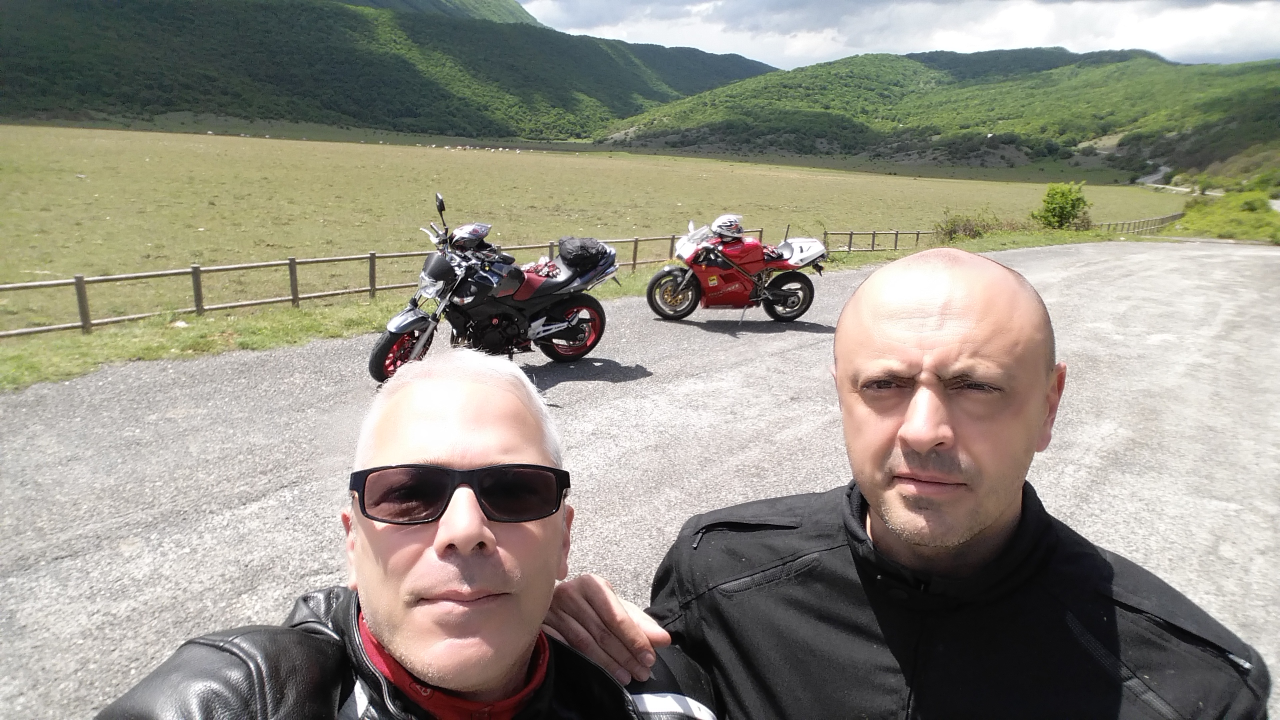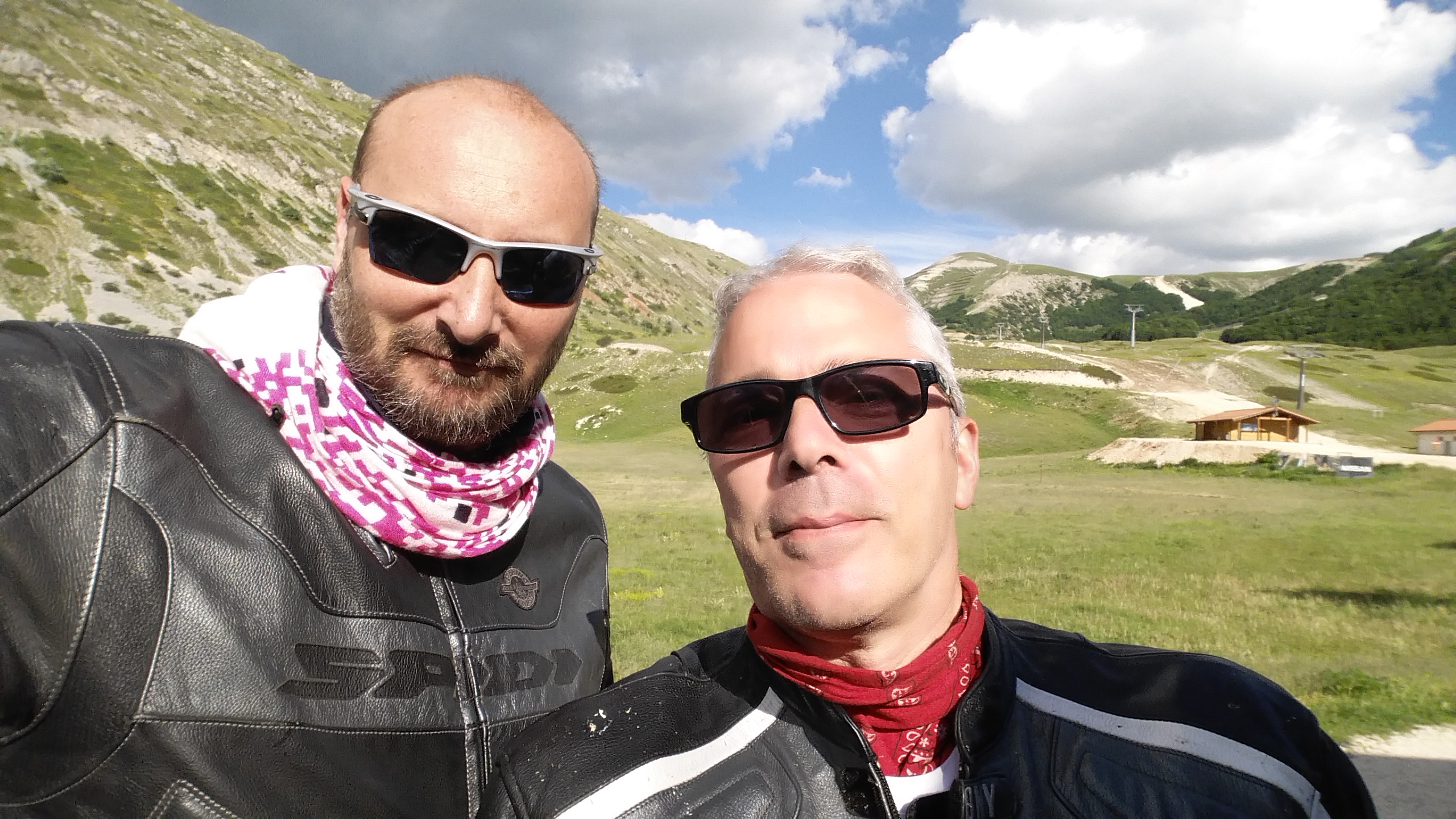 L’ampio altopiano di Castelluccio si staglia improvviso sotto di noi circondato ad est ed a nord dai gruppi montuosi col Monte Vettore che si stacca improvviso dalla piana salendo per oltre mille metri.Pranzo gustoso a Castelluccio e via verso un ricco pomeriggio di moto.Da Forca di Presta, con paesaggi bellissimi intorno a noi raggiungiamo la Salaria all’altezza di Arquata del Tronto e da qui Ascoli Piceno. SS 81 verso Teramo: spettacolare come sempre. Un ultimo pieno a Montorio al Vomano. L’intenzione era salire verso Campo Imperatore attraverso Vado di Sole, dal lato teramano ma, direi fortunatamente, non abbiamo trovato la strada, o forse non l’abbiamo proprio cercata: meglio, avremmo preso sicuramente acqua per i temporali che poi abbiamo visto da lontano.