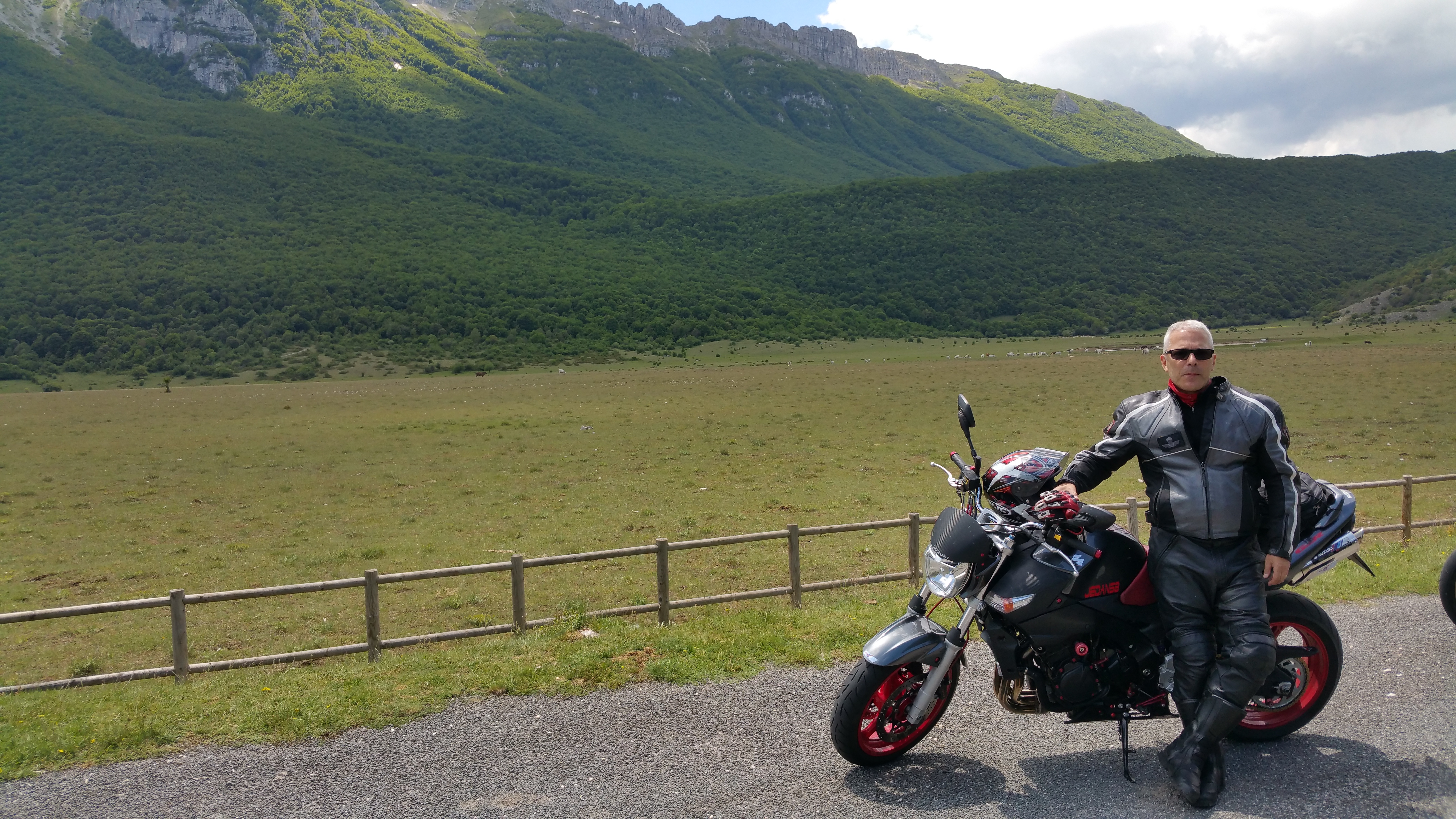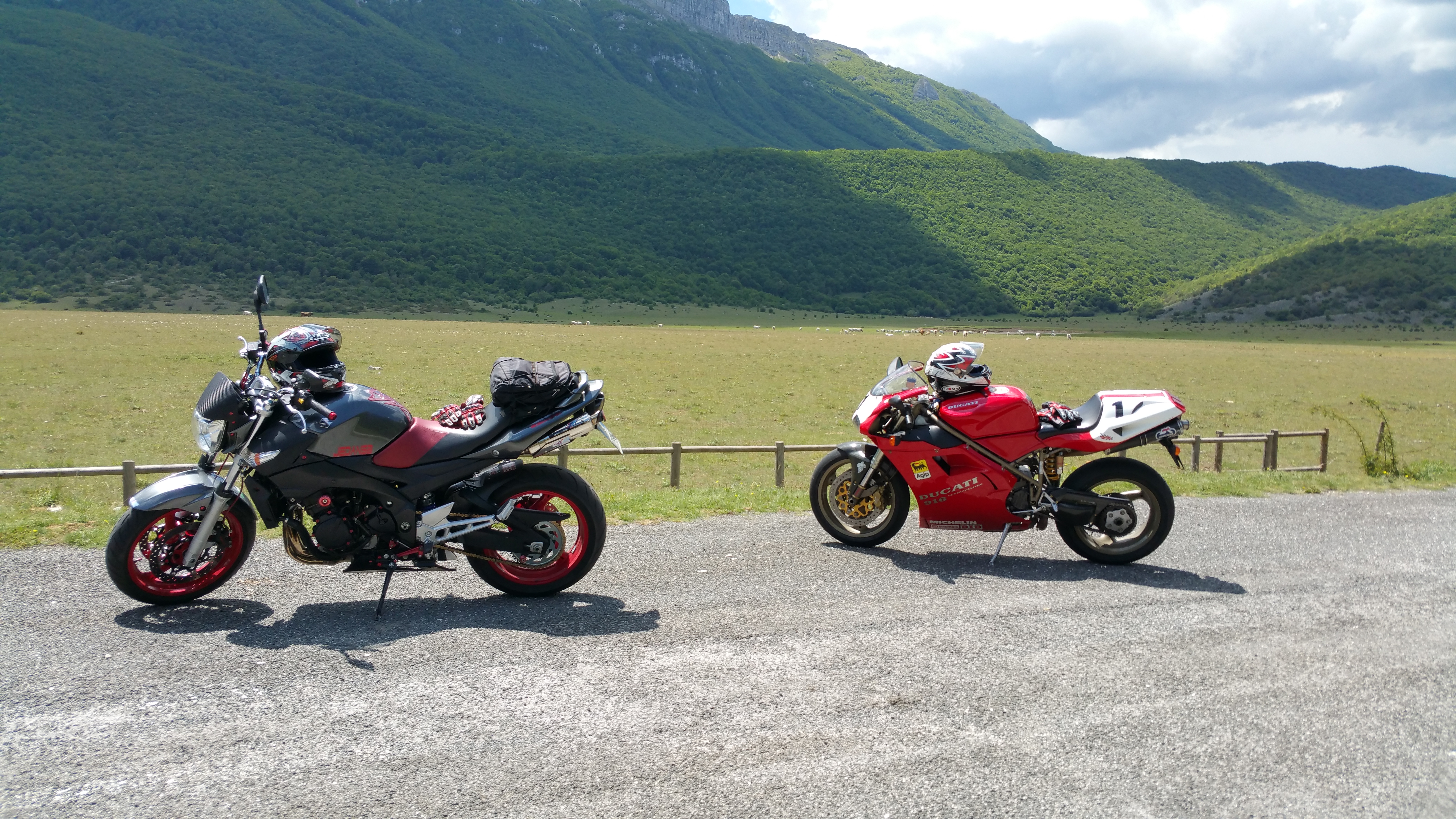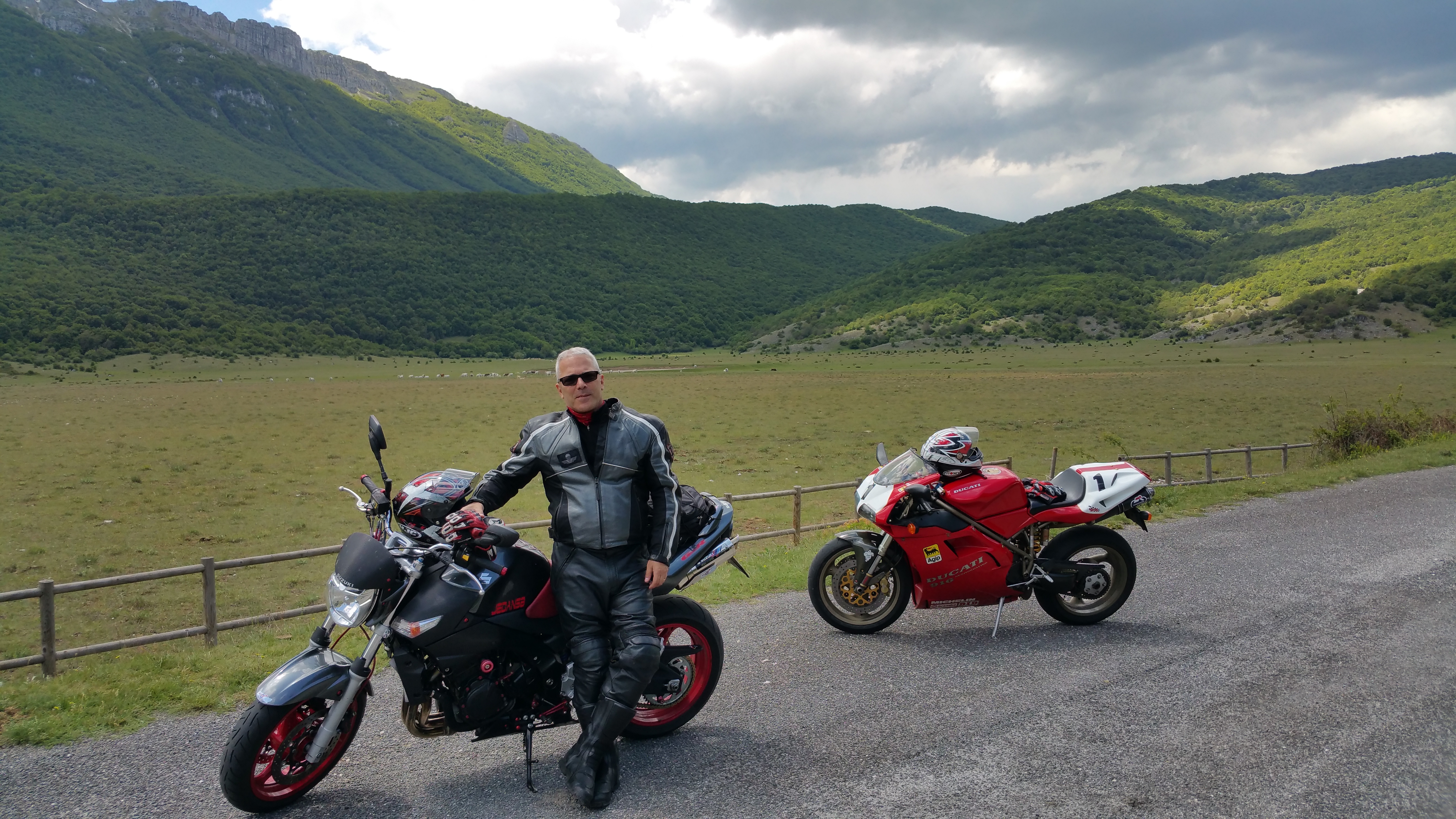 L’ampio altopiano di Castelluccio si staglia improvviso sotto di noi circondato ad est ed a nord dai gruppi montuosi col Monte Vettore che si stacca improvviso dalla piana salendo per oltre mille metri.Pranzo gustoso a Castelluccio e via verso un ricco pomeriggio di moto.Da Forca di Presta, con paesaggi bellissimi intorno a noi raggiungiamo la Salaria all’altezza di Arquata del Tronto e da qui Ascoli Piceno. SS 81 verso Teramo: spettacolare come sempre. Un ultimo pieno a Montorio al Vomano. L’intenzione era salire verso Campo Imperatore attraverso Vado di Sole, dal lato teramano ma, direi fortunatamente, non abbiamo trovato la strada, o forse non l’abbiamo proprio cercata: meglio, avremmo preso sicuramente acqua per i temporali che poi abbiamo visto da lontano.