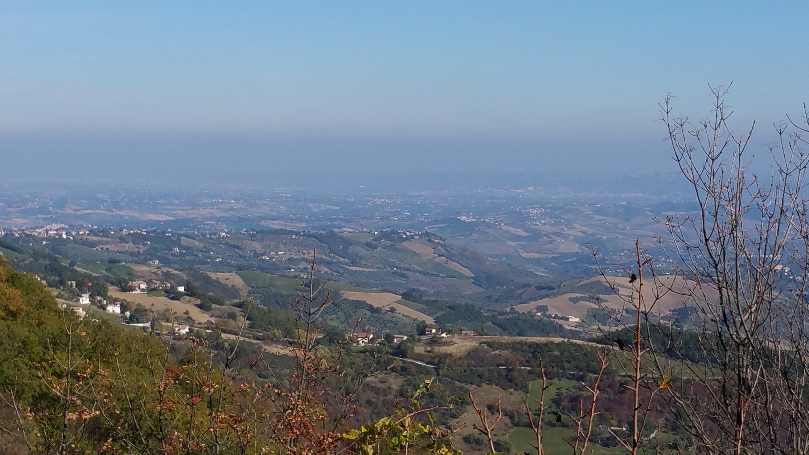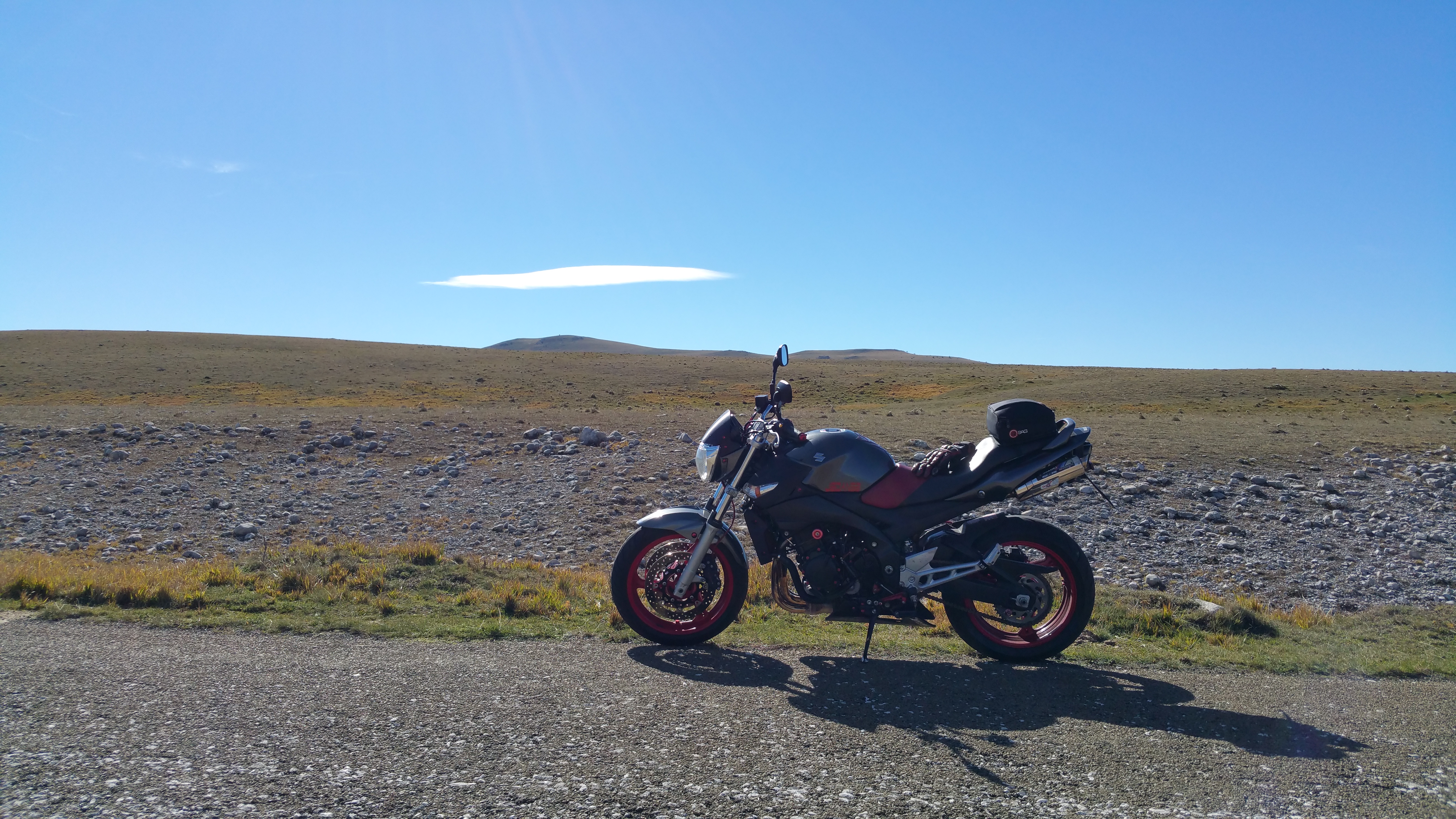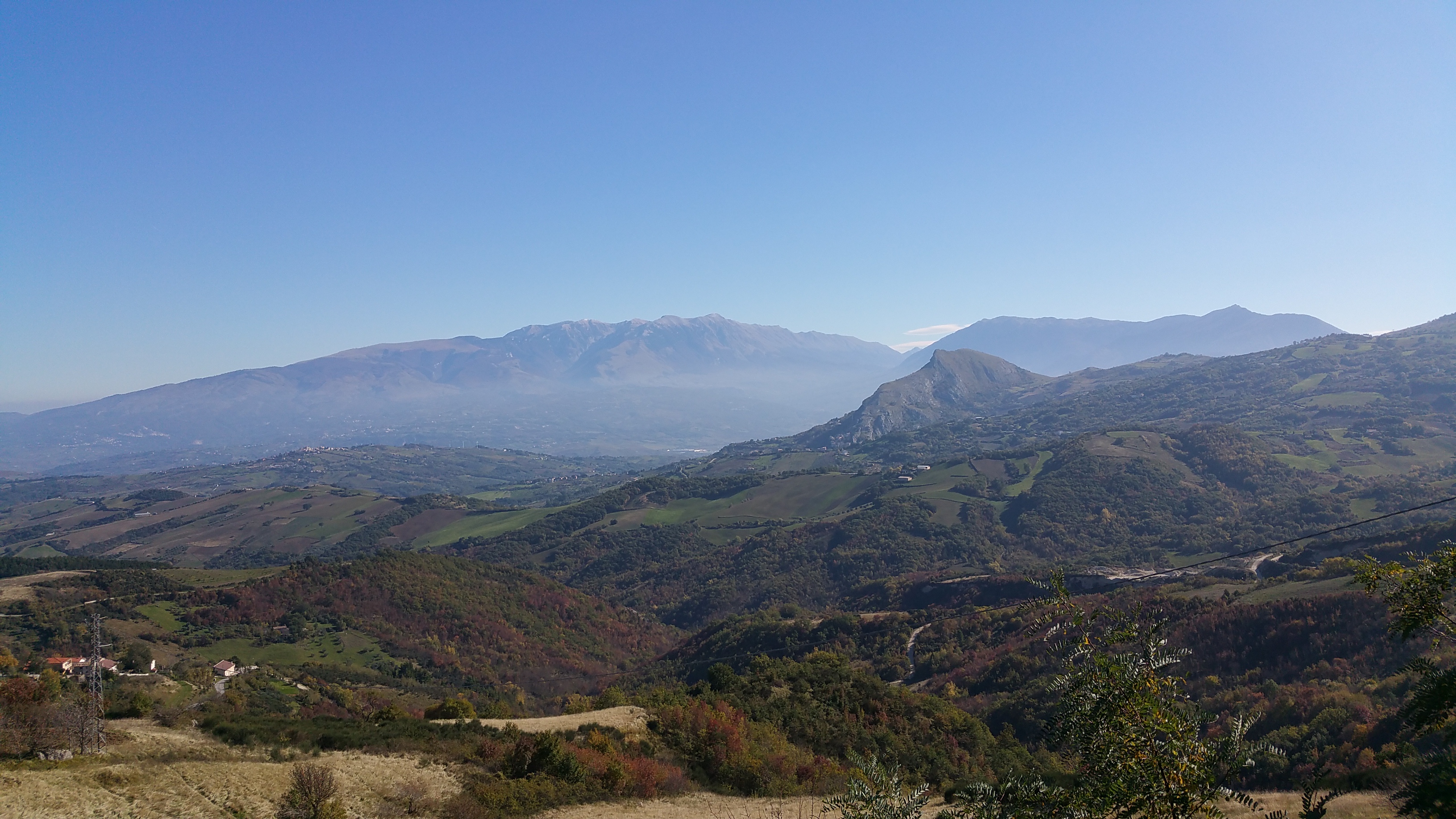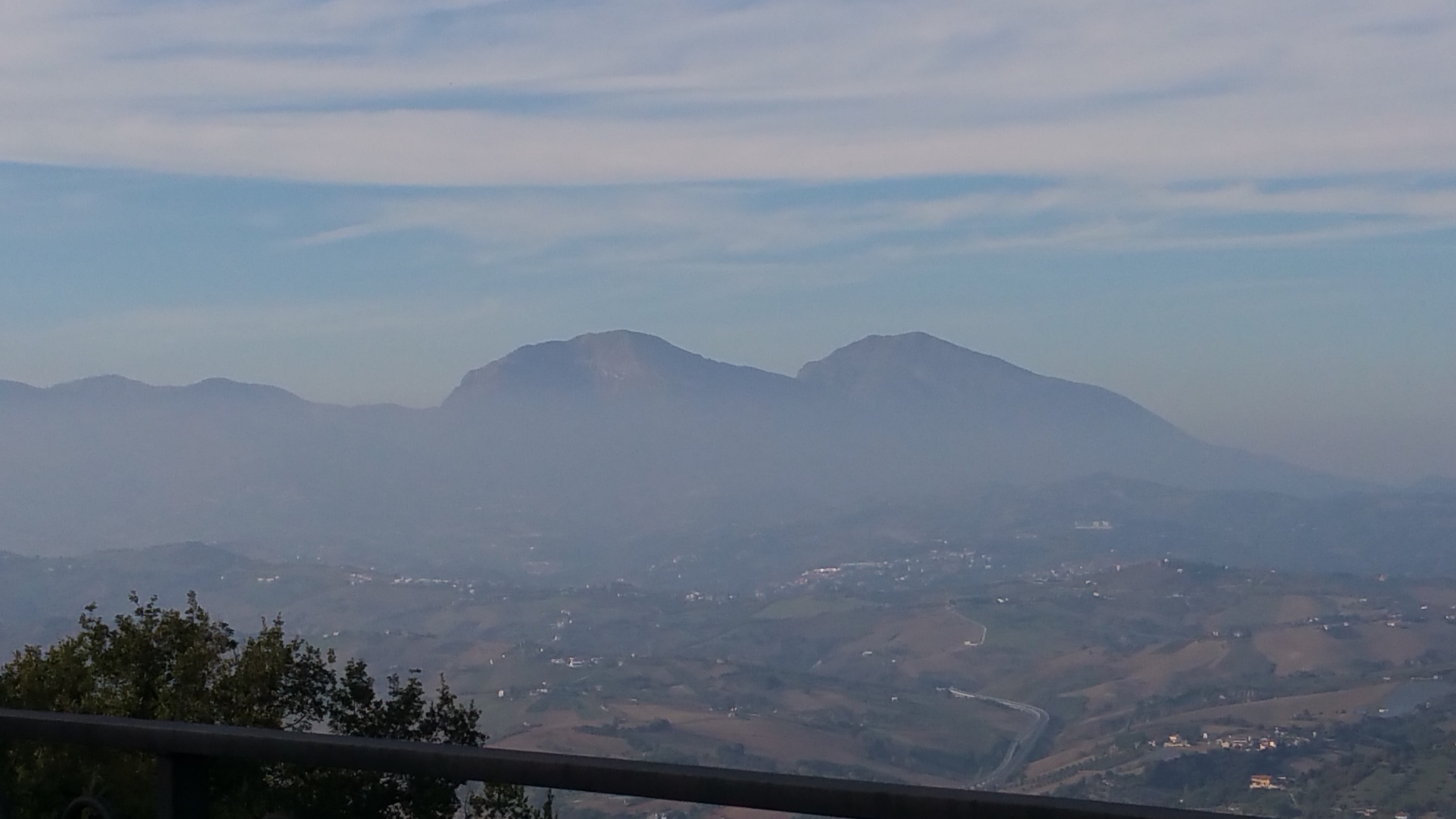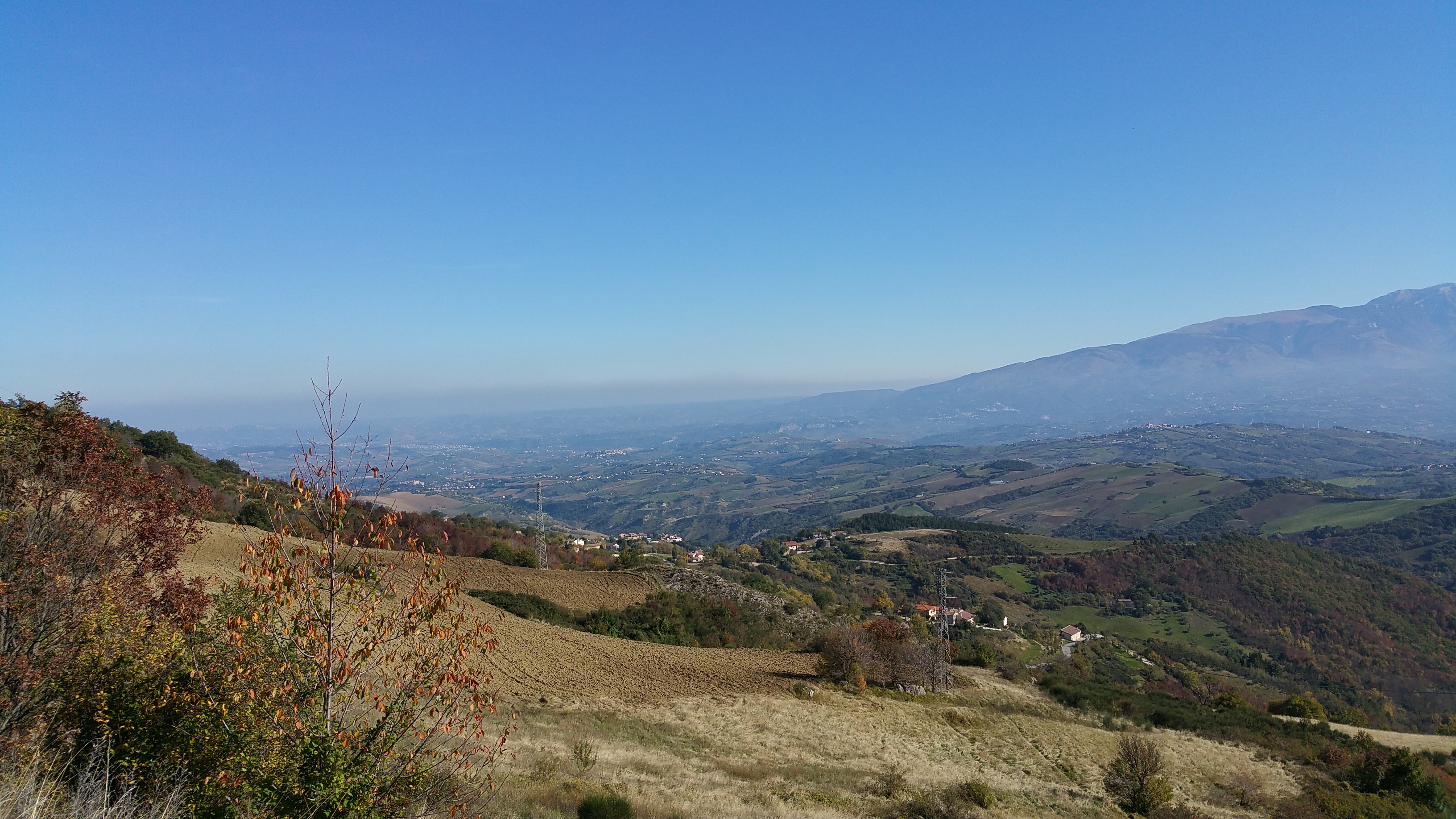Da Campo Imperatore sono sceso a Castel del Monte, proseguendo poi verso Chieti attraverso il valico di Forca di Penne sulla SS 602, finalmente una strada nuova mai percorsa prima! Con bellissimi scorci verso l’Adriatico e la Maiella! Impressionante ieri a causa dell’alta pressione delle condizioni termiche la cappa di smog che delineava l’orizzonte verso la costa!