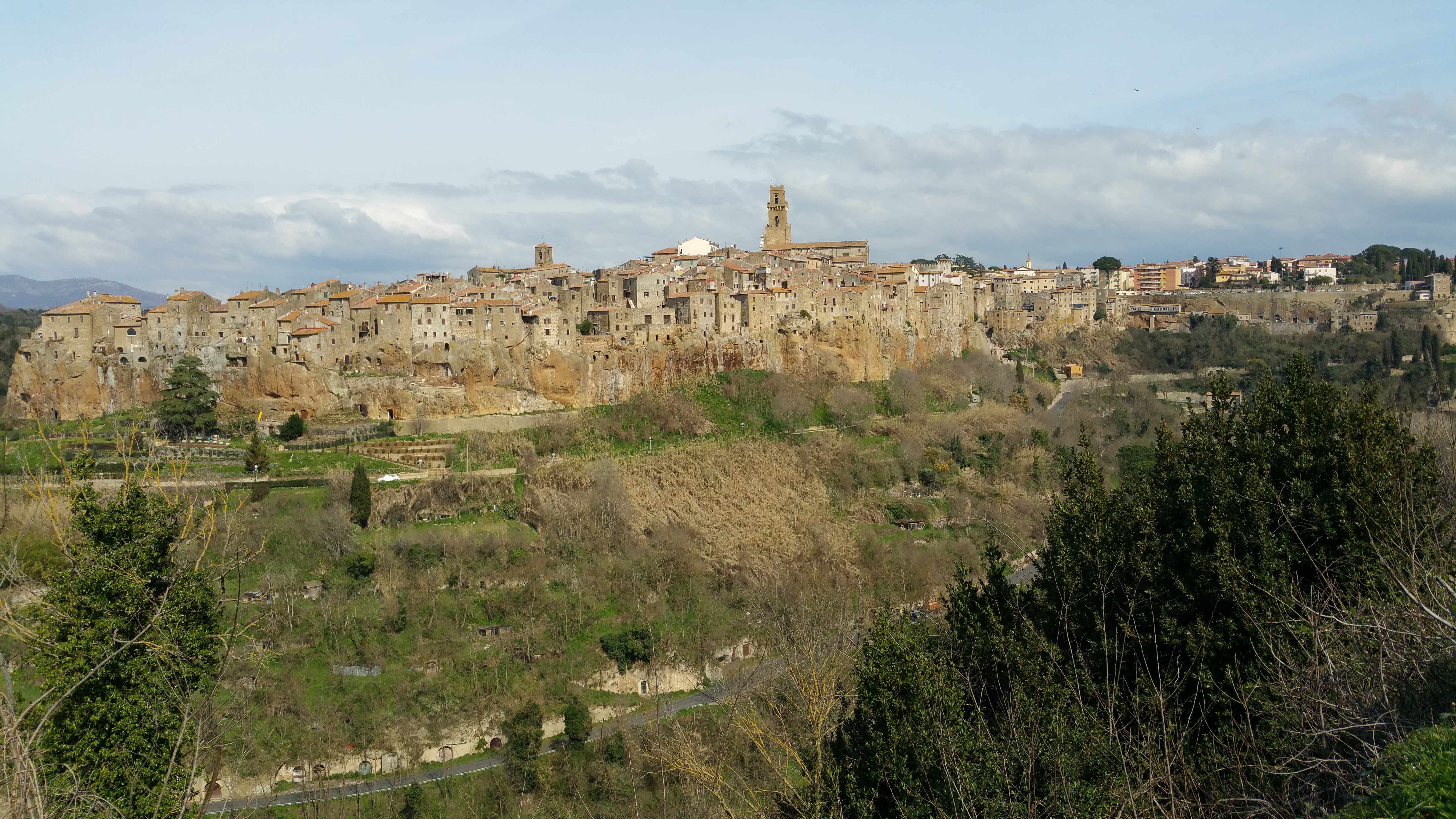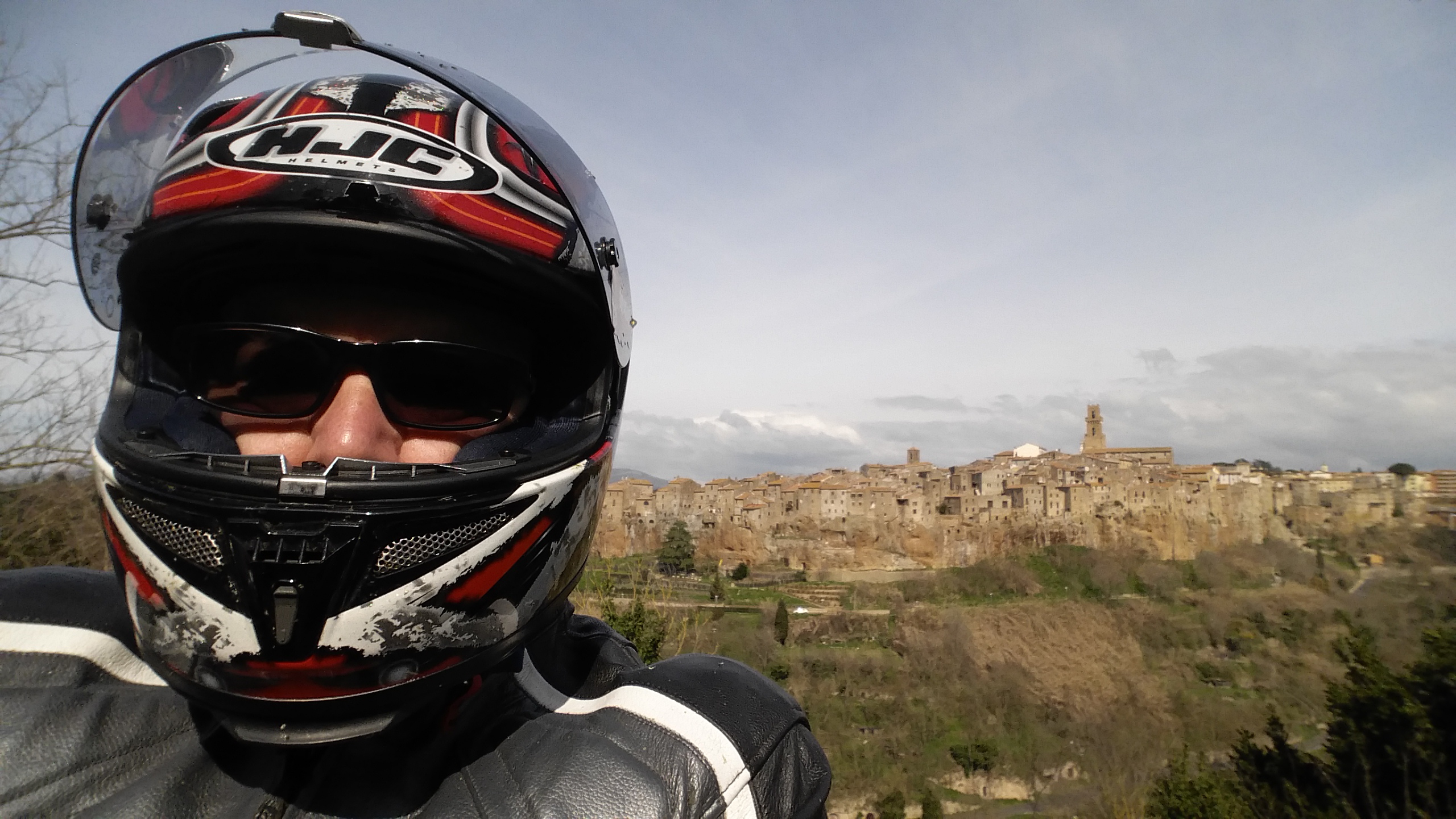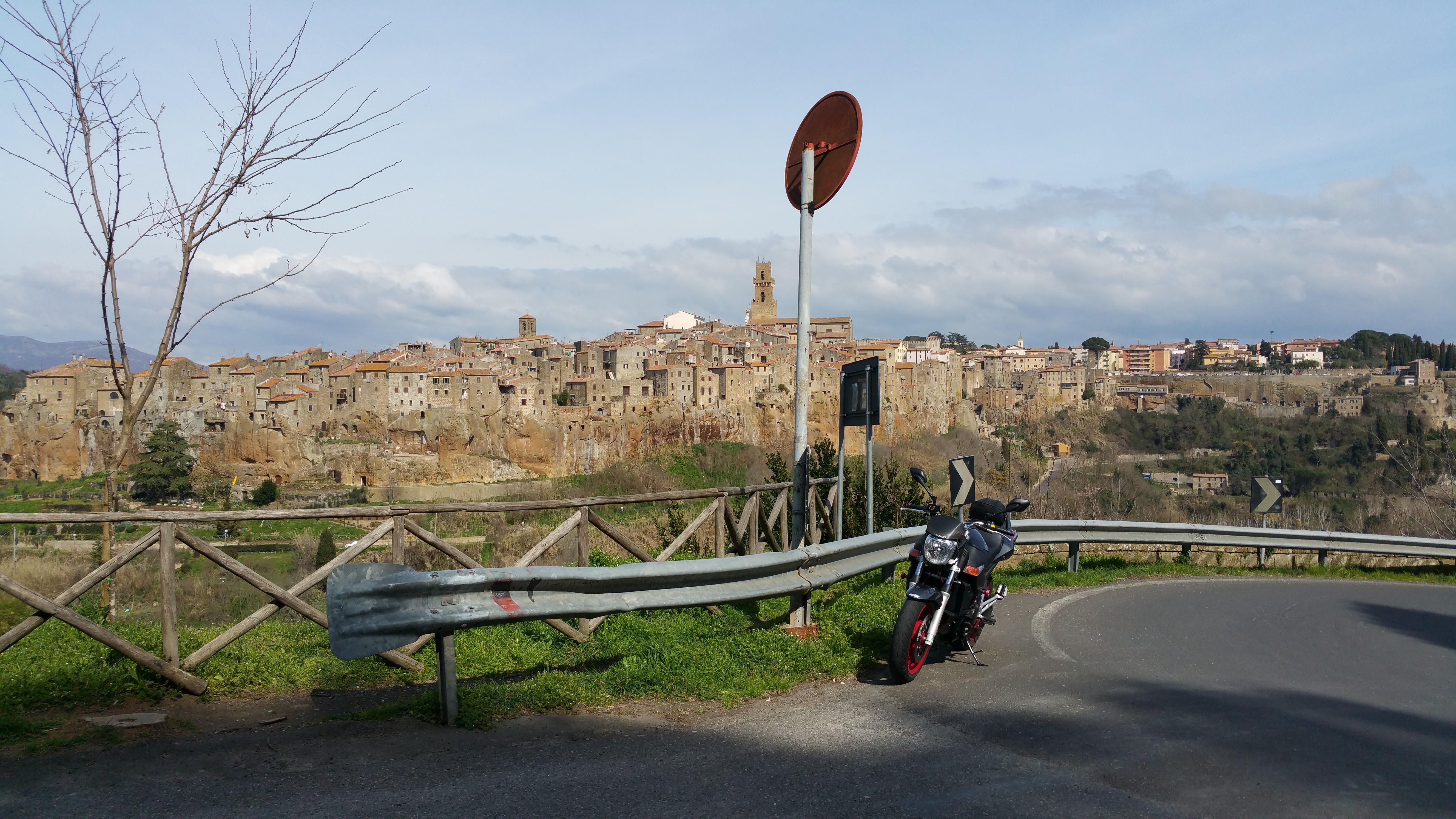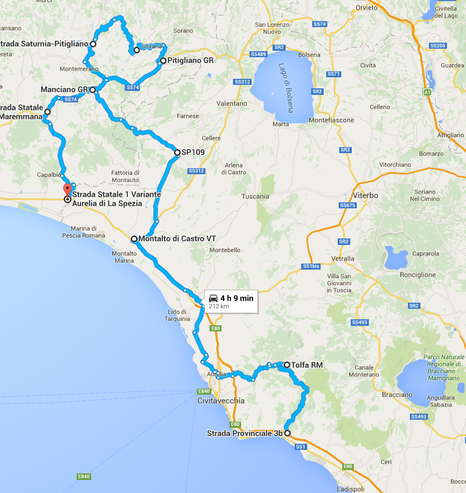L’idea originale era arrivare a nord, all’altezza di Santa Fiora sotto l’Amiata per poi riscendere più o meno con la Cassia; purtroppo il vento a tratti molto forte che non rende certo mite come dovrebbe essere l’aria, nuvoloni neri all’orizzonte e poco tempo a disposizione mi fanno desistere e così ripunto a sud per Pitigliano e poi ancora Manciano, verso l’Aurelia. Per non rifare la strada dell’andata mi allungo un po’ verso ovest e poi riscendo per una stradella di campagna molto bella che mi porta sull’Aurelia all’altezza di Capalbio.