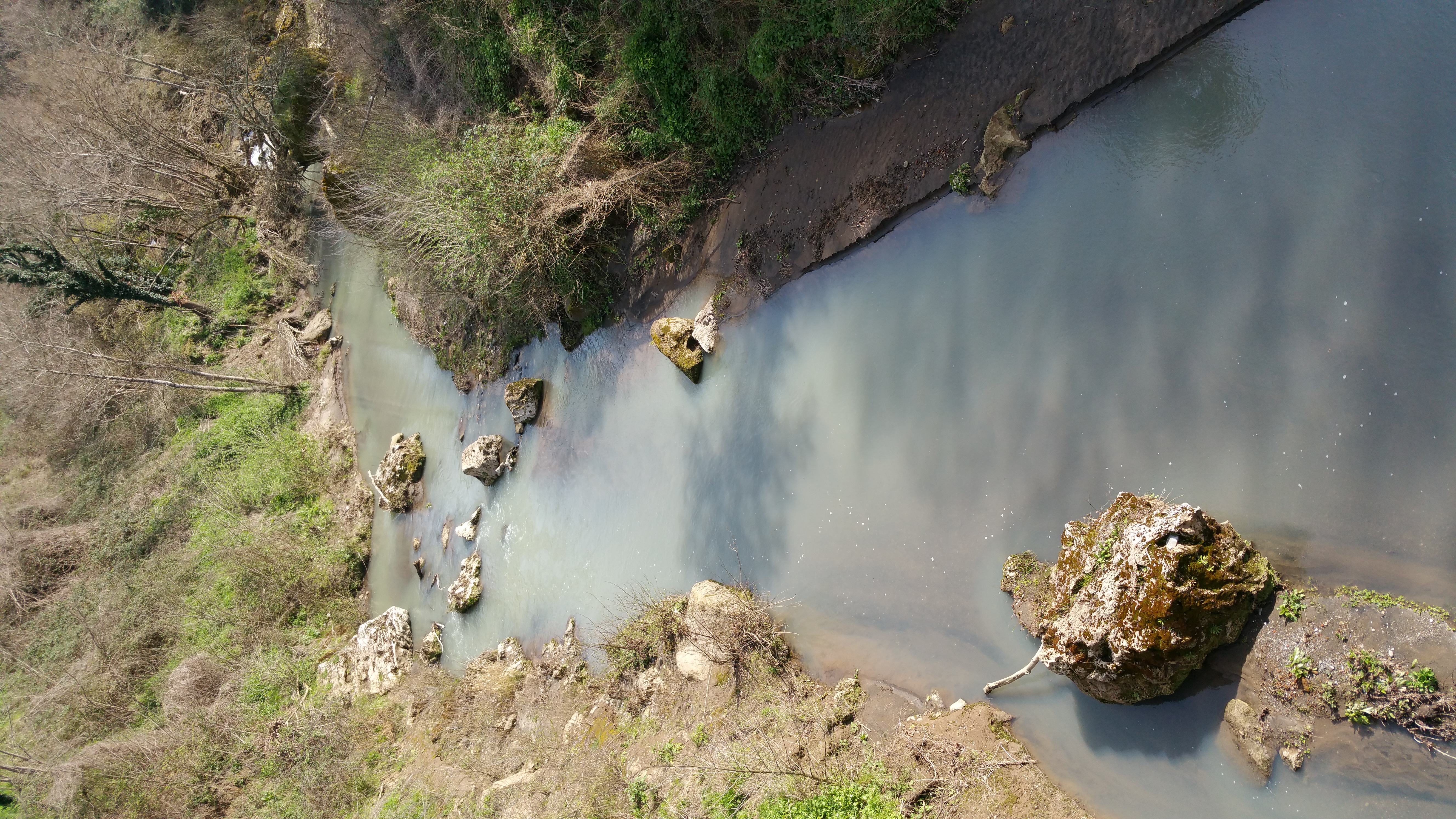 Poco prima di Saturnia osservo dall’alto i bagnanti nelle acque calde delle famose cascatelle.