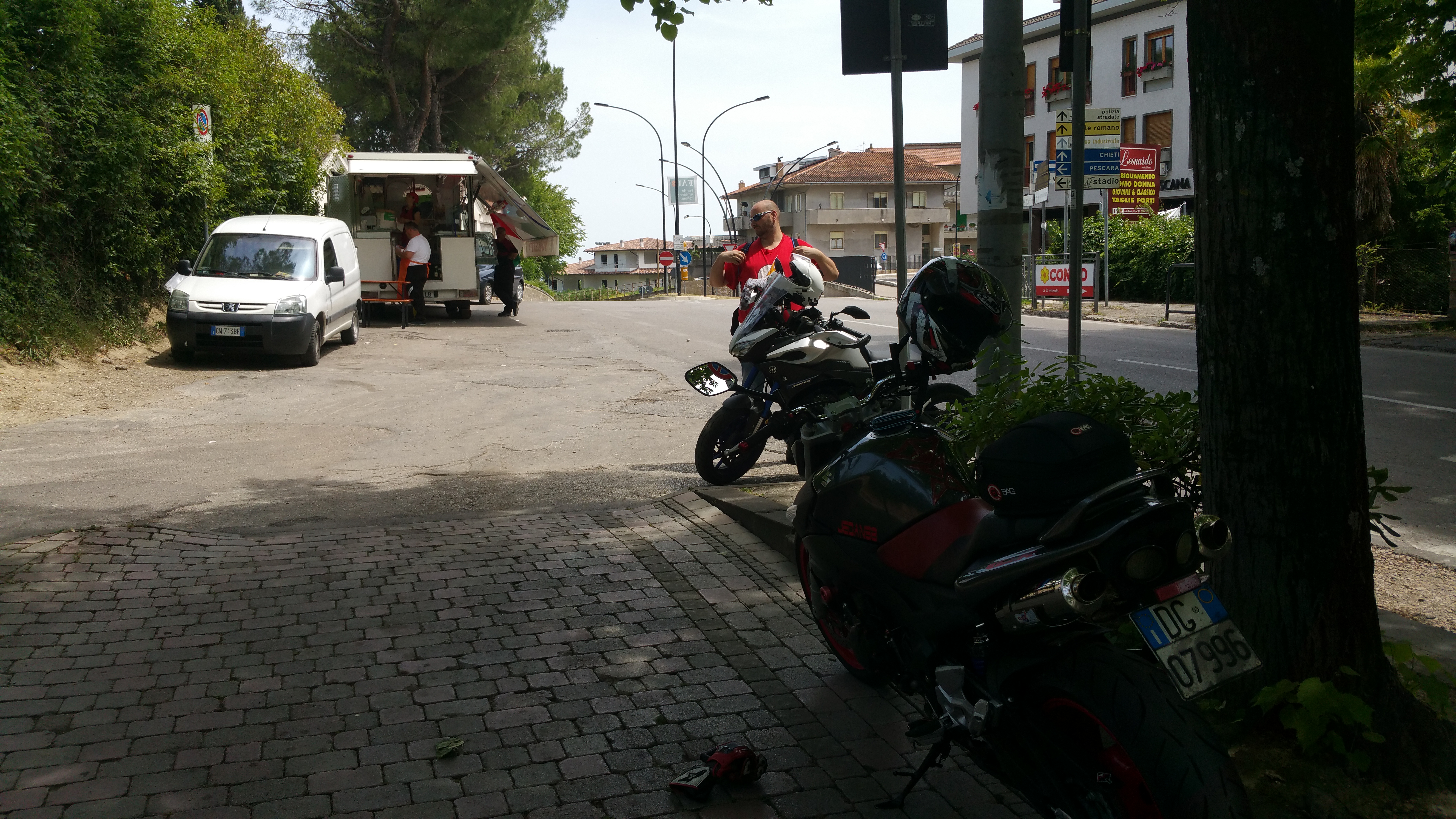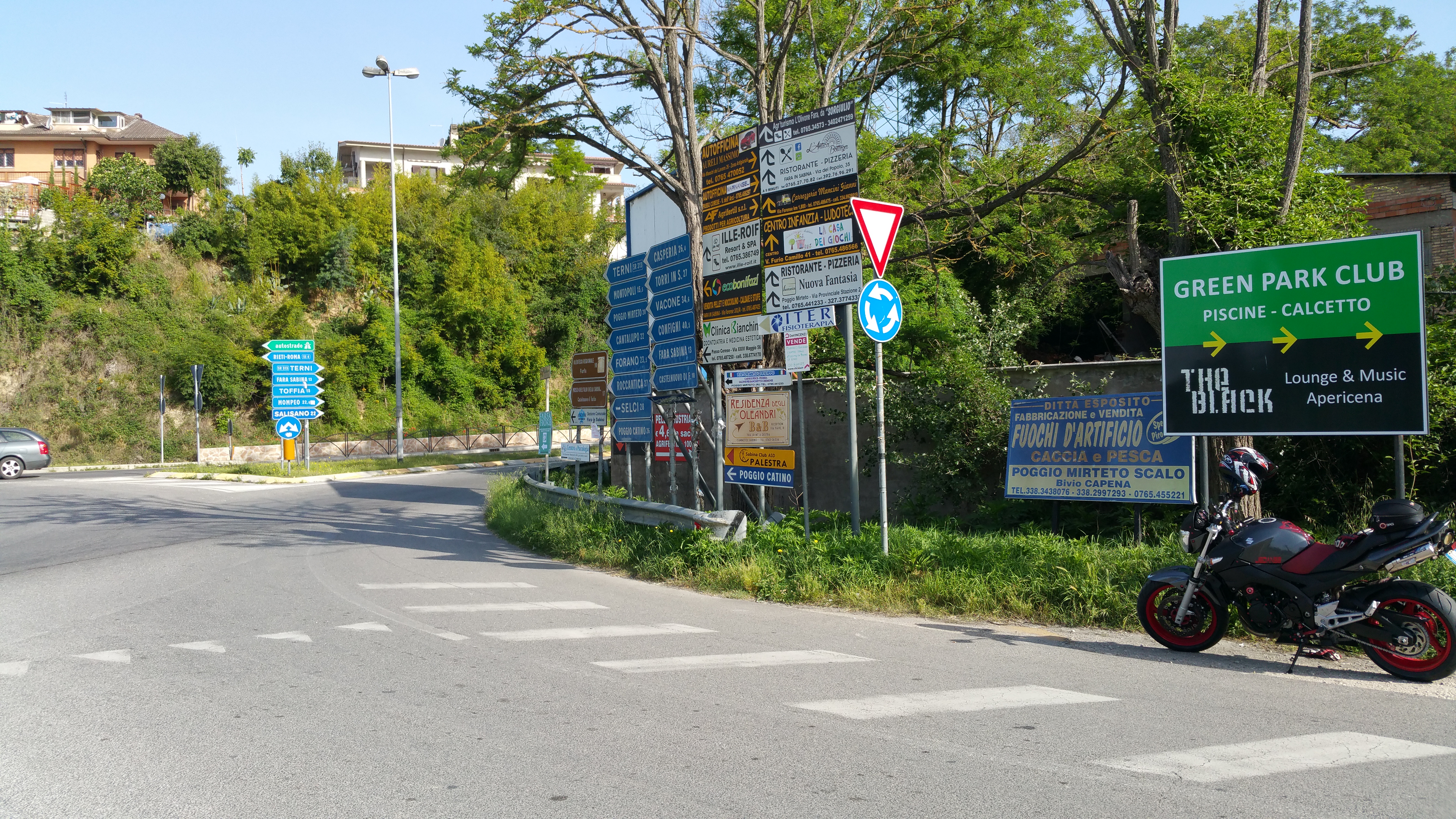 Con le gomme nuove di pacca (confermo l’ottimo rapporto qualità-prezzo delle Metzler Sportec M7 RR) l’appuntamento è di buon ora alla rotonda di Passo Corese e visto che sono in anticipo, come sempre, me la prendo comoda traversando la città e facendo tutta passando da Monterotondo Scalo il che, per me, significa un’oretta di moto buona da aggiungere a tutto il resto!