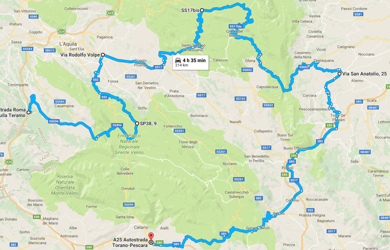 Nulla di particolare da segnalare, tutte strade notissime. Da moltissimo tempo non capitava di percorrere la Tiburtina verso il valico di Forca Caruso verso nord: decisamente migliore farlo al contrario anche se paesaggisticamente una volta passato il valico da sud la vista verso il massiccio del Gran Sasso è bellissima.
