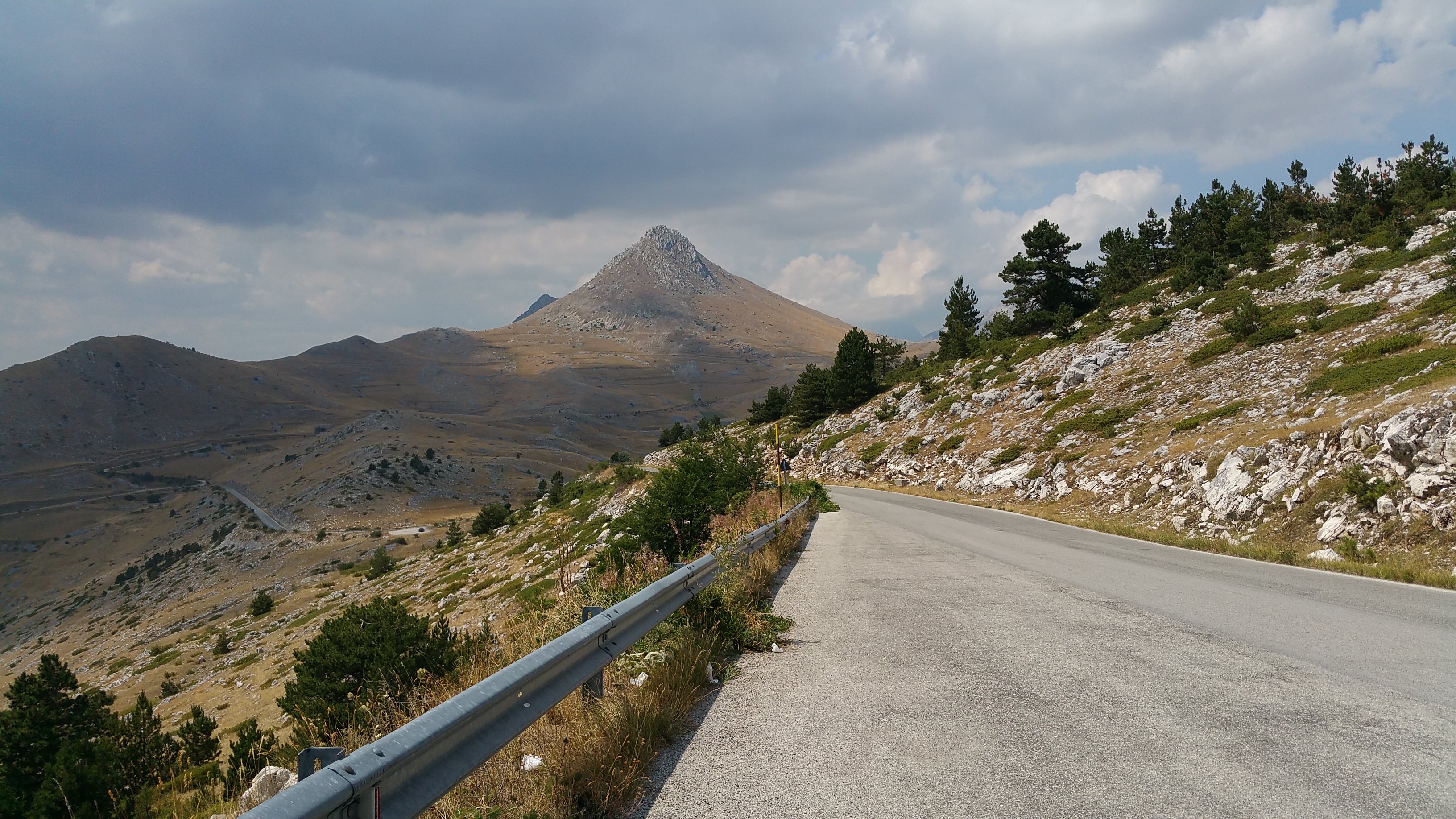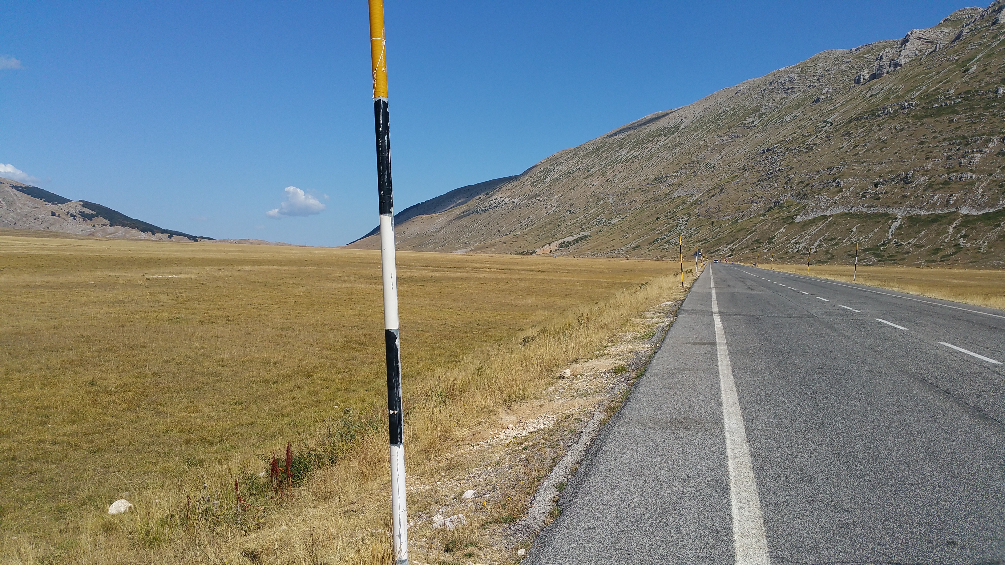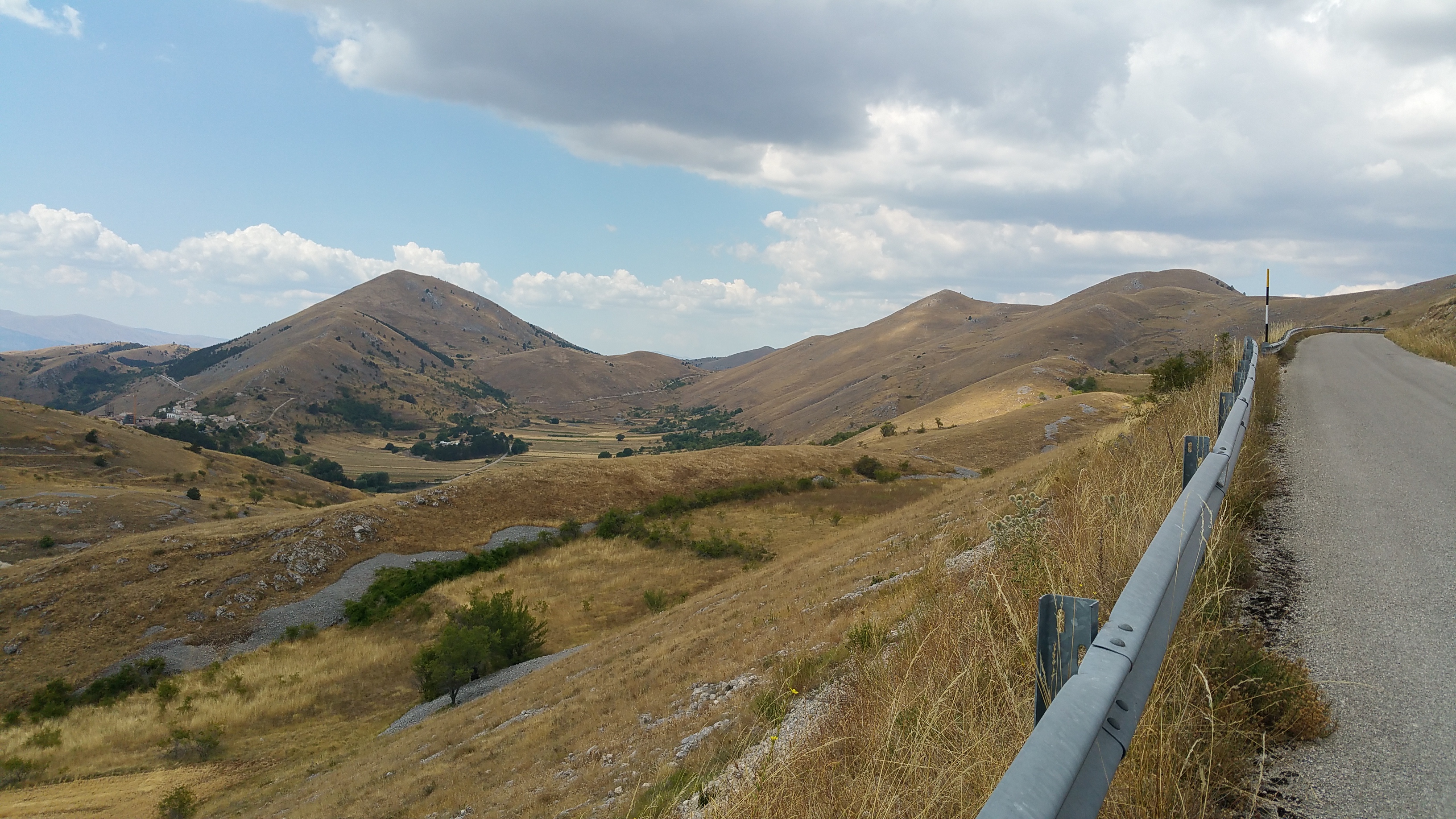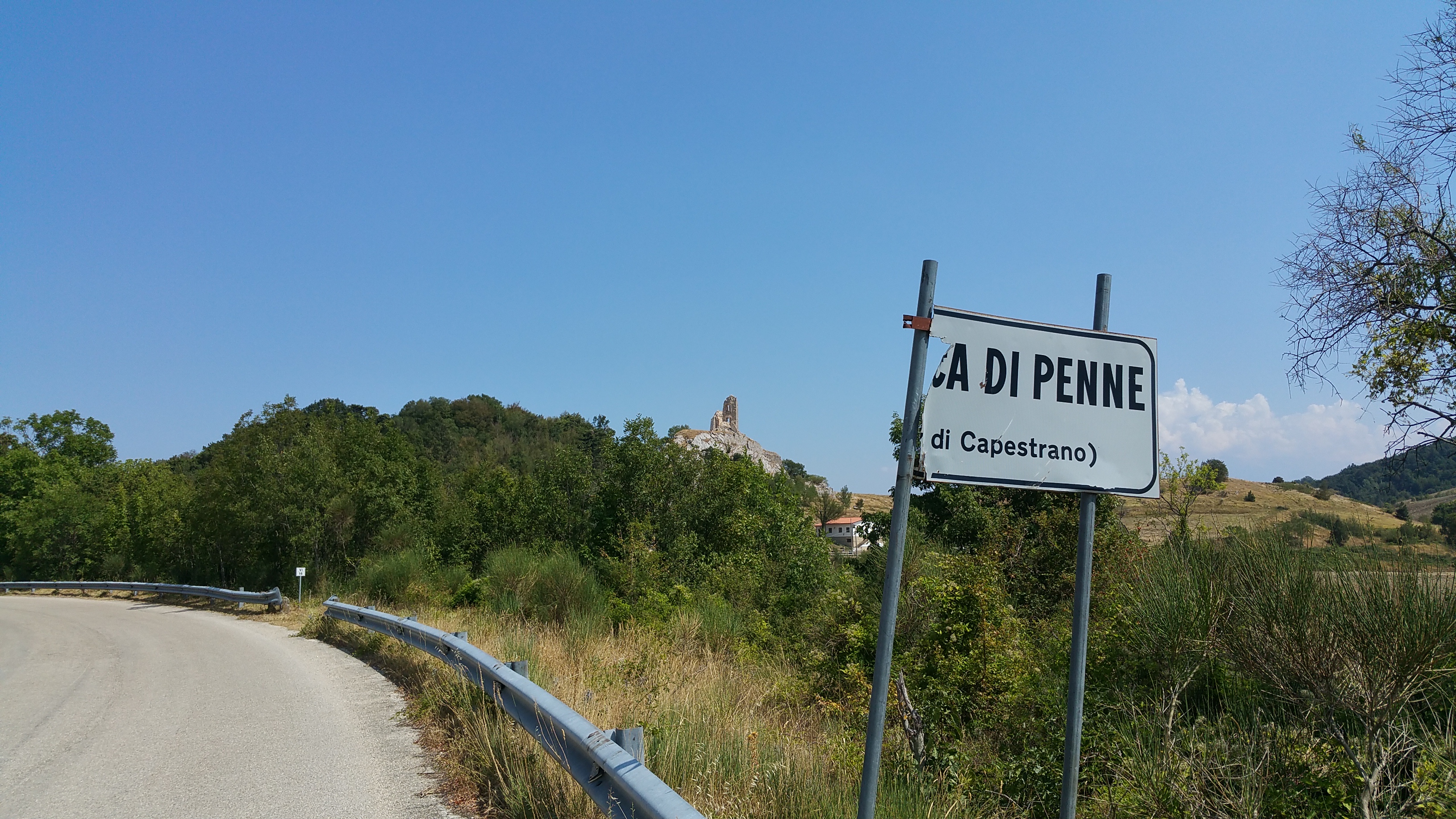 Riprendo la mia strada verso Castel del Monte e mi lascio alle spalle il meraviglioso altopiano; da qui scendo rapidissimo verso Ofena per poi risalire sulla 696 di Forca di Penne. Per fortuna basta risalire poco in quota per sentire di nuovo l’aria fresca nonostante il sole splendente.