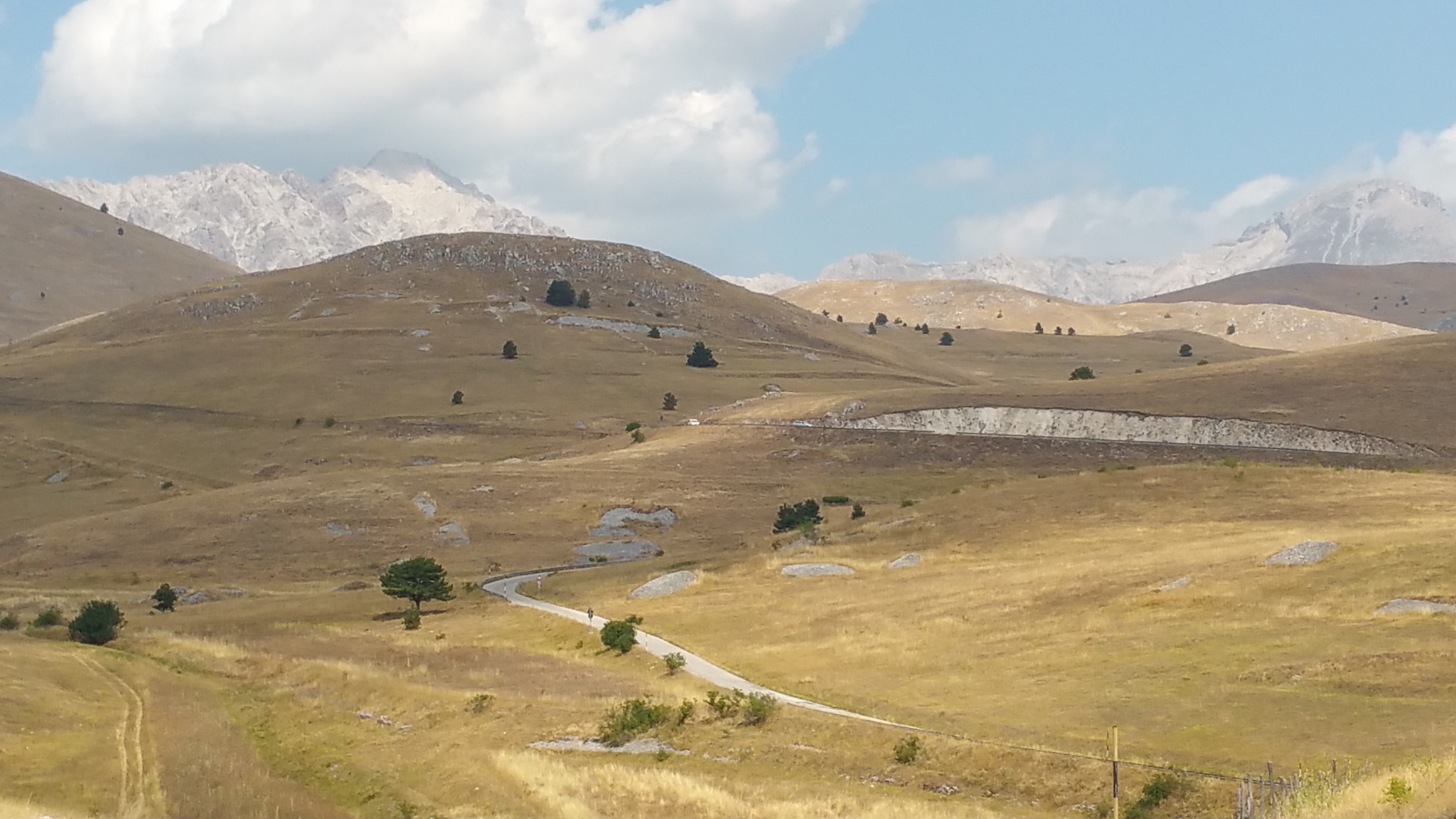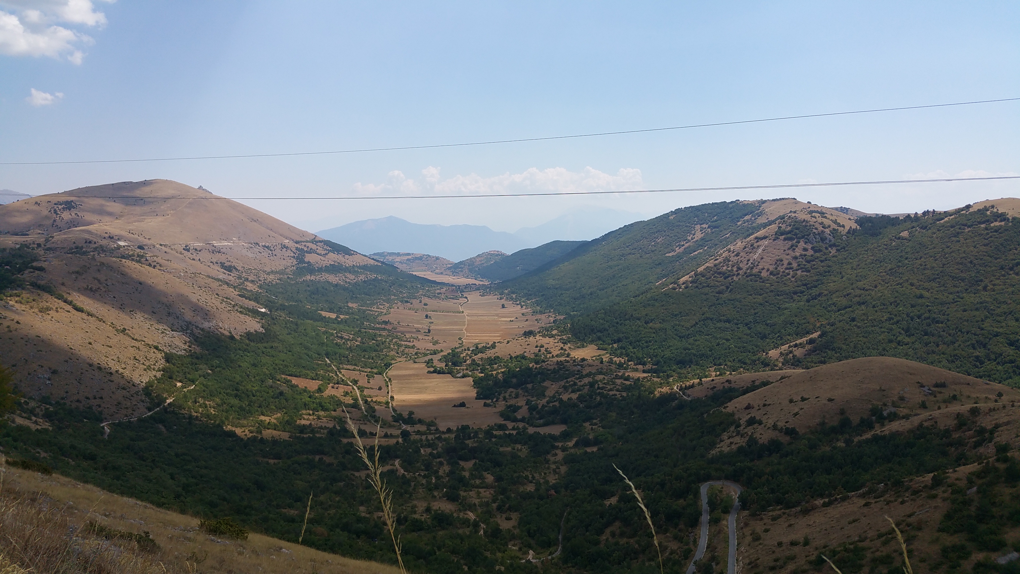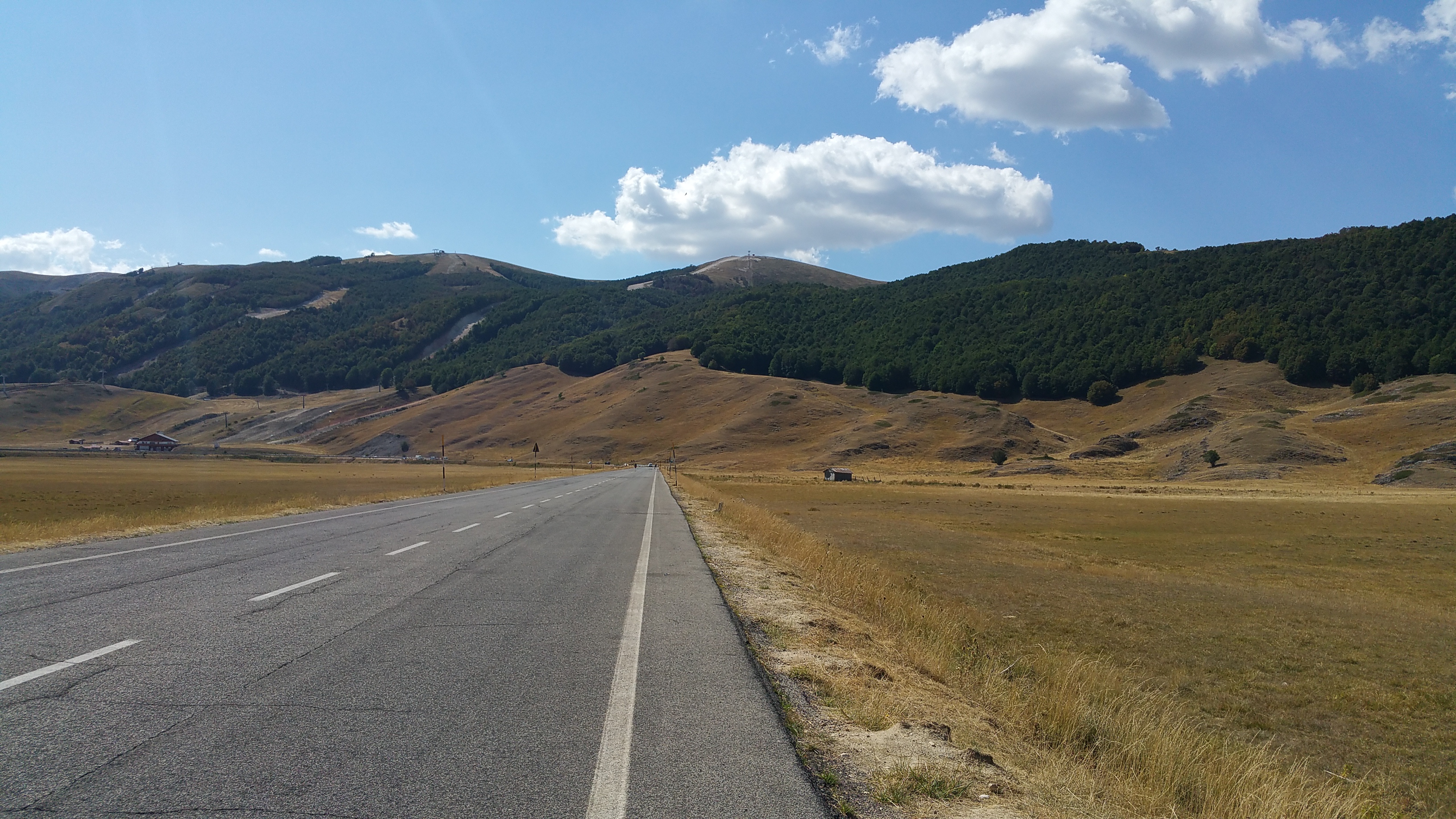 Riprendo la mia strada verso Castel del Monte e mi lascio alle spalle il meraviglioso altopiano; da qui scendo rapidissimo verso Ofena per poi risalire sulla 696 di Forca di Penne. Per fortuna basta risalire poco in quota per sentire di nuovo l’aria fresca nonostante il sole splendente.