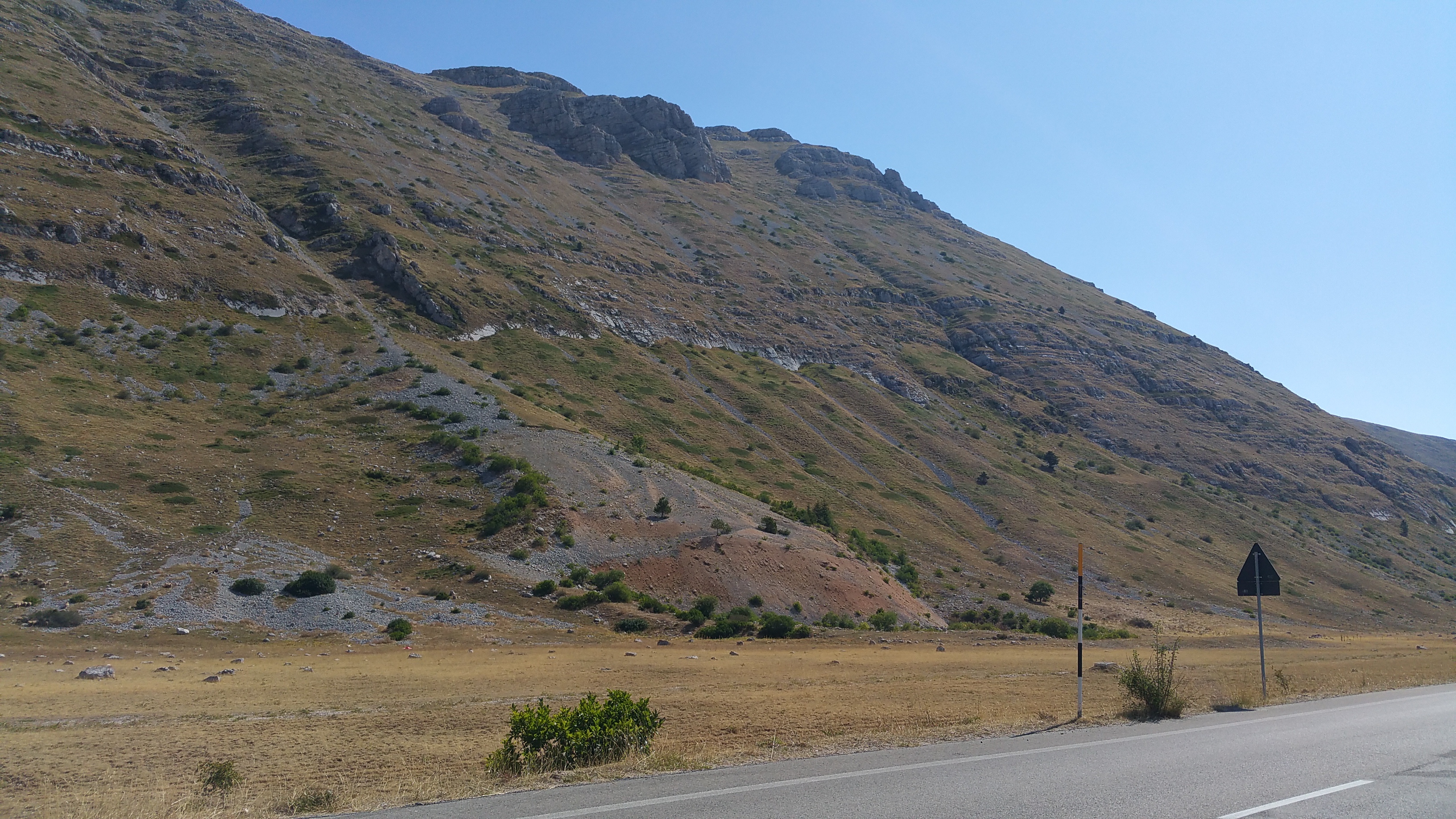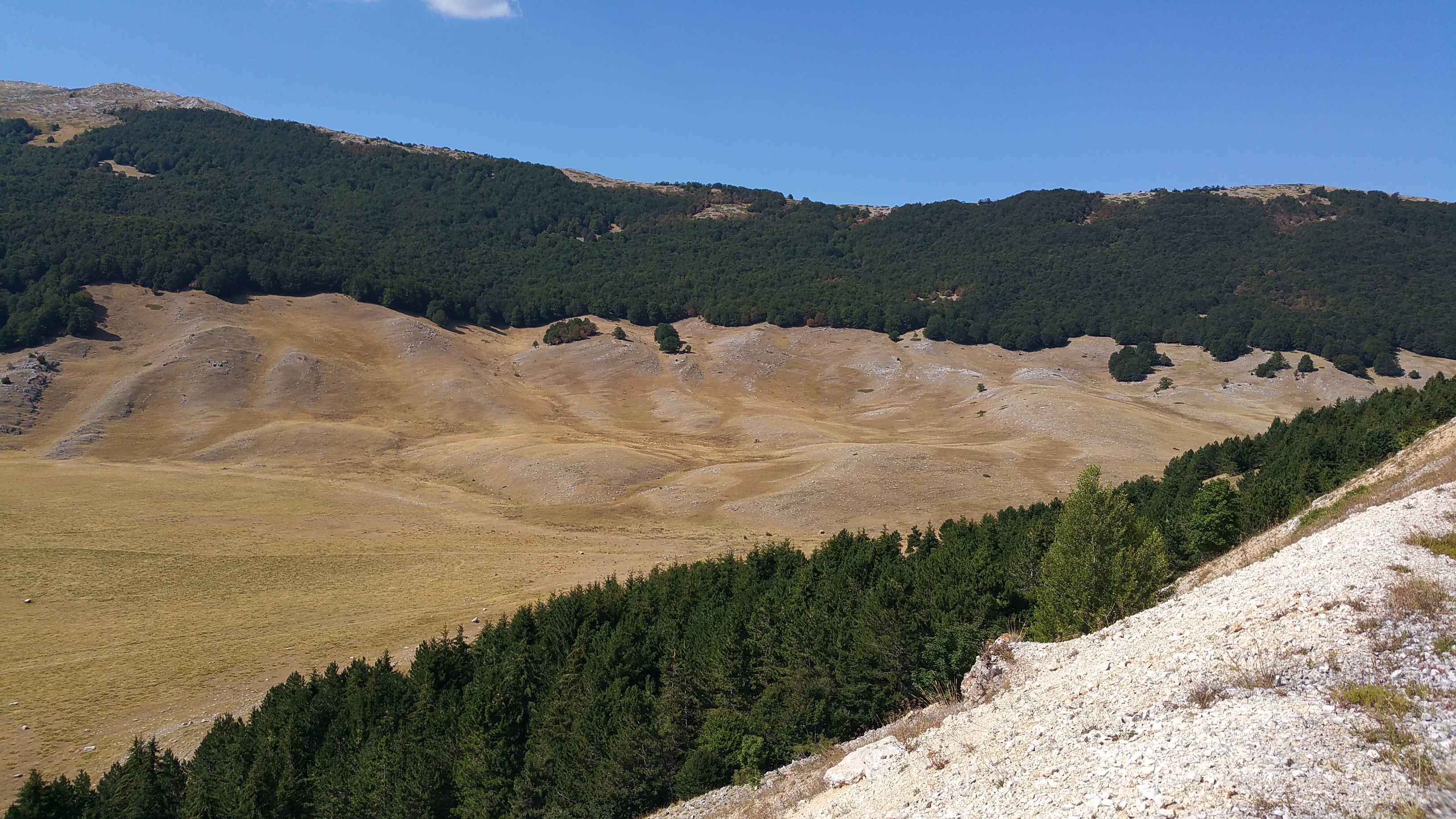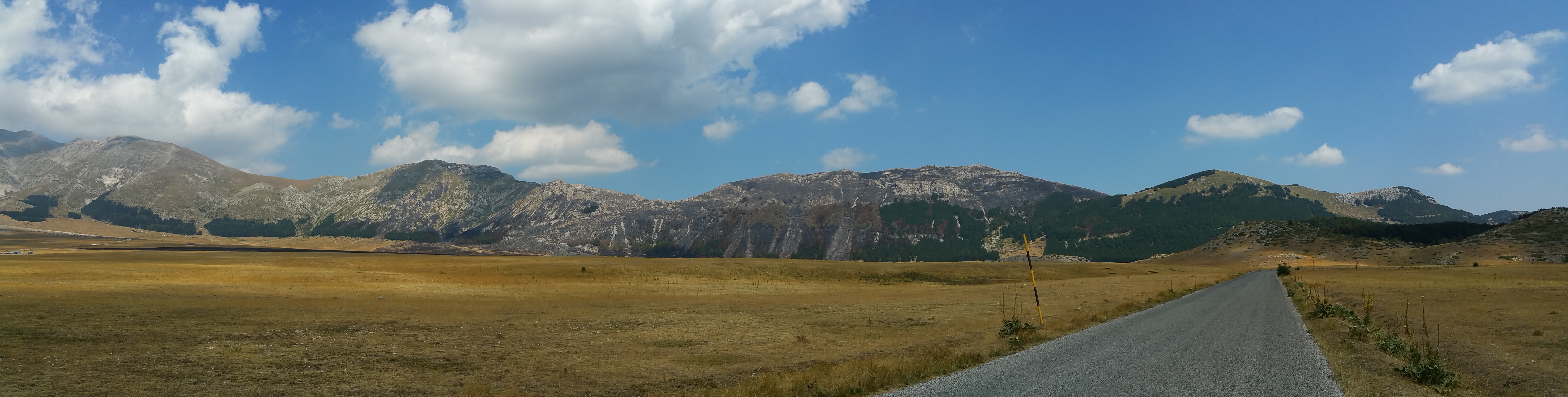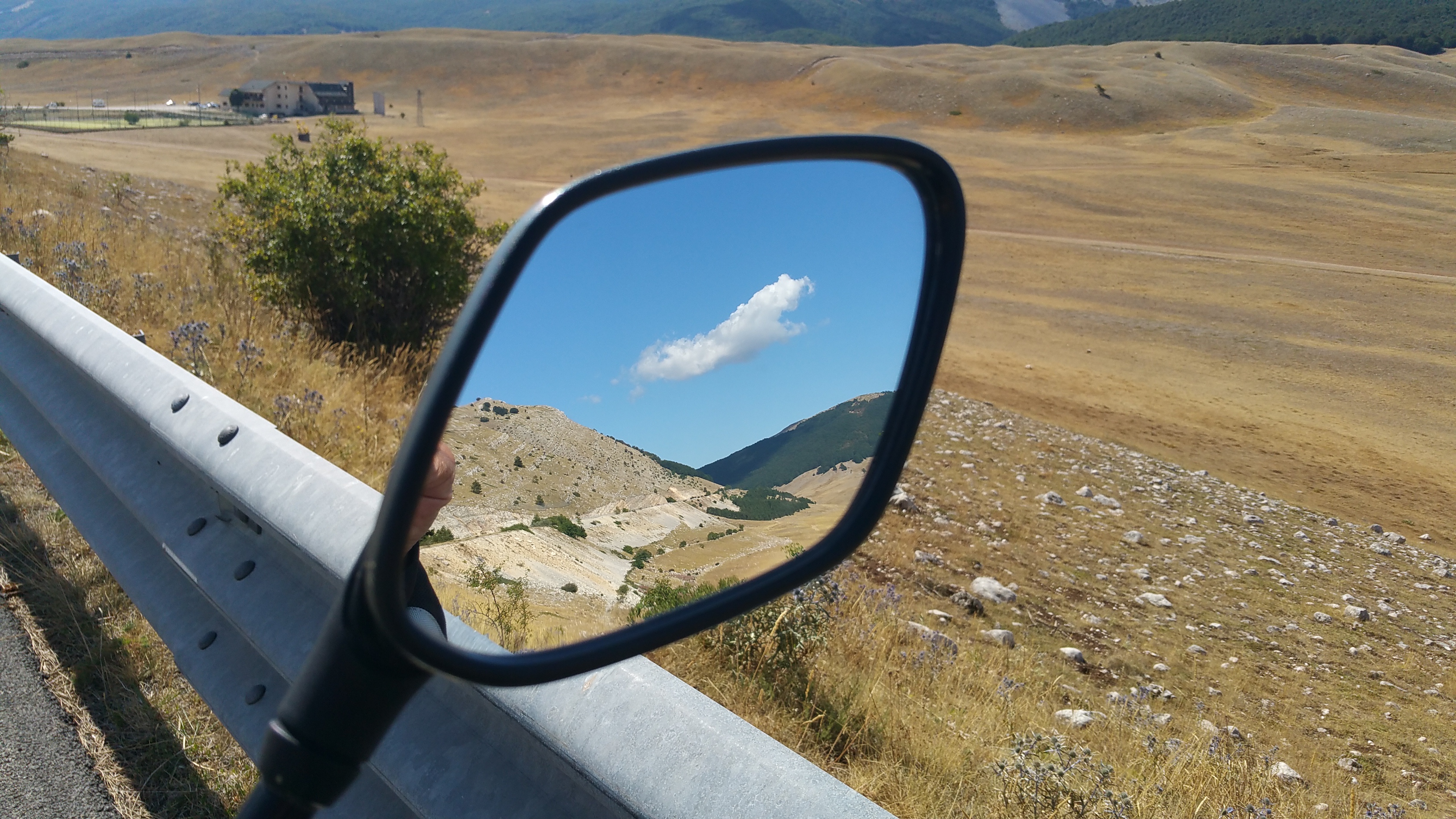 Riprendo la mia strada verso Castel del Monte e mi lascio alle spalle il meraviglioso altopiano; da qui scendo rapidissimo verso Ofena per poi risalire sulla 696 di Forca di Penne. Per fortuna basta risalire poco in quota per sentire di nuovo l’aria fresca nonostante il sole splendente.