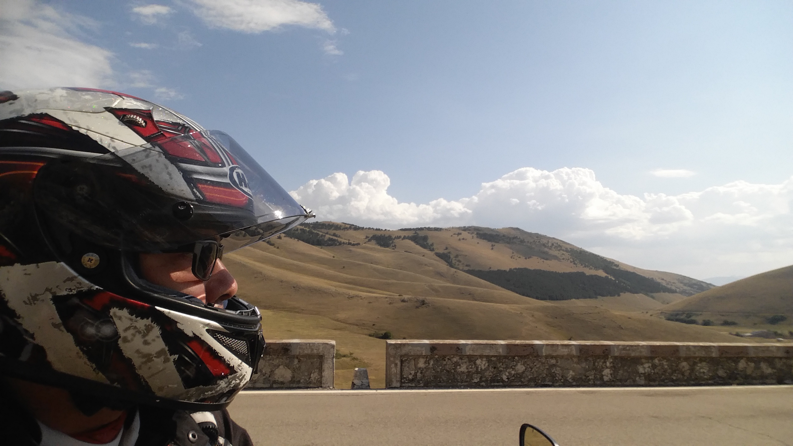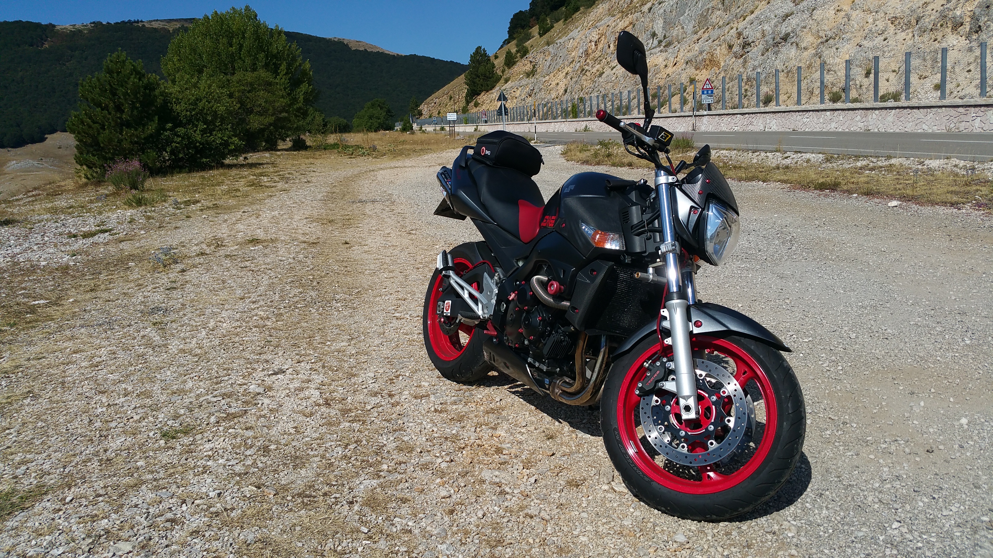 Strade? Direi spesso stradelle tanto ormai lo stato di manutenzione anche delle statali più importanti è tale che non riesci a fare cento metri senza un sobbalzo, una buchetta, una sconnessione qualsiasi. E questo non aiuta certo a godersi la strada: spesso capita che vedi una bella curva in arrivo, ti prepari ad impostarla per bene e proprio poco prima della piega zac! una bella buchetta ti scompone un minimo ma quanto basta per farti passare la voglia. Per non parlare di quelle spaccature dell’asfalto che ti aspettano proprio in piena traiettoria.