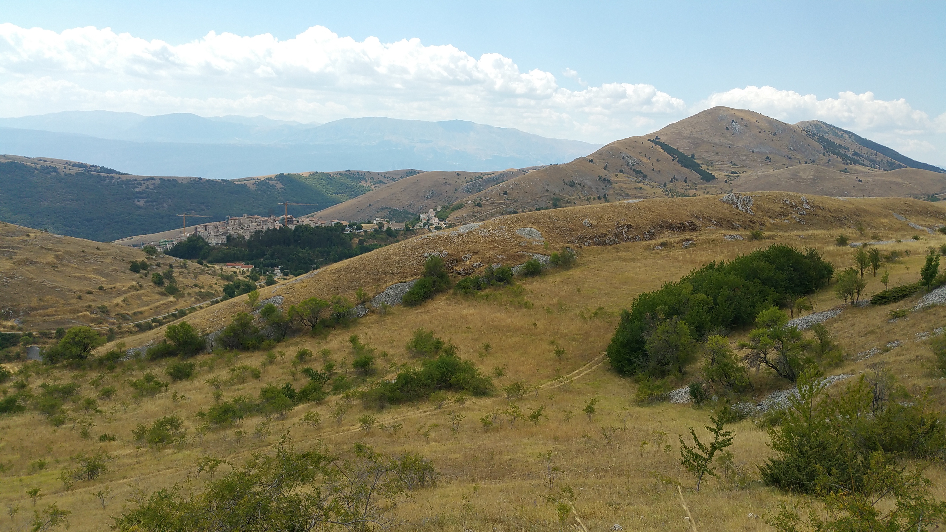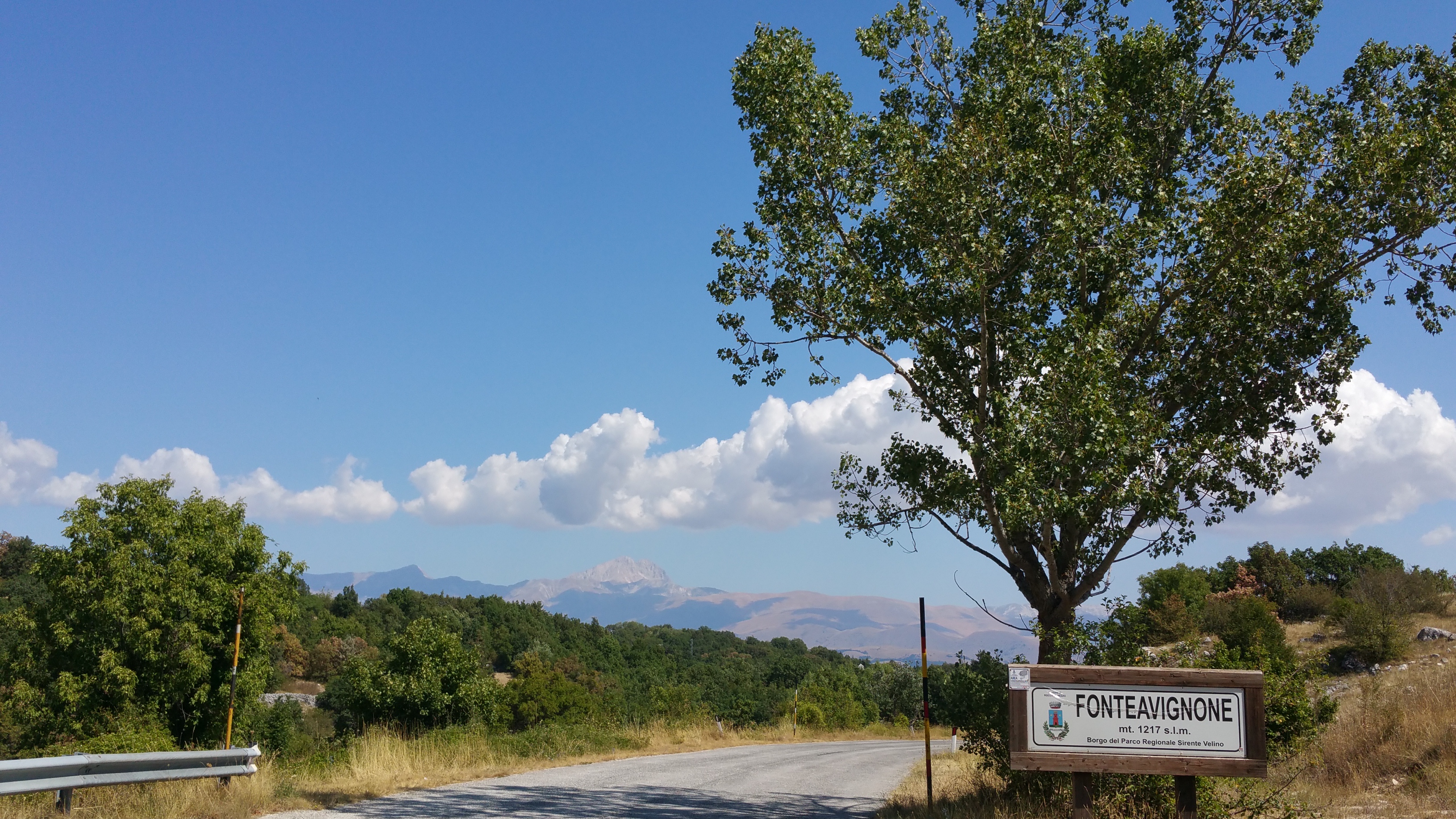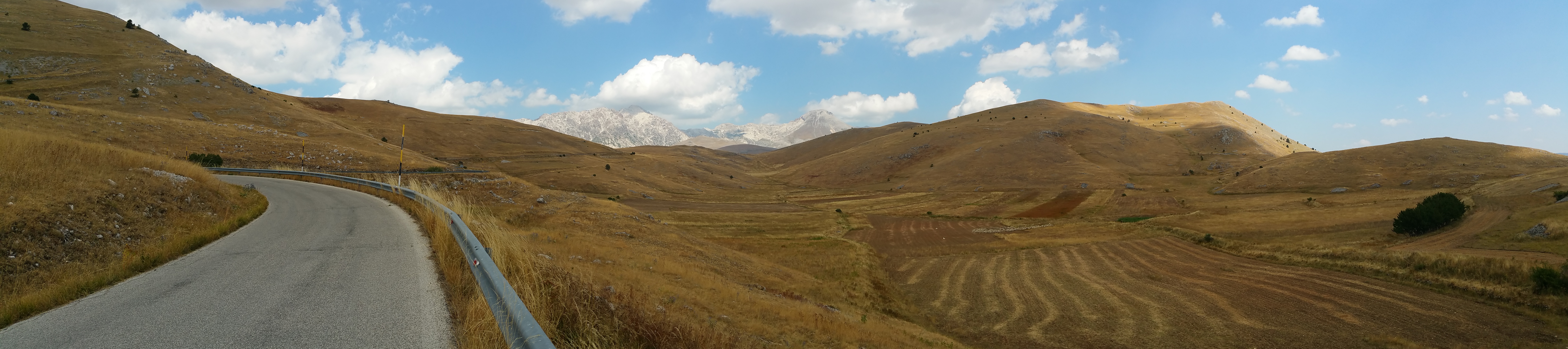 La direzione è Santo Stefano di Sessanio e quindi scendo verso la valle aquilana passando da Terranera e Fontavignone, il panorama sull’altopiano delle Rocche è sempre bellissimo. Solito traffico lungo la zona industriale di Bazzano e finalmente sono a Barisciano: mi fermo a mangiare qualcosa sotto il pergolato di un piccolo bar in paese.