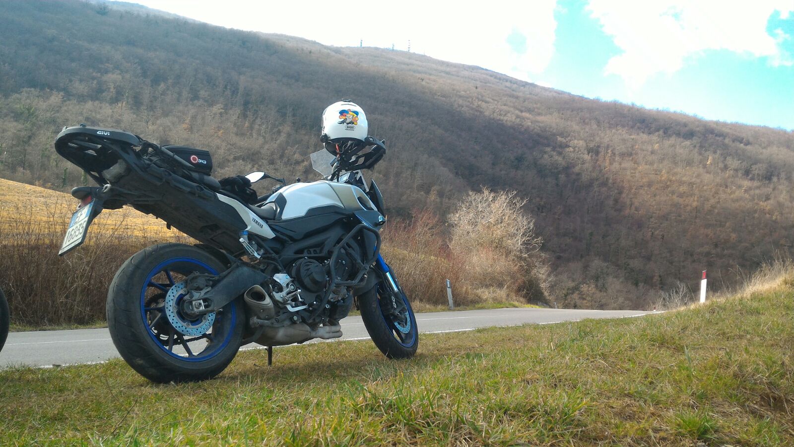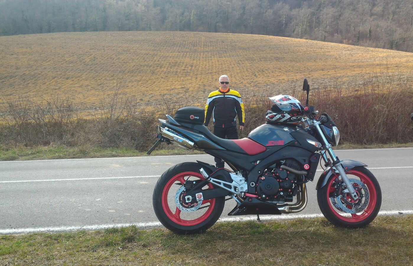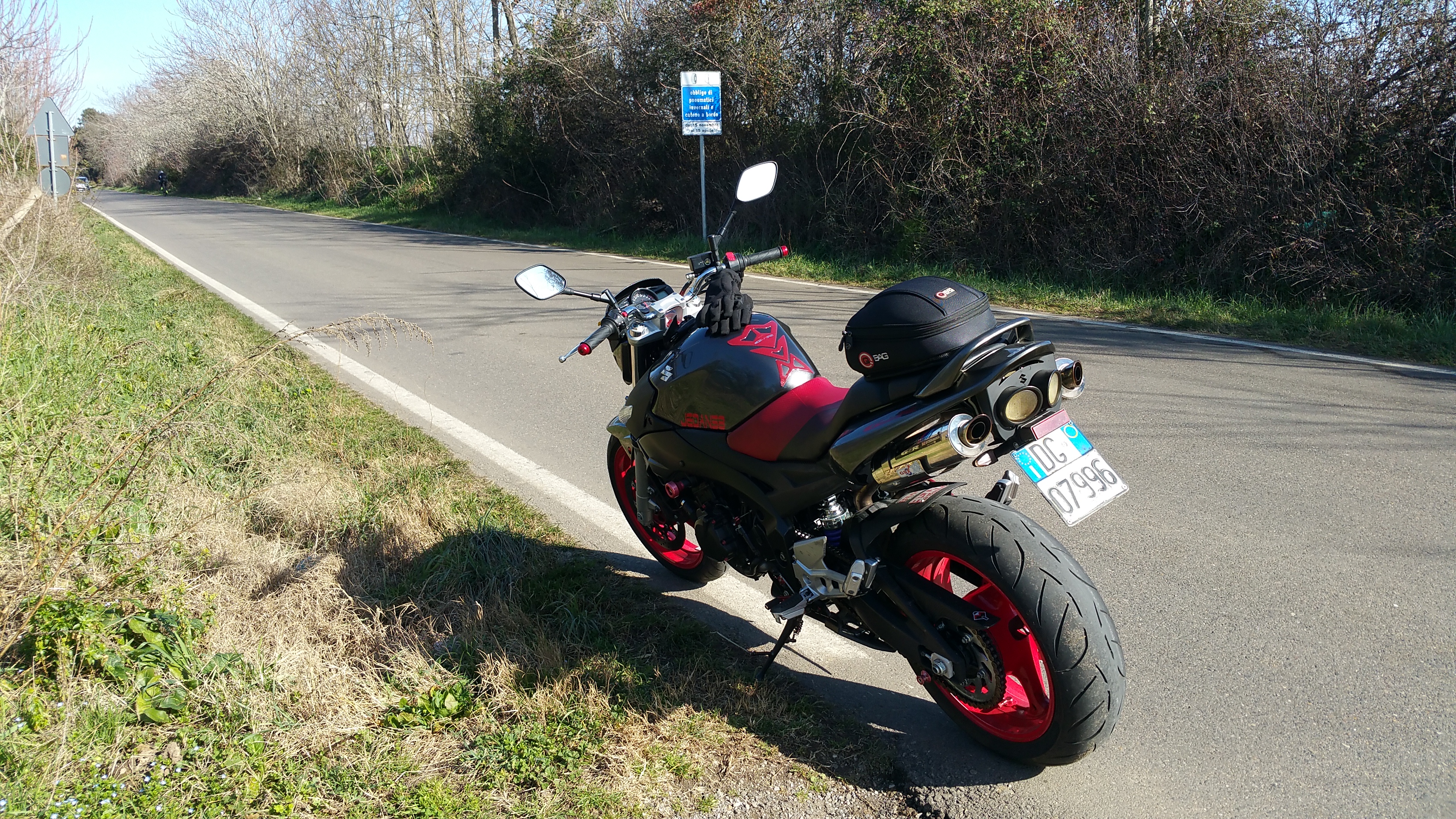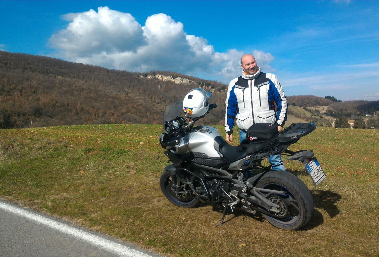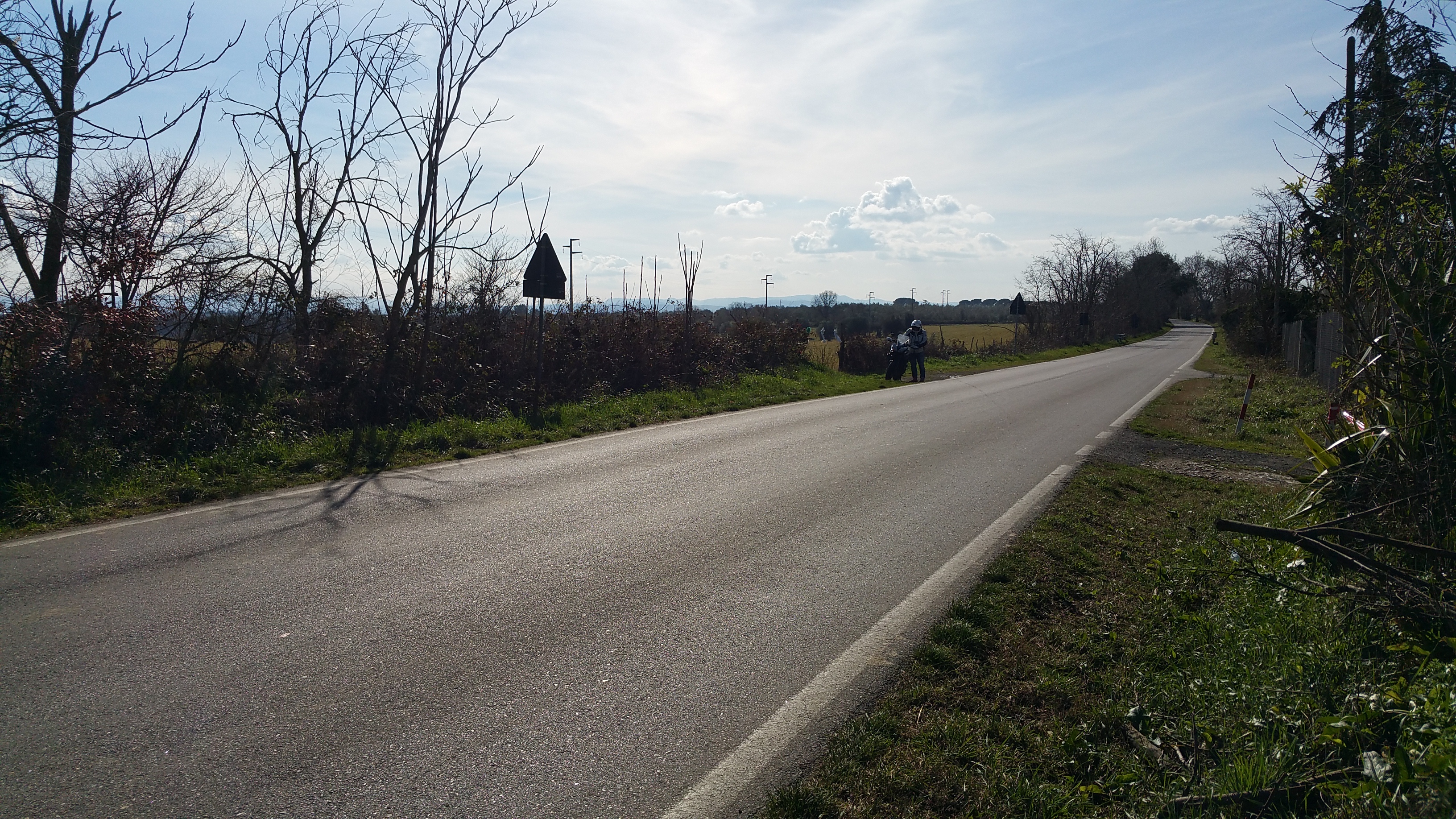 Giornata decisamente mite, soltanto qualche nuvolone di passaggio che a tratti raramente celava il sole, ed un’andatura di passeggio senza fretta e senza mete precise, improvvisando. Va detto che comunque, laddove la strada lo permetteva, sempre molto asciutta, c’è stato spazio comunque per un’andatura divertente e più tecnica.