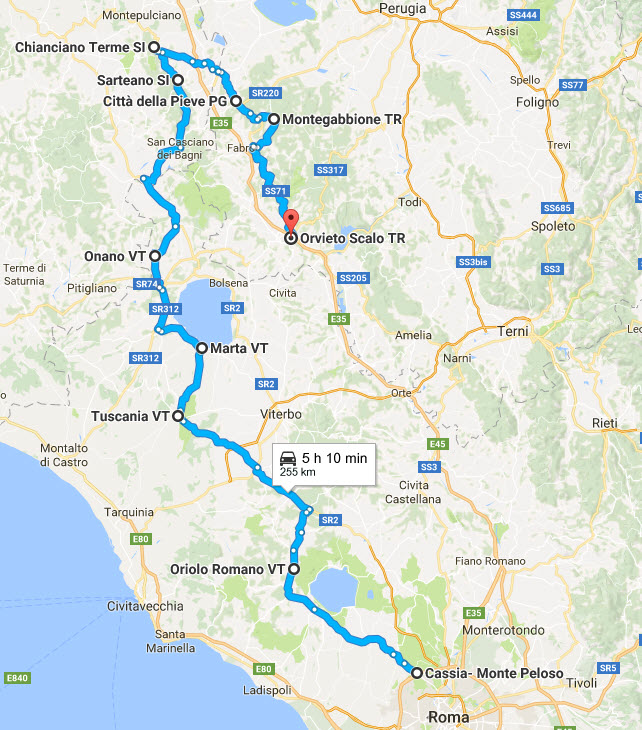 Senza una meta precisa abbiamo bighellonato su strade molto note ma sempre gradevolissime, dalla Braccianese alla Tuscia viterbese, un breve tratto di Cassia fino a deviare per Sarteano, tra i calanchi del senese meridionale e per concludere i bei paesaggi della SS 71 Umbro-Casentinese percorsa oggi ancora una volta tra Città della Pieve ed Orvieto e tante altre volte in tutta la sua estensione.