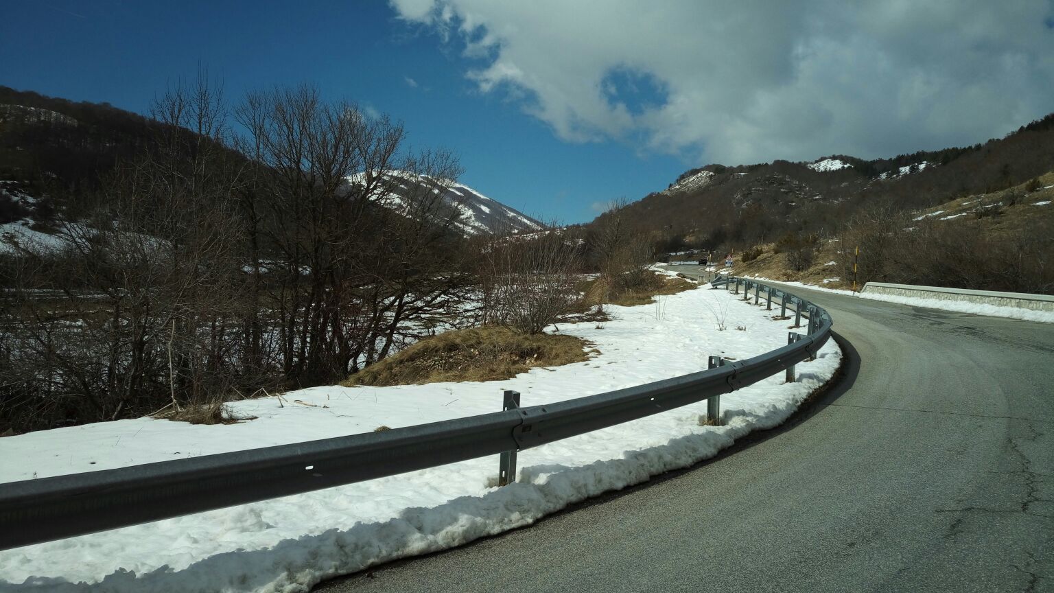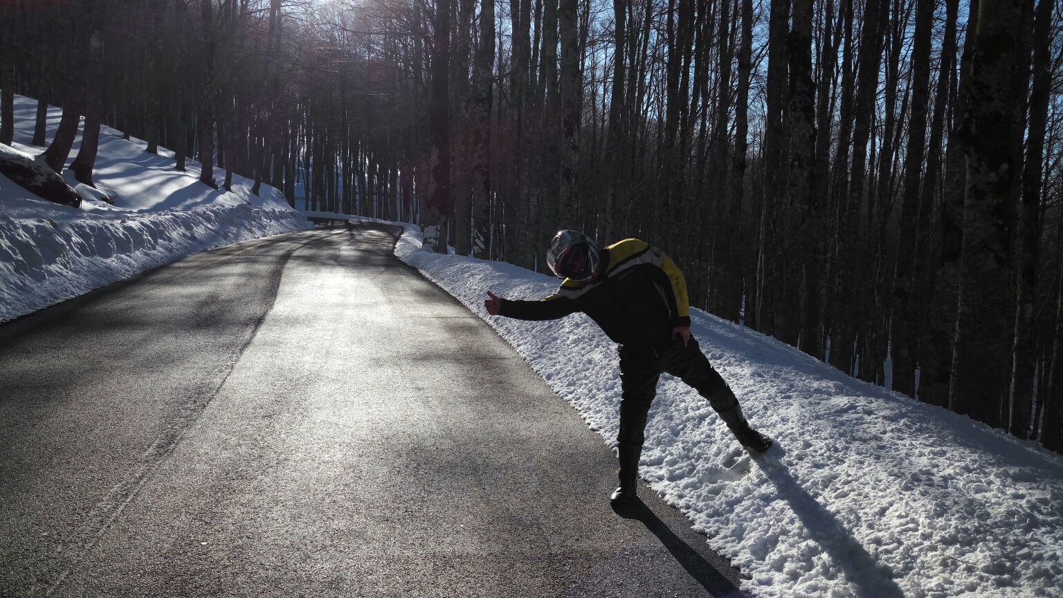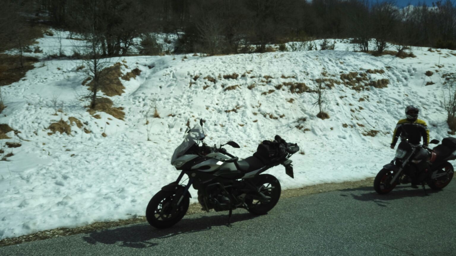 Dopo molto tempo diciamo che siamo andati a cercarci panorami innevati e data l’abbondanza dello scorso inverno non è stato difficile. Strade comunque particolarmente asciutte e pulite nonostante i tratti in cui la neve ci ha accompagnato ai lati della strada per parecchi chilometri.
