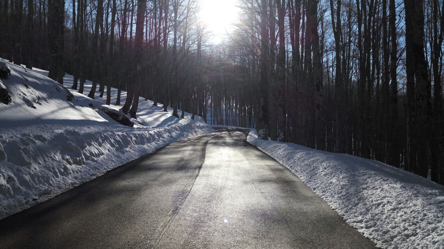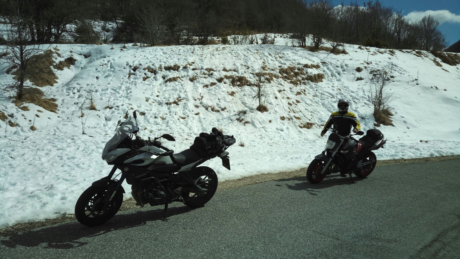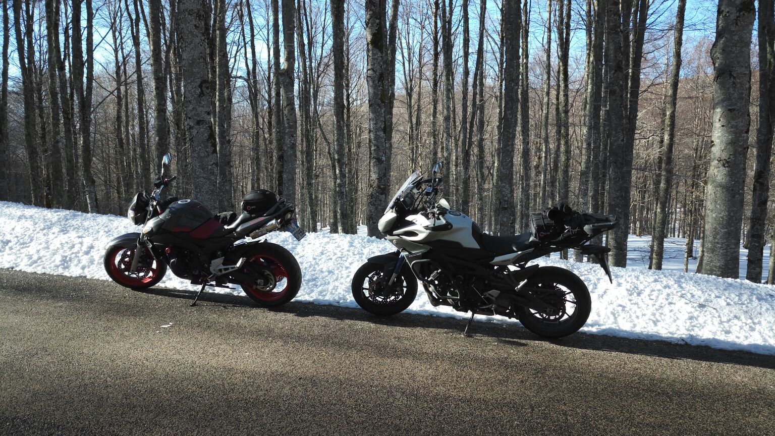 Dopo molto tempo diciamo che siamo andati a cercarci panorami innevati e data l’abbondanza dello scorso inverno non è stato difficile. Strade comunque particolarmente asciutte e pulite nonostante i tratti in cui la neve ci ha accompagnato ai lati della strada per parecchi chilometri.