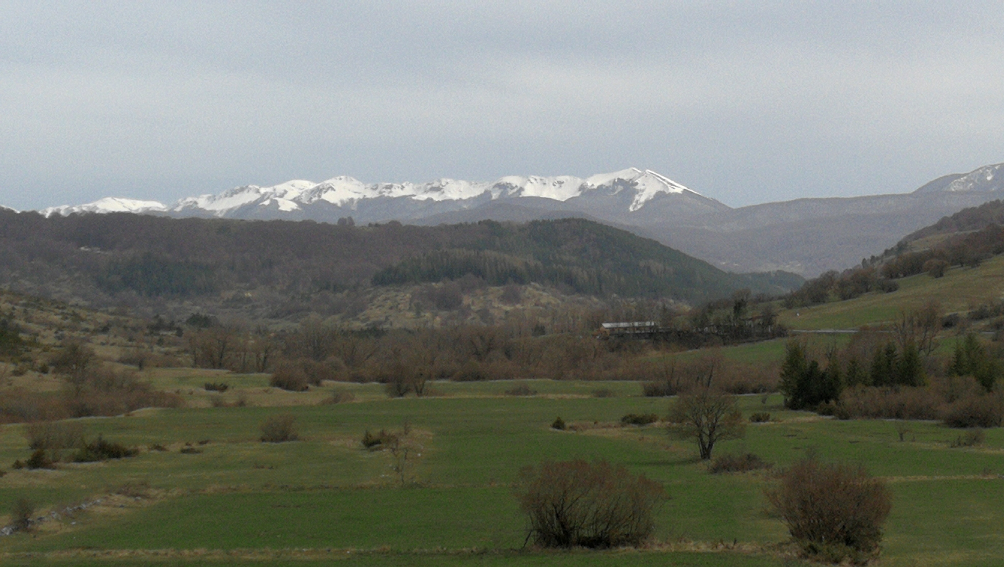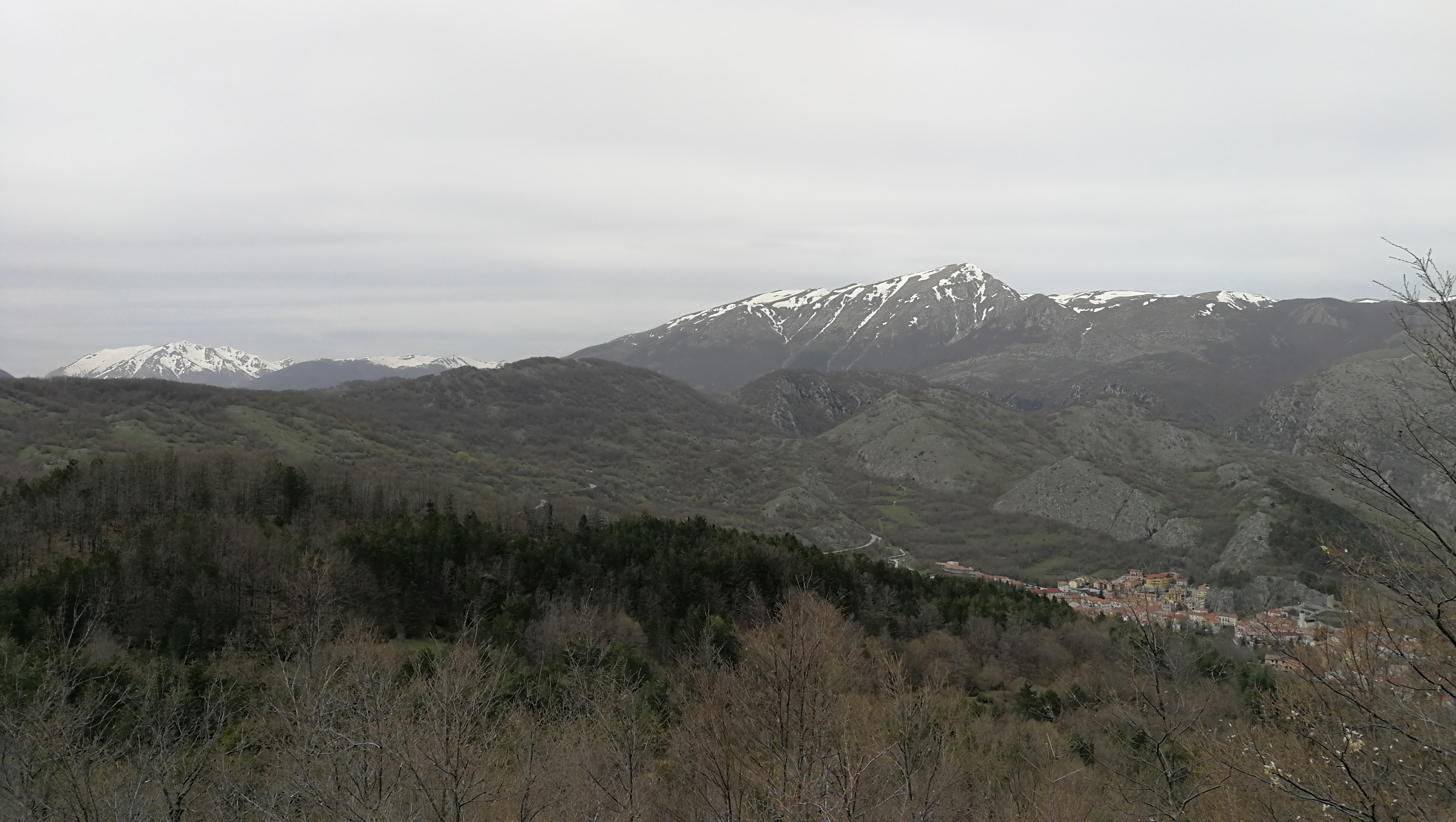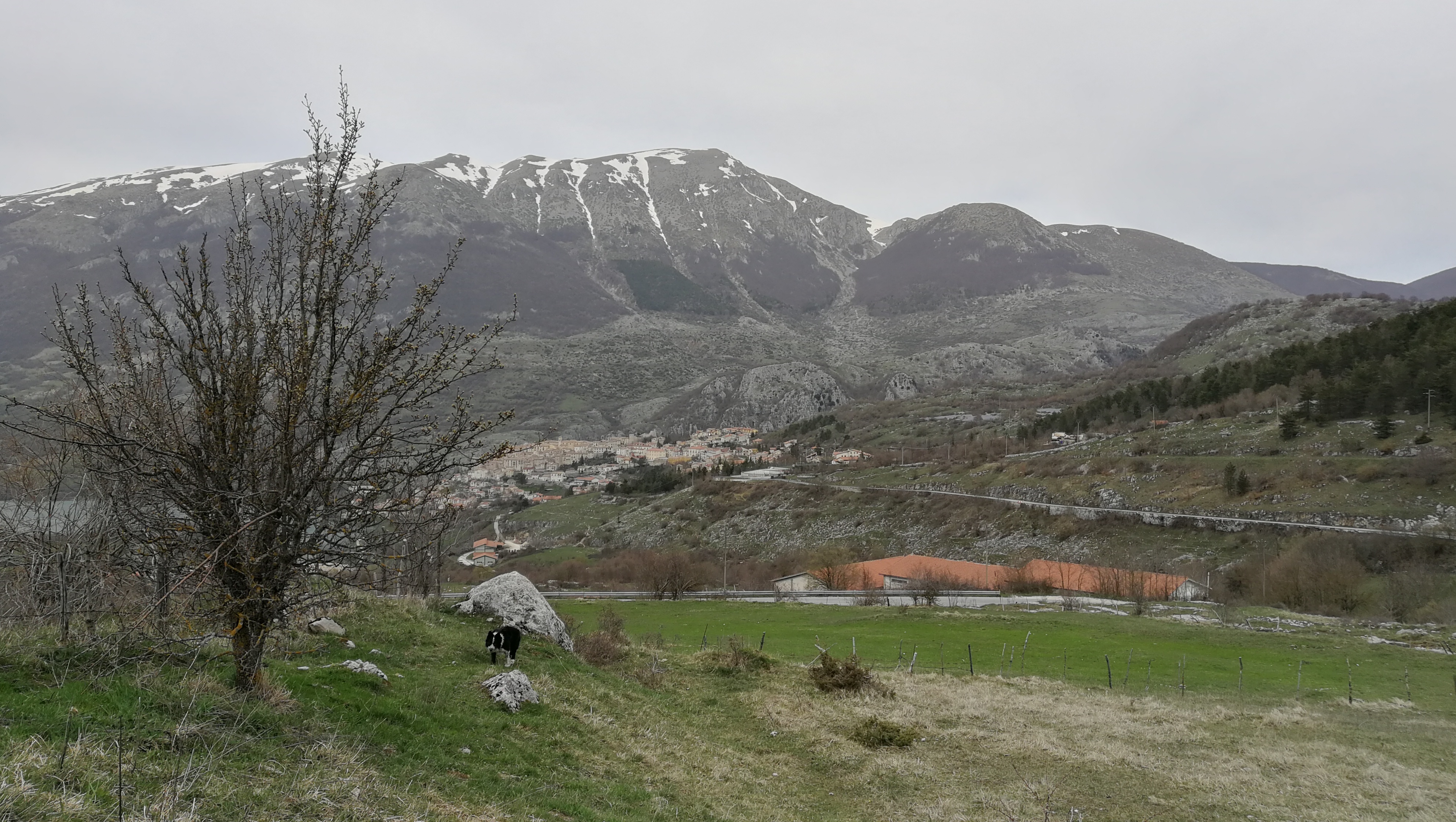 Ad Alfedena via lungo la val di Sangro, sulla SS 83 fino a Pescasseroli, senza soste se non per qualche fotografia o per ammirare il paesaggio. Fa sempre un bel calduccio, solo velature e foschie e vento fresco in quota. Decido per il Valico di Bisegna anziché quello di Gioia Vecchio: lo preferisco, è più raccolto, passa attraverso dei bei boschi e dall’alta lascia vedere bene il gruppo del Sirente ed in lontananza il Corno Grande del Gran Sasso anche se oggi era velato dalla foschia.