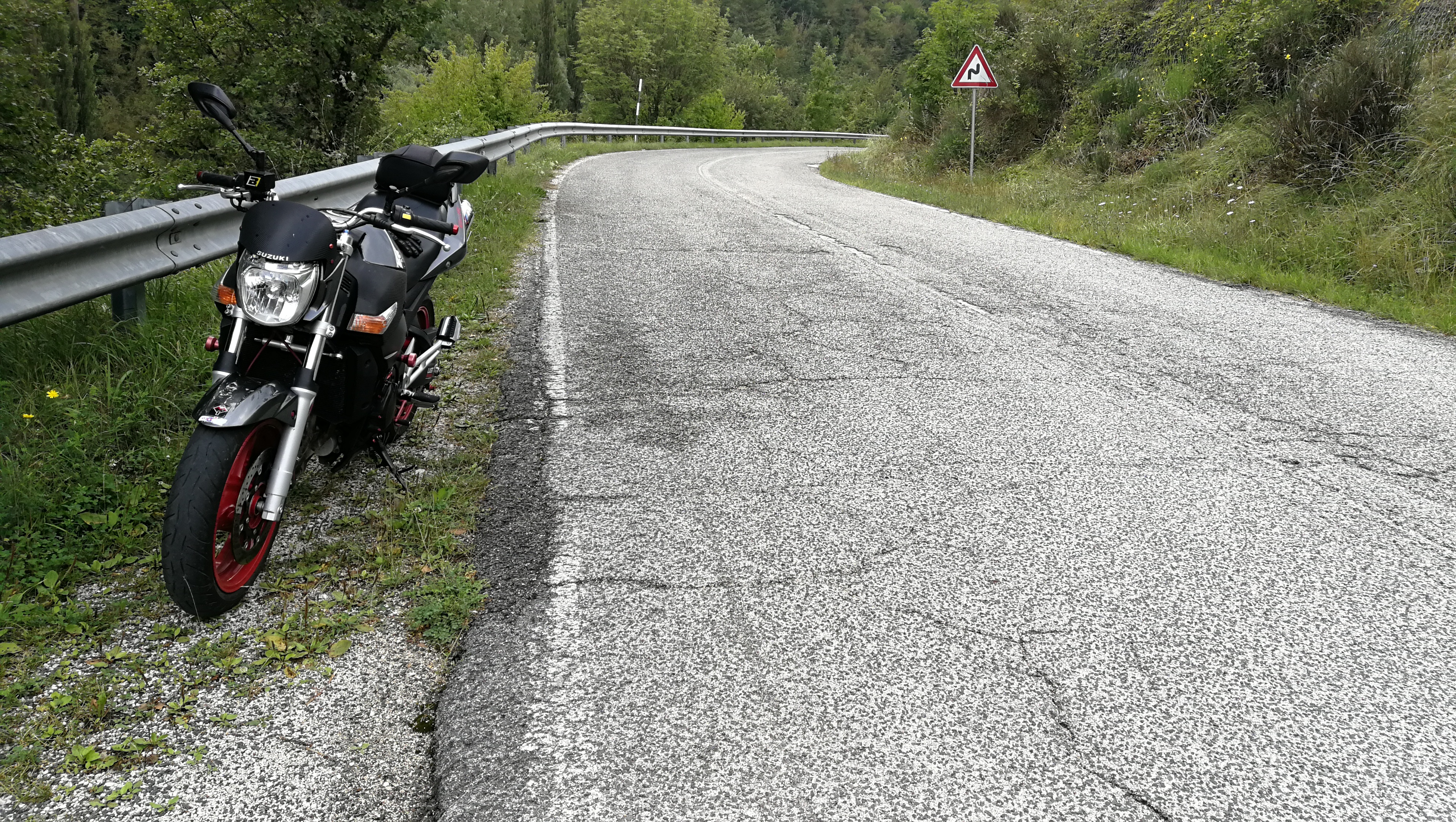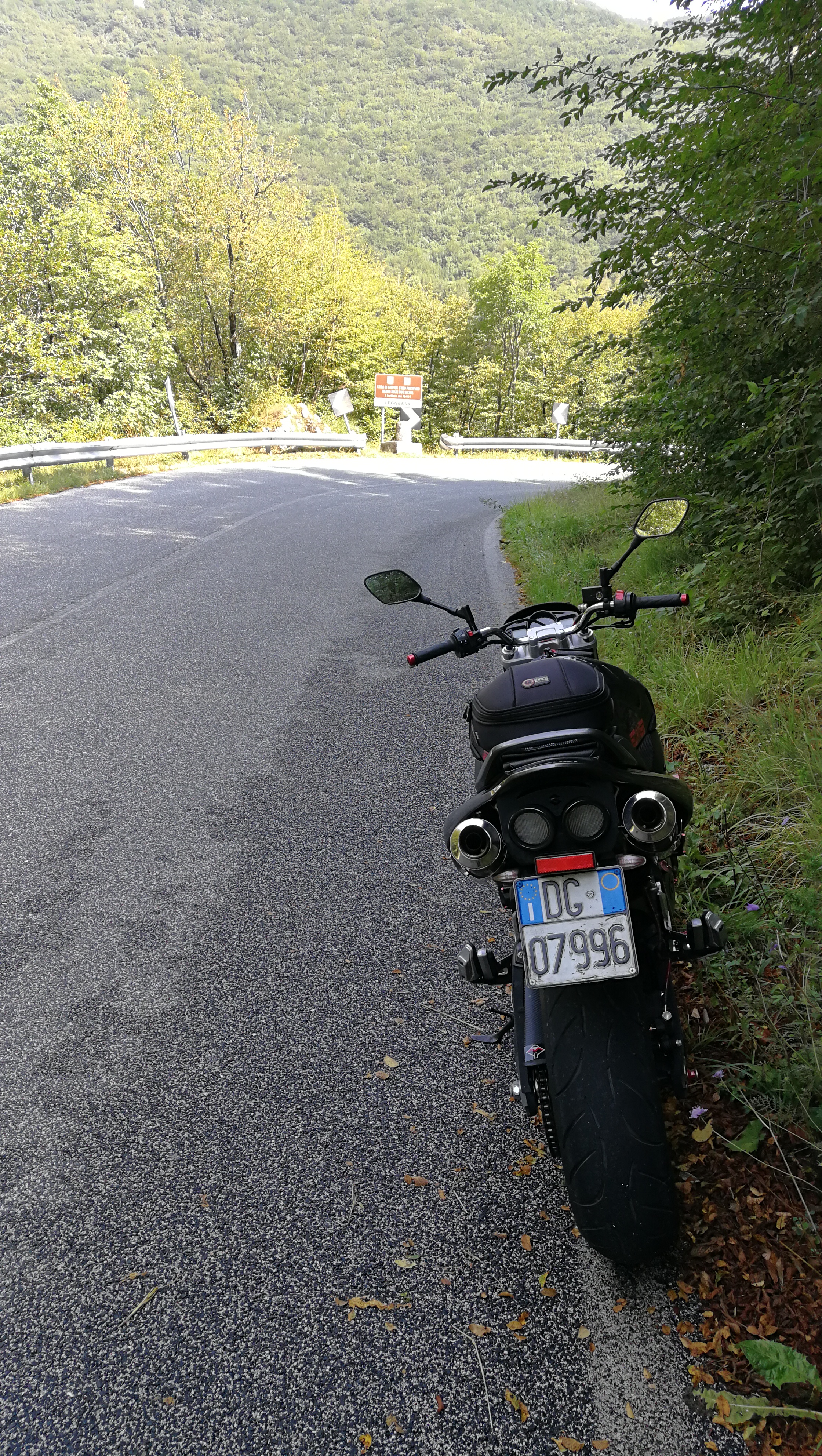 Primo cambio di programma. Anziché raggiungere Rieti via Contigliano-Cottanello proseguo per Terni, e da lì un pezzetto di SS 79 mi ha portato, costeggiando il bel lago di Piediluco, rapidamente verso Rivodutri e su a Morro Reatino: obiettivo, una delle più belle strade a zig-zag nel bosco da percorrere in scioltezza. Occhio alle pattuglie dei Carabinieri, non è difficile trovarne in agguato.