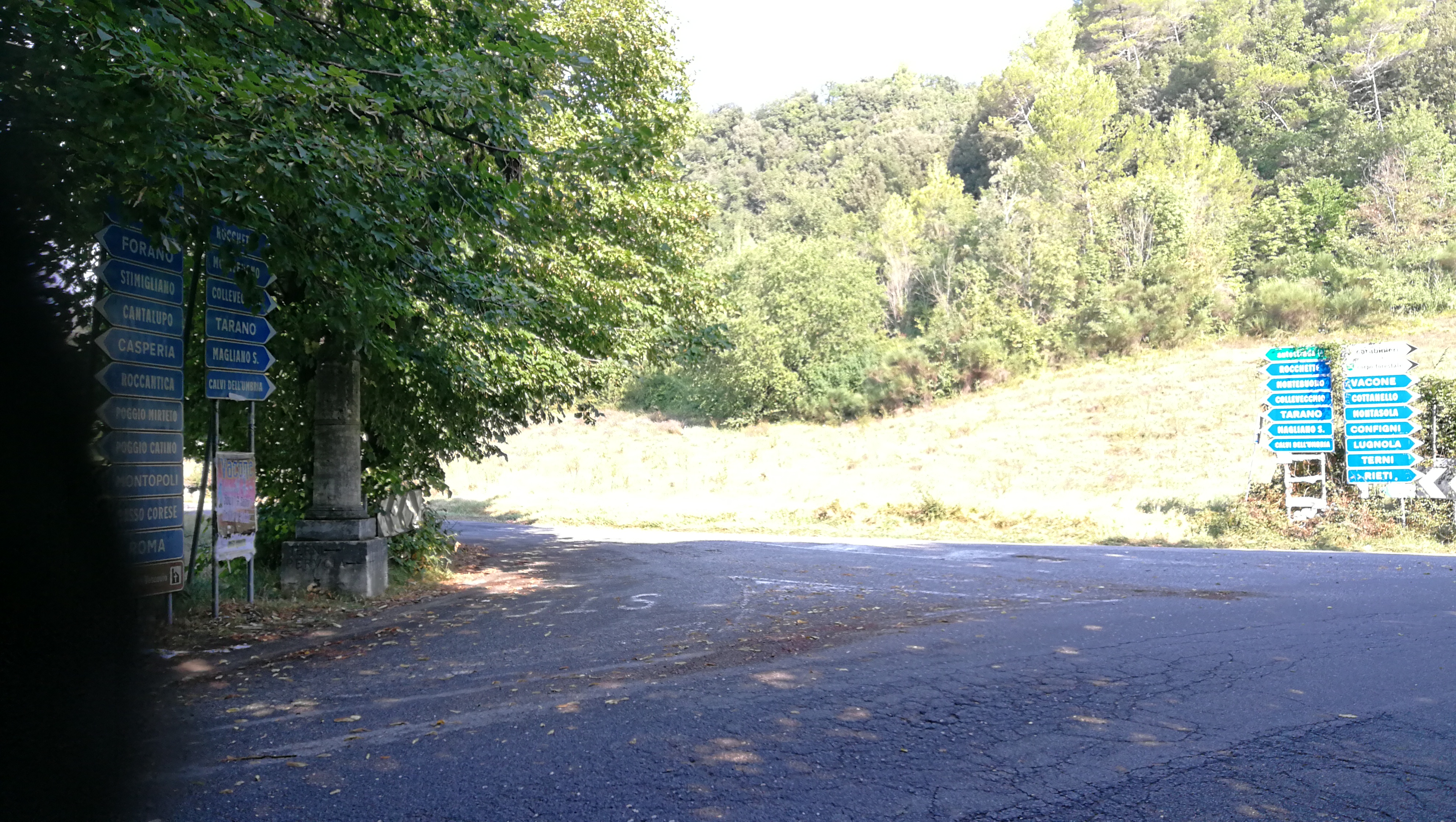 Partito come al solito di buon’ora alle 9:14 ero già un bel pezzo avanti sulla SS 313, bella strada che si snoda sul fondovalle dei colli della Sabina, se non fosse, come al solito, per l’asfalto spesso malconcio e per i postumi di un temporale notturno che qua e là aveva sparso fanghiglia o brecciolino!