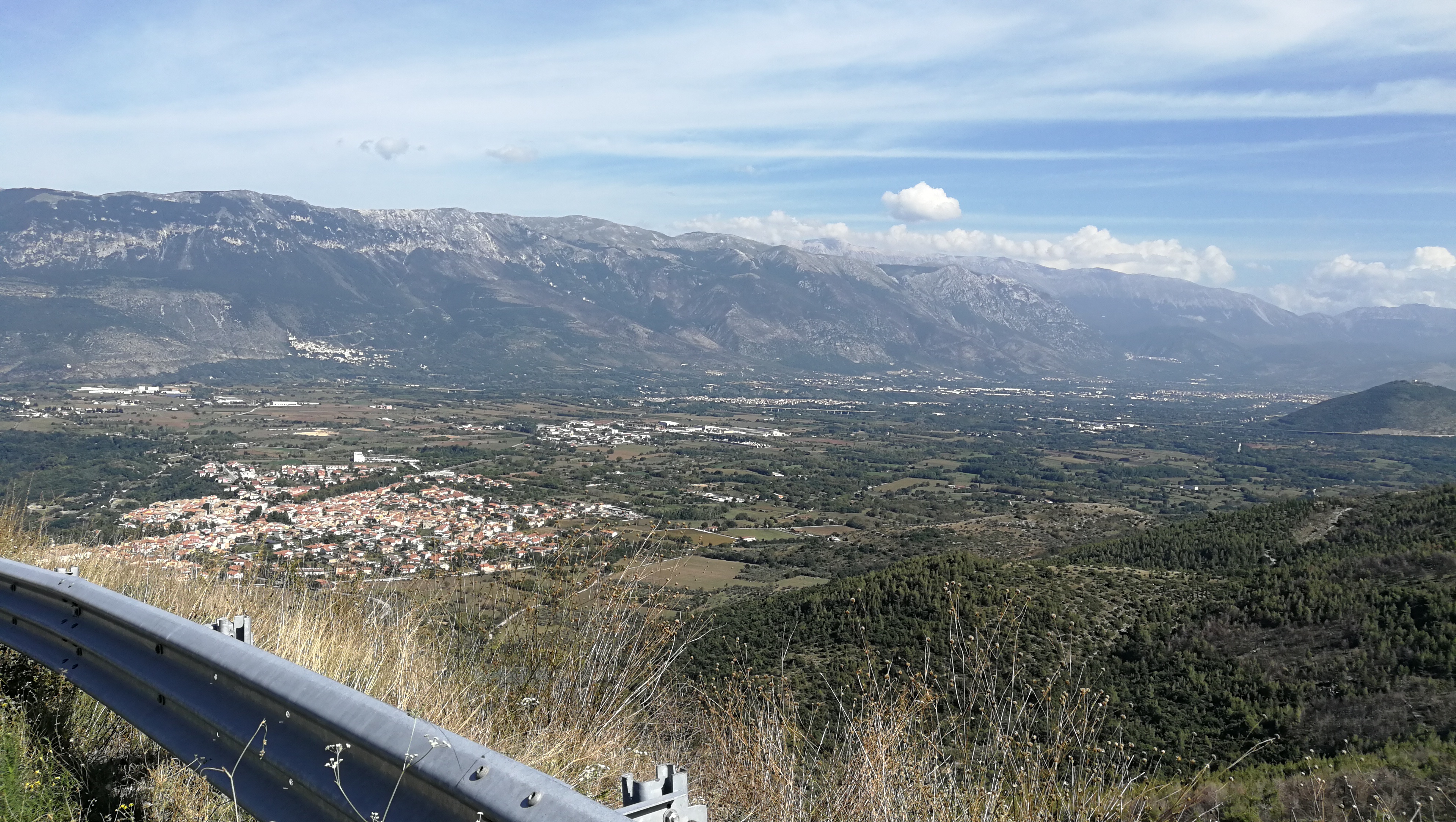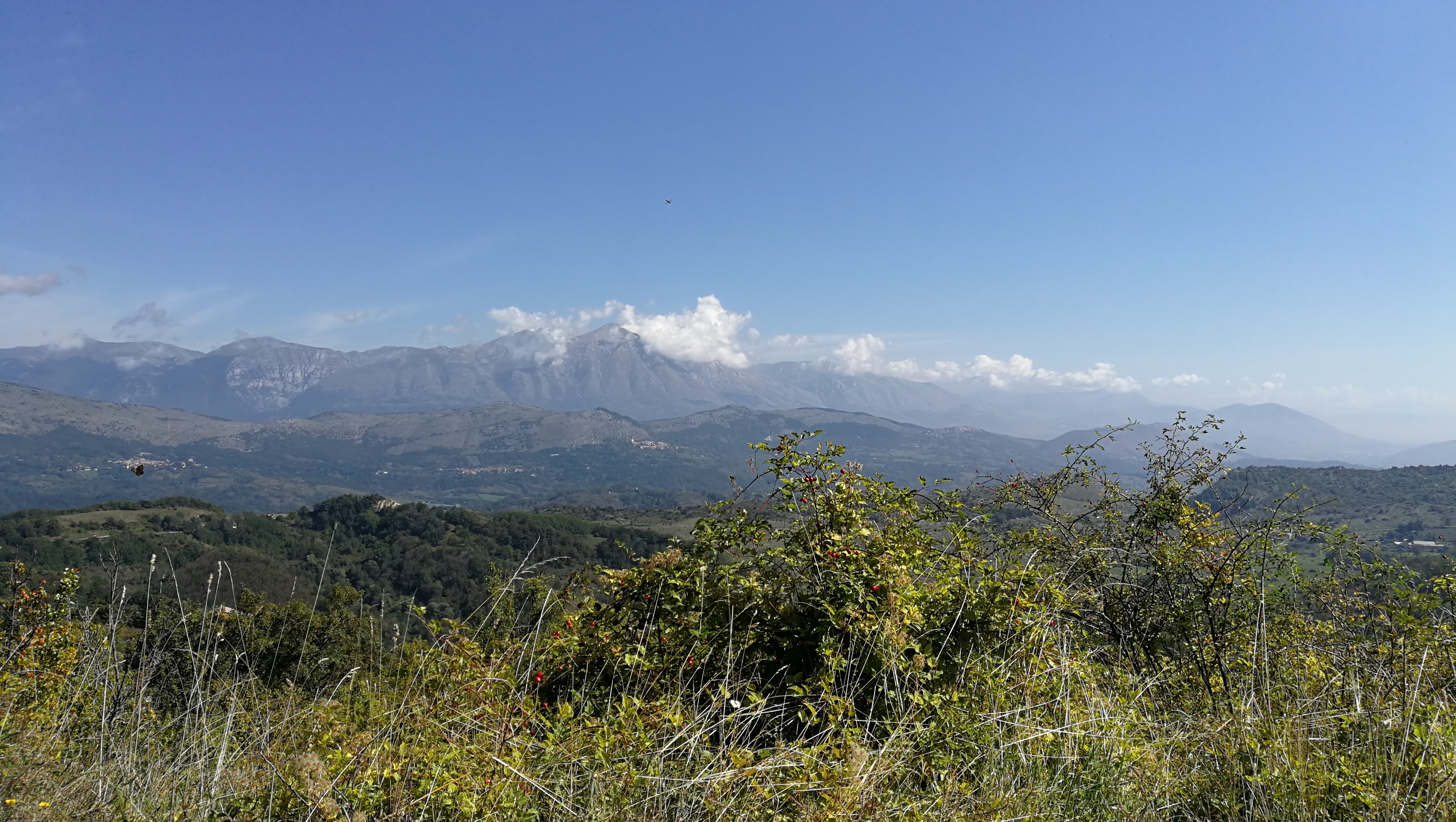 E così deviazione da Goriano Sicoli e tutto sommato il panorama sulla valle di Pratola Peligna con la Maiella imponente sullo sfondo merita sempre. Davvero imponente il massiccio della Maiella.