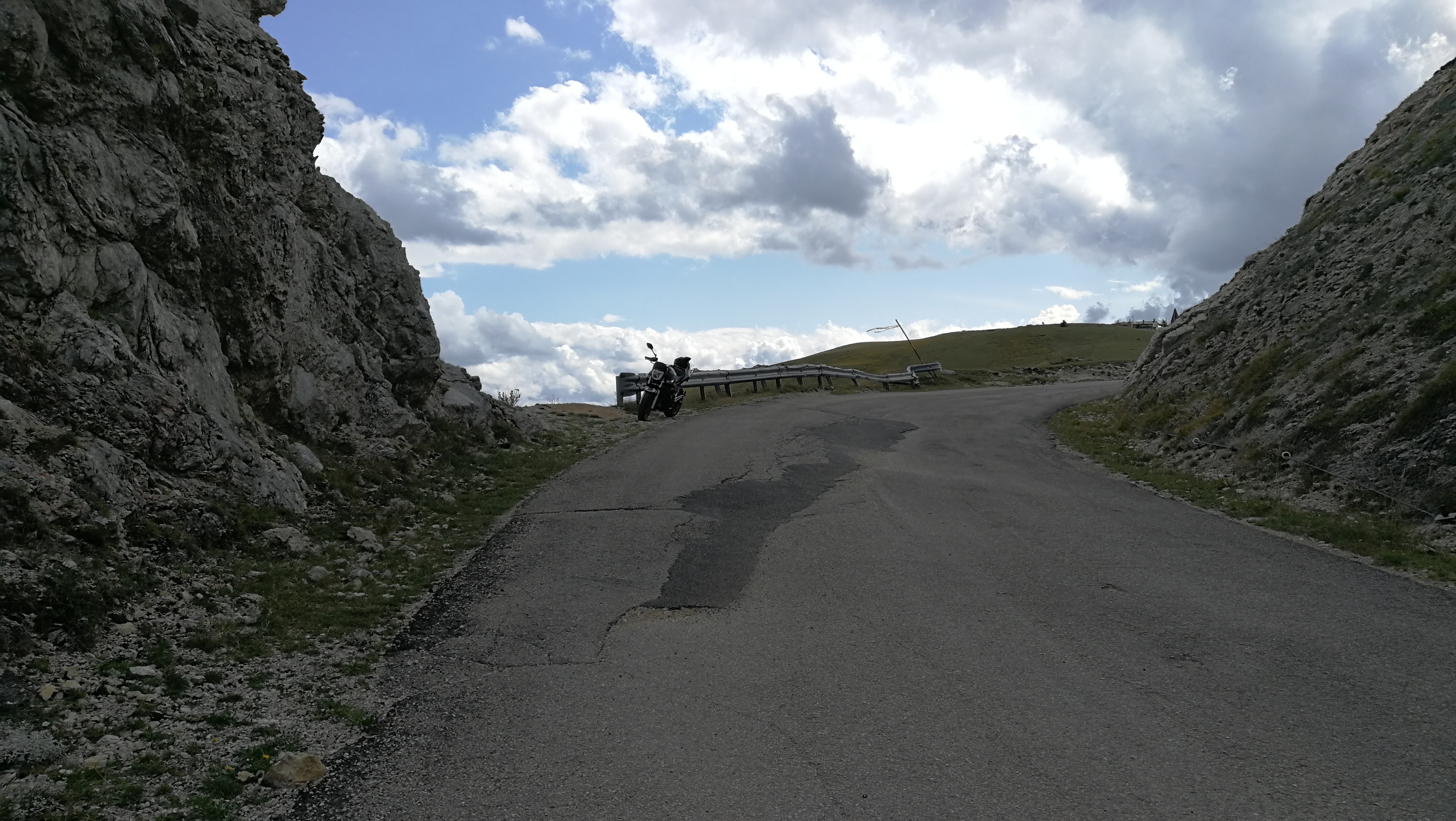 Gasato dalla piccola avventura ho proseguito la salita dopo Pacentro, ignorato i cartelli che indicavano la strada chiusa da lì a poco, superando i soliti blocchi ma ad un certo punto, sorpresa! Non c'erano più possibilità di varco come quando passammo con Alberto.