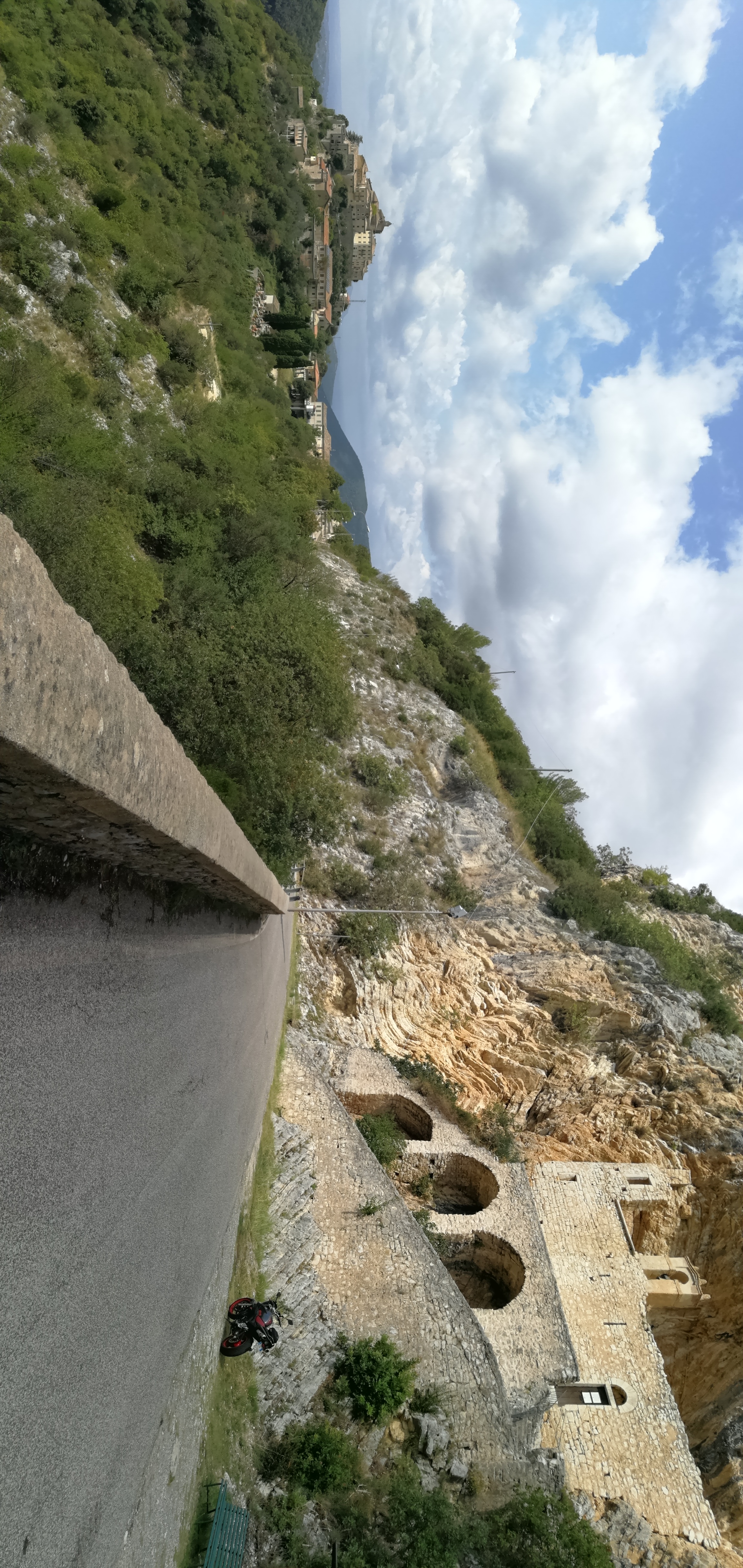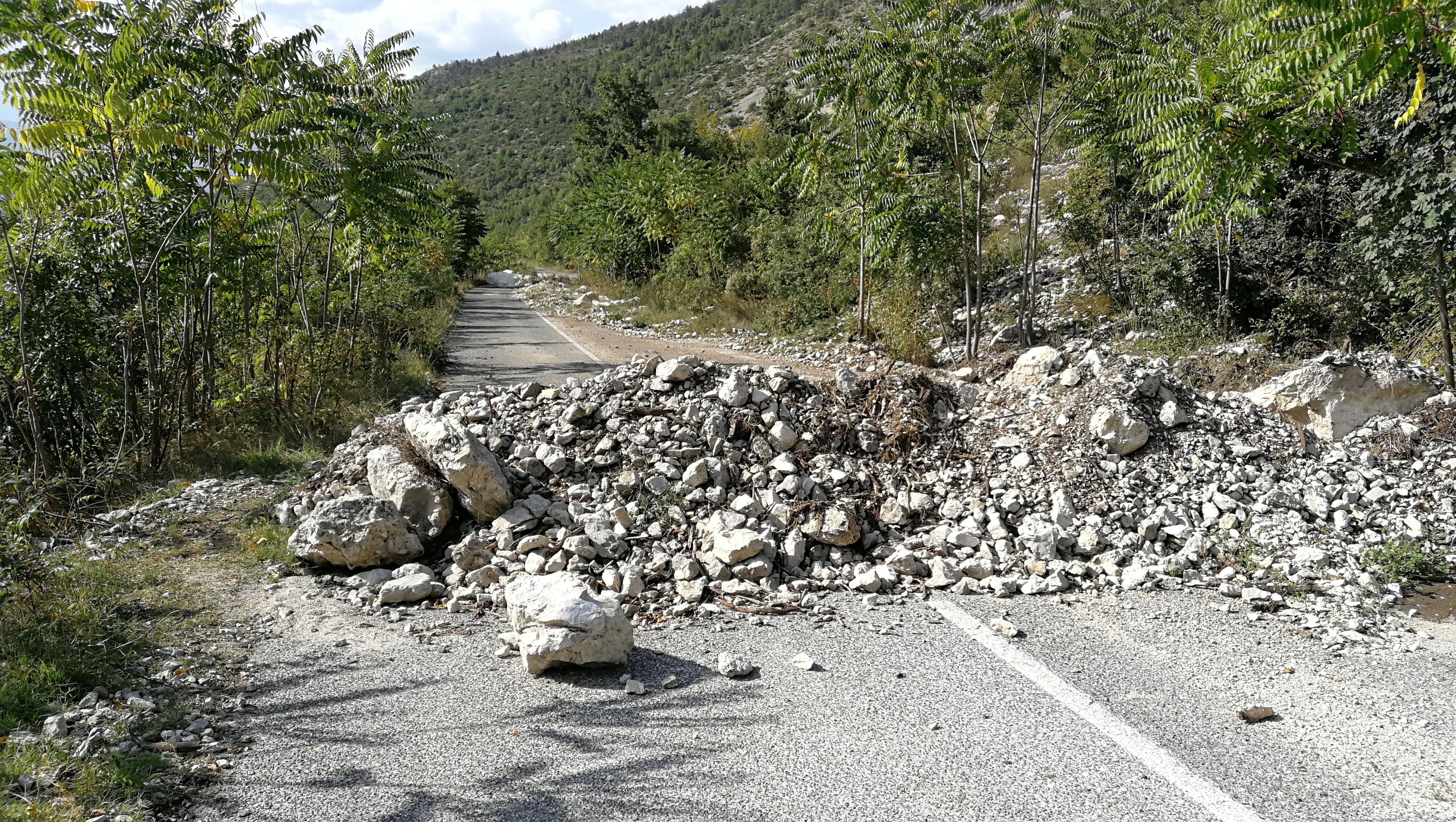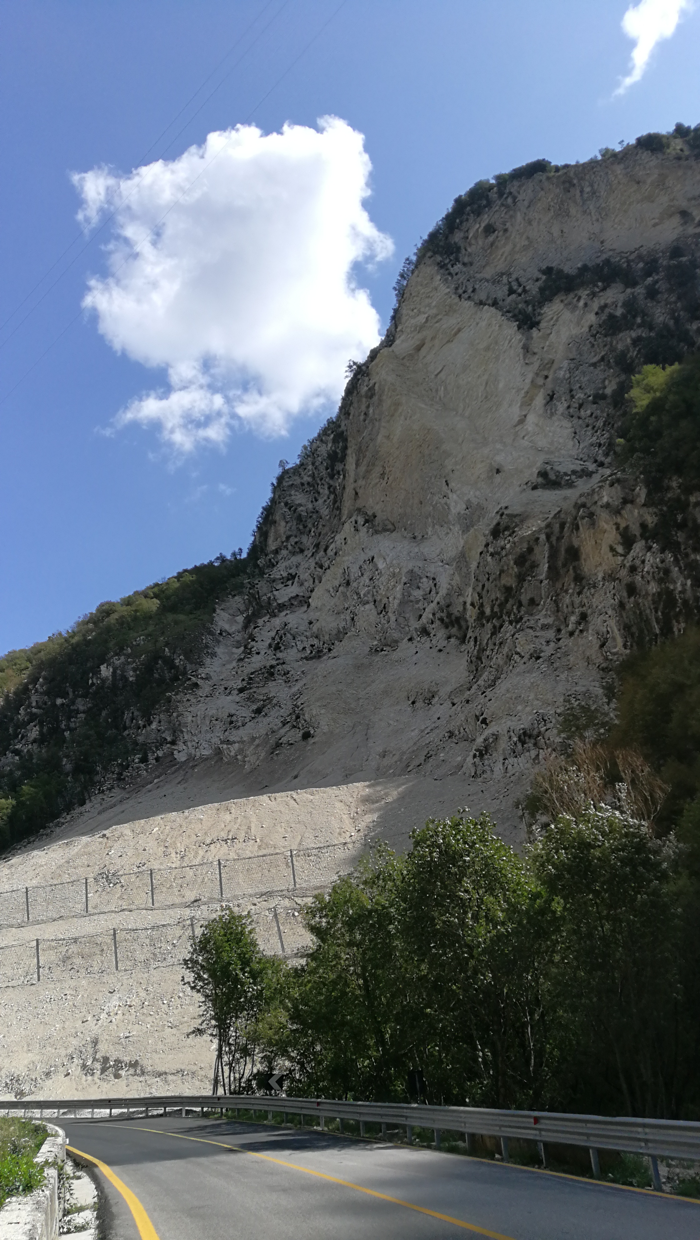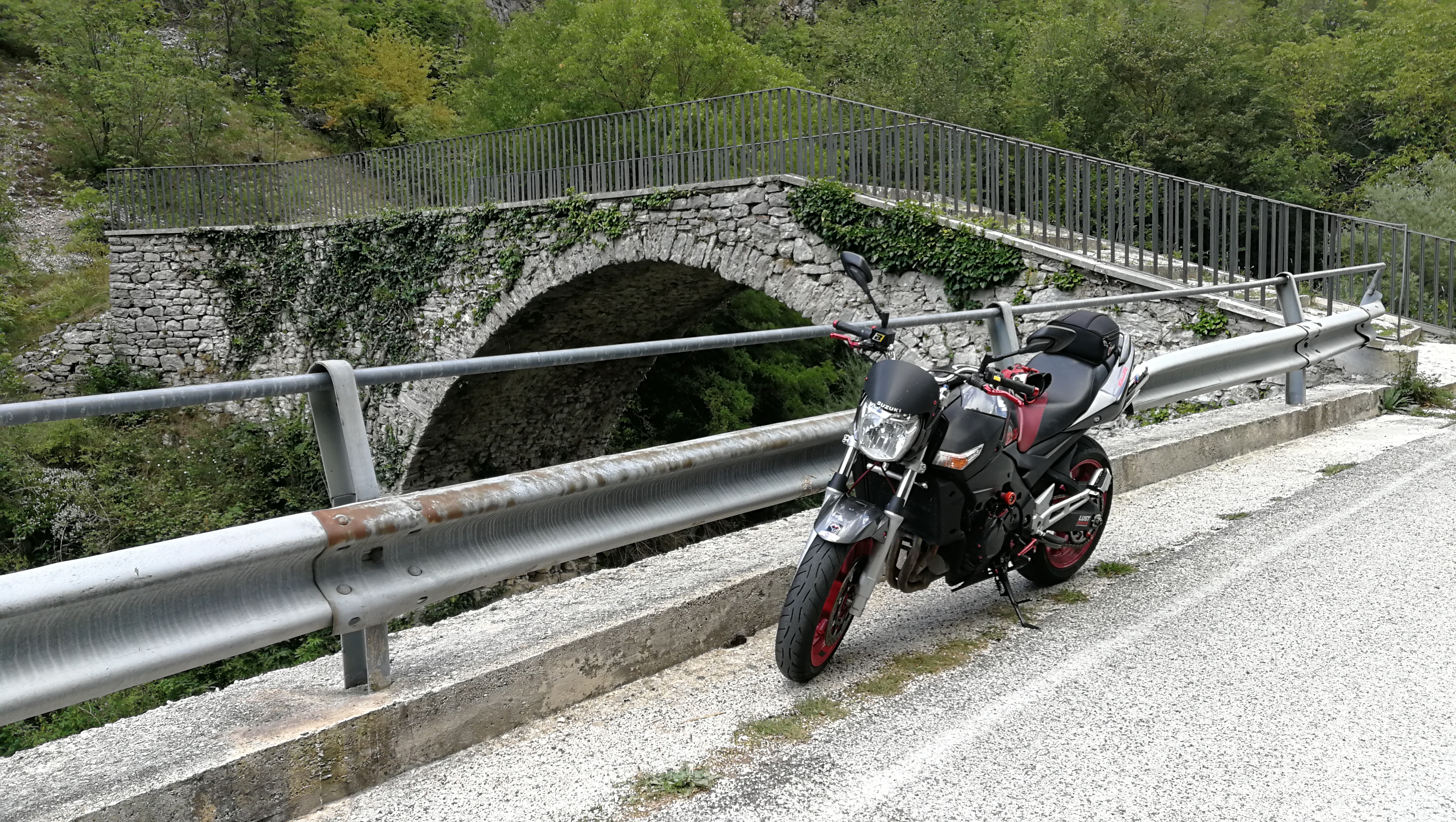 A dir la verità un primo blocco importante l’avevo già trovato prima di arrivare a Pacentro, per una volta che venendo da Pratola Peligna ho imboccato la strada più breve mi sono ritrovato il cartello che avvisava del blocco ma l’ho ignorato pensando ai soliti blocchi di cemento: superato il primo passando nel mezzo pensavo fosse fatta ma tre tornanti e due km più su c’era da tornare indietro. I resti di una frana erano stati sparsi a formare delle barriere, un grosso masso ed un altro mucchio di sassi e terra. Ma visto che a forza di passarci intorno pedoni e ciclisti hanno creato dei sentierini mi sono arrischiato con la moto in precario equilibrio ma sono passato arrivando in paese, al ritorno stessa strada ma con moto condotta a mano sul primo tratto!