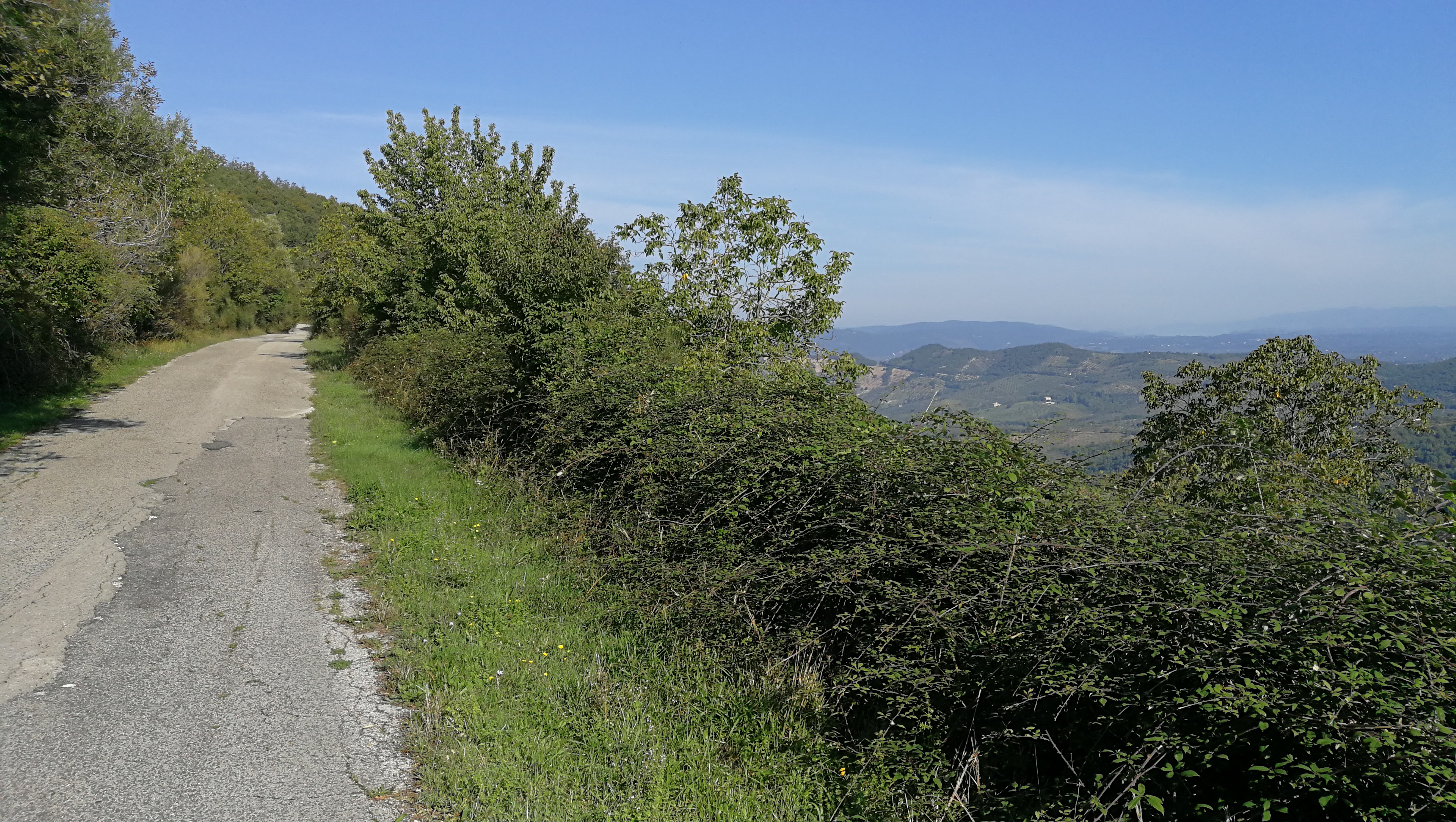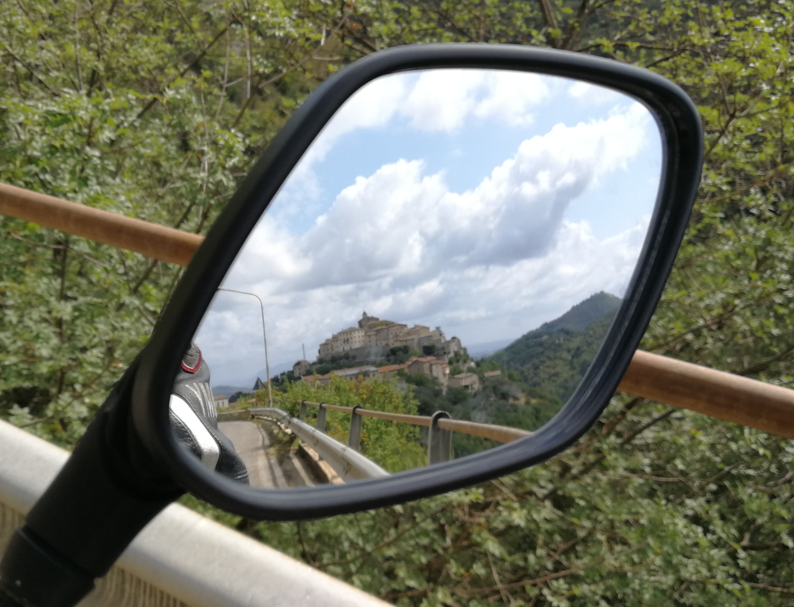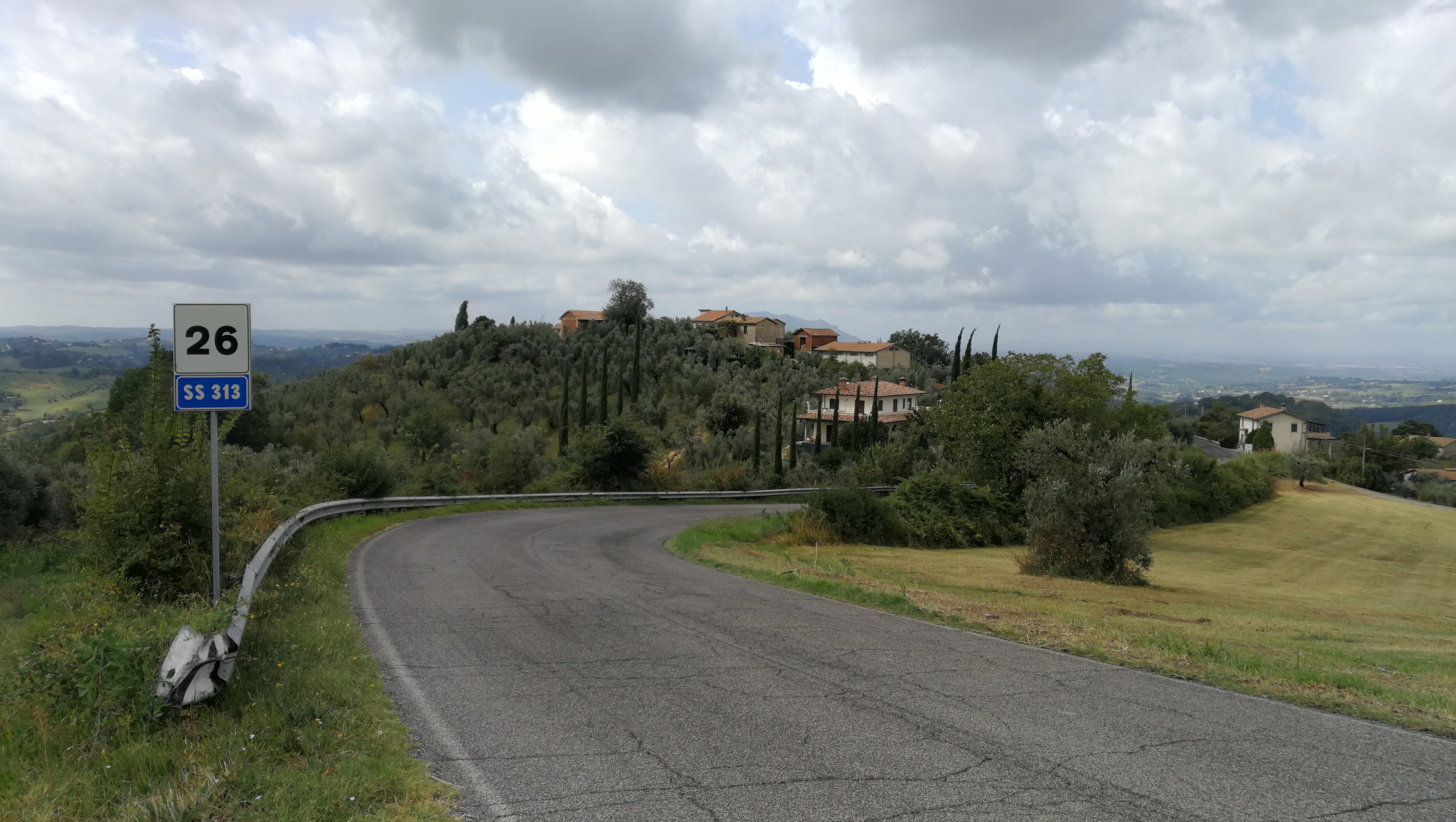 A Carsoli dopo un po' di indecisione, e dopo aver controllato la puntura di vespa appena ricevuta decido di salire verso Colli di Montebove, sempre gradevole, anche se oggi raramente ho cercato la tecnica dedicandomi più che altro al passeggio morbido. La discesa verso Tagliacozzo offre sempre panorami molto belli: superato astutamente e con un po' di fortuna sono riuscito ad evitare un imponente corteo funebre che aveva bloccato tutto il corso principale.