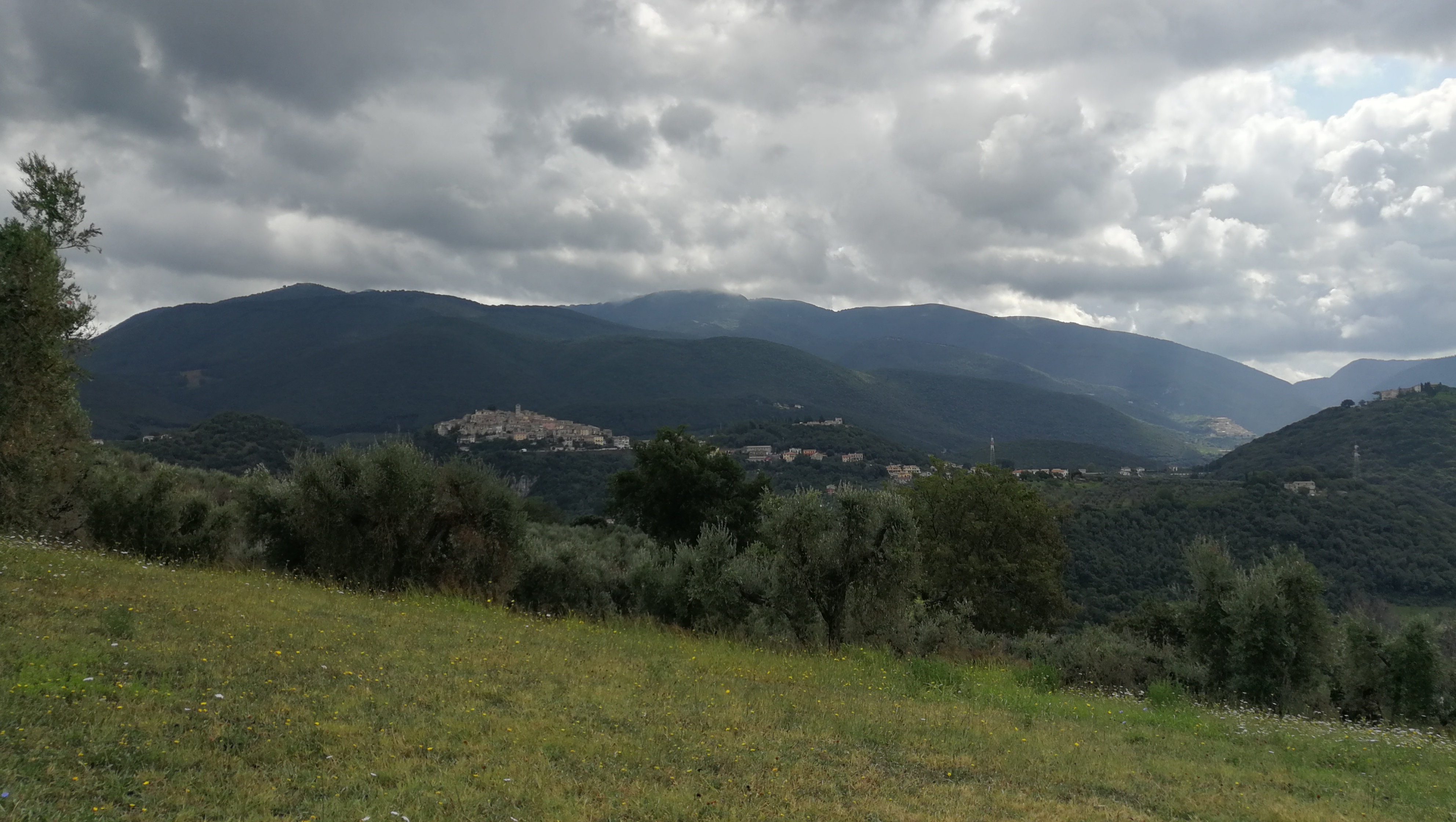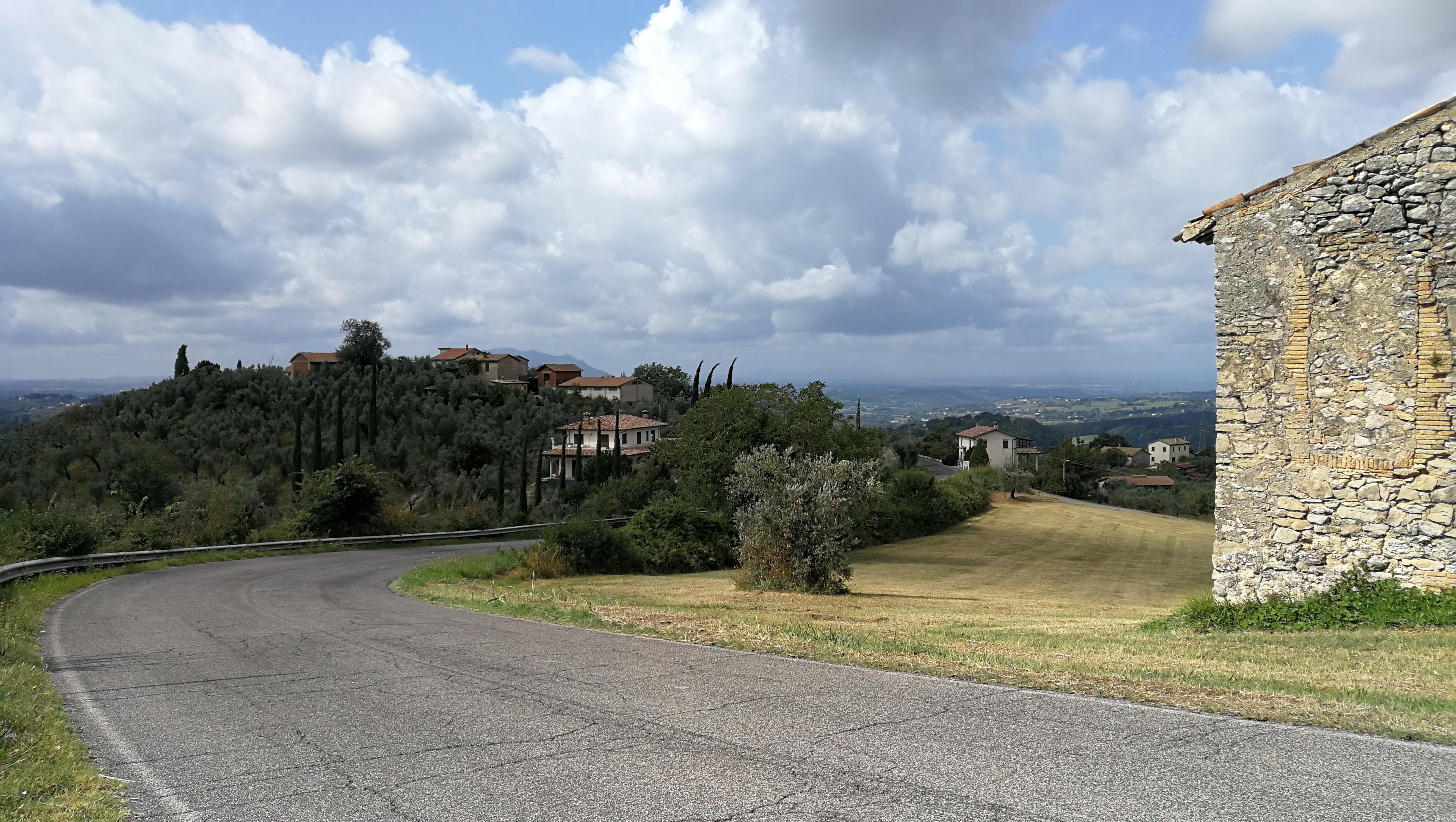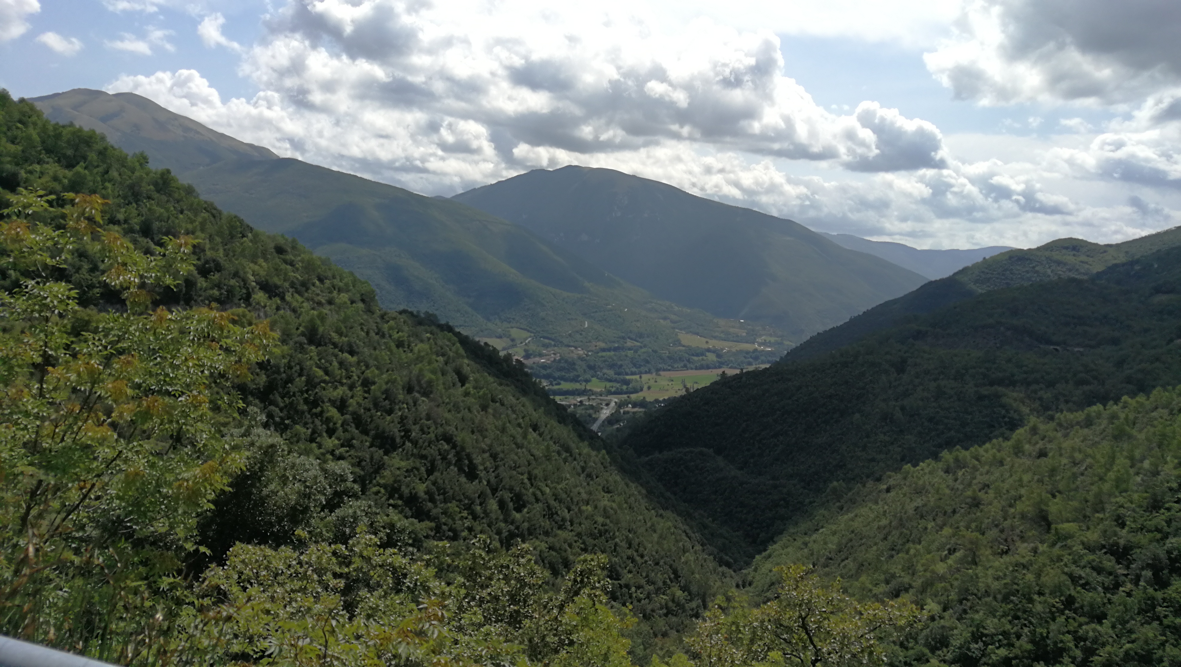 A Carsoli dopo un po' di indecisione, e dopo aver controllato la puntura di vespa appena ricevuta decido di salire verso Colli di Montebove, sempre gradevole, anche se oggi raramente ho cercato la tecnica dedicandomi più che altro al passeggio morbido. La discesa verso Tagliacozzo offre sempre panorami molto belli: superato astutamente e con un po' di fortuna sono riuscito ad evitare un imponente corteo funebre che aveva bloccato tutto il corso principale.