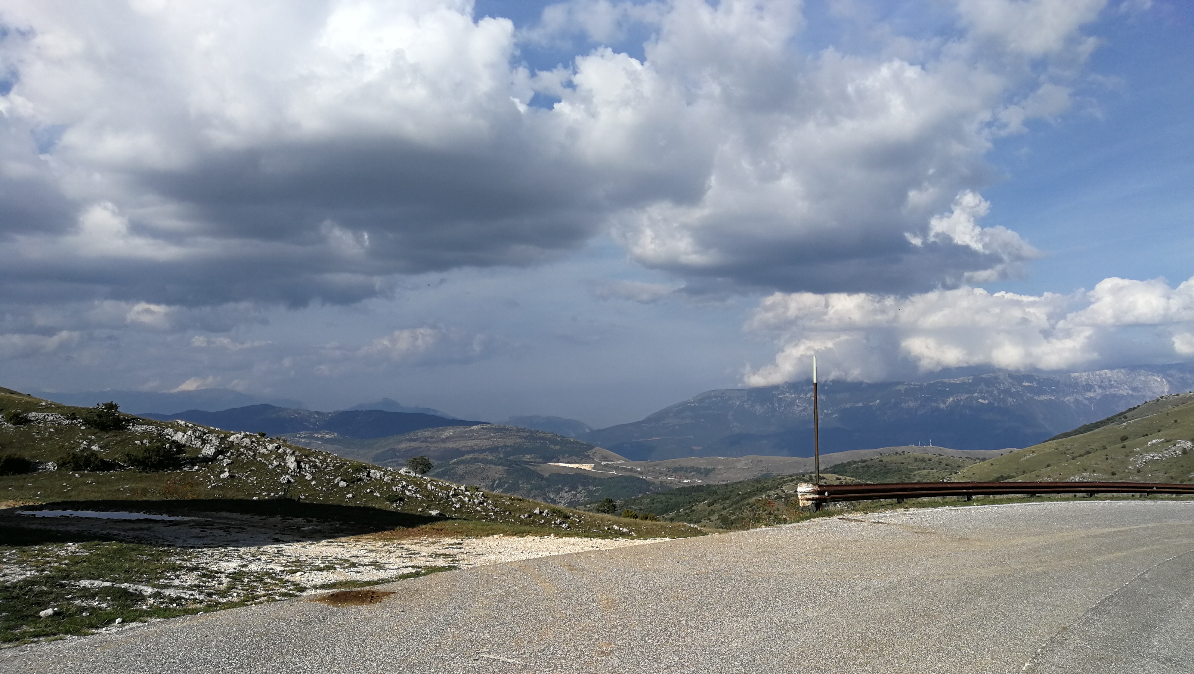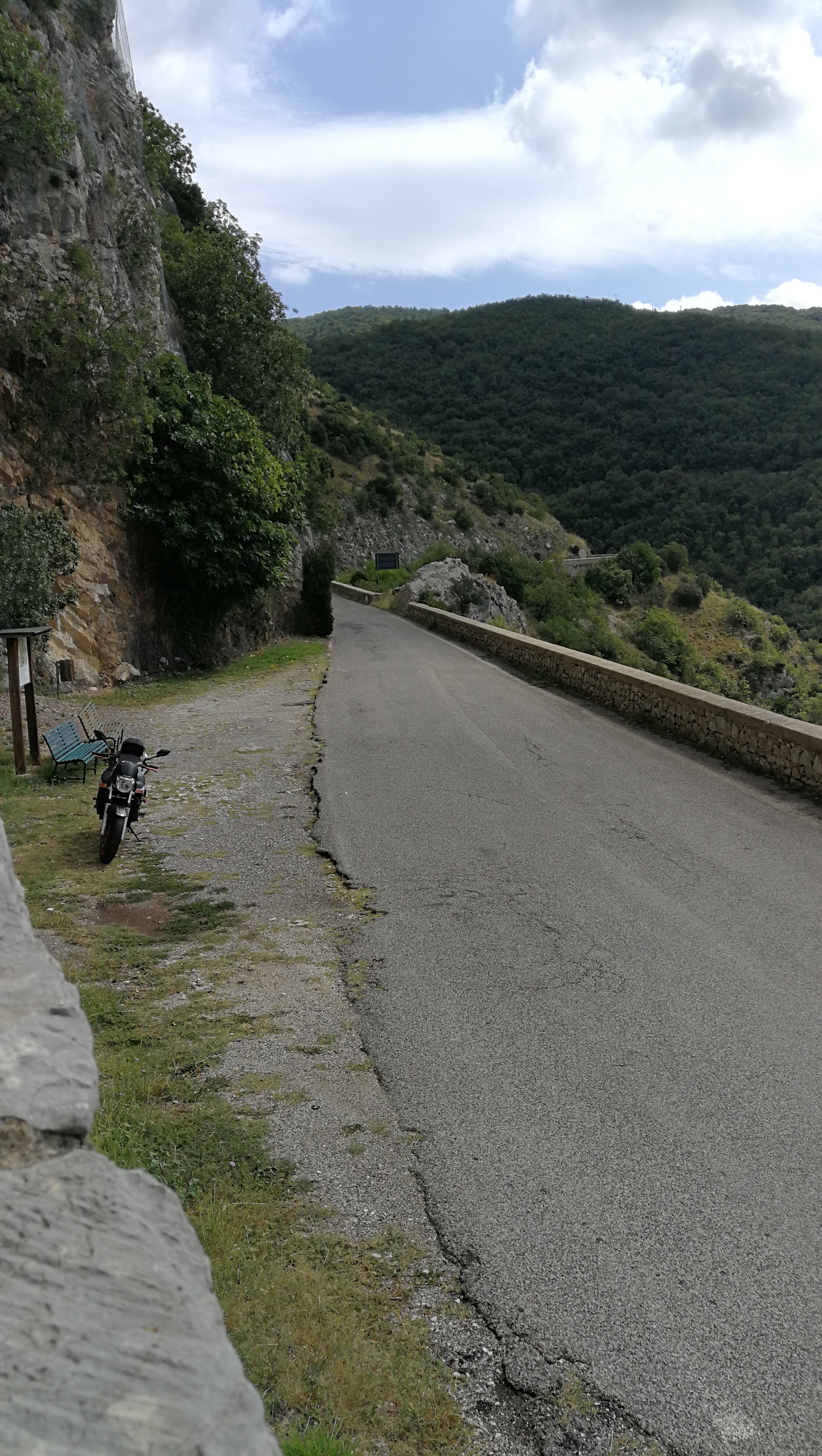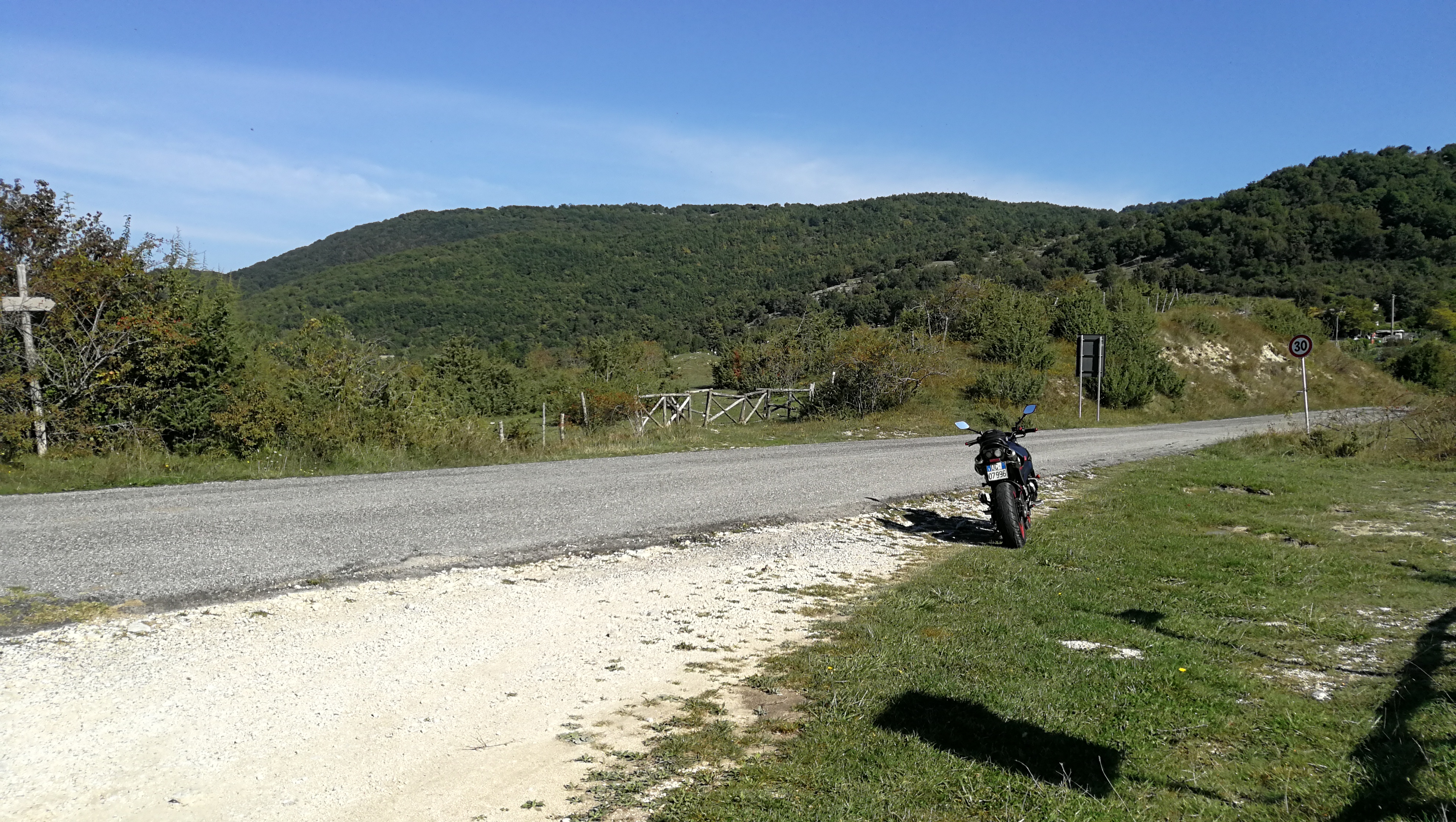 E così sono ripassato fino a Goriano Sicoli per la stessa strada dell’andata, non mi andava più nemmeno di fare la bellissima Tiburtina fino a Collarmele e da qui ho puntato verso il Valico dell'Olmo sulla strada per Cocullo ma al bivio ho preso a destra per la Val Giovenco. La sosta al valico è sempre doverosa.