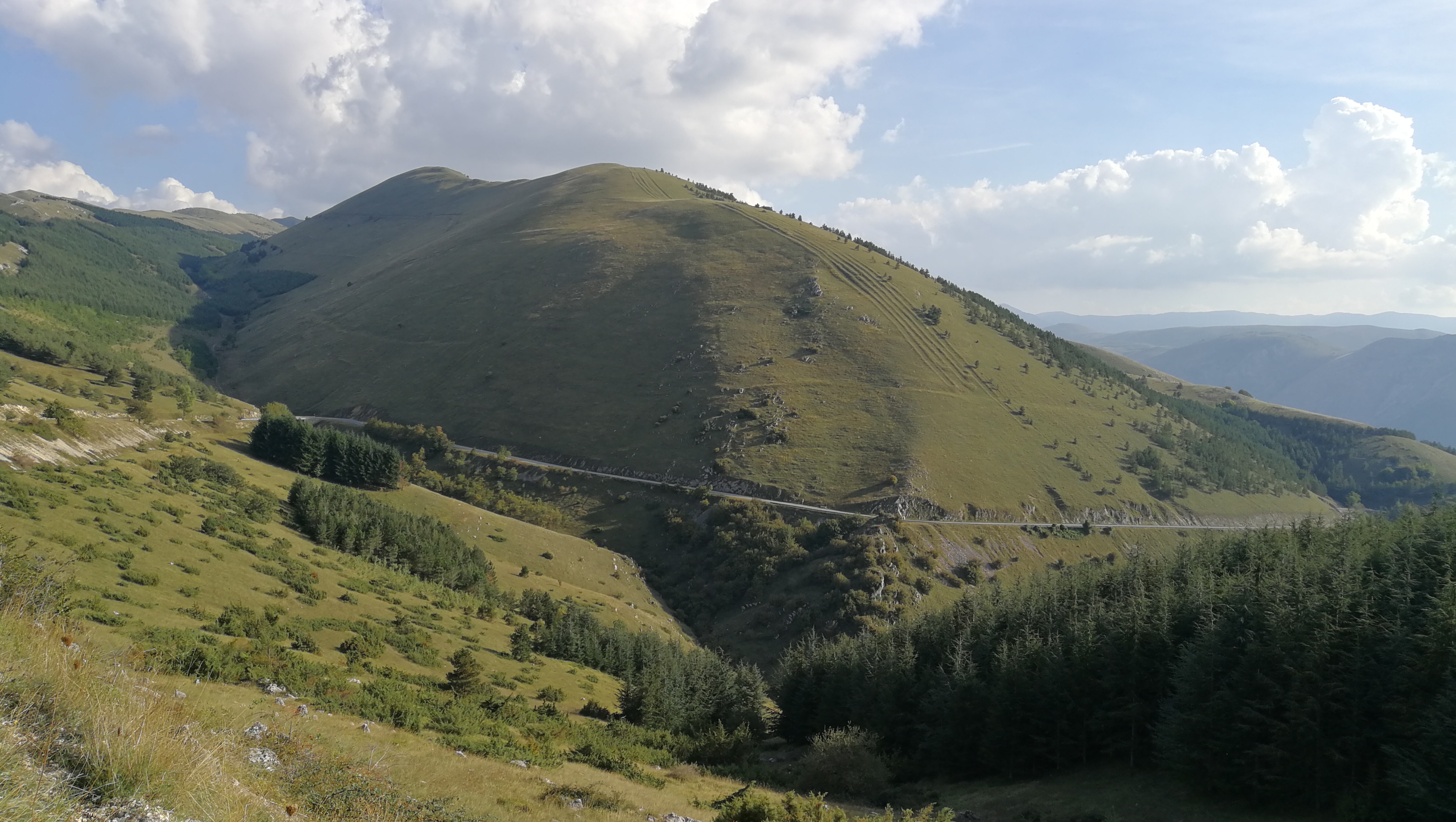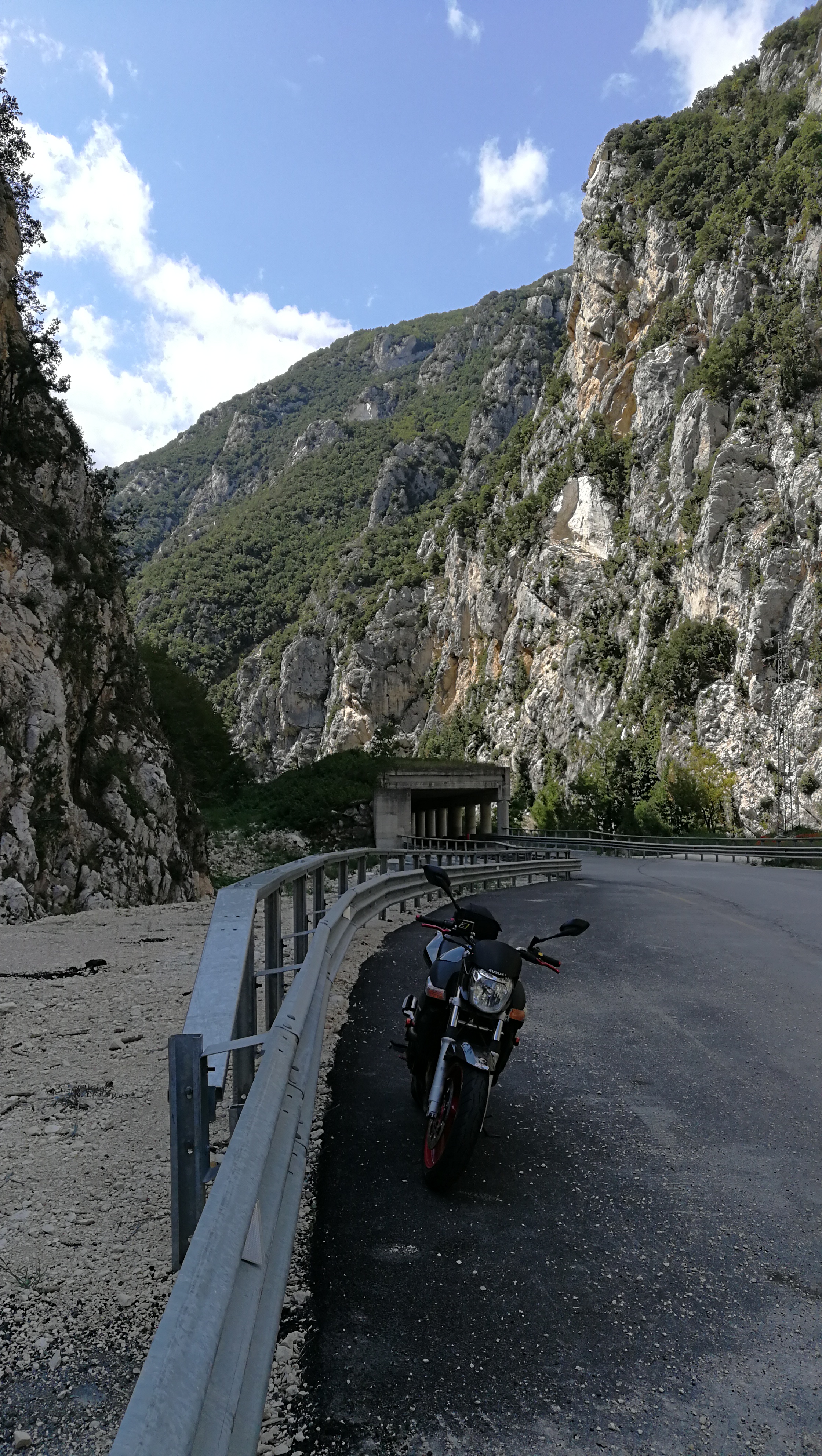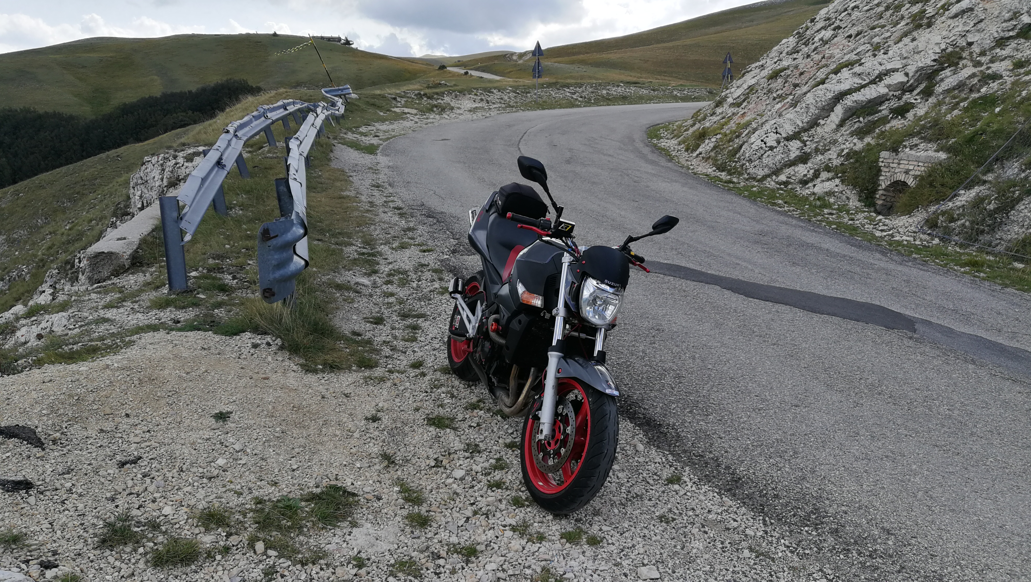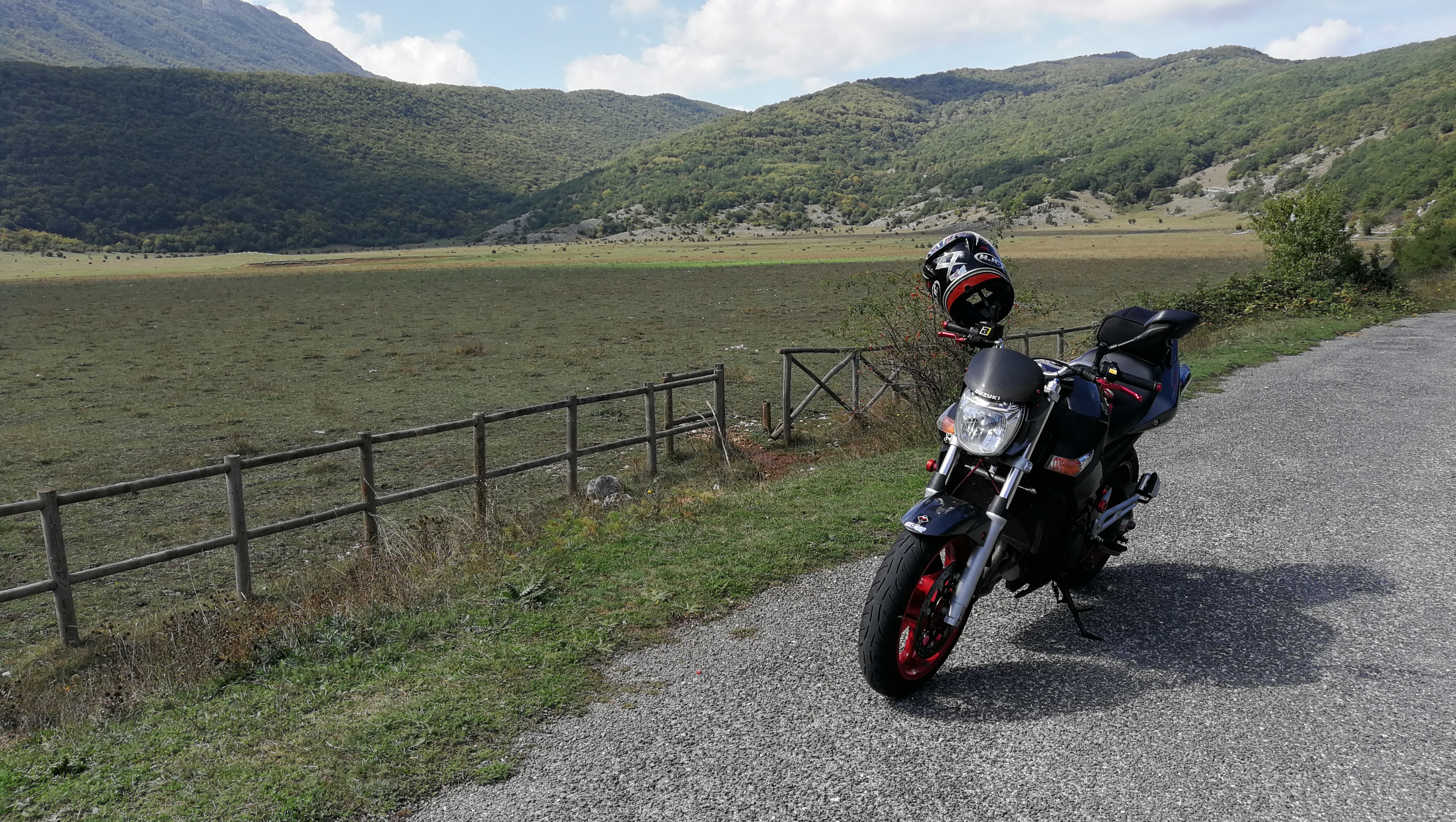 E così sono ripassato fino a Goriano Sicoli per la stessa strada dell’andata, non mi andava più nemmeno di fare la bellissima Tiburtina fino a Collarmele e da qui ho puntato verso il Valico dell'Olmo sulla strada per Cocullo ma al bivio ho preso a destra per la Val Giovenco. La sosta al valico è sempre doverosa.