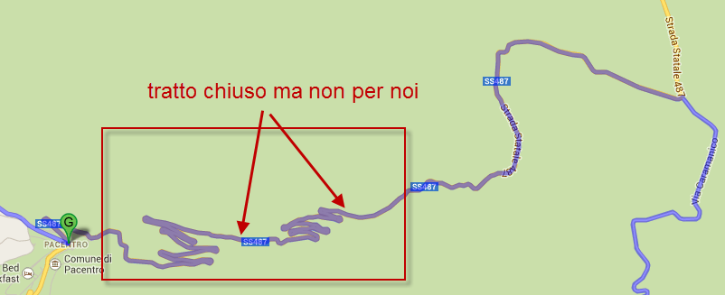 La mia intenzione era salire a Pacentro e da lì prendere direttamente per Passo San Leonardo tagliando: l’ultima volta durante un ricco giro trovammo la strada sbarrata con dei blocchi di cemento ma passammo lo stesso senza trovare grandi problemi ma stavolta quel famoso tratto chiuso ma non per noi era decisamente sbarrato!