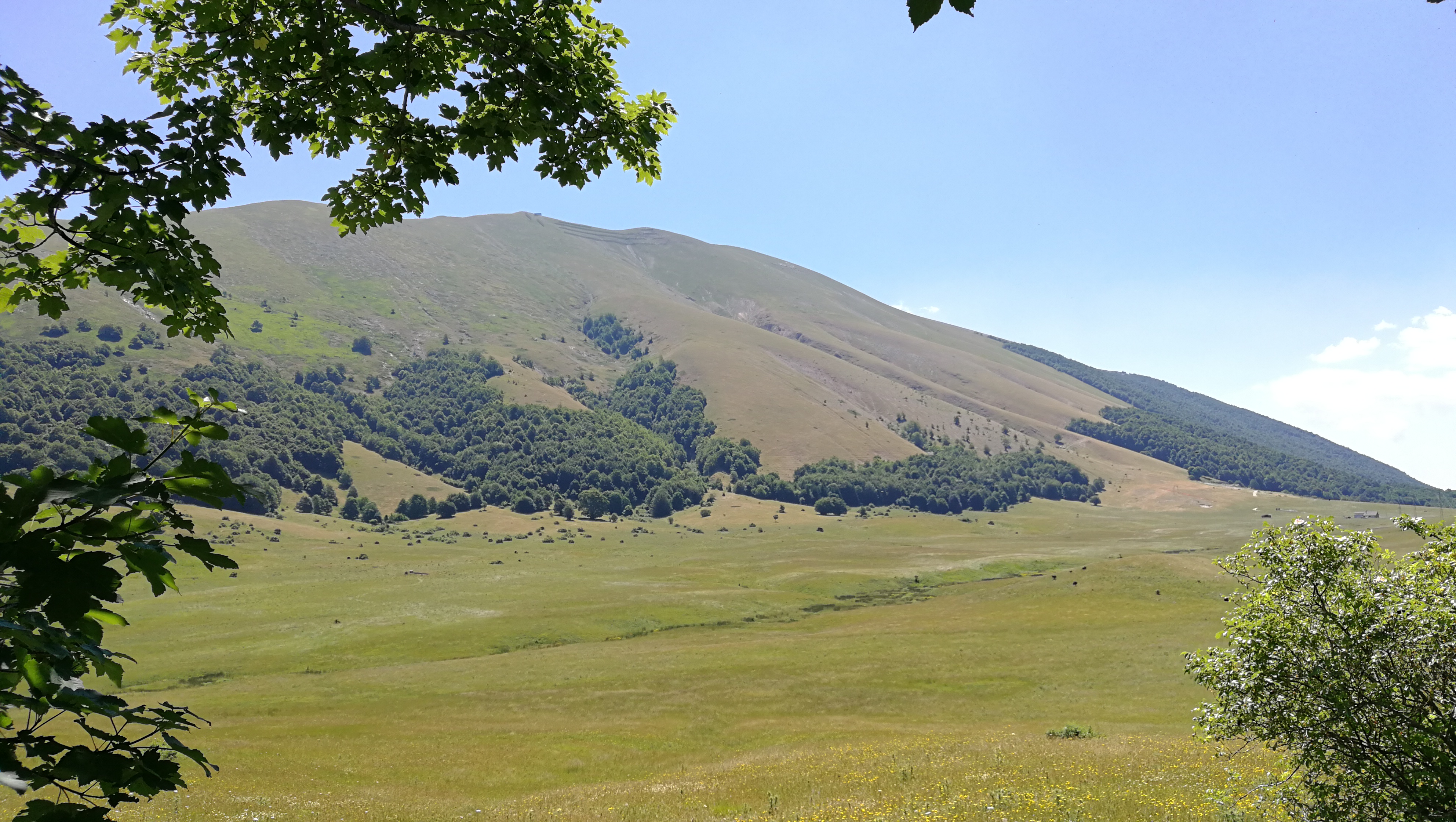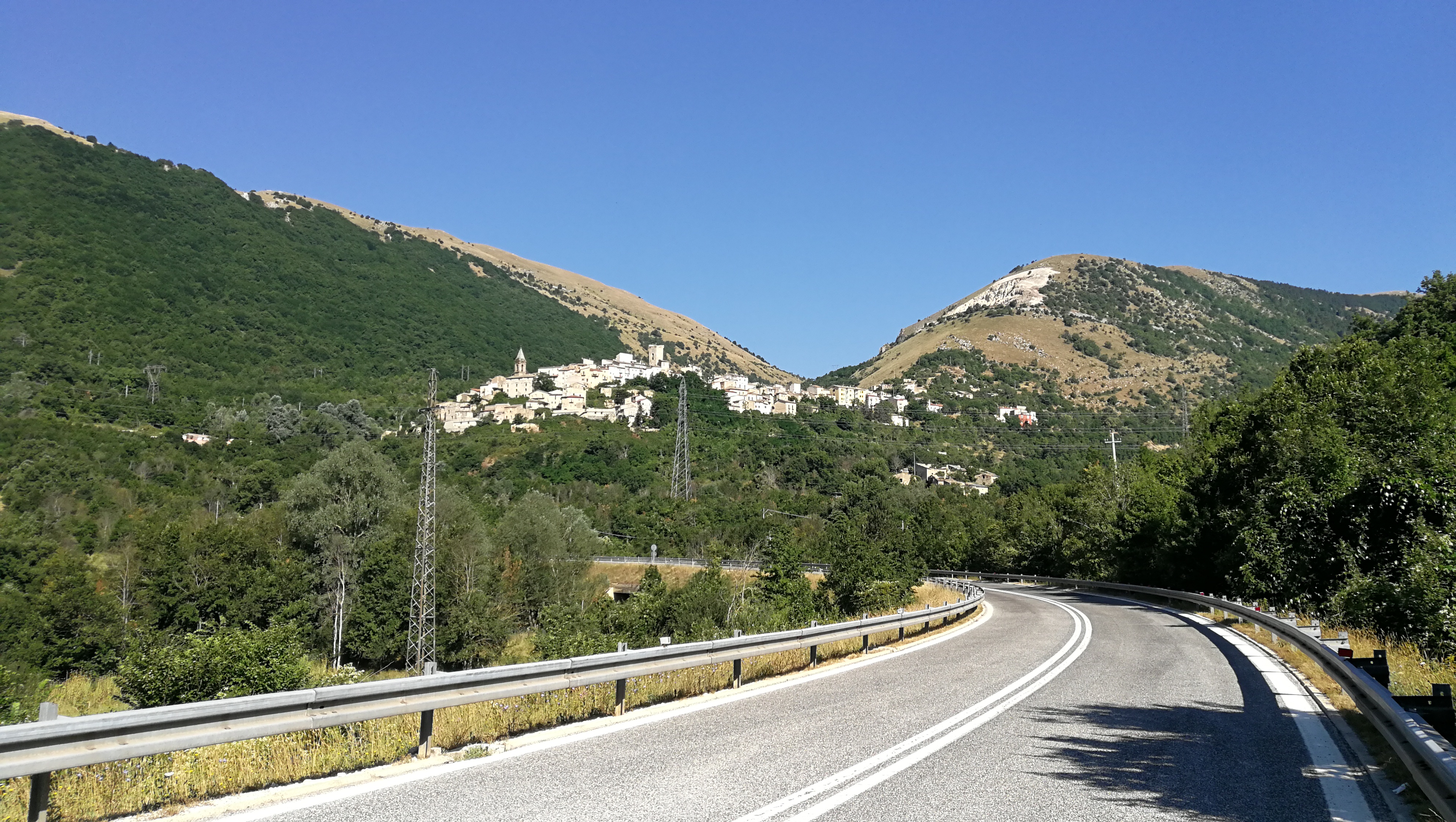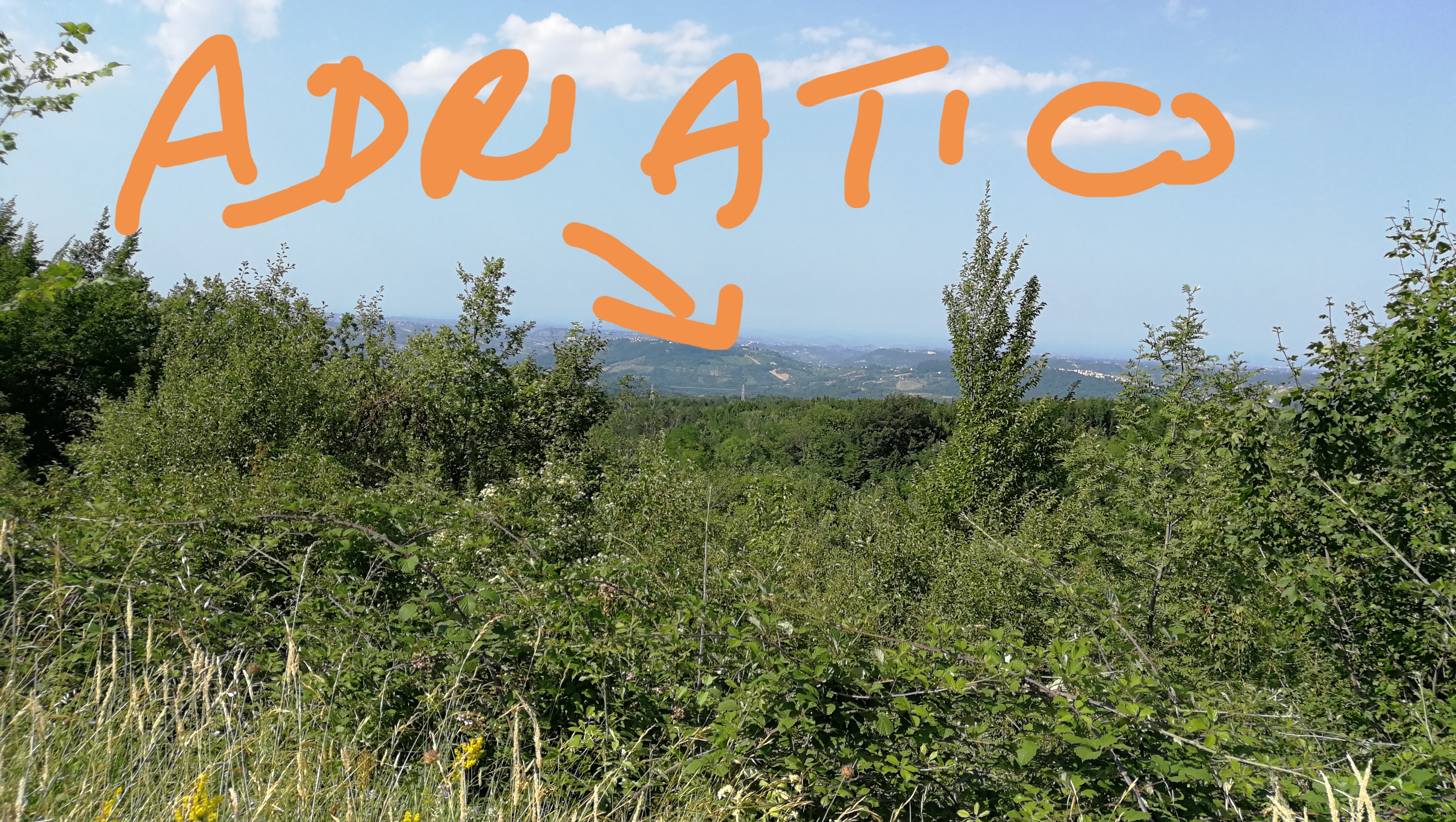 Per la prima volta anziché arrivare fino ad Urbania e tornare verso Piobbico da Sant’Angelo in Vado mi avventuro per una stradella stretta e tortuosa, e scassatella, che collega con Apecchio: una delle poche dove la Google Car non è passata! Però che panorama dalla sommità, il Monte Catria nella sua imponenza si staglia limpido ad Est!