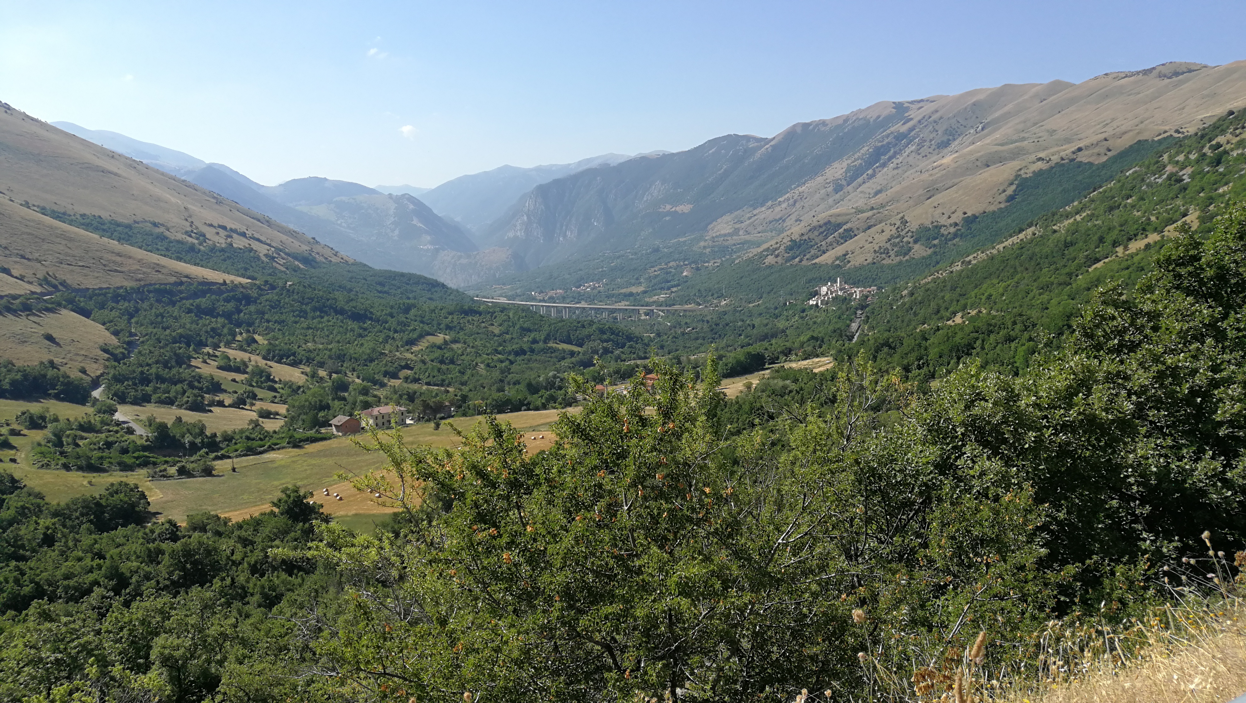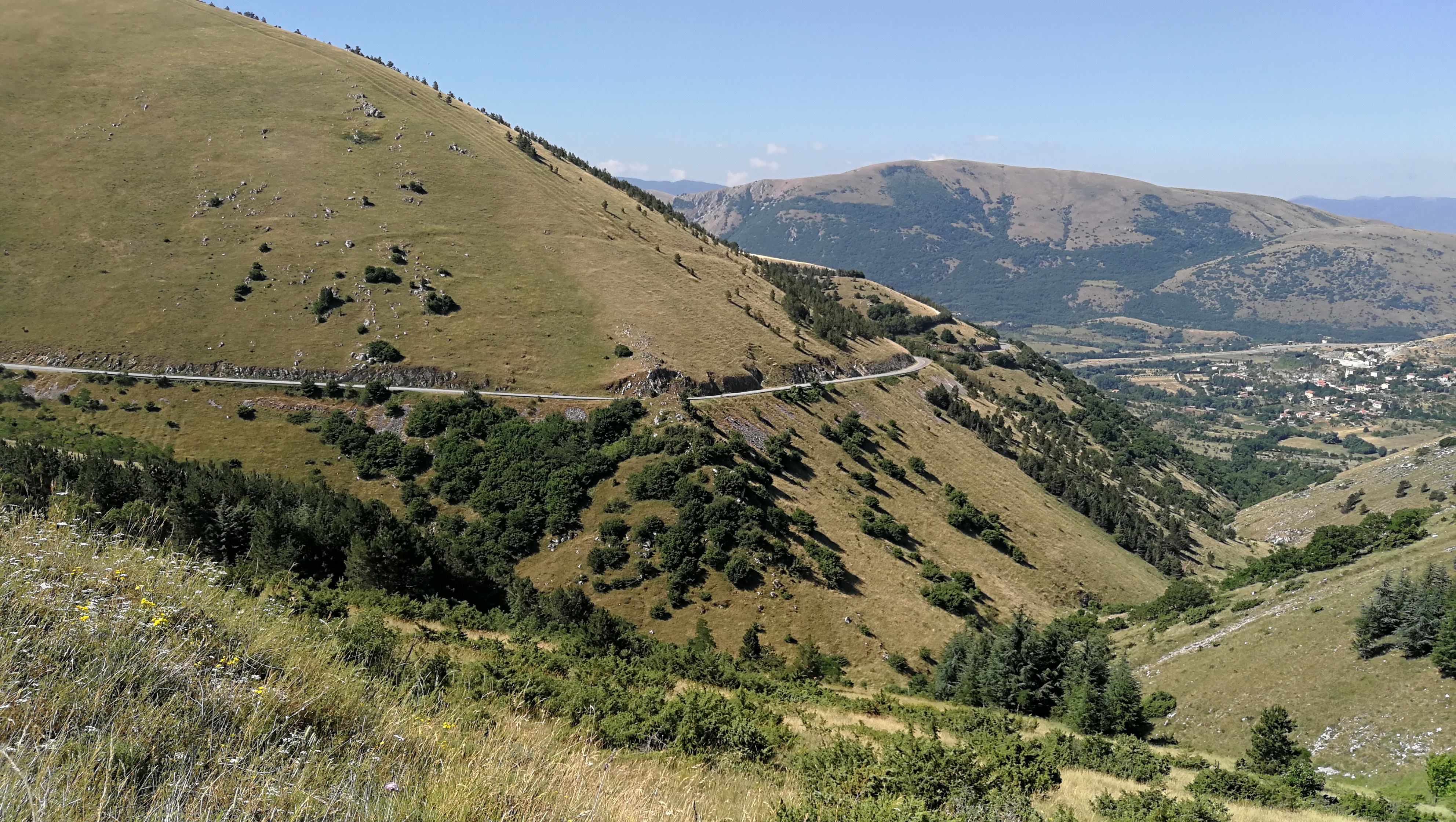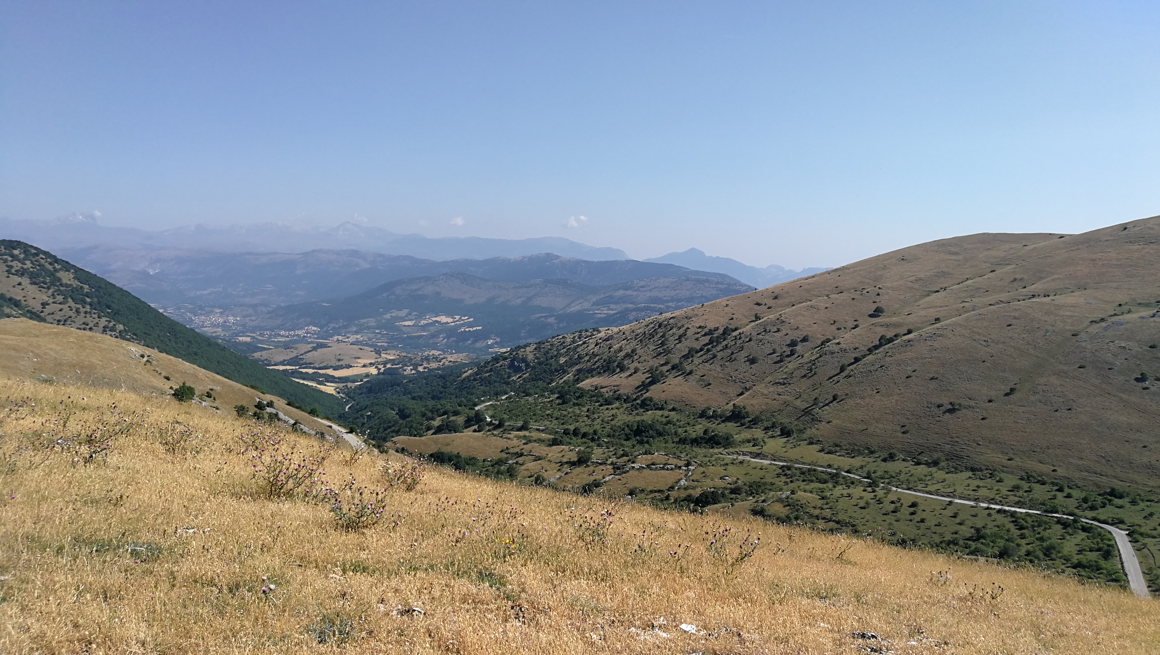 Per la prima volta anziché arrivare fino ad Urbania e tornare verso Piobbico da Sant’Angelo in Vado mi avventuro per una stradella stretta e tortuosa, e scassatella, che collega con Apecchio: una delle poche dove la Google Car non è passata! Però che panorama dalla sommità, il Monte Catria nella sua imponenza si staglia limpido ad Est!